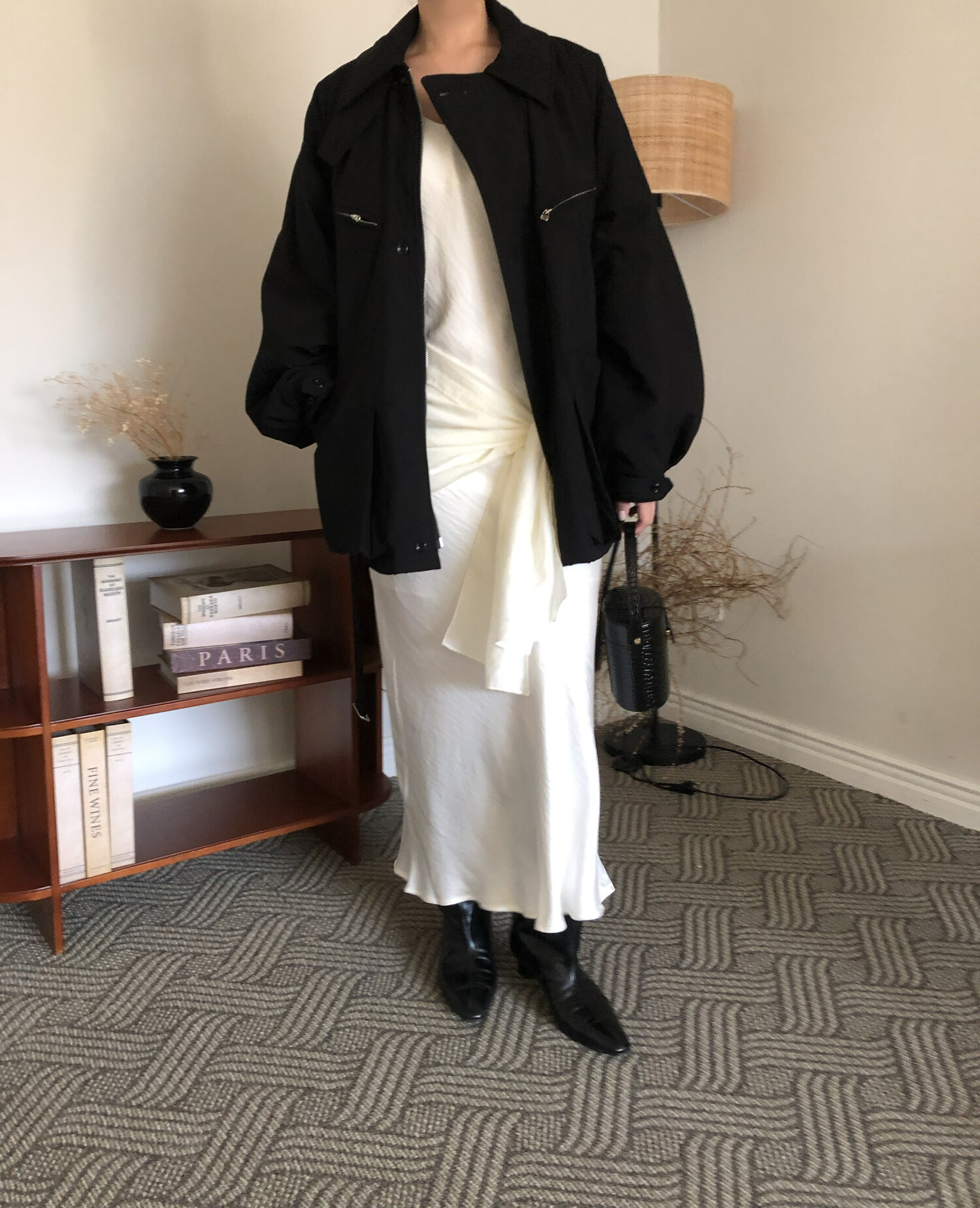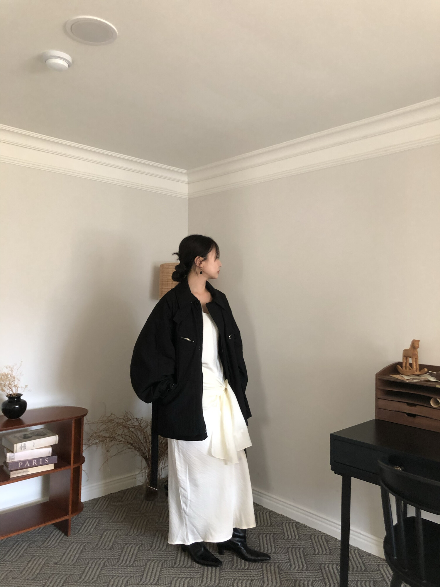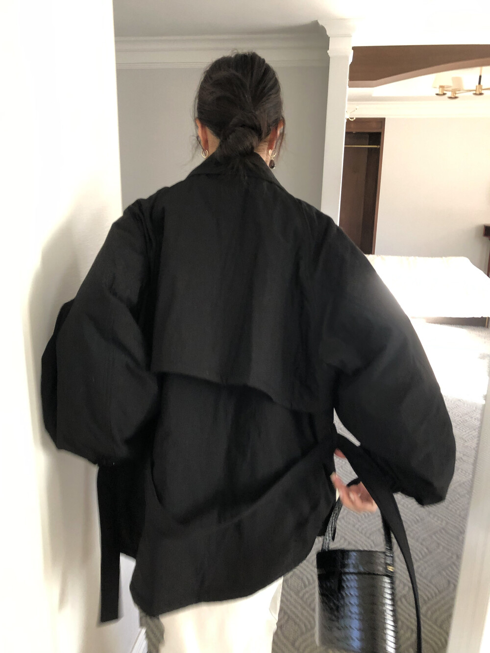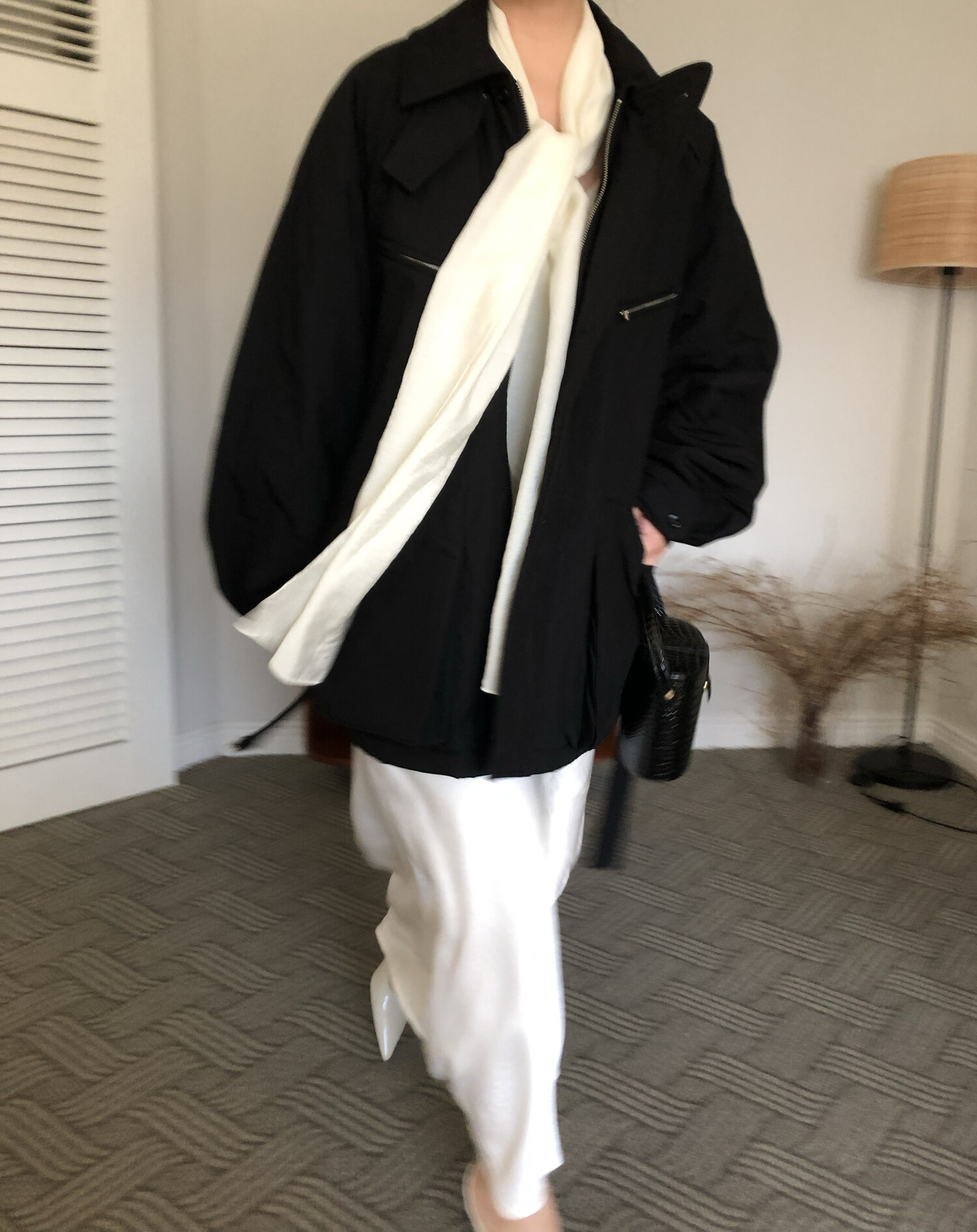 -낙낙한 루즈핏으로 여유롭게 착용할 수 있으며 소맷단 볼륨감 있는 벌룬 디테일로 전체적으로 클래식하면서도 여성스런 실루엣 연출