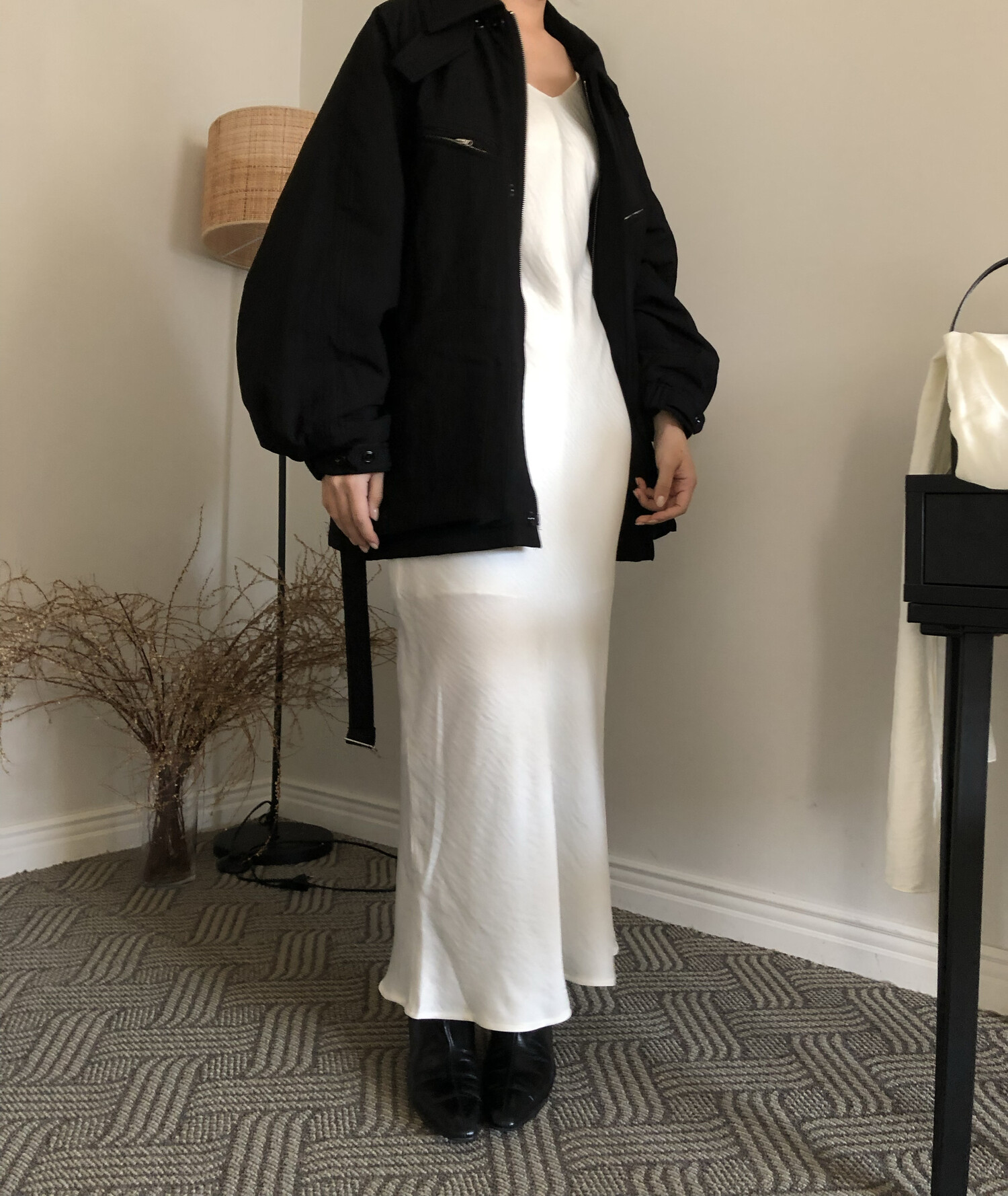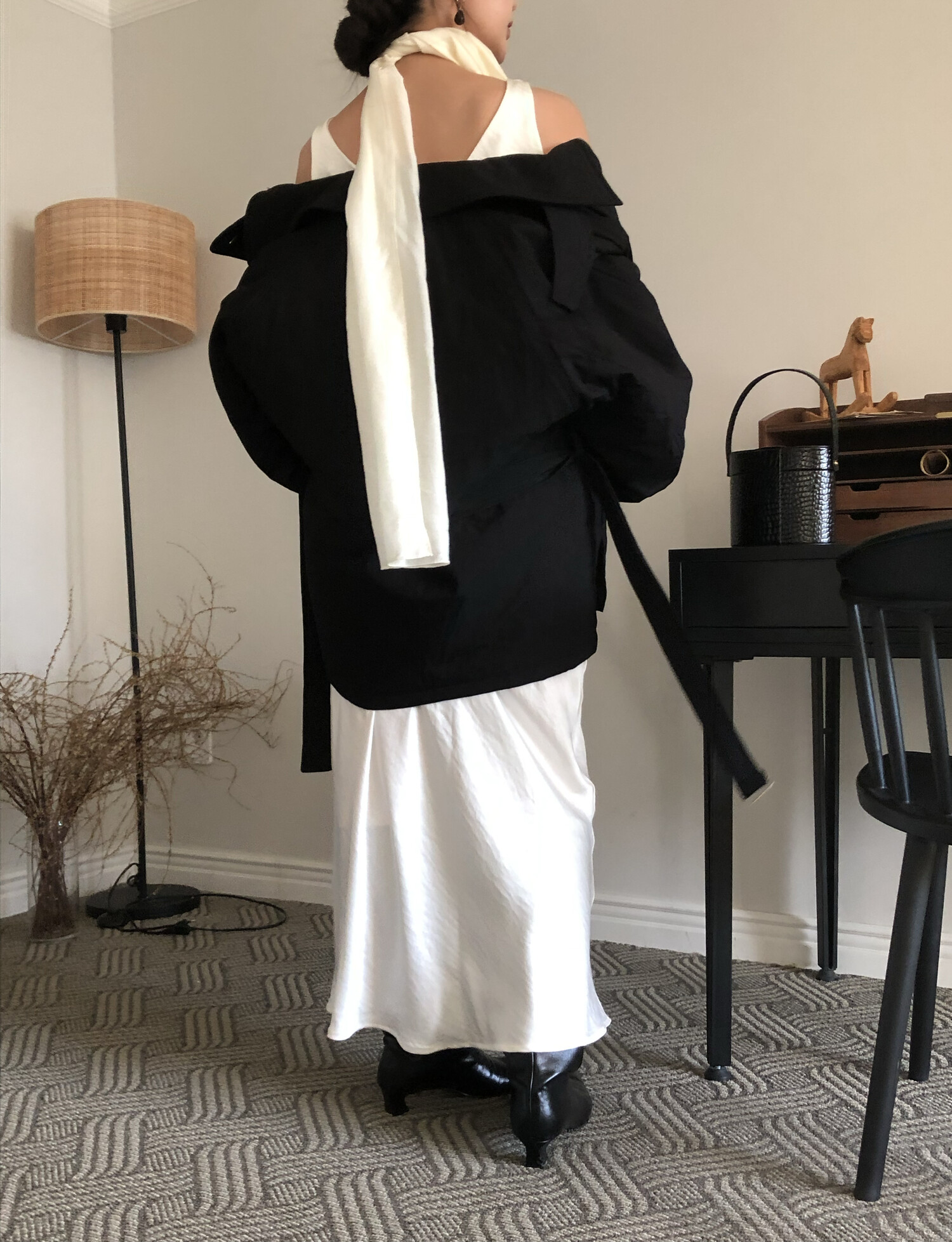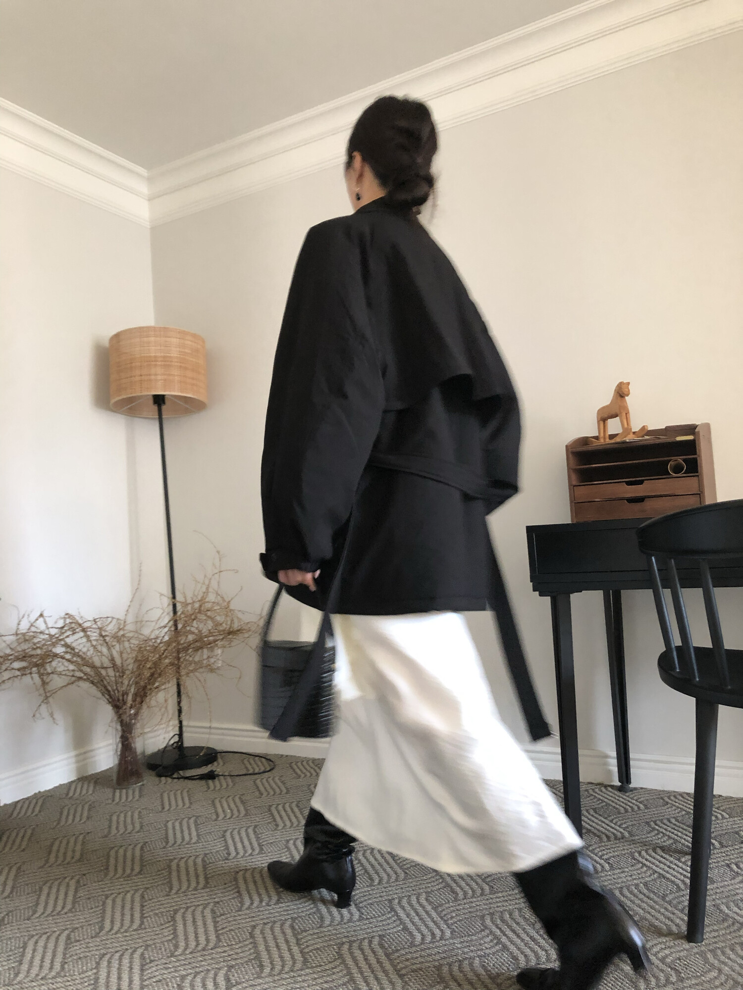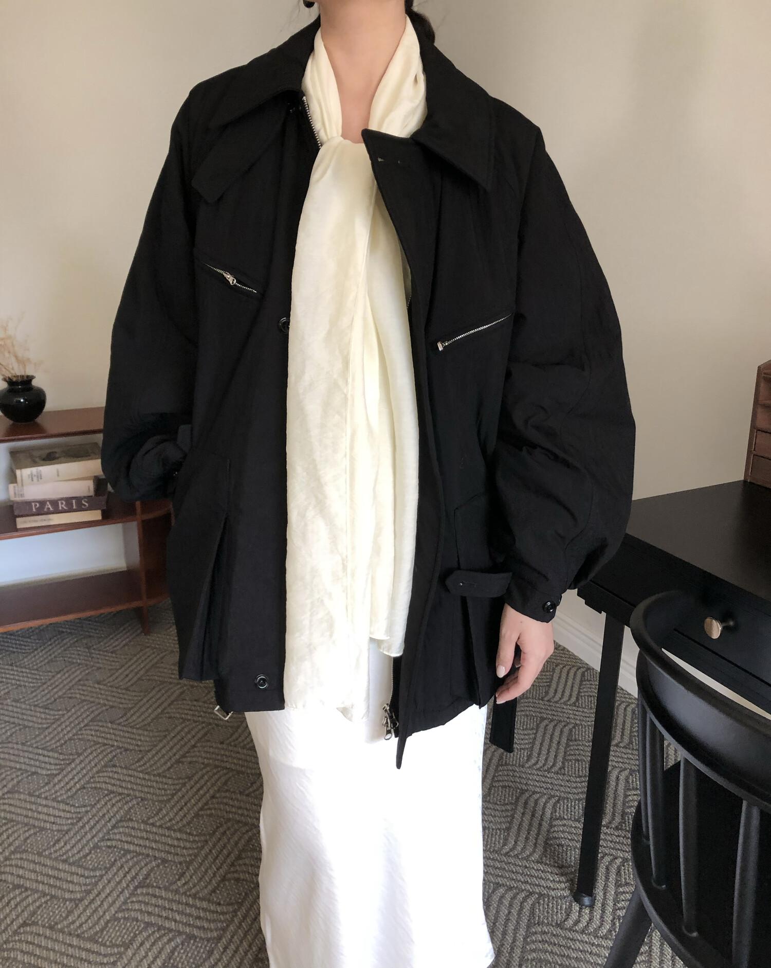 -낙낙한 루즈핏으로 여유롭게 착용할 수 있으며 소맷단 볼륨감 있는 벌룬 디테일로 전체적으로 클래식하면서도 여성스런 실루엣 연출