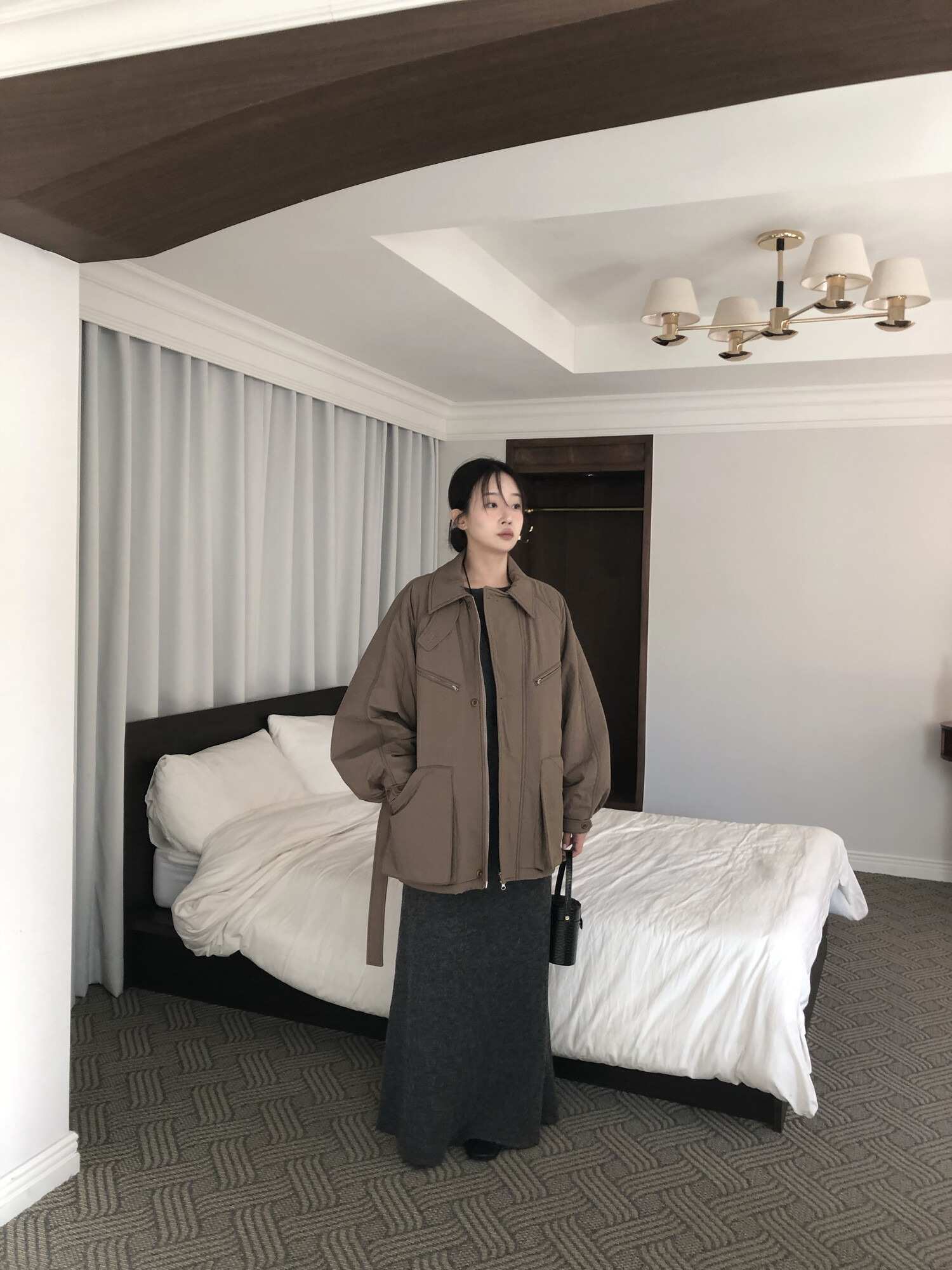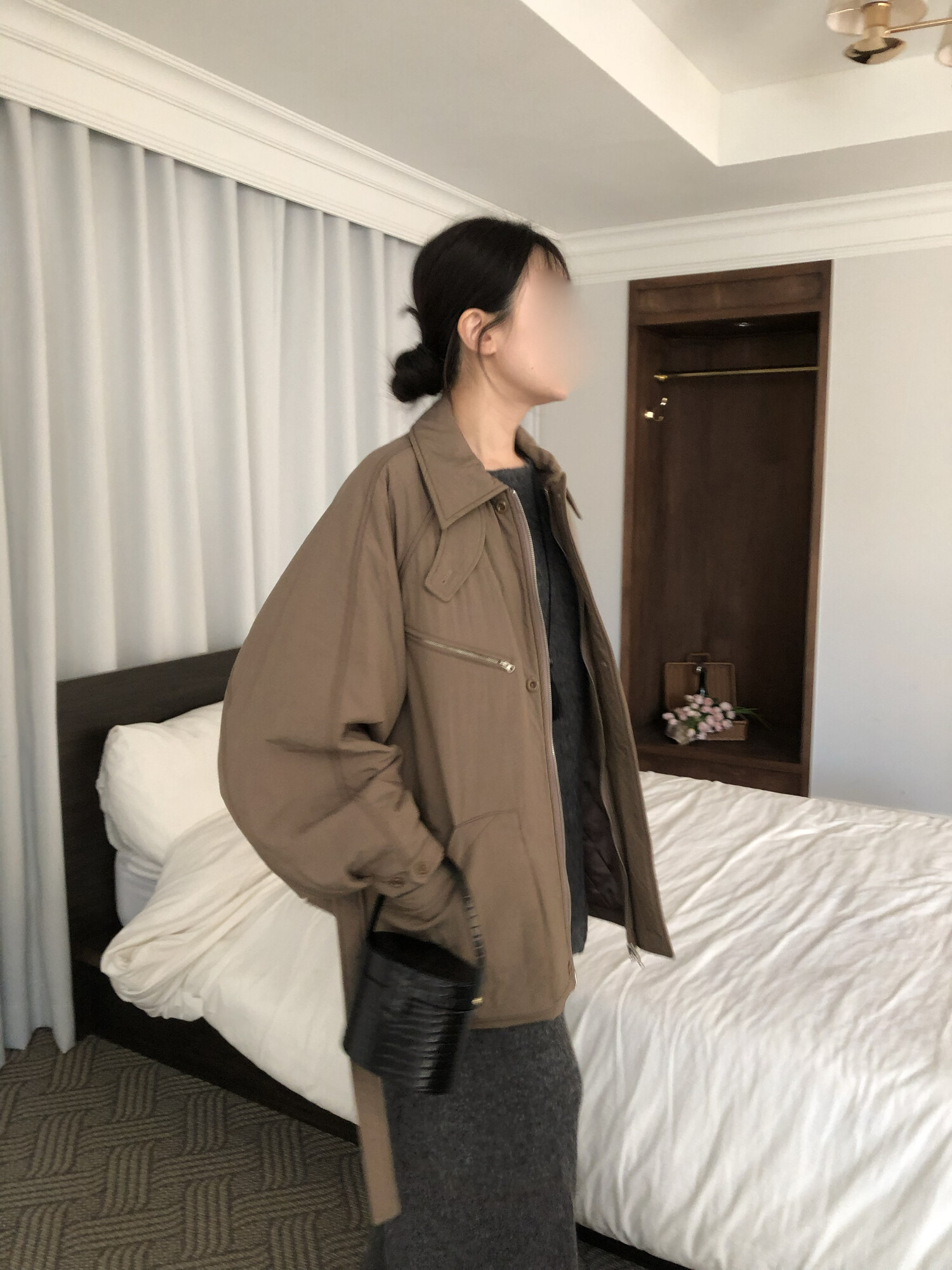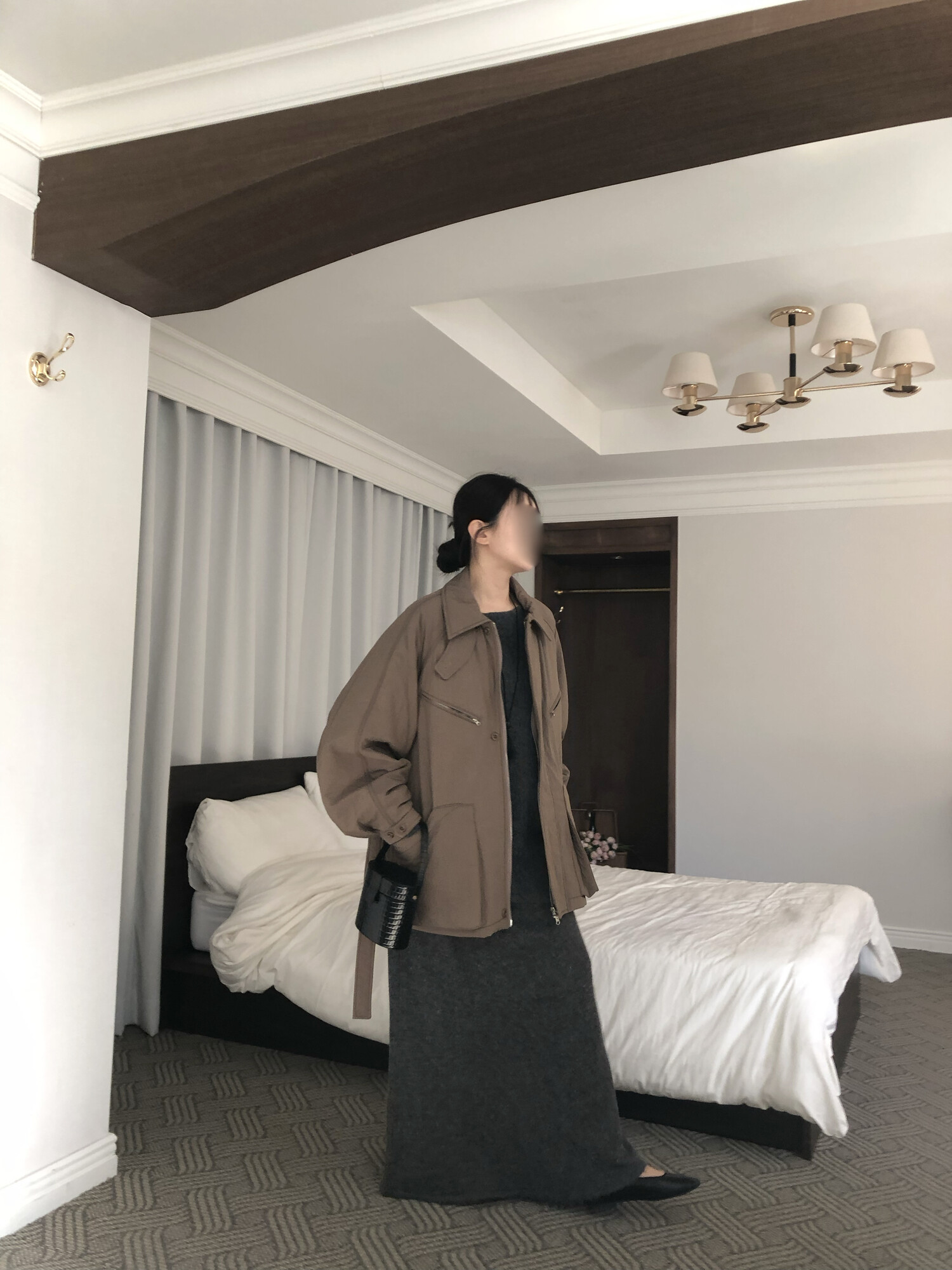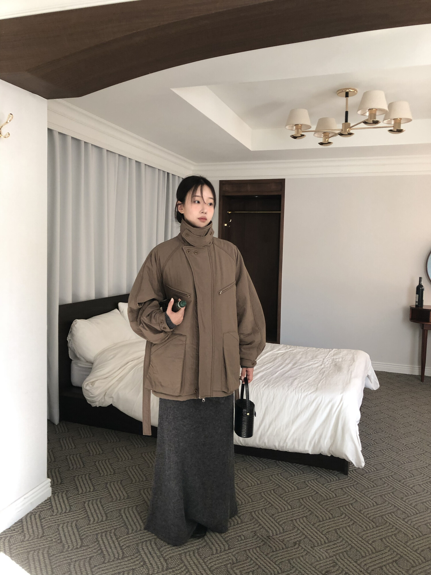 khaki brown 착용-붉은기 없는 차분한 카키빛 브라운컬러입니다.