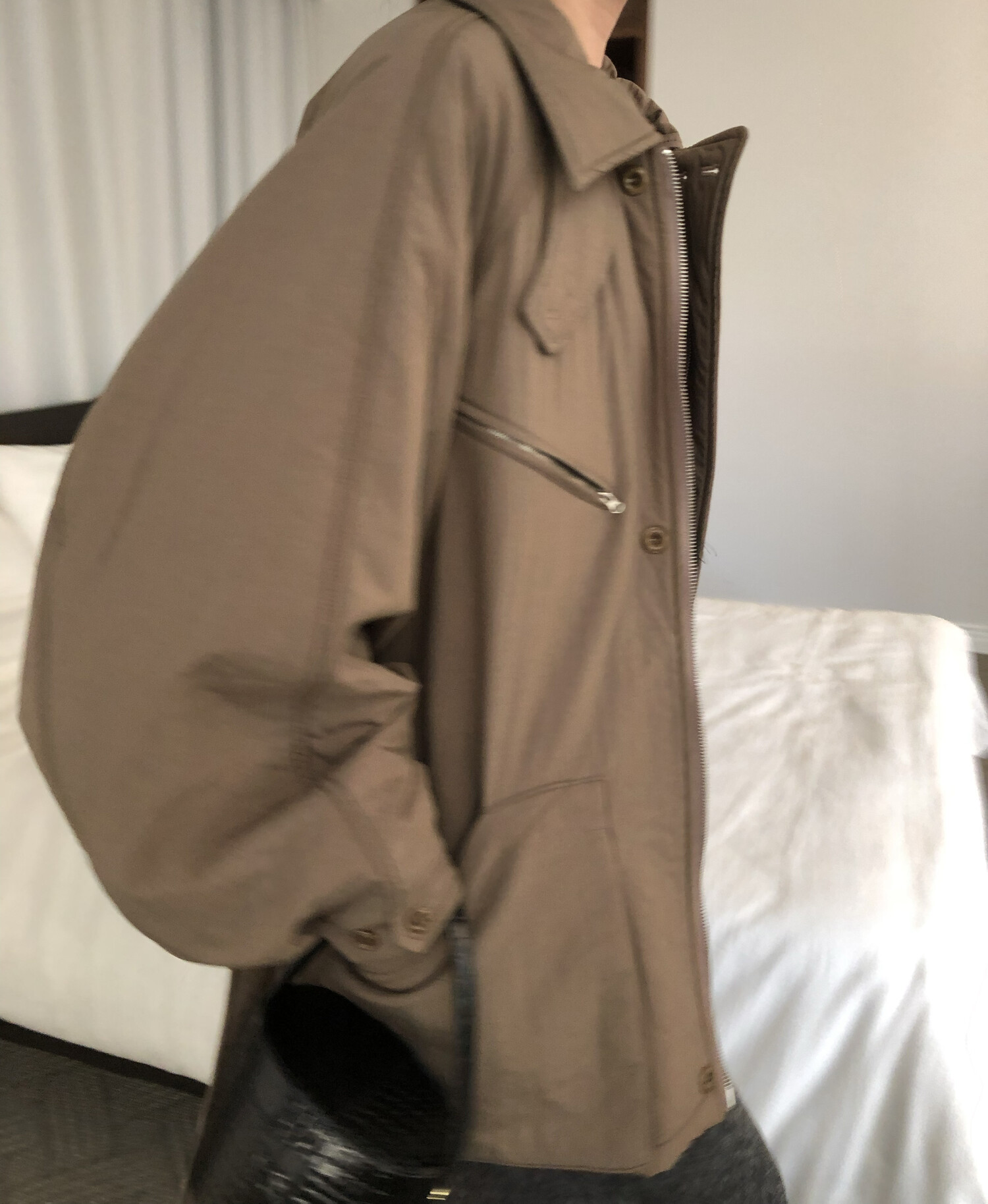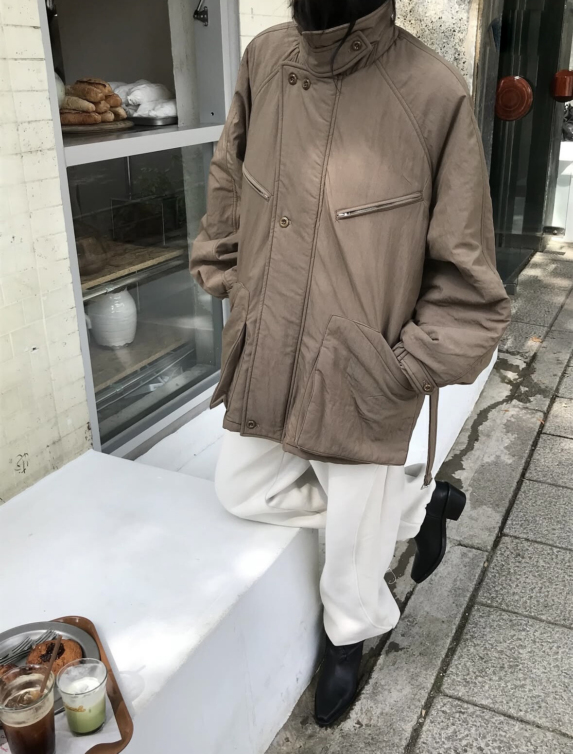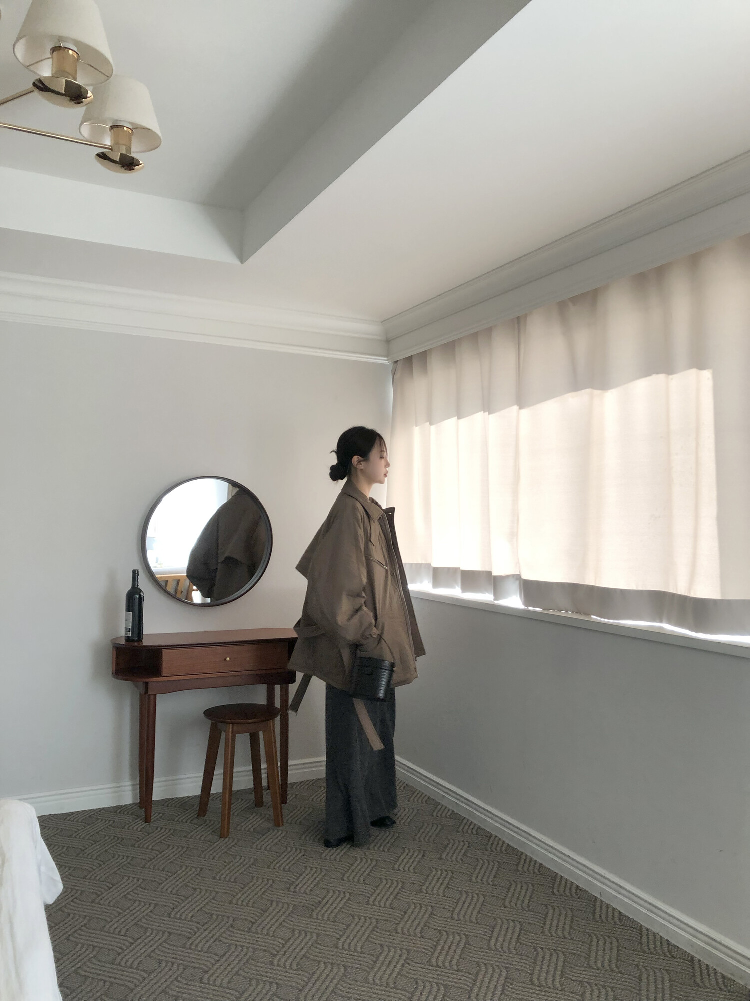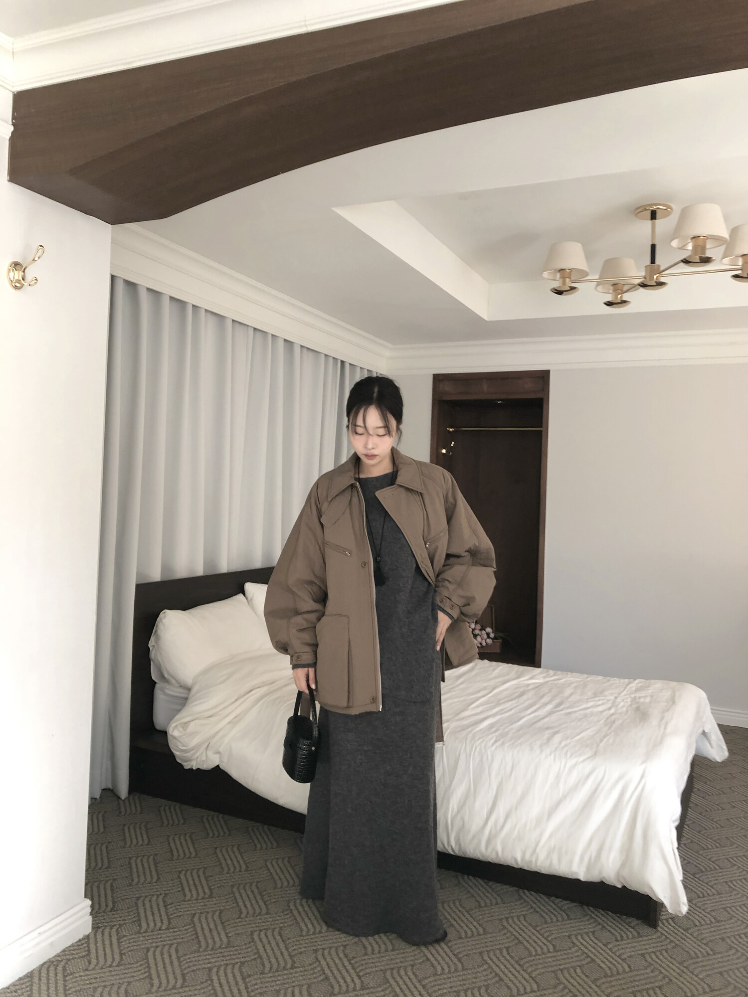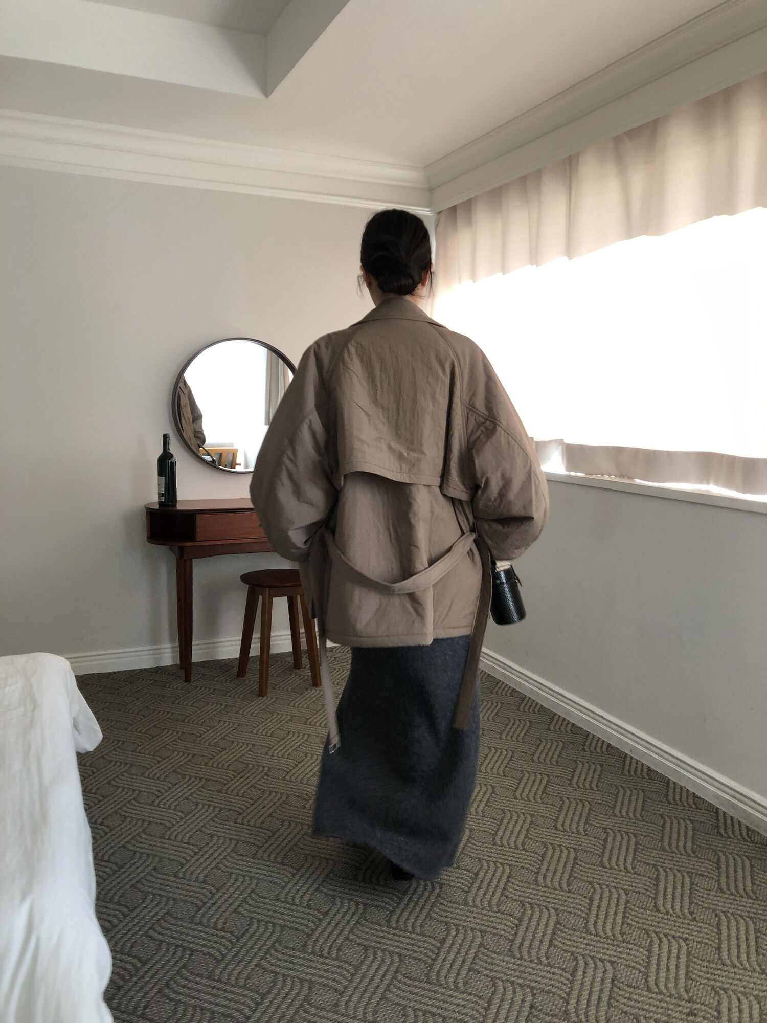 khaki brown 착용-붉은기 없는 차분한 카키빛 브라운컬러입니다.
