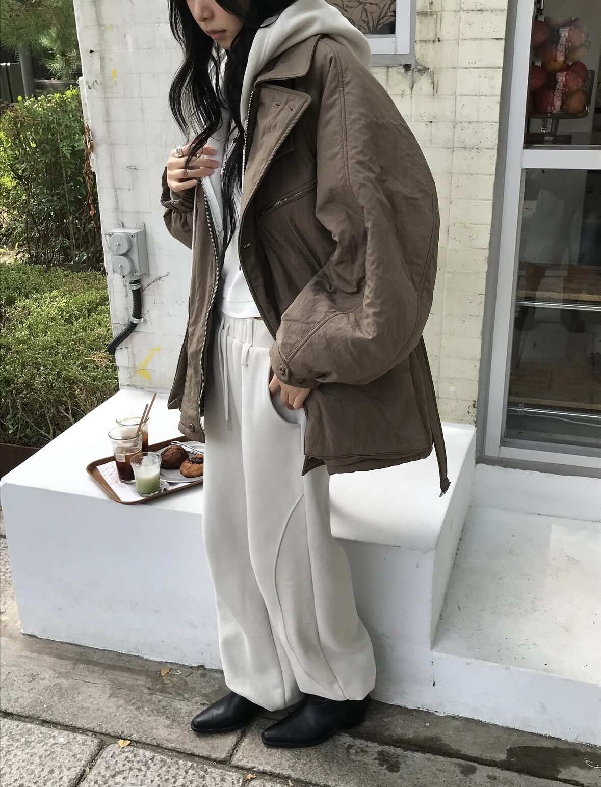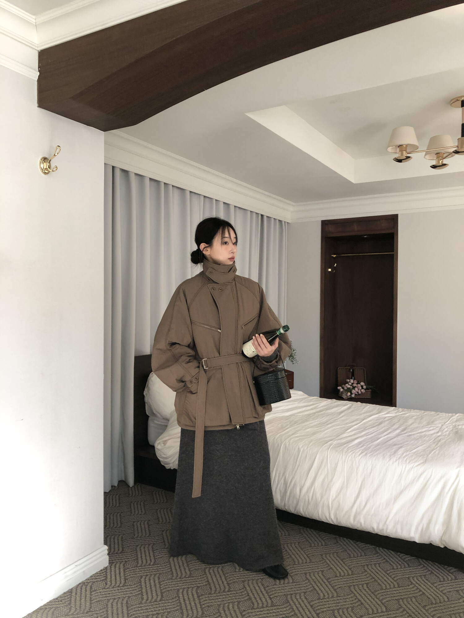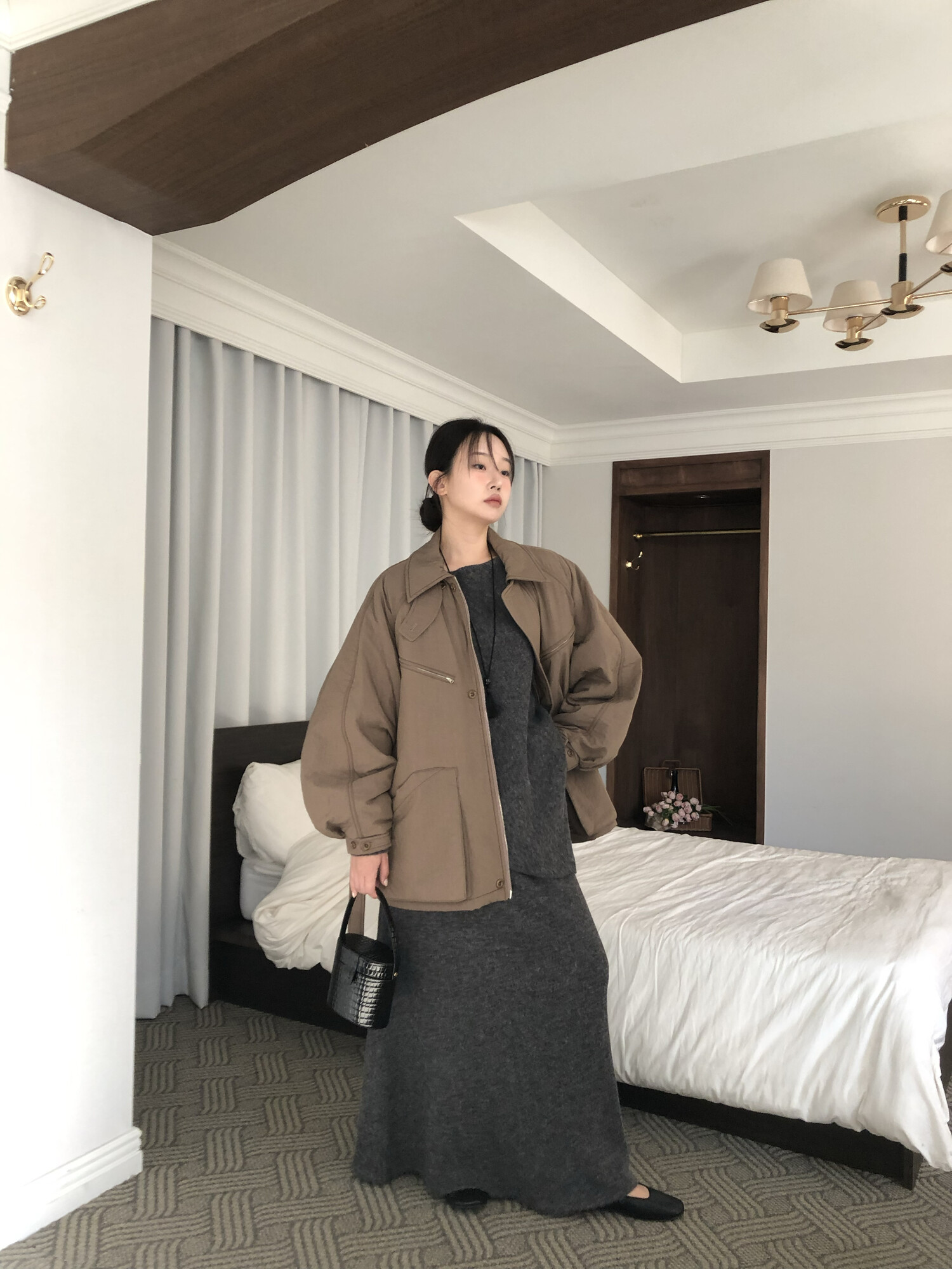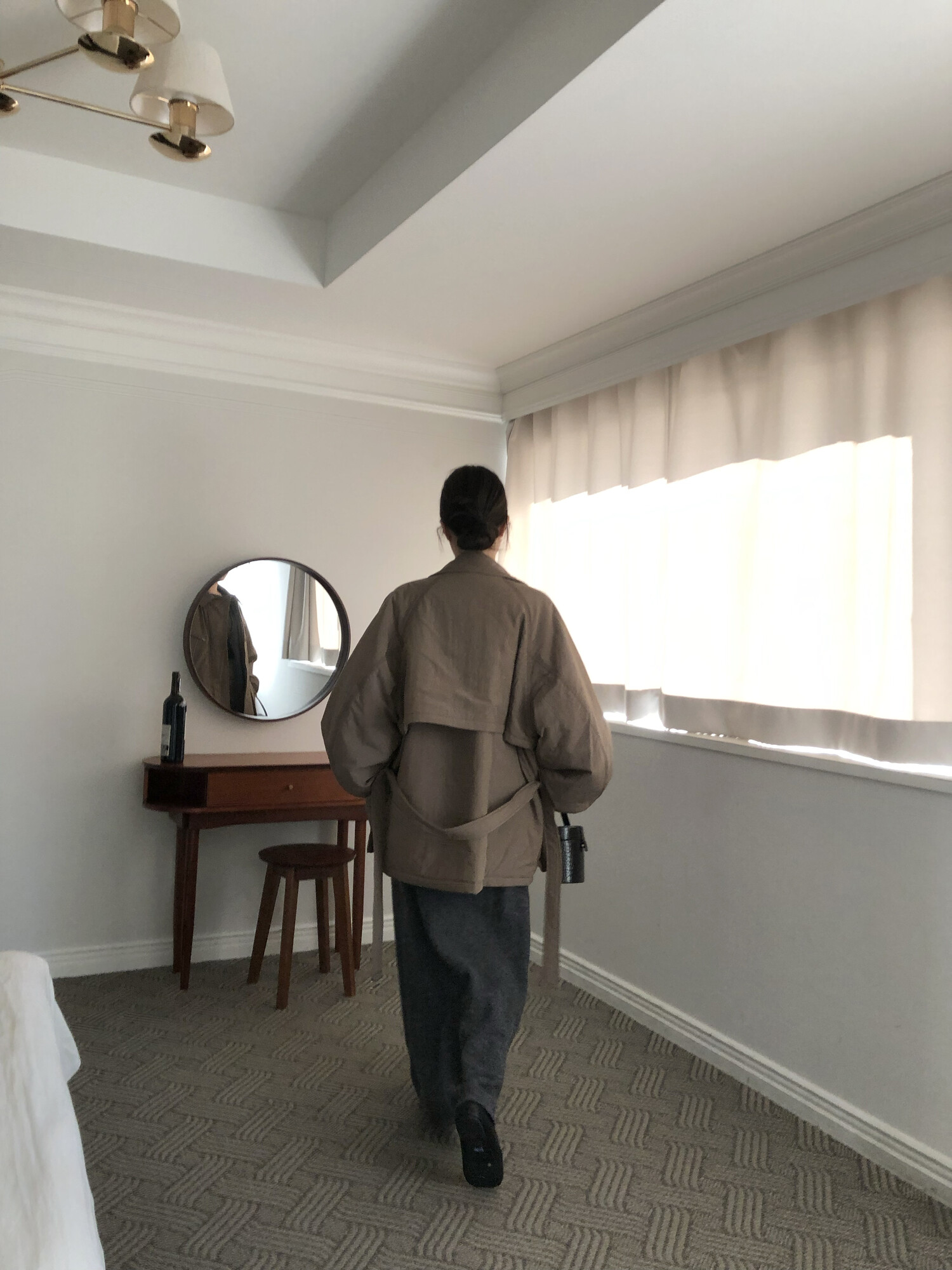 khaki brown 착용-붉은기 없는 차분한 카키빛 브라운컬러입니다.