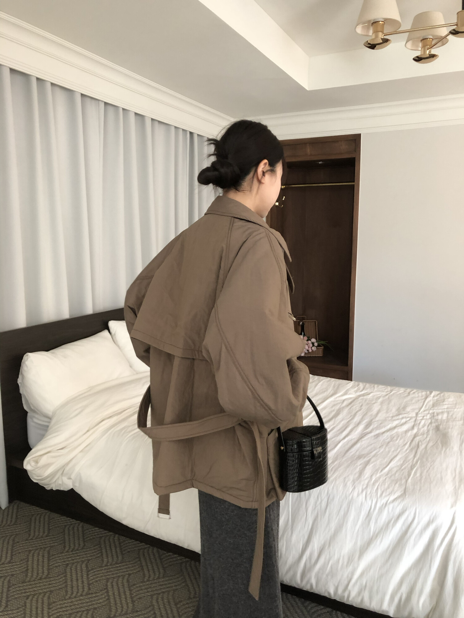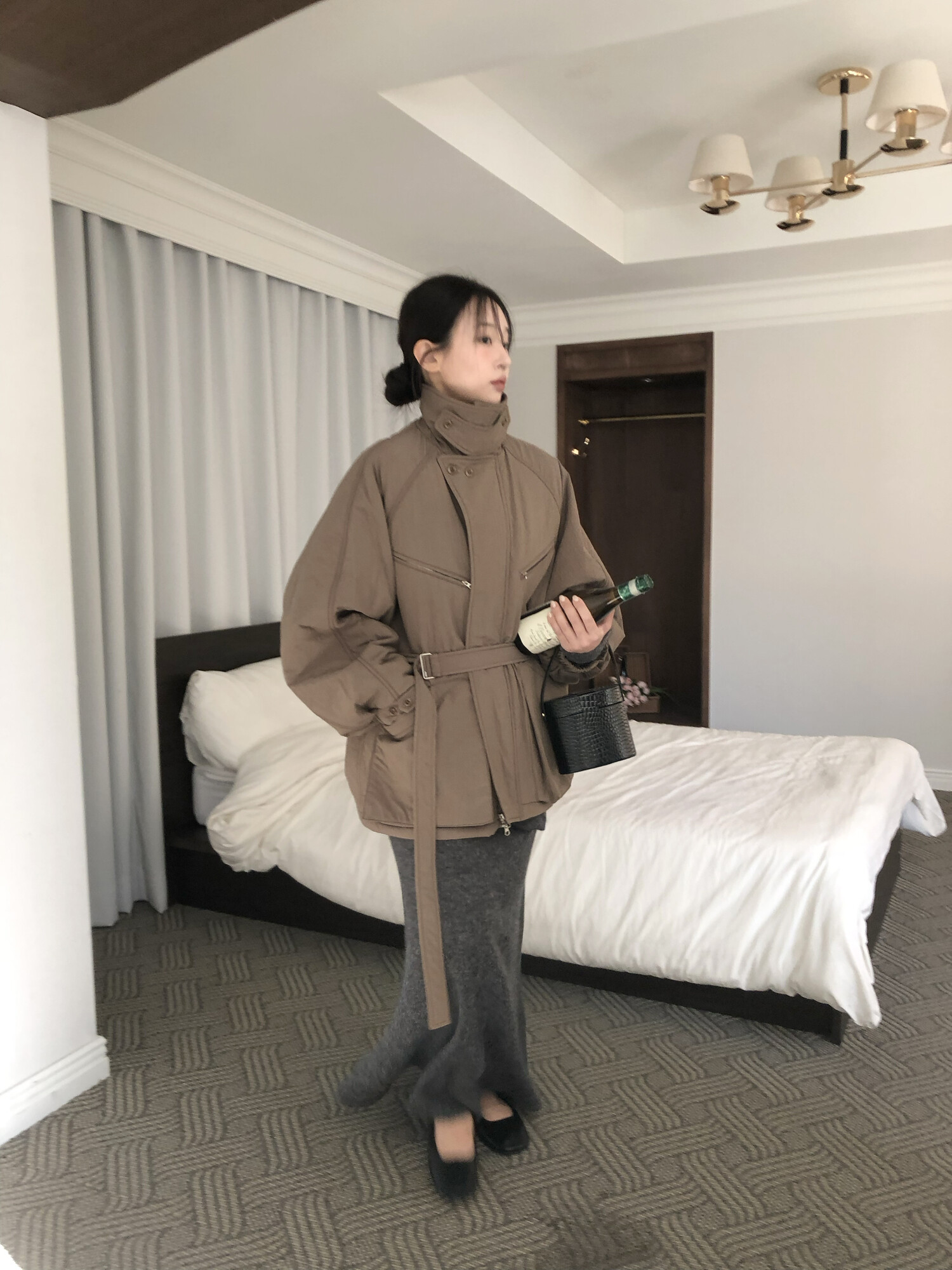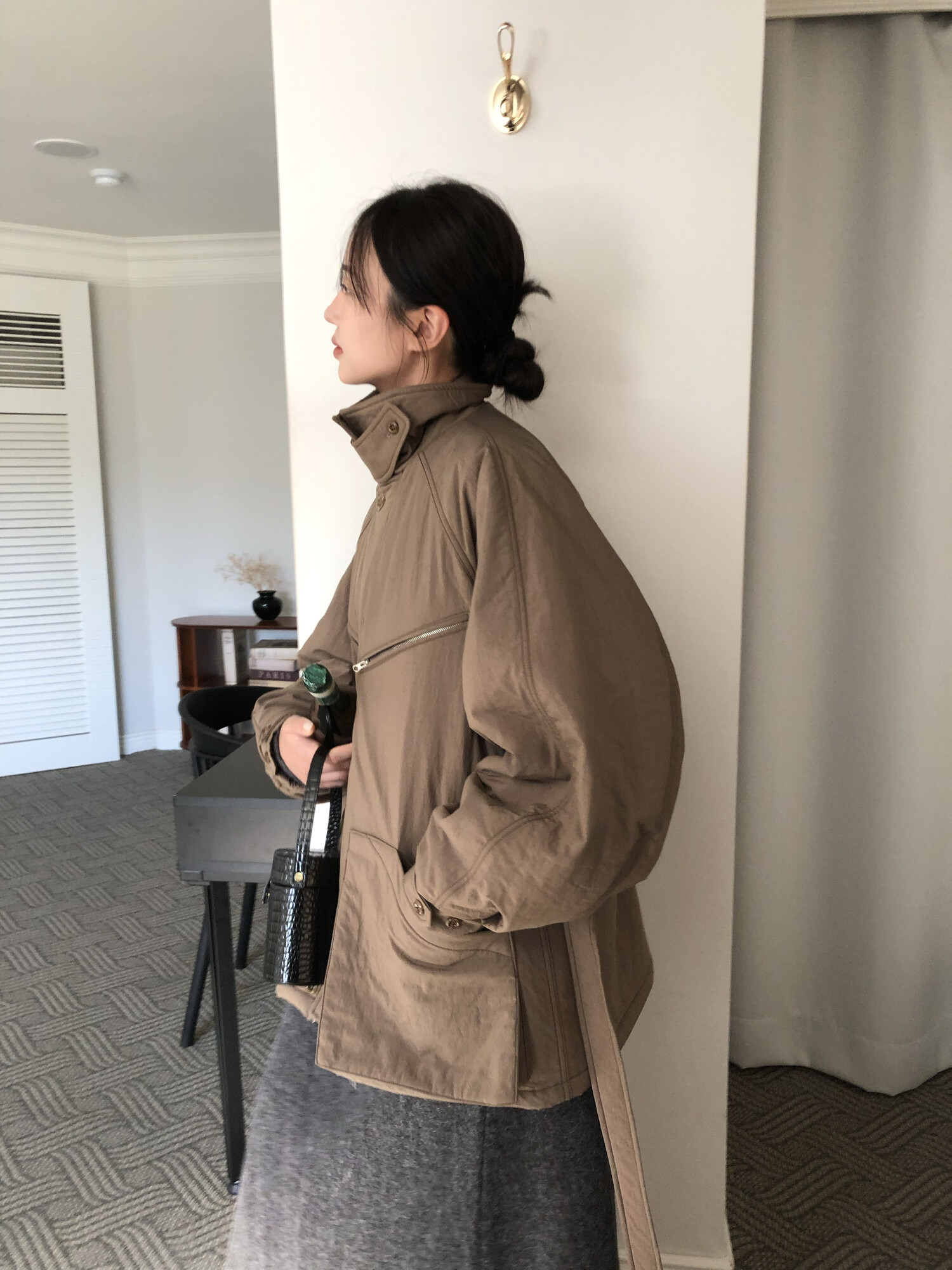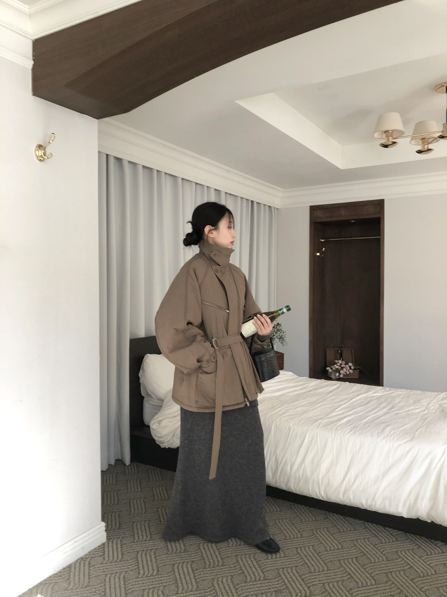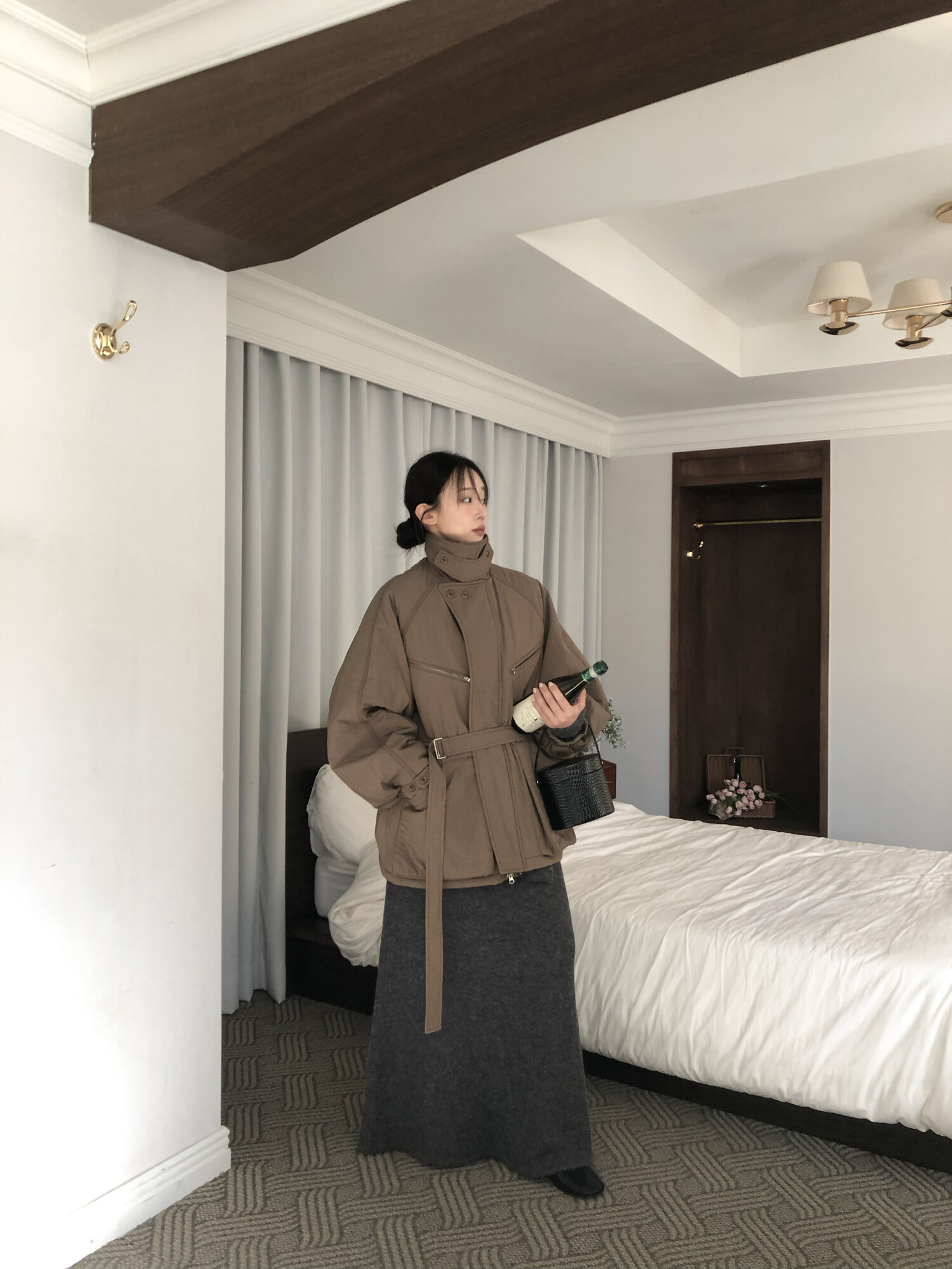 khaki brown 착용-붉은기 없는 차분한 카키빛 브라운컬러입니다.
