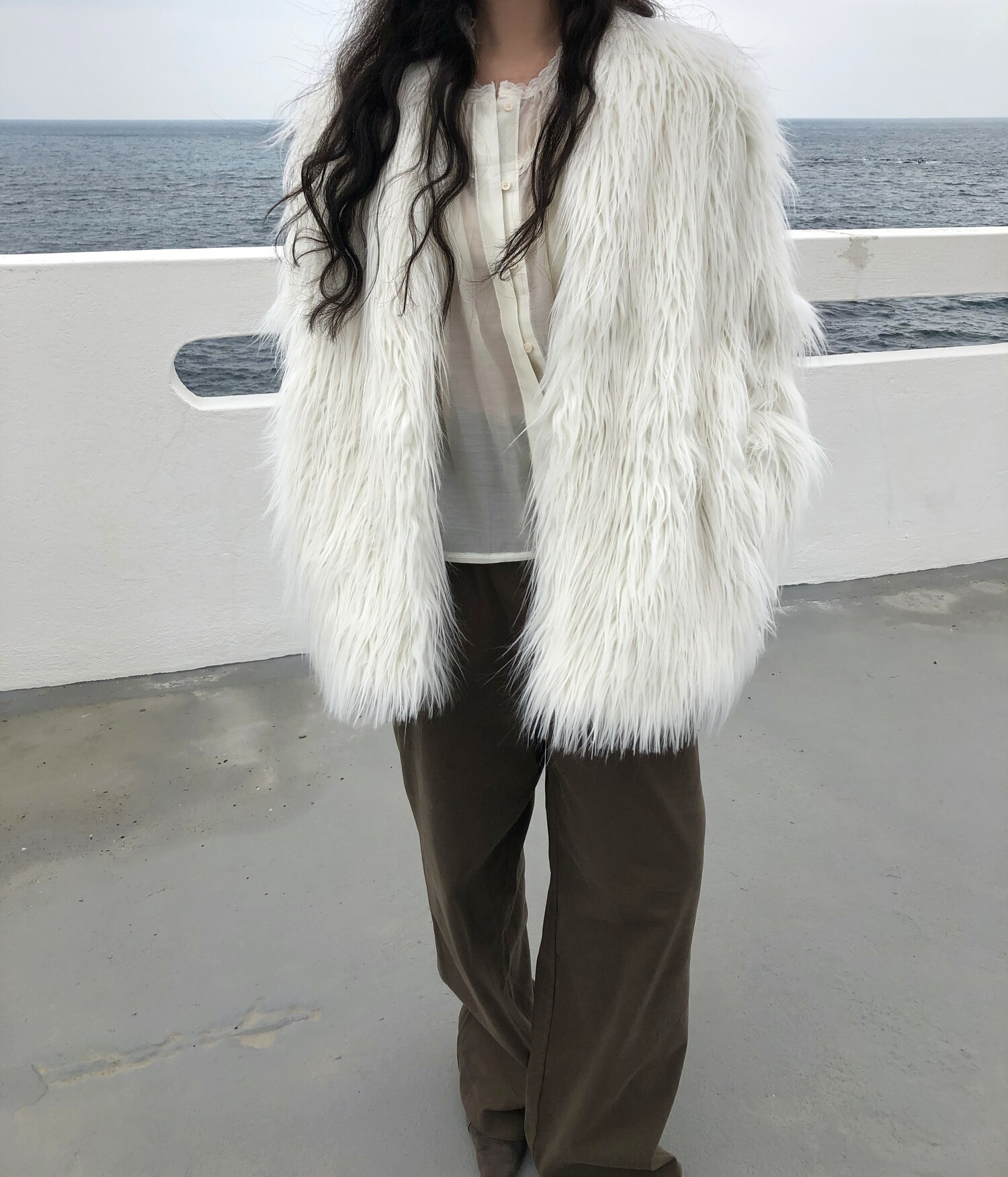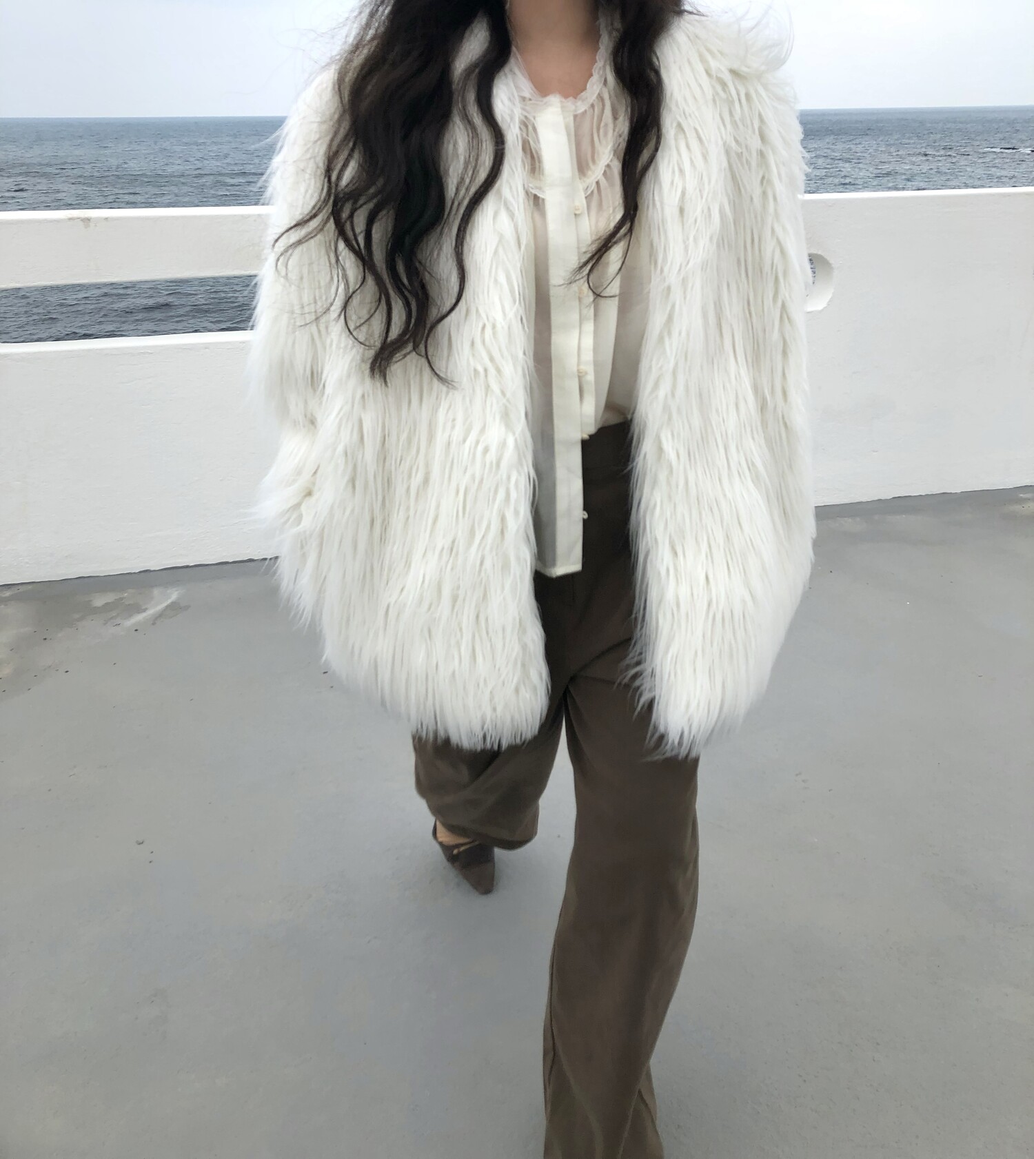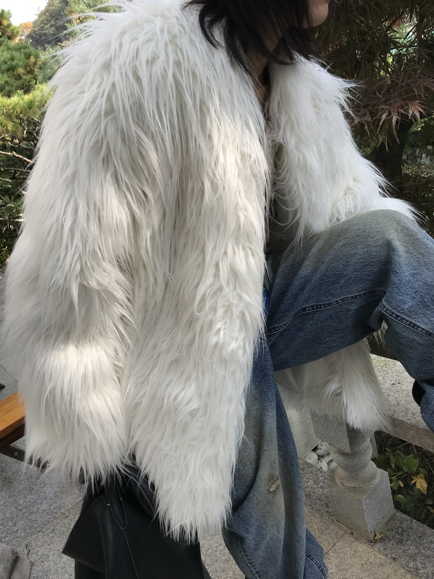 뽀얀 아이보리 컬러 퍼재킷은 겨울에 하나쯤 꼭 소장해야할 머스트템이죠🤍