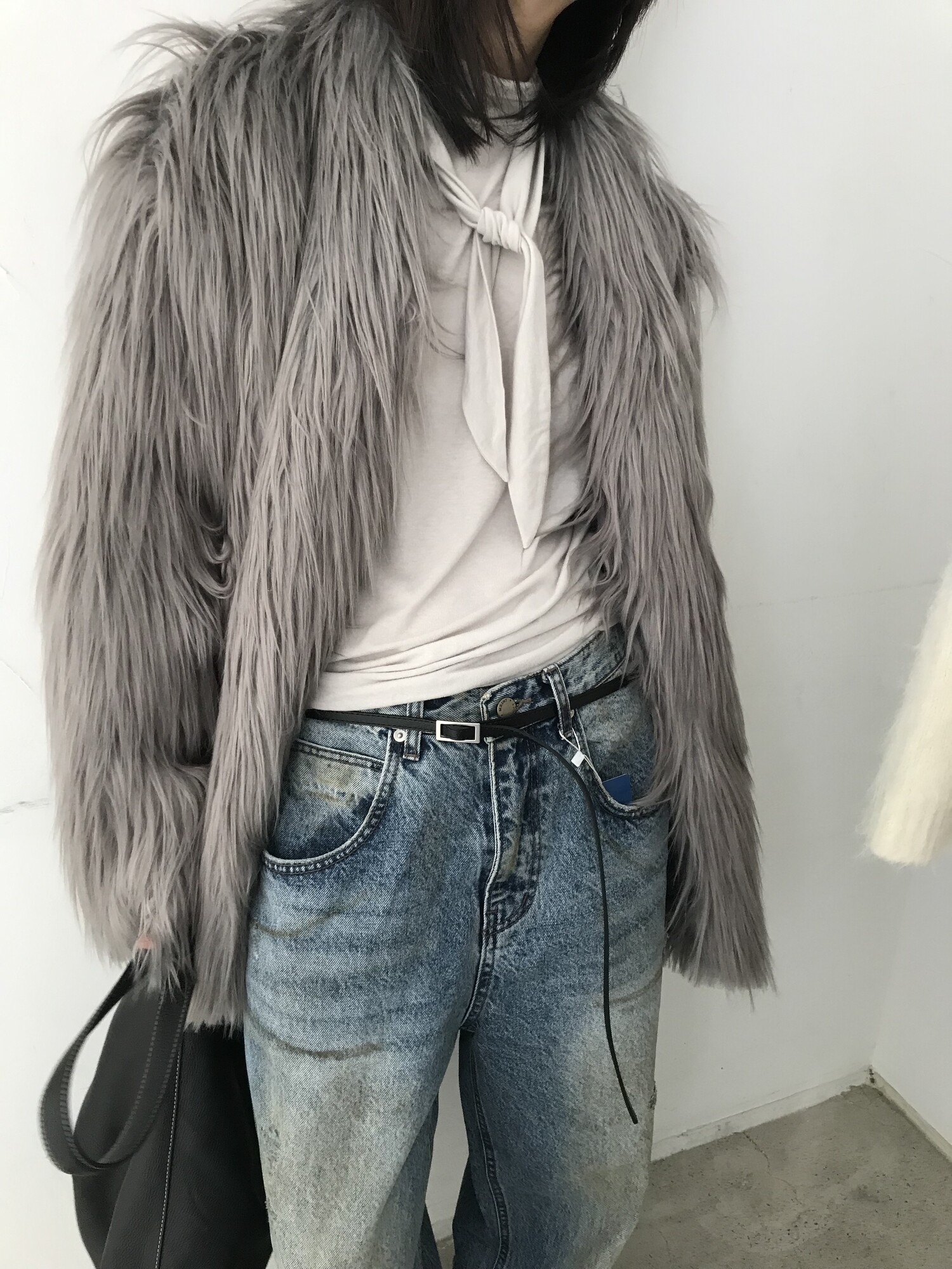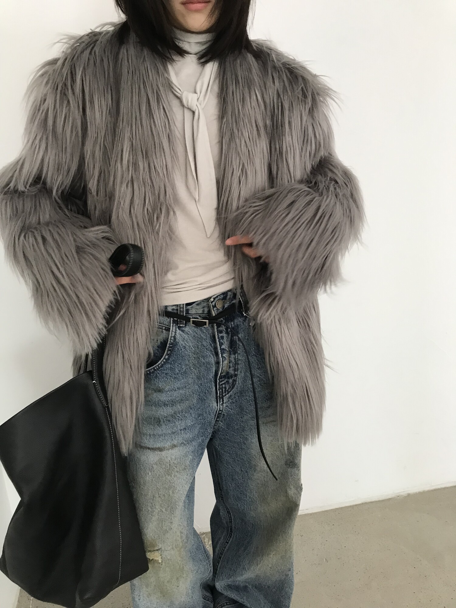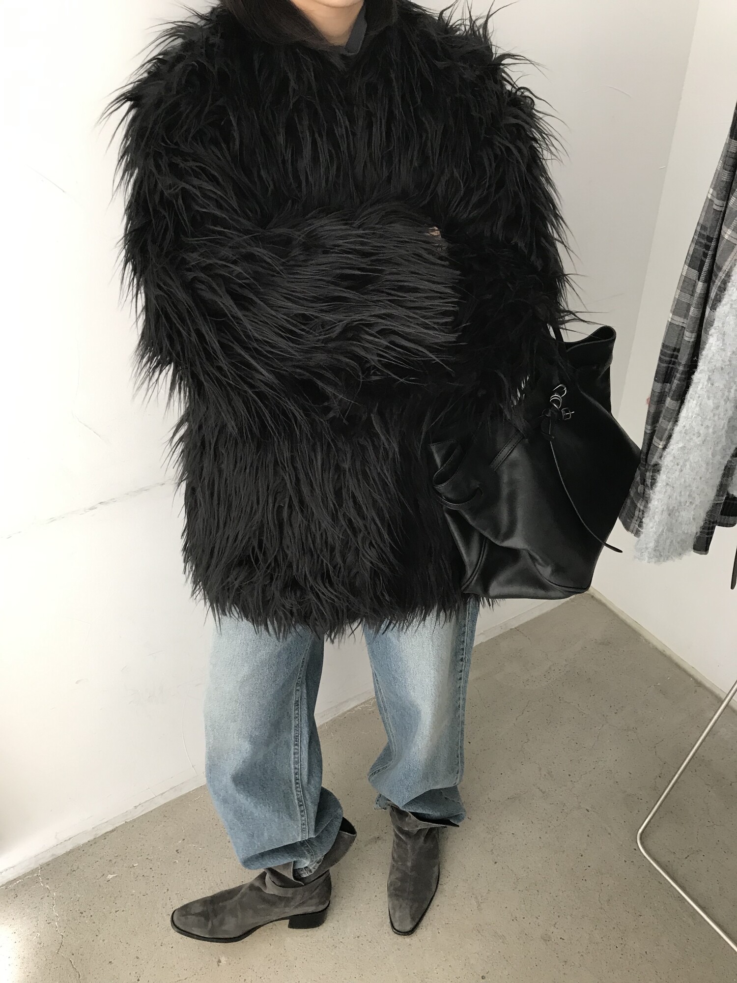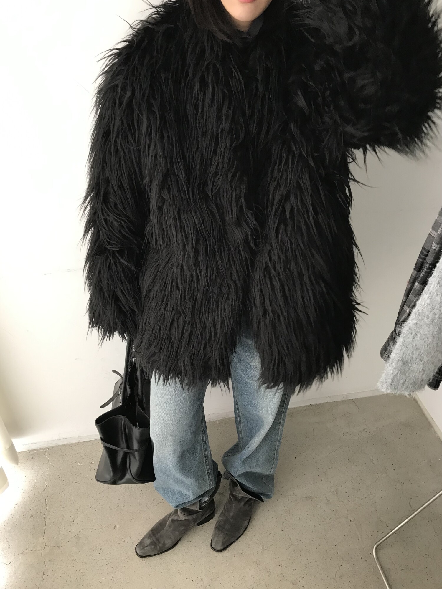 -부들부들한 장모퍼 재킷으로 클래식하면서도 고급스런 무드를 연출해주는 윈터 아우터입니다.
