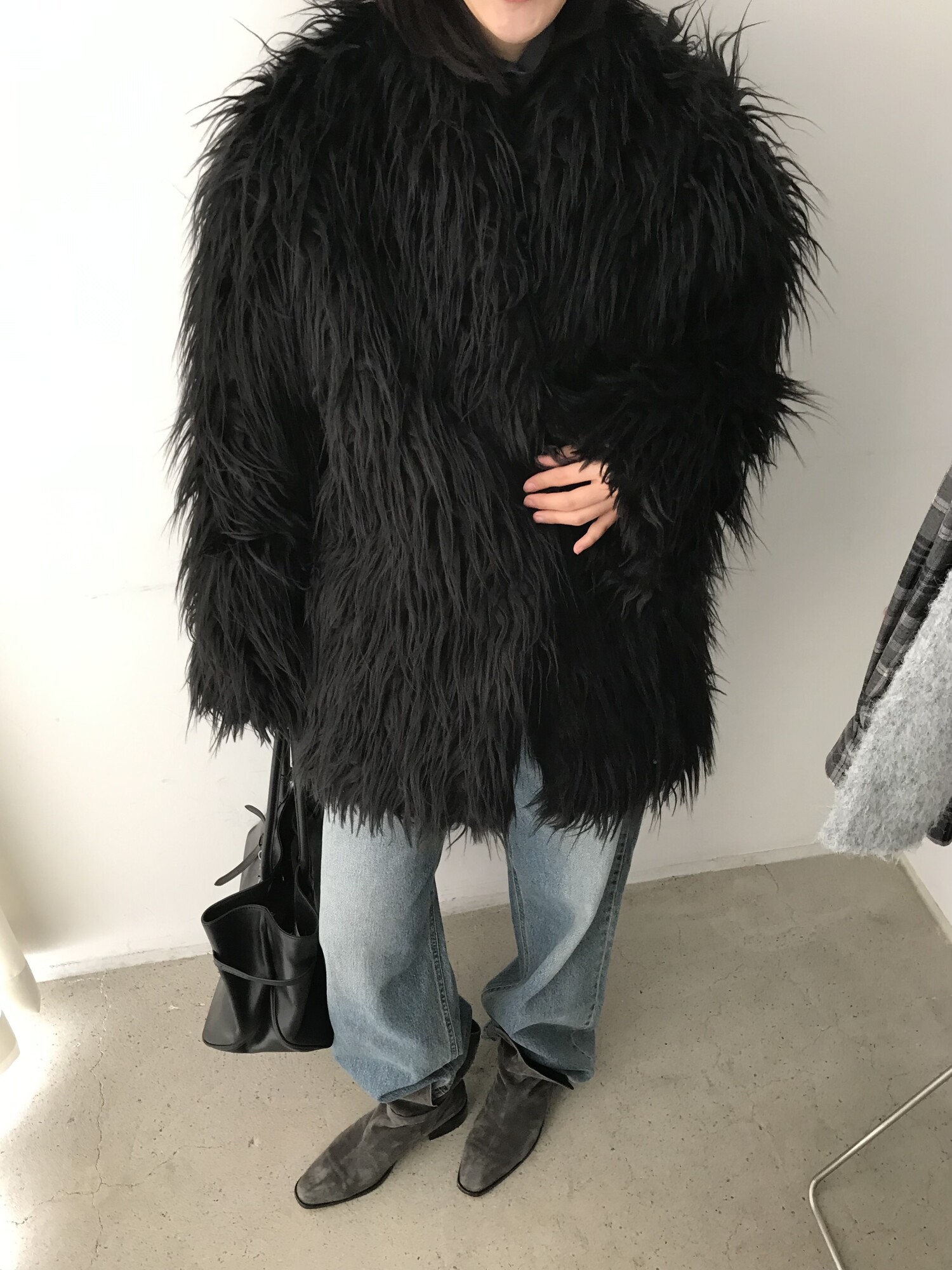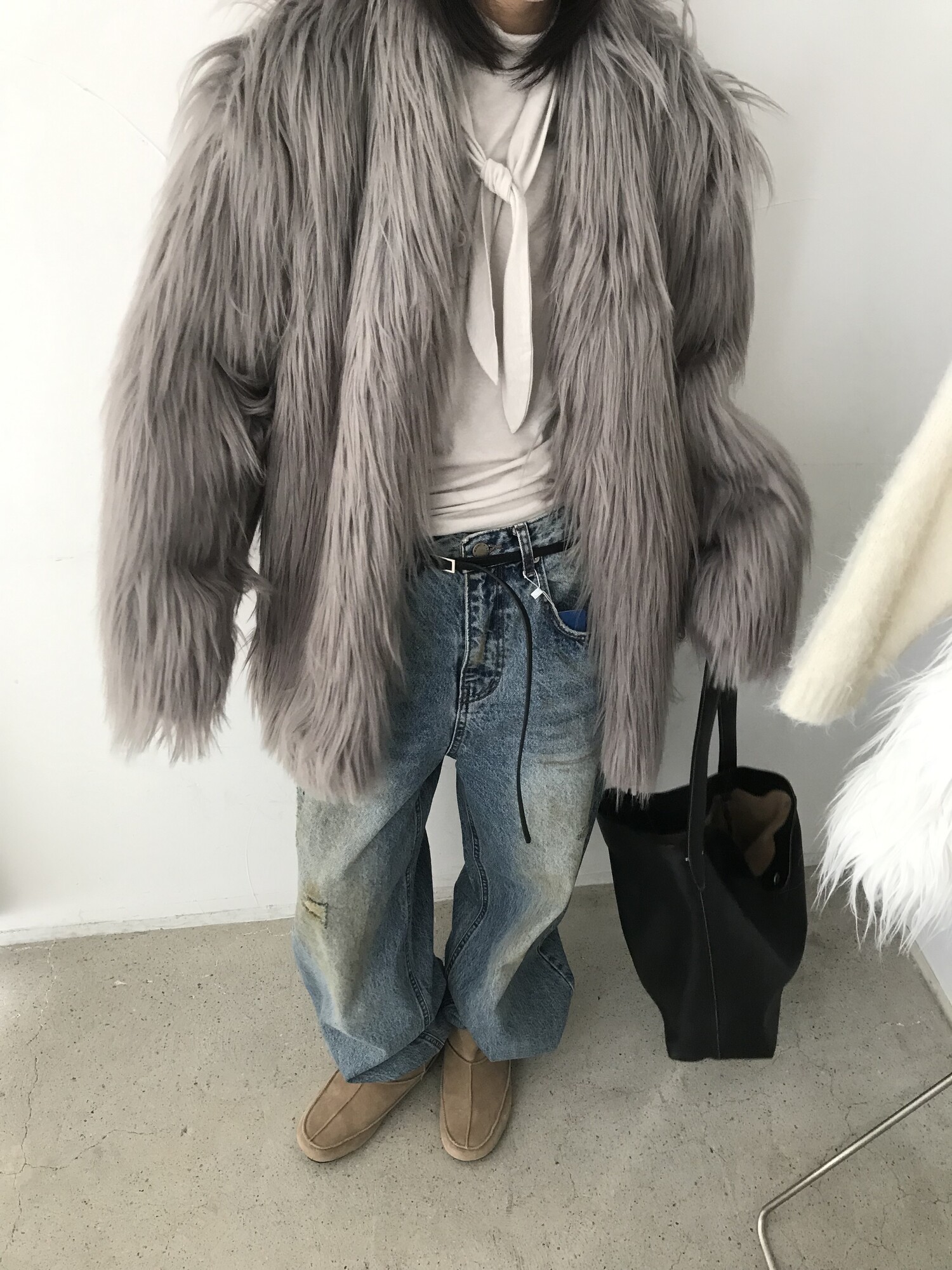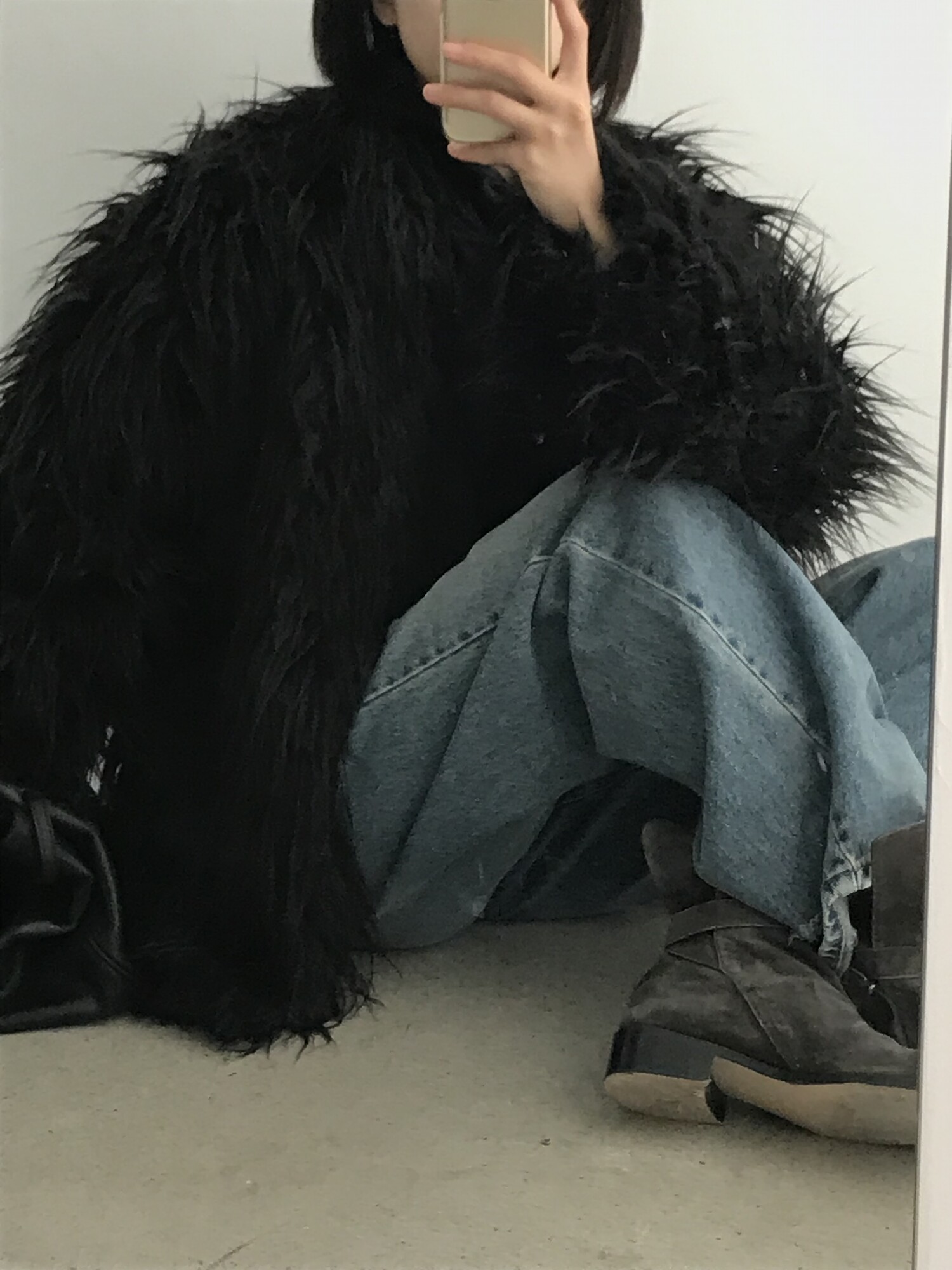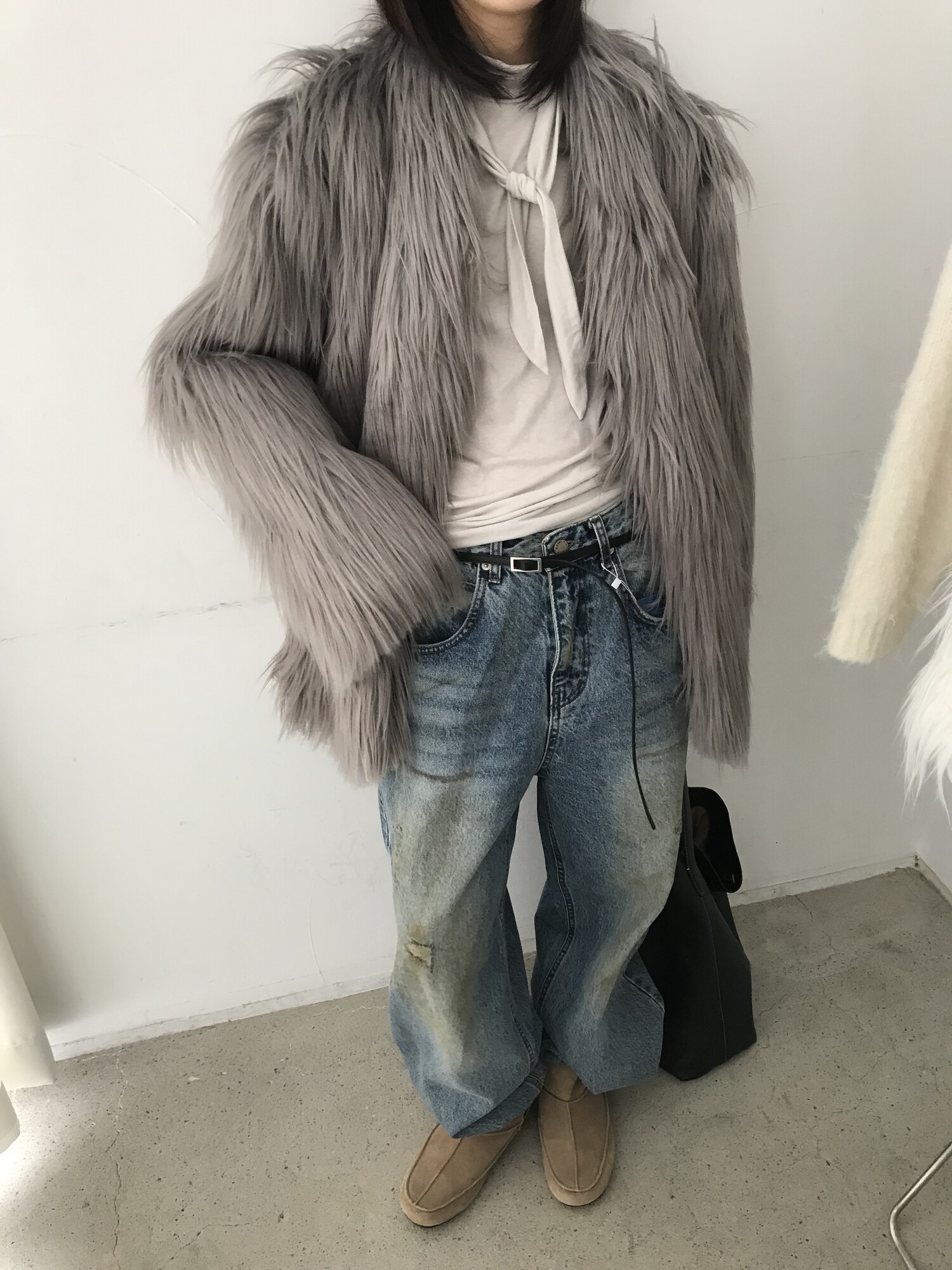 -부들부들한 장모퍼 재킷으로 클래식하면서도 고급스런 무드를 연출해주는 윈터 아우터입니다.