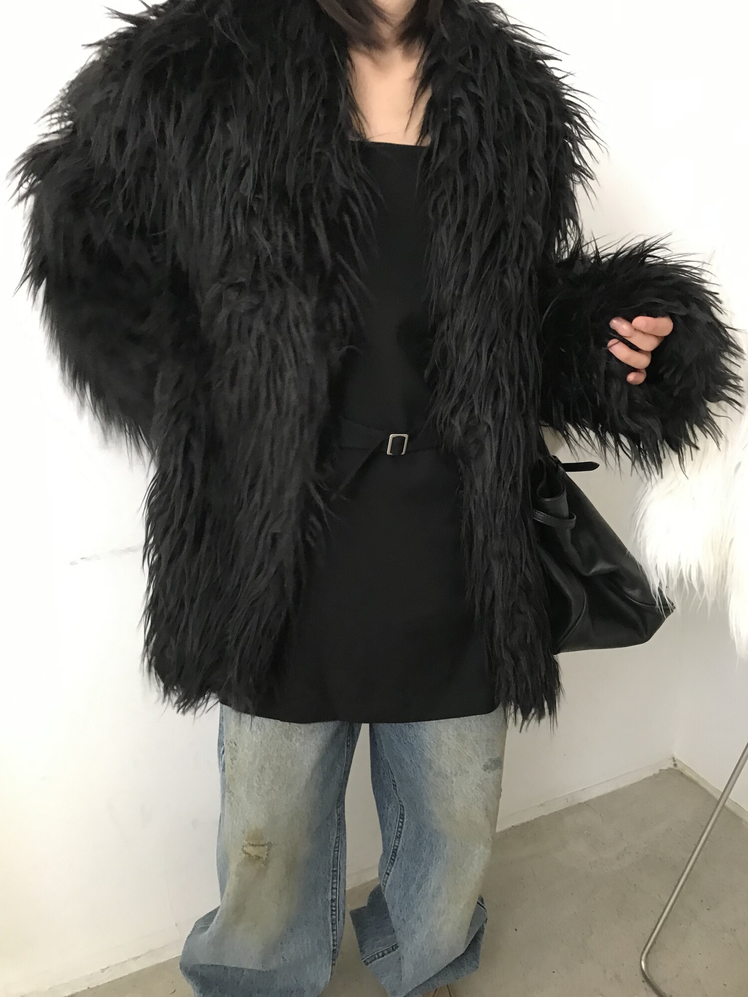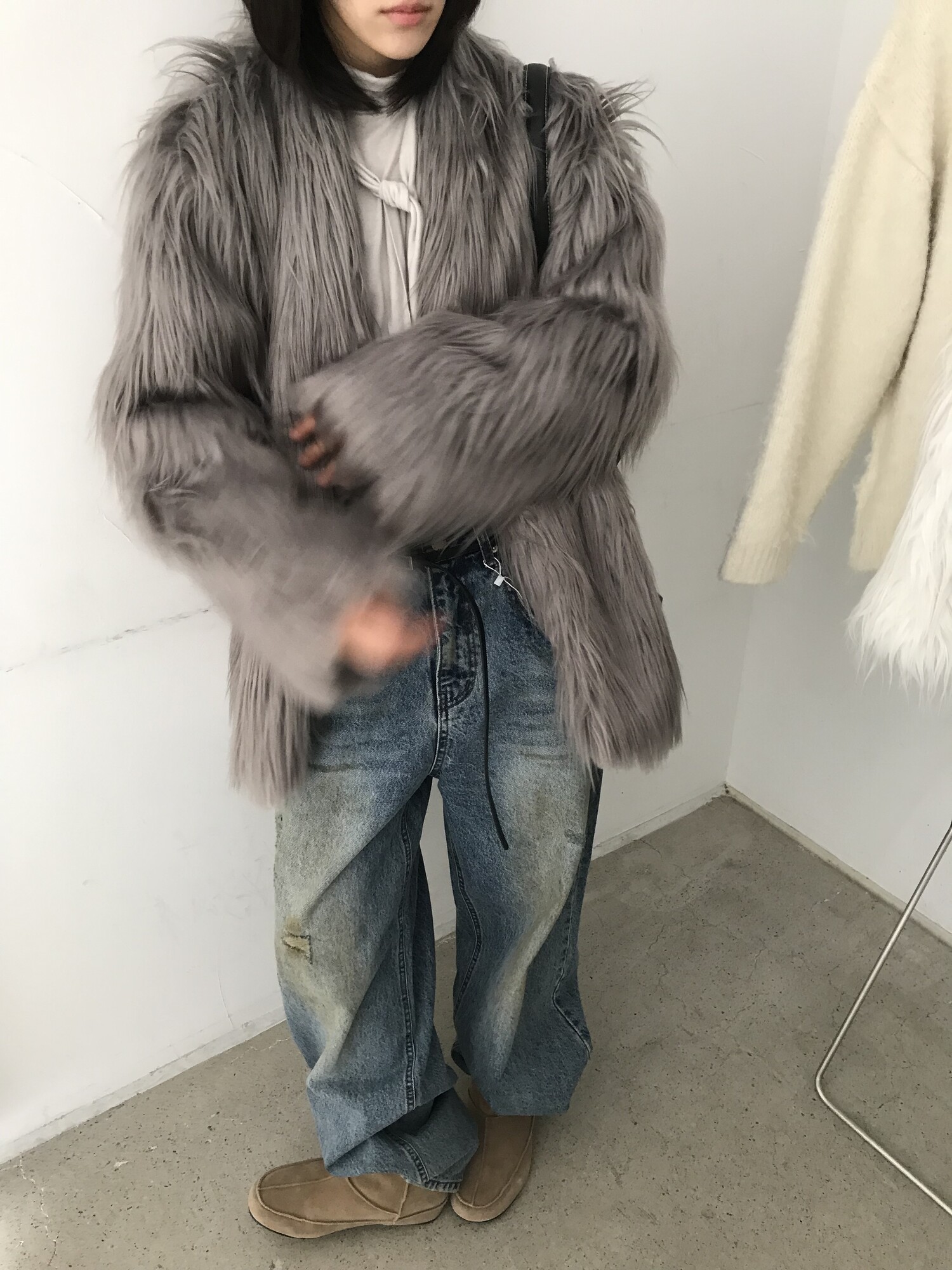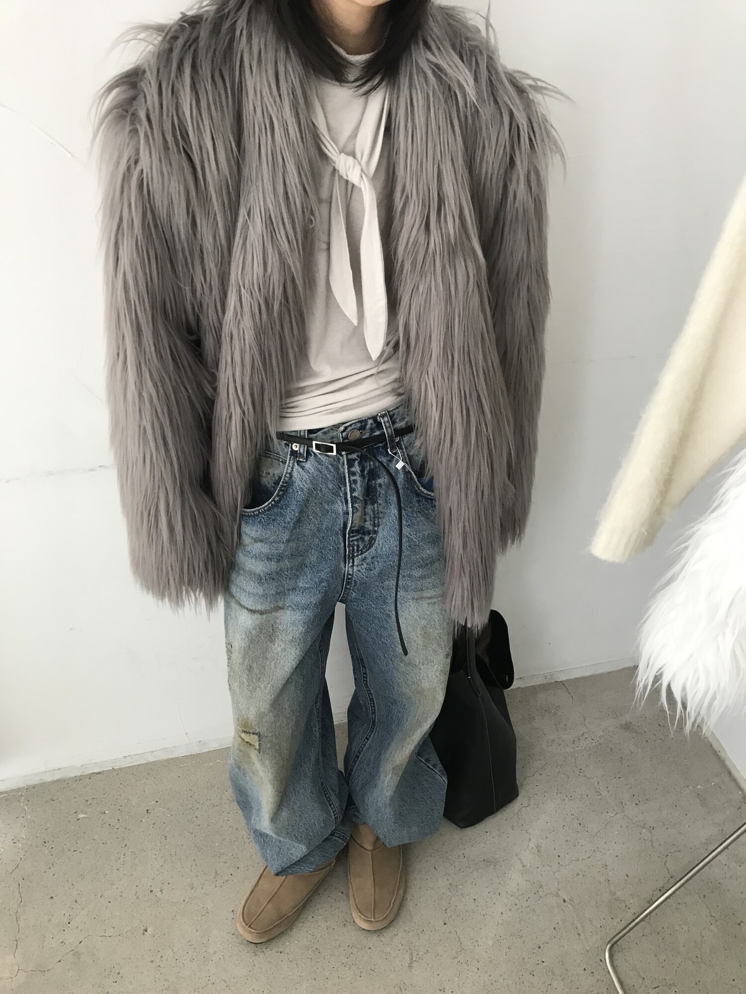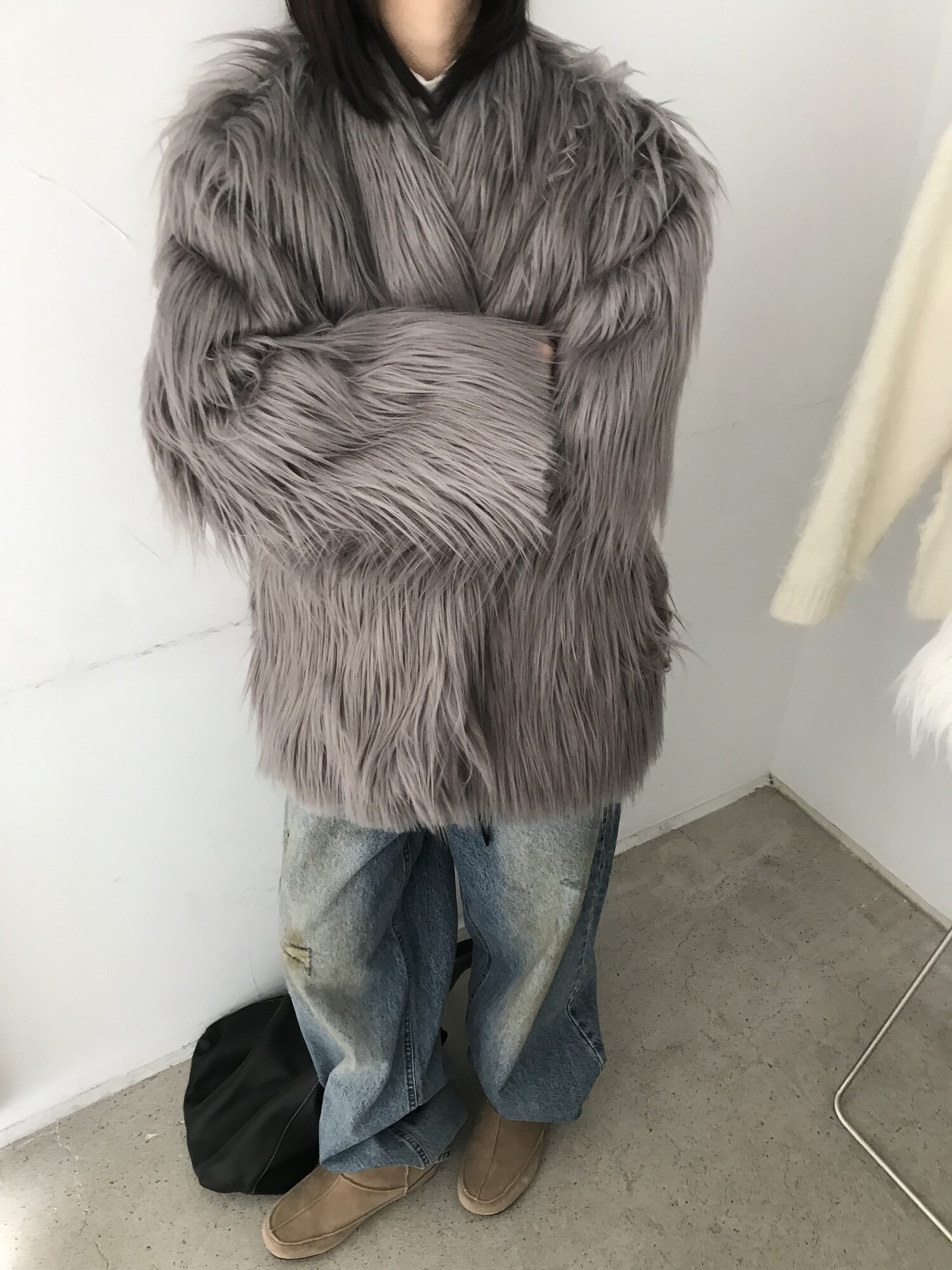 -부들부들한 장모퍼 재킷으로 클래식하면서도 고급스런 무드를 연출해주는 윈터 아우터입니다.