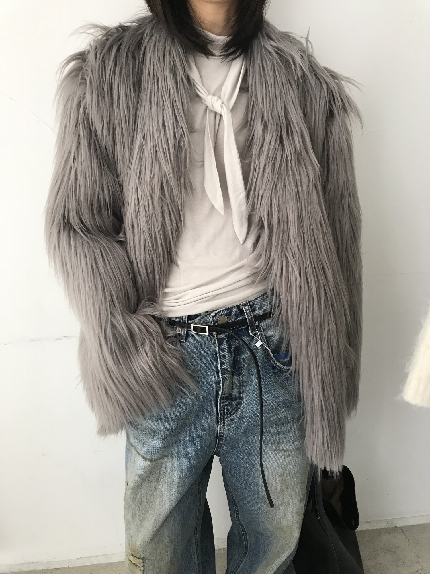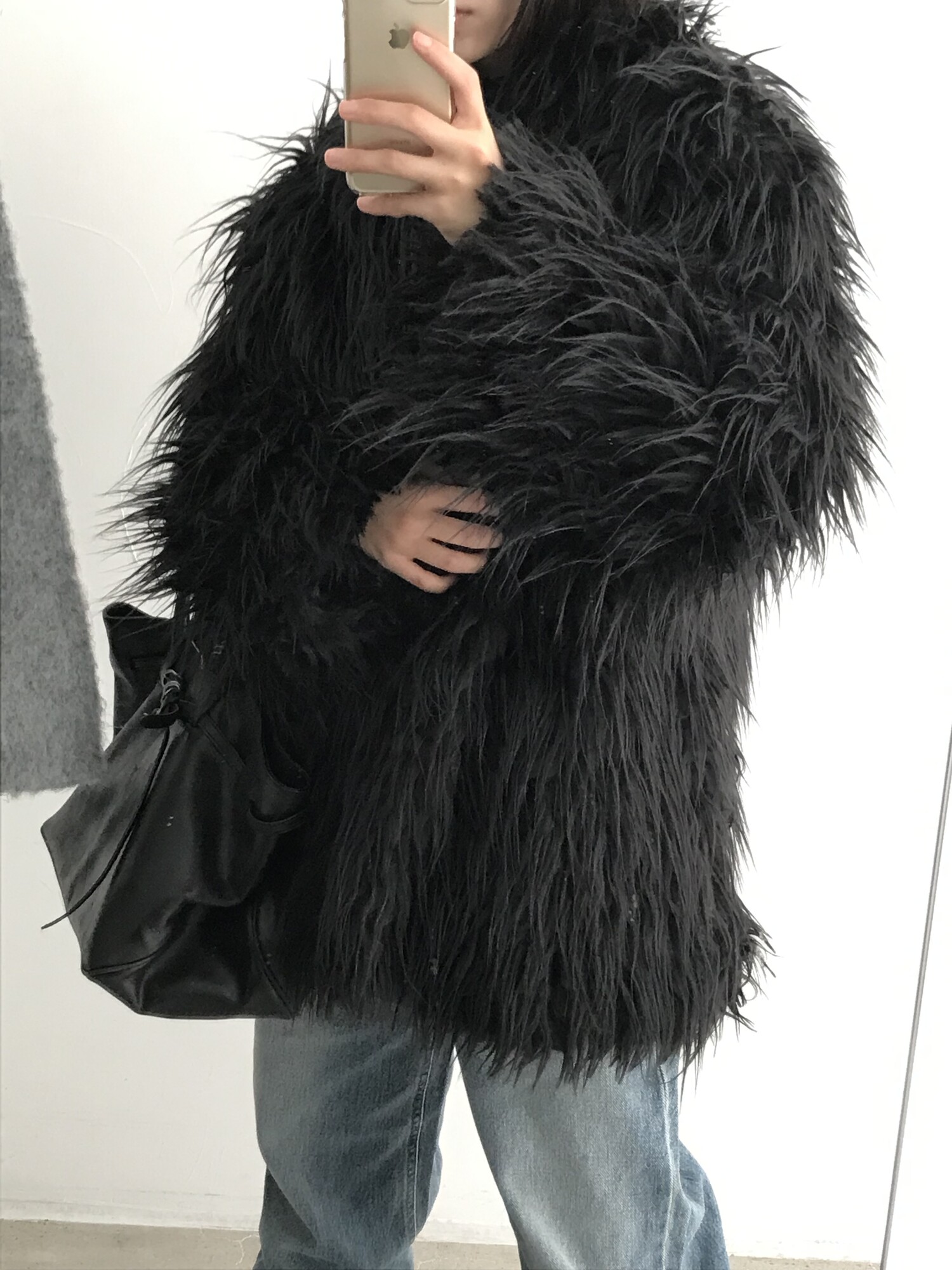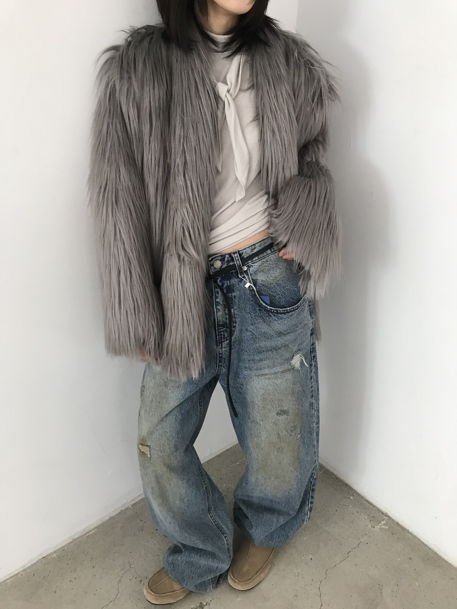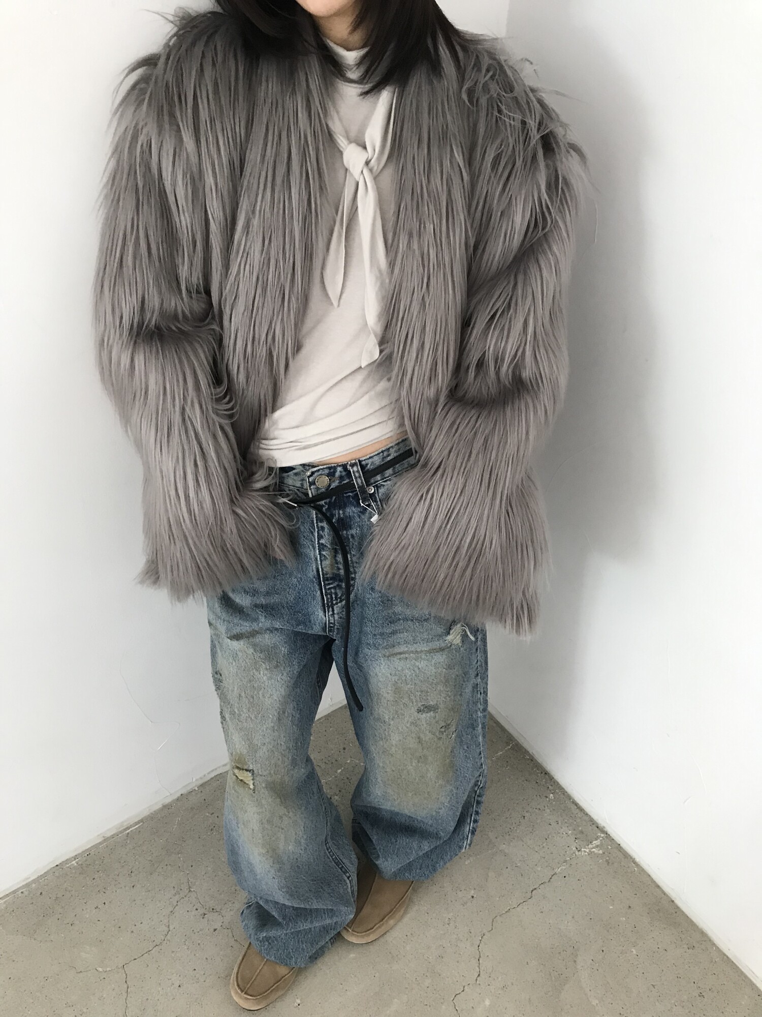 -부들부들한 장모퍼 재킷으로 클래식하면서도 고급스런 무드를 연출해주는 윈터 아우터입니다.
