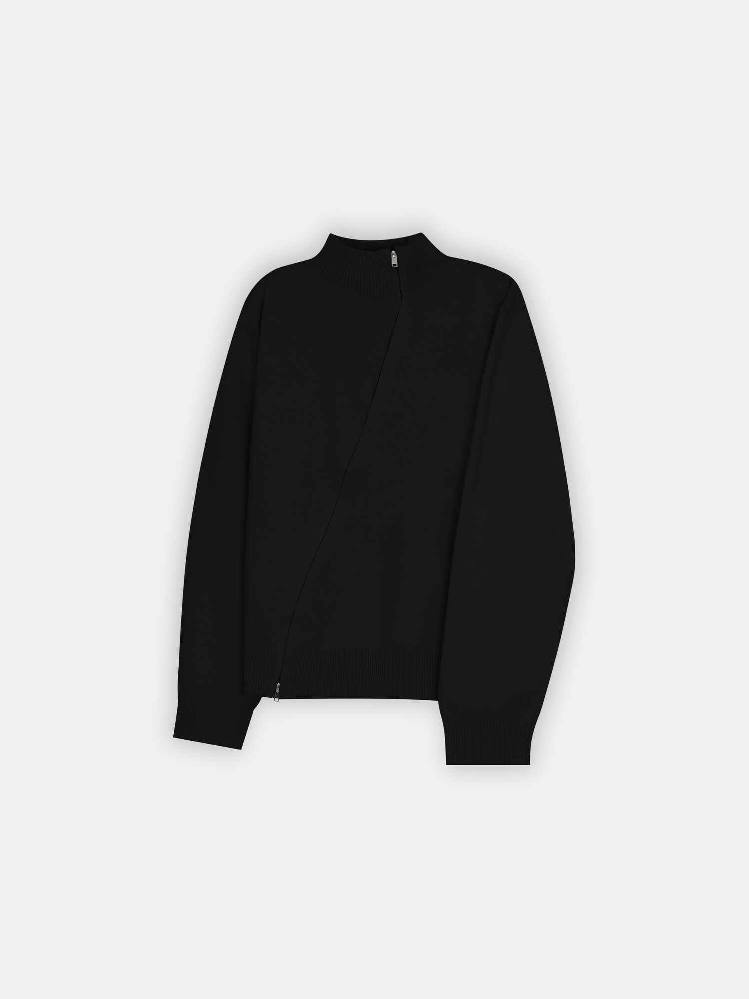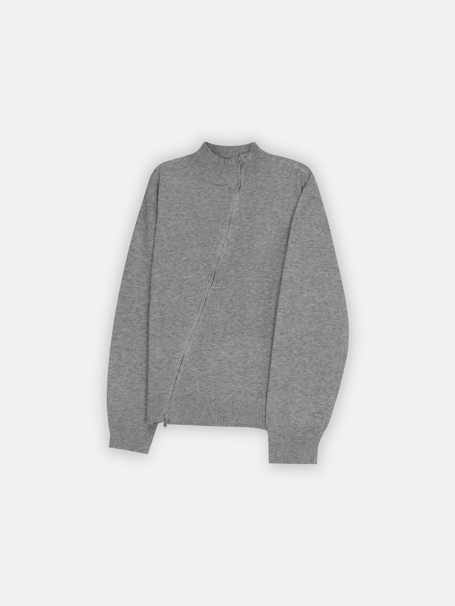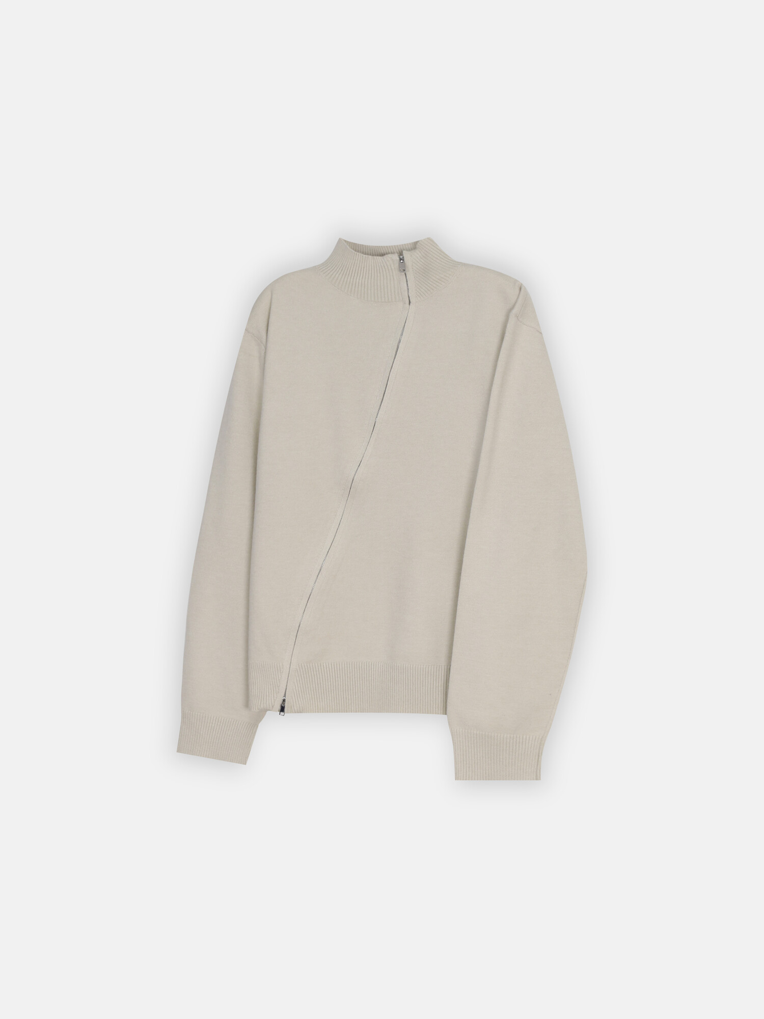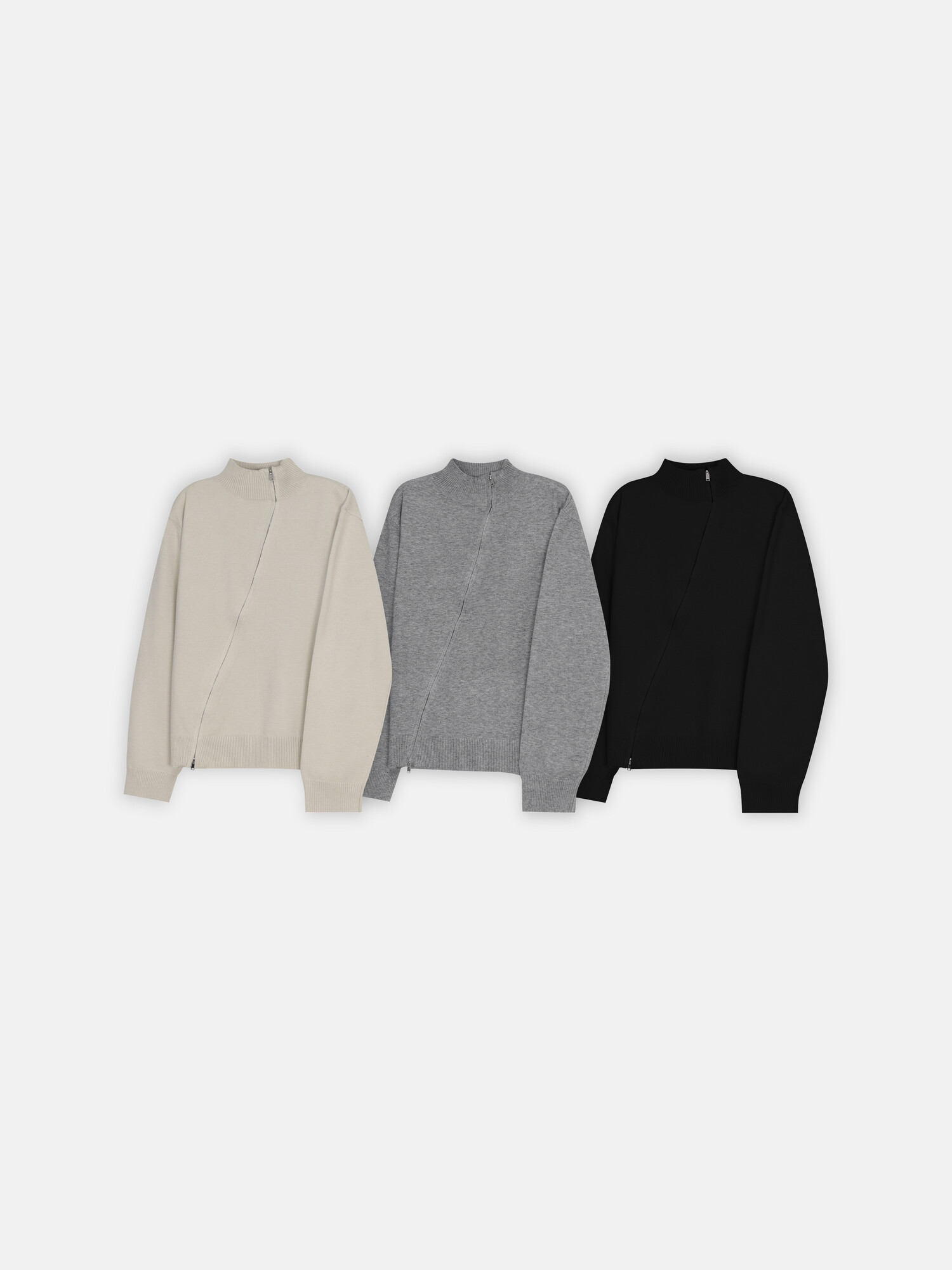 Diagonal loose fit zip-up knit-3color