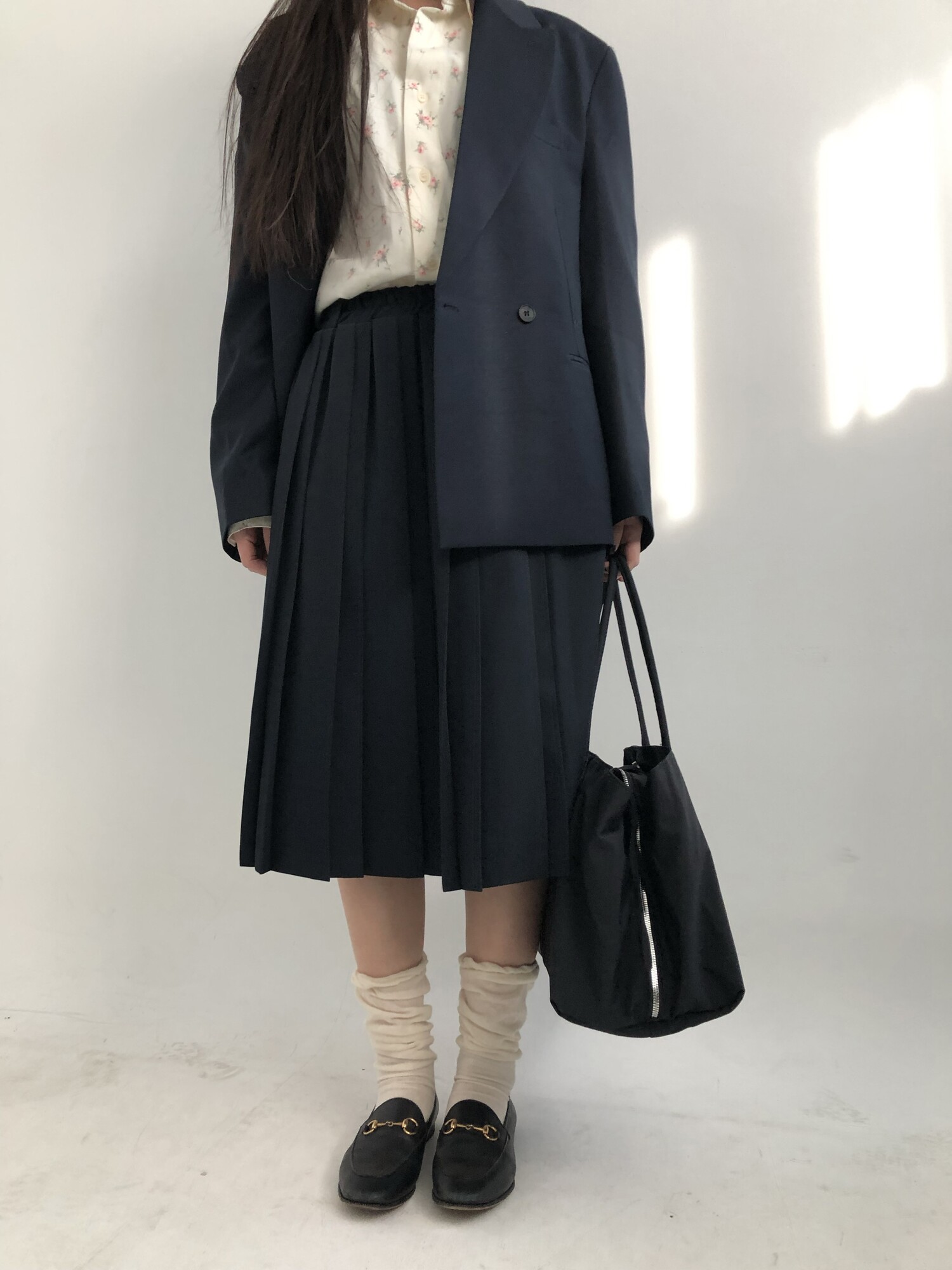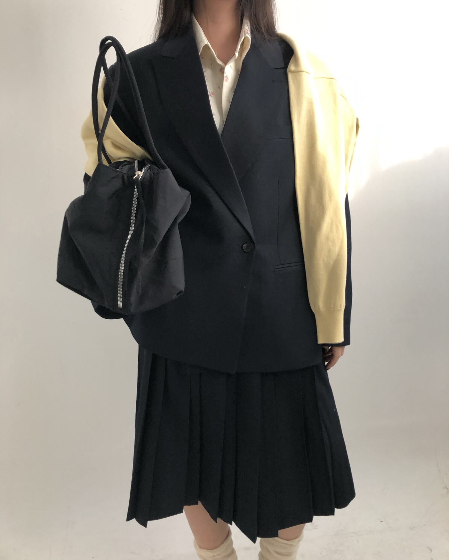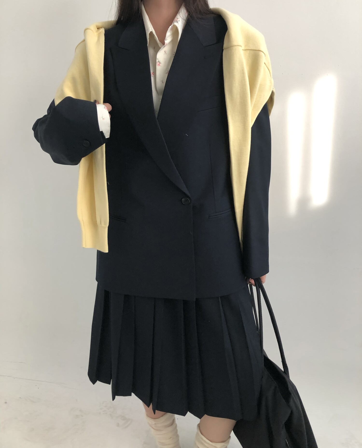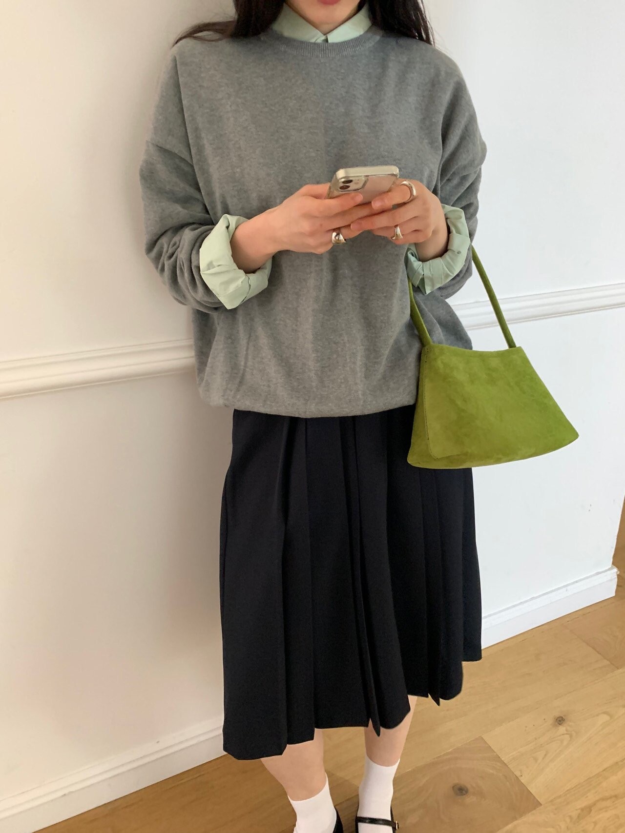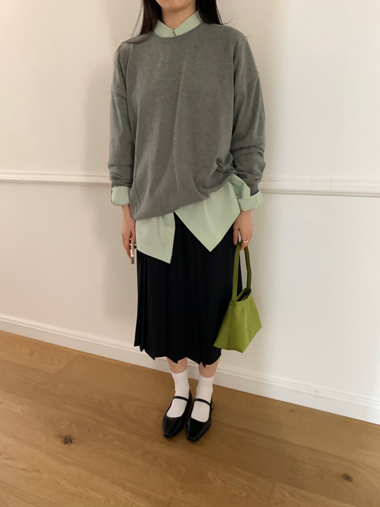 navy-상의 Candy loose fit long knit / gray, Fairy floss overfit sh / mint 착용
