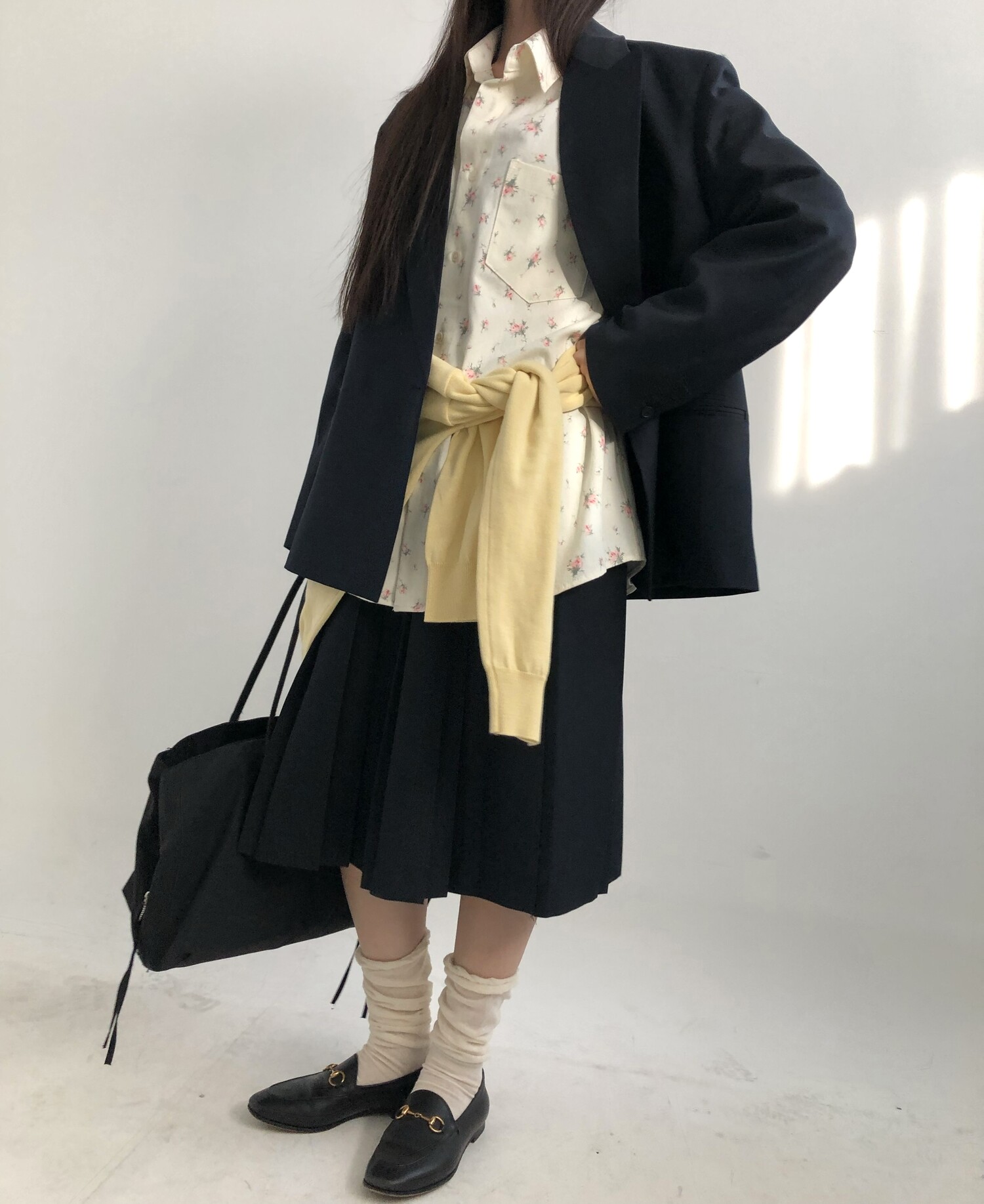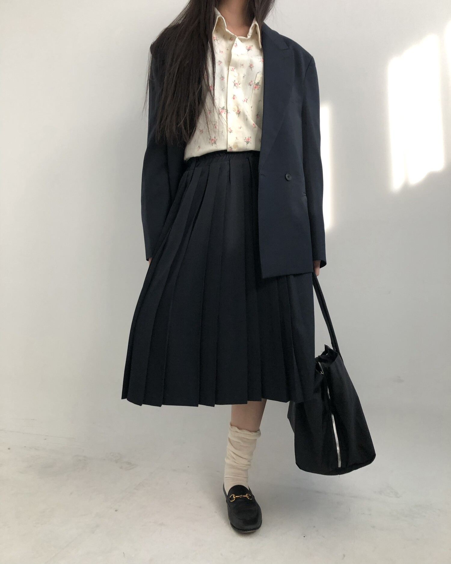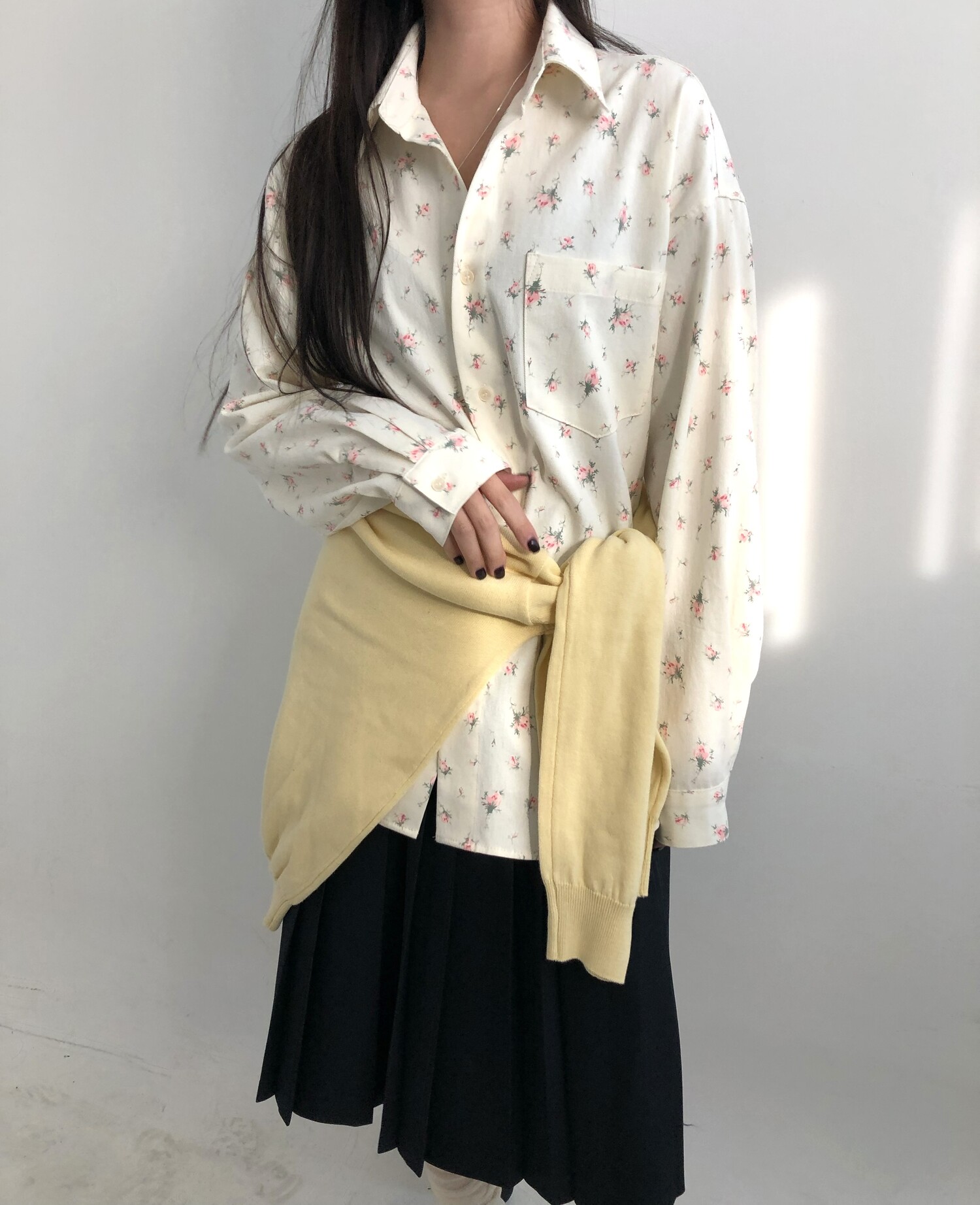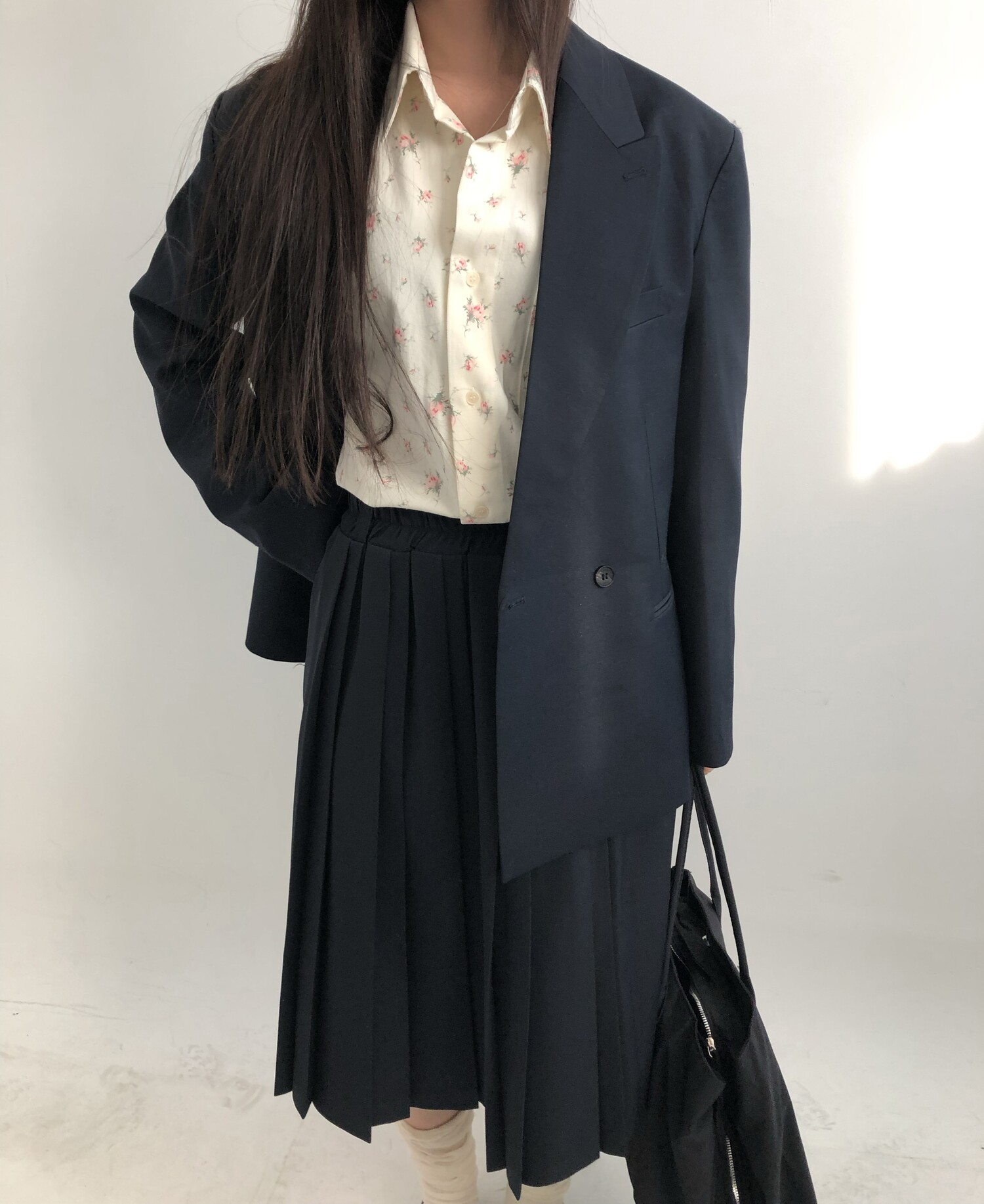 navy-상의 Candy loose fit long knit / gray, Fairy floss overfit sh / mint 착용