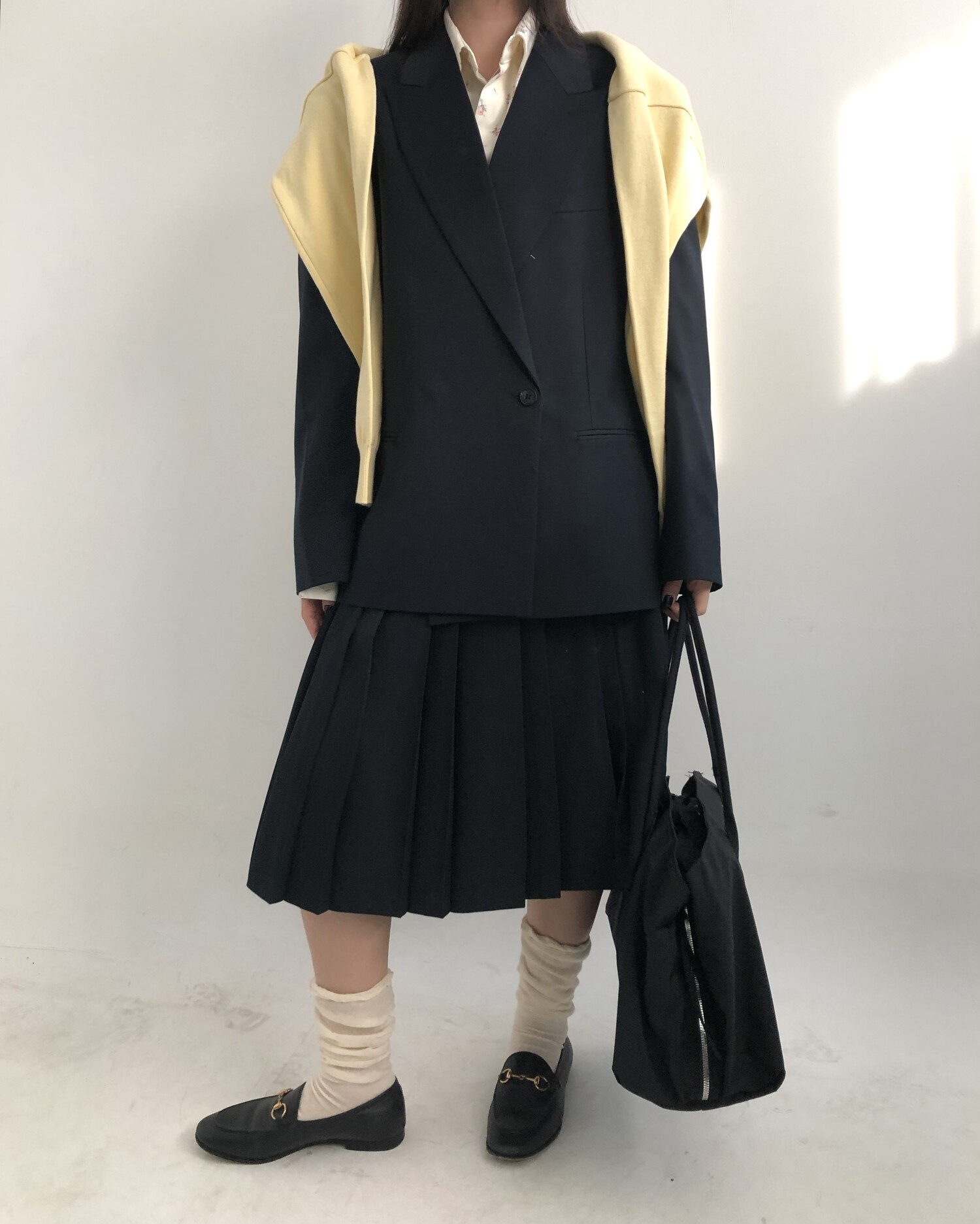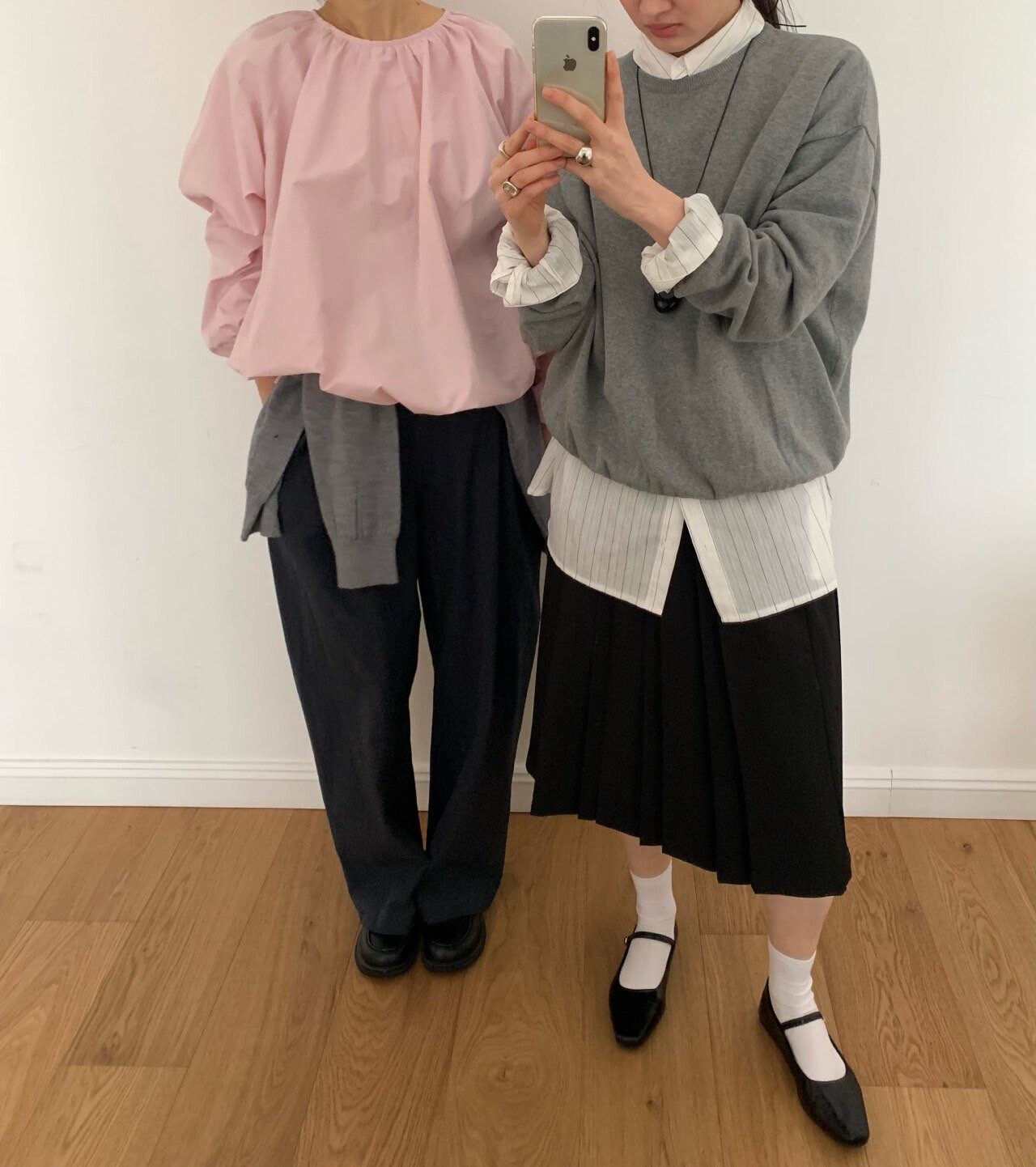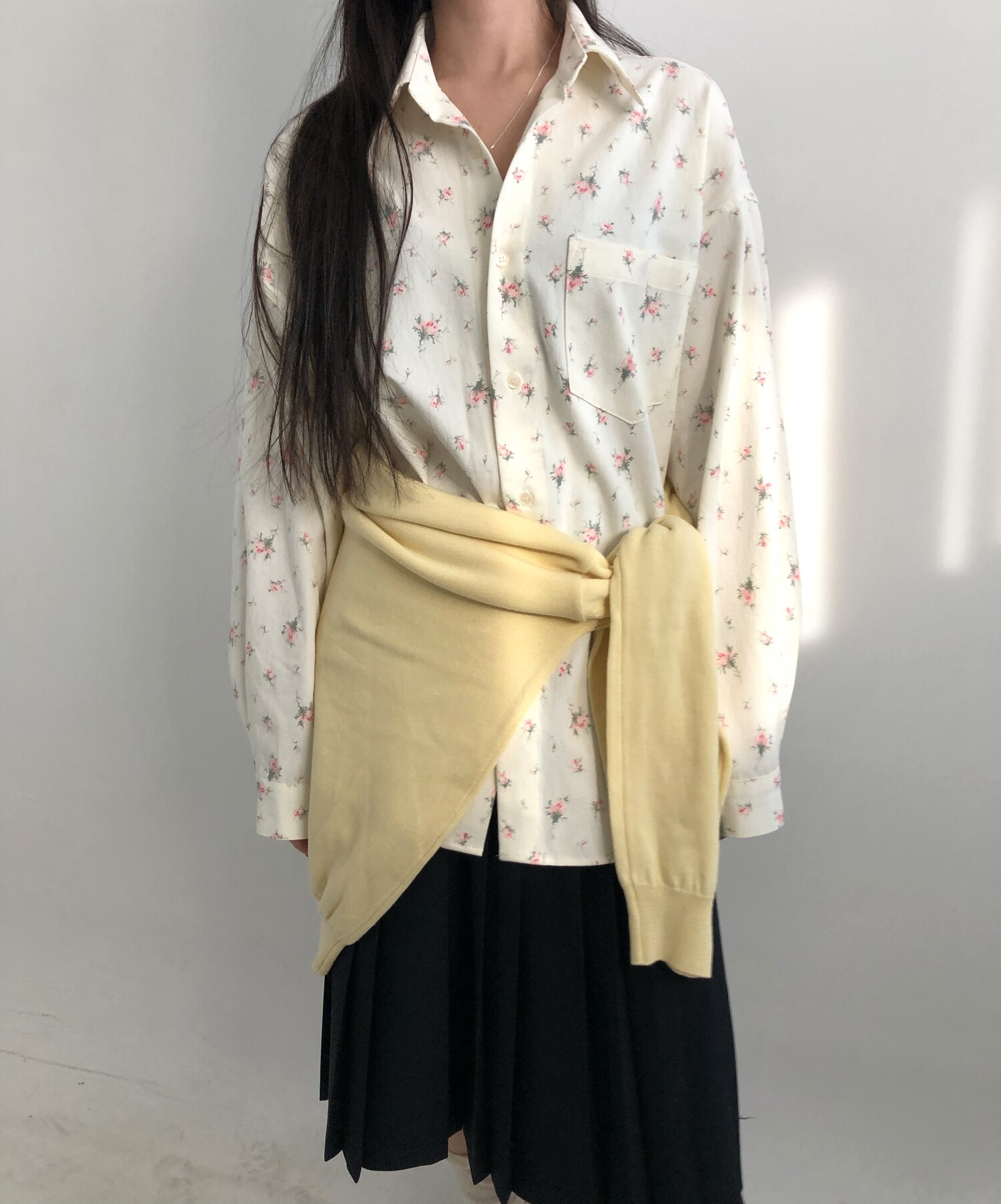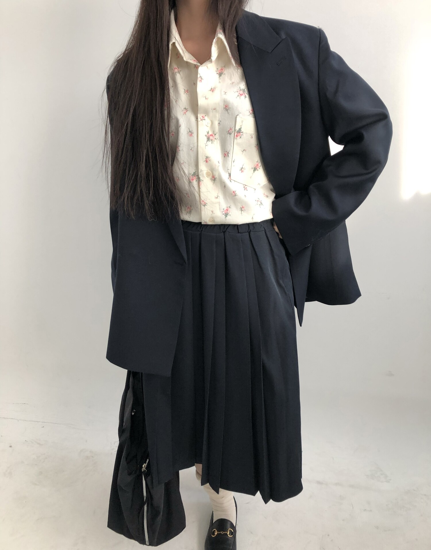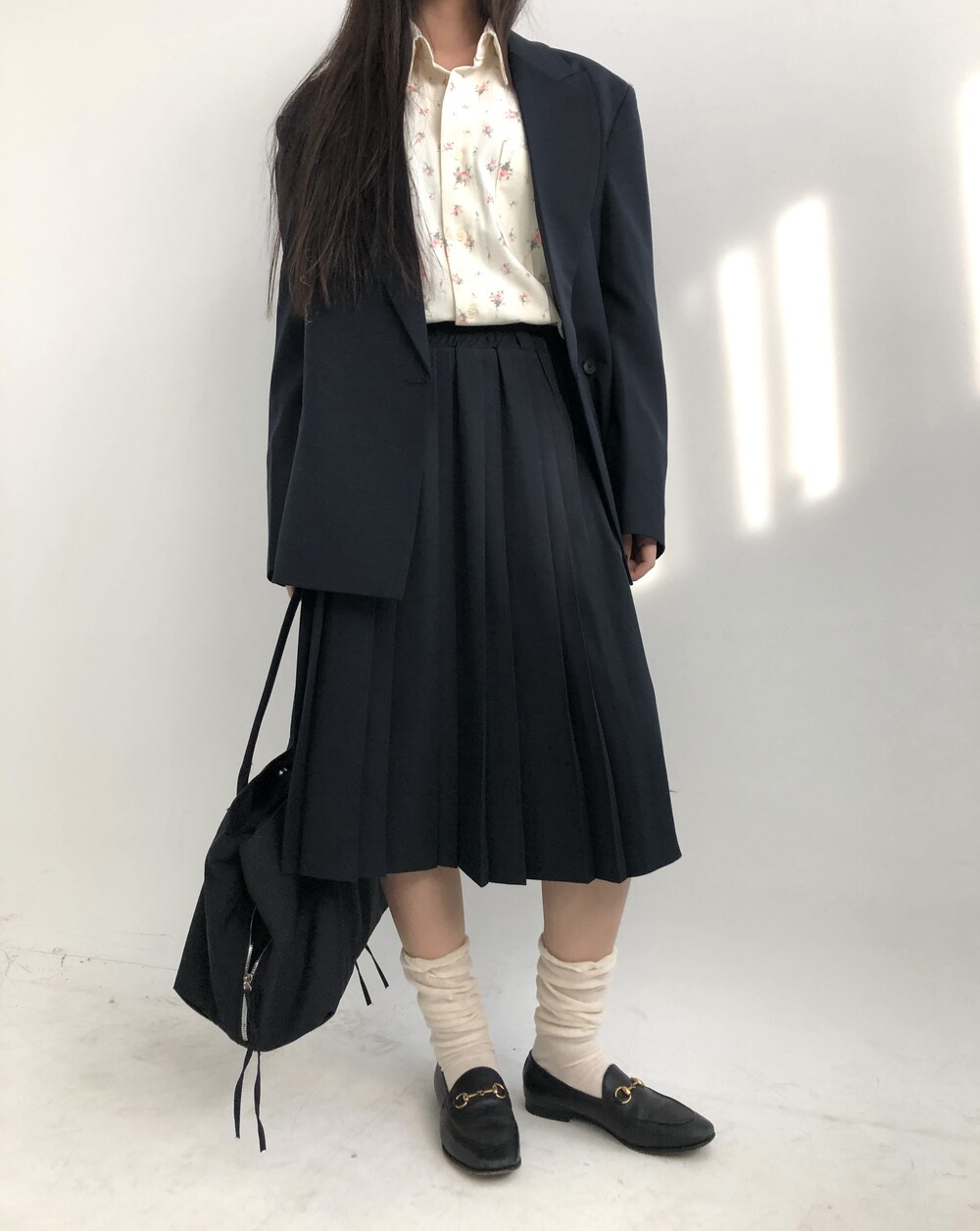 navy-상의 Candy loose fit long knit / gray, Fairy floss overfit sh / mint 착용
