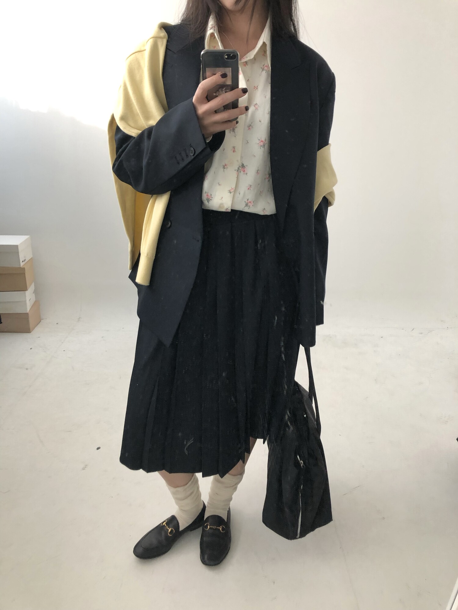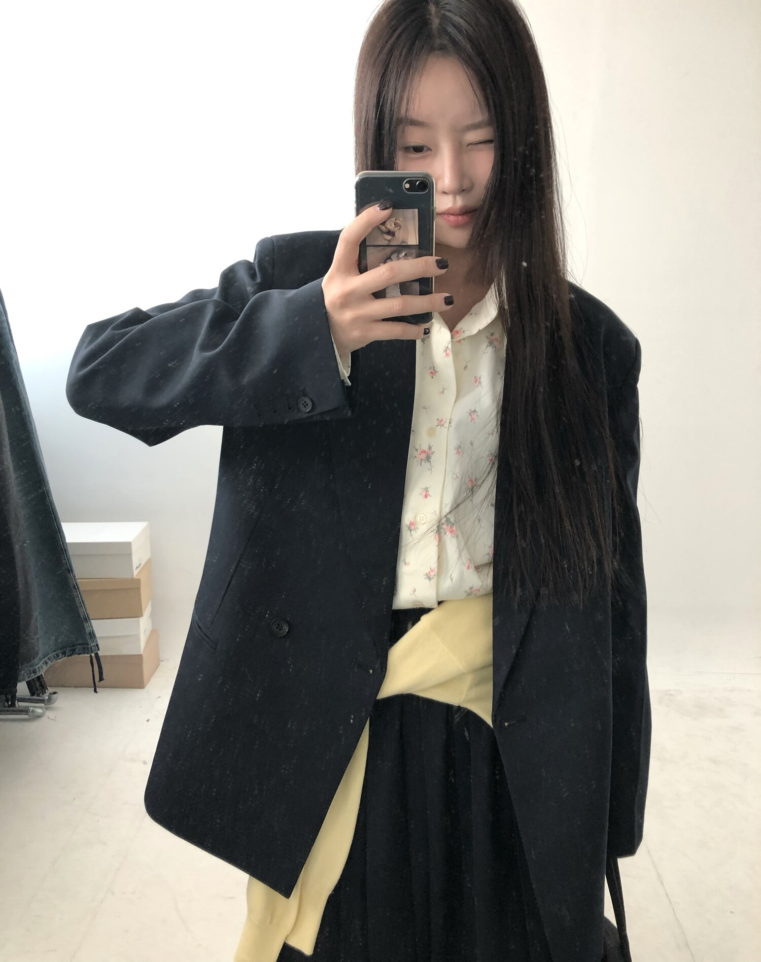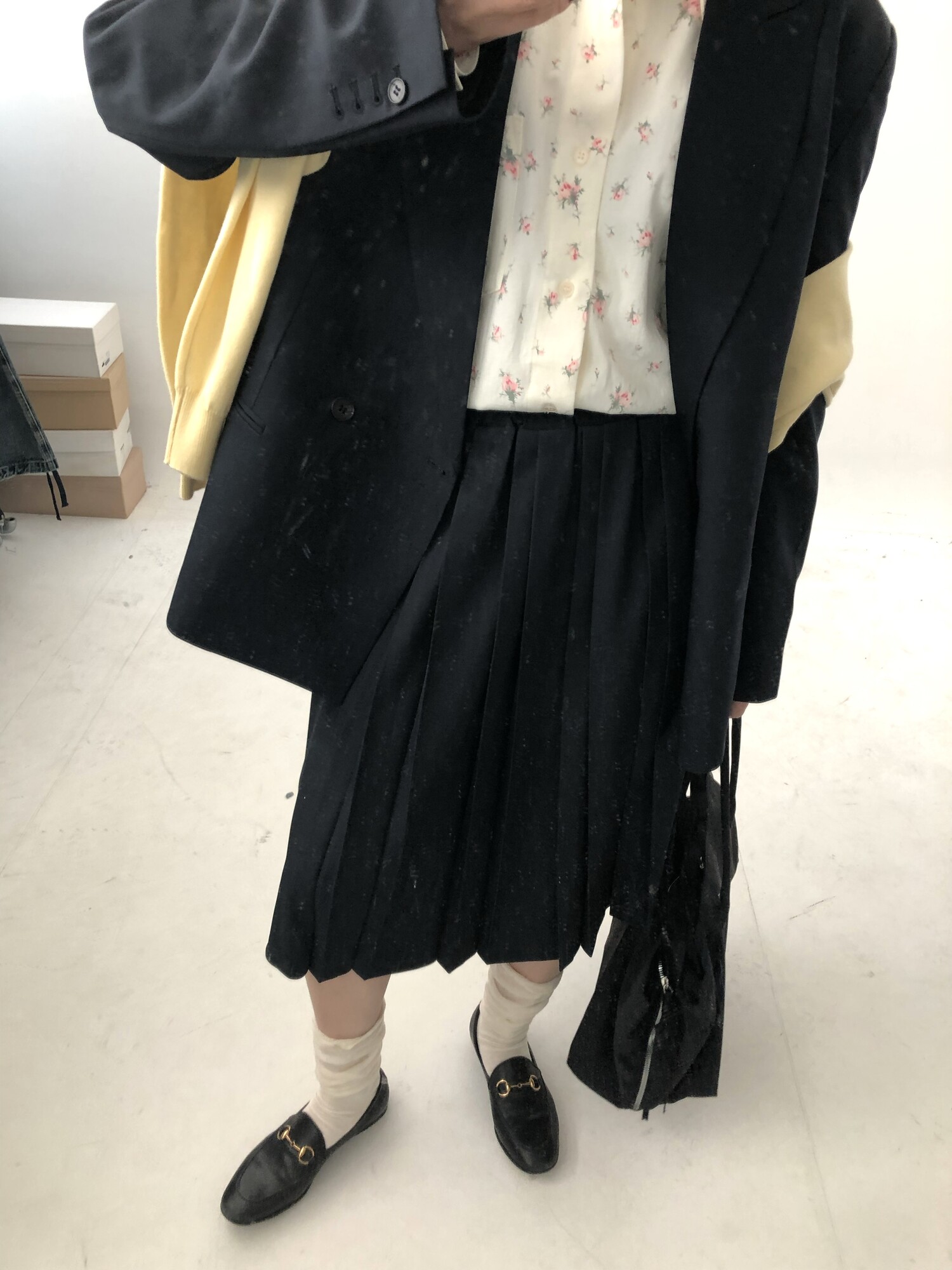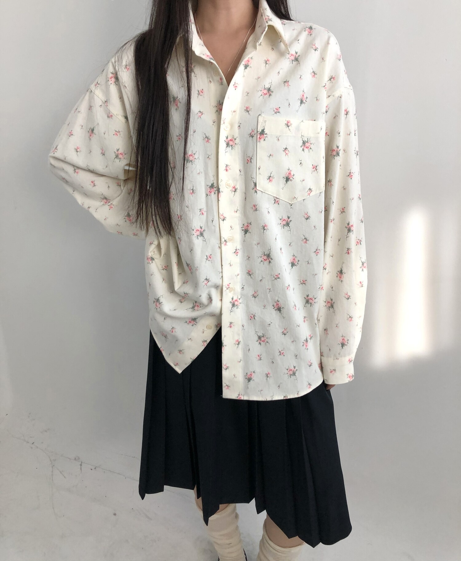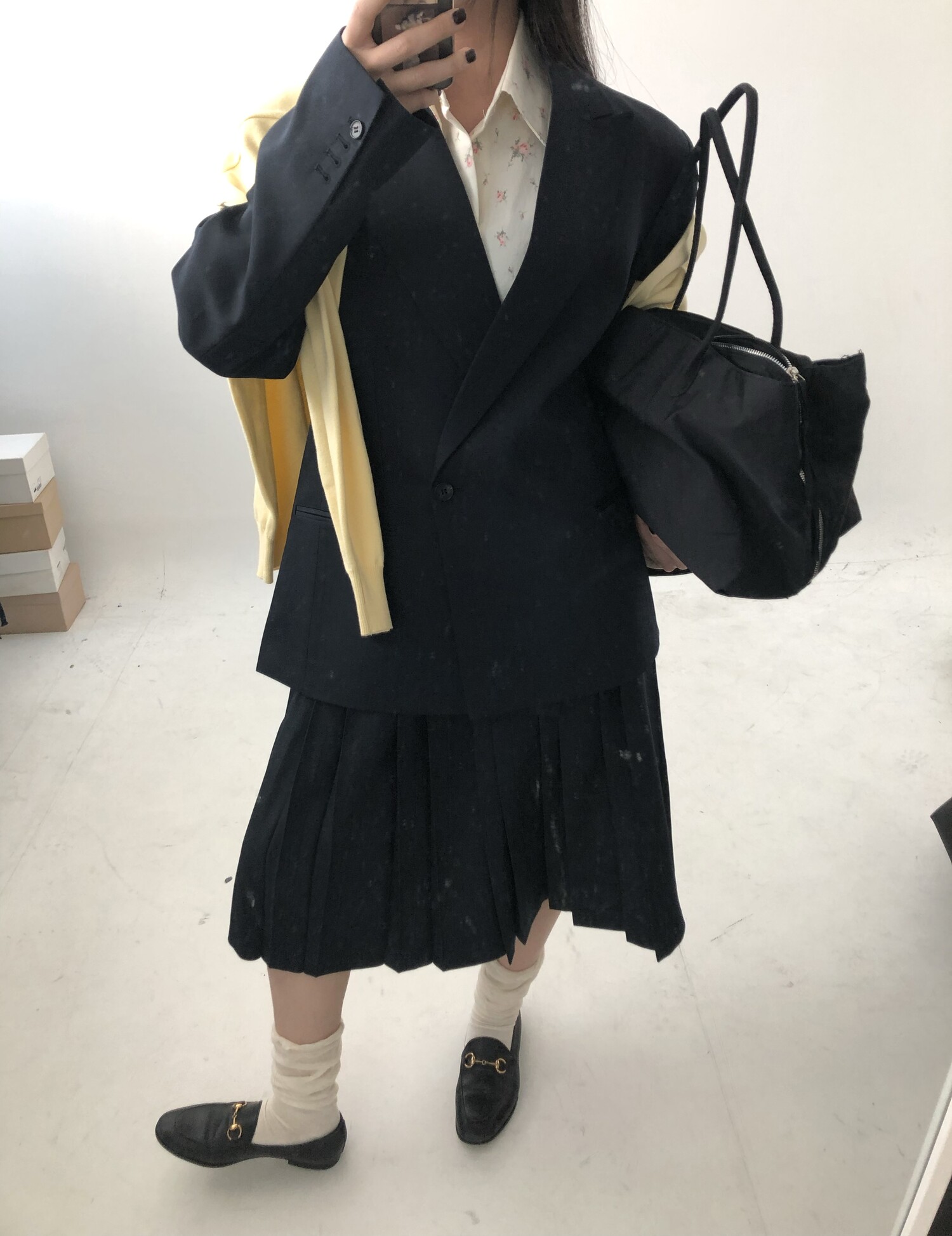 navy-상의 Candy loose fit long knit / gray, Fairy floss overfit sh / mint 착용