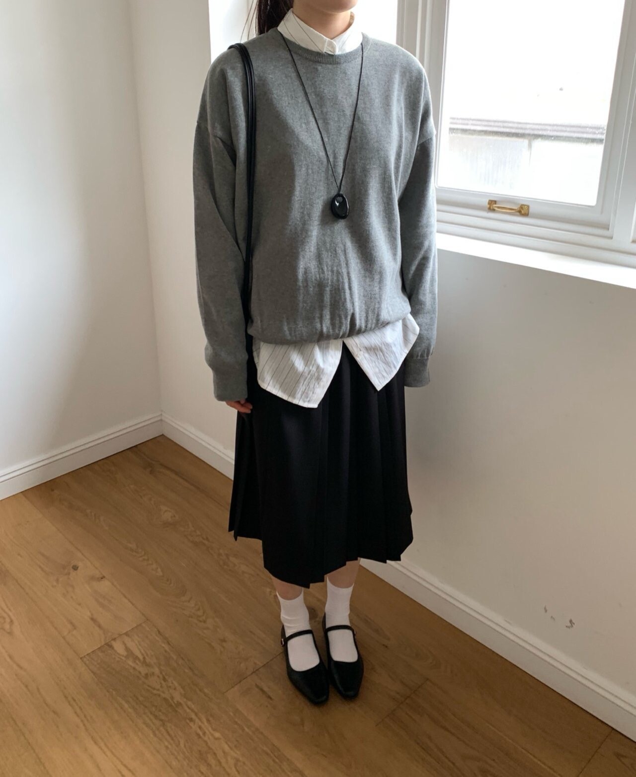 black 착용-상의 Candy loose fit long knit / gray 착용