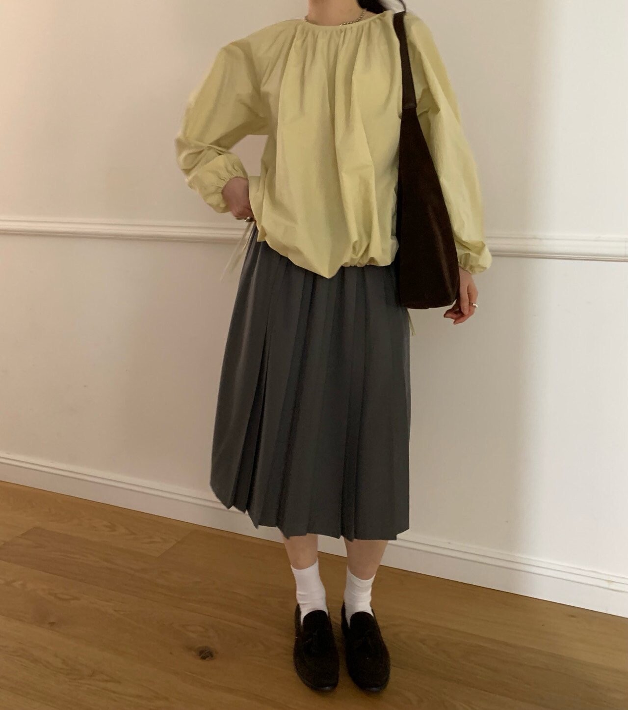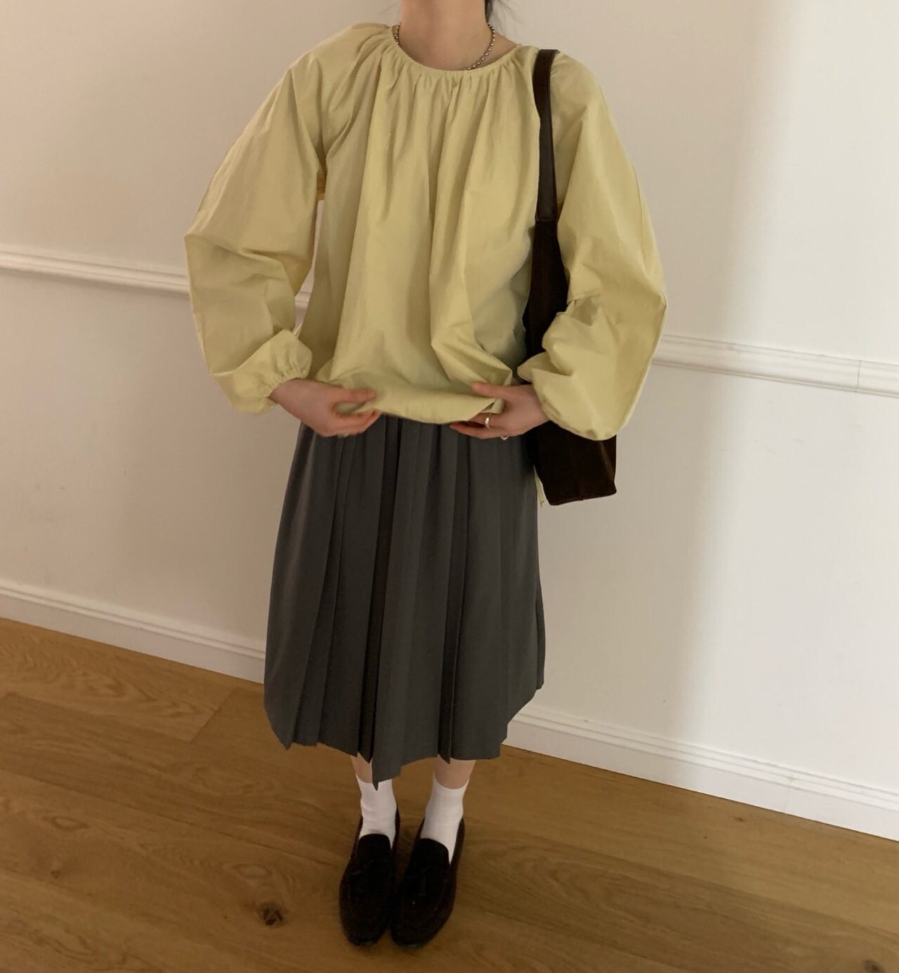 gray-상의 Cotton shirring bl / butter 착용