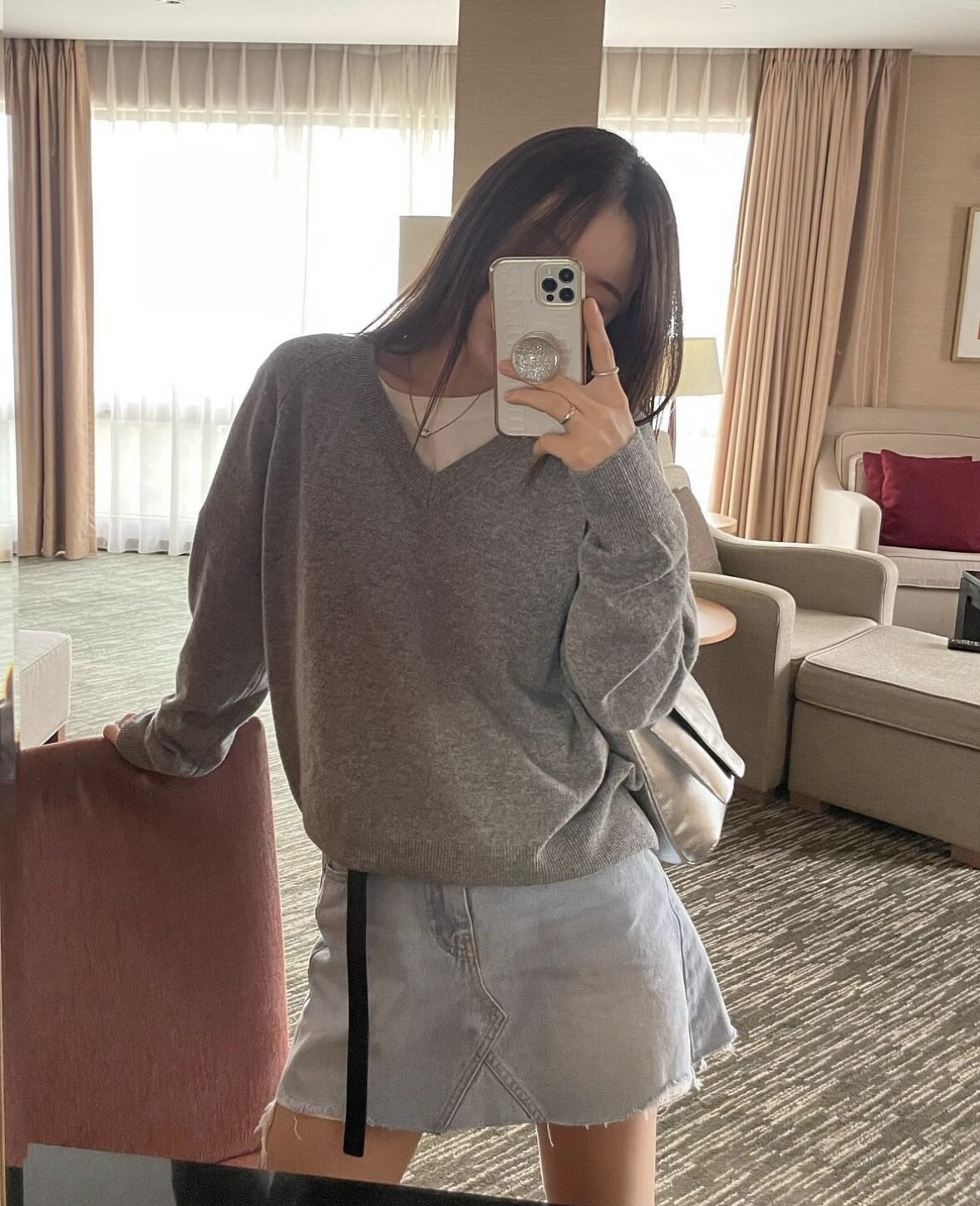 거래처 gray착용샷-베이직한 진그레이 색상입니다.
