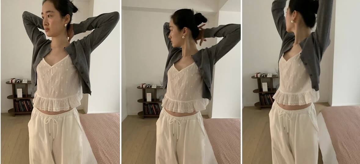 -크롭한 기장으로 러블리하면서도 단정한 무드를 연출