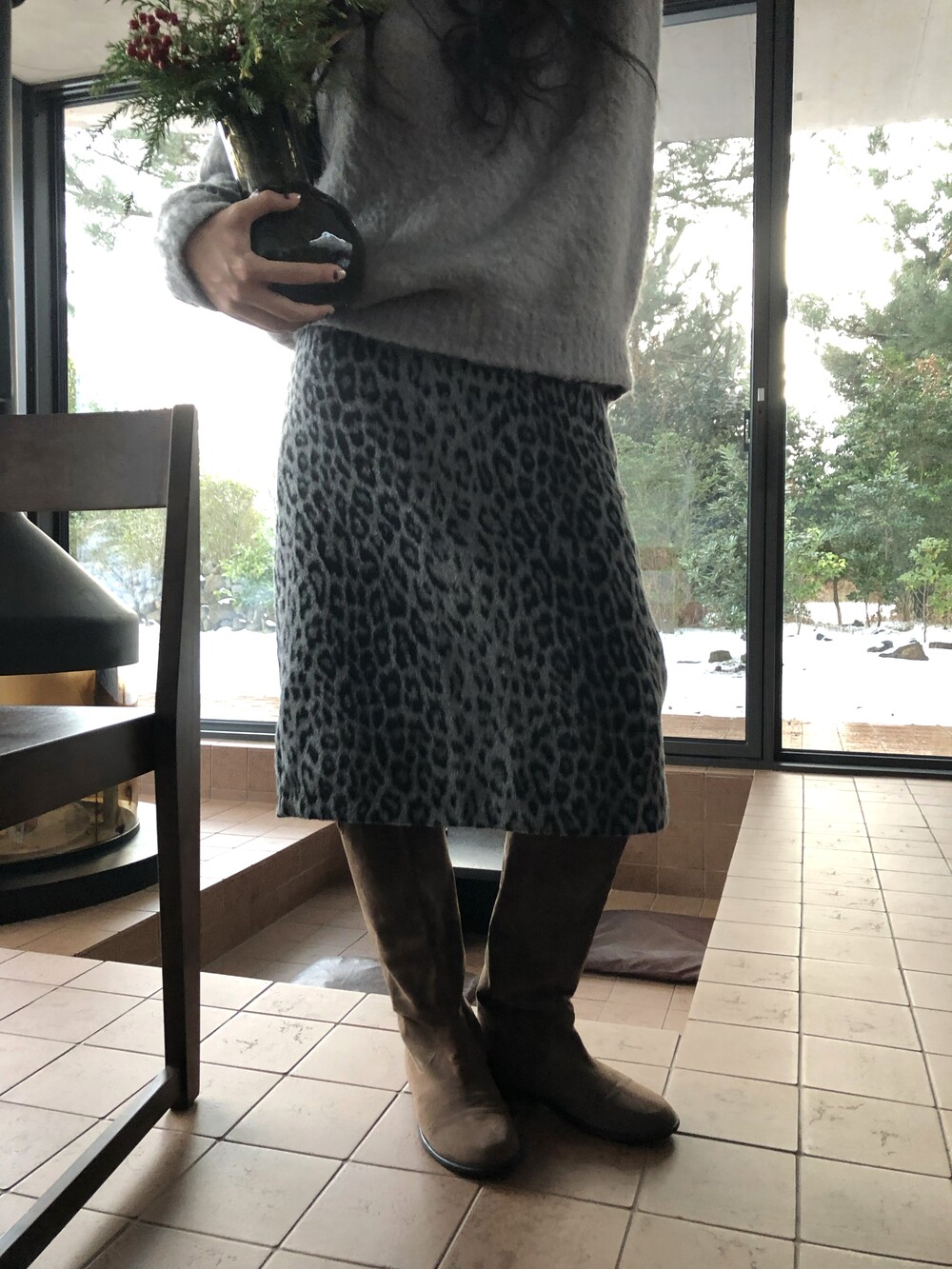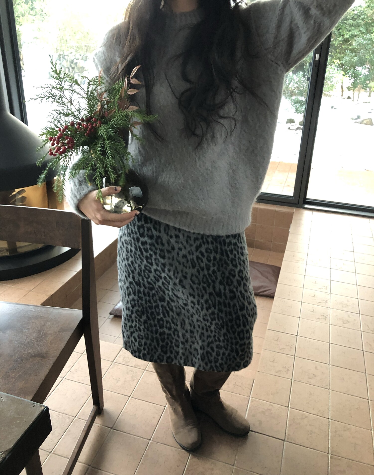 Leopard wool midi sk-2color