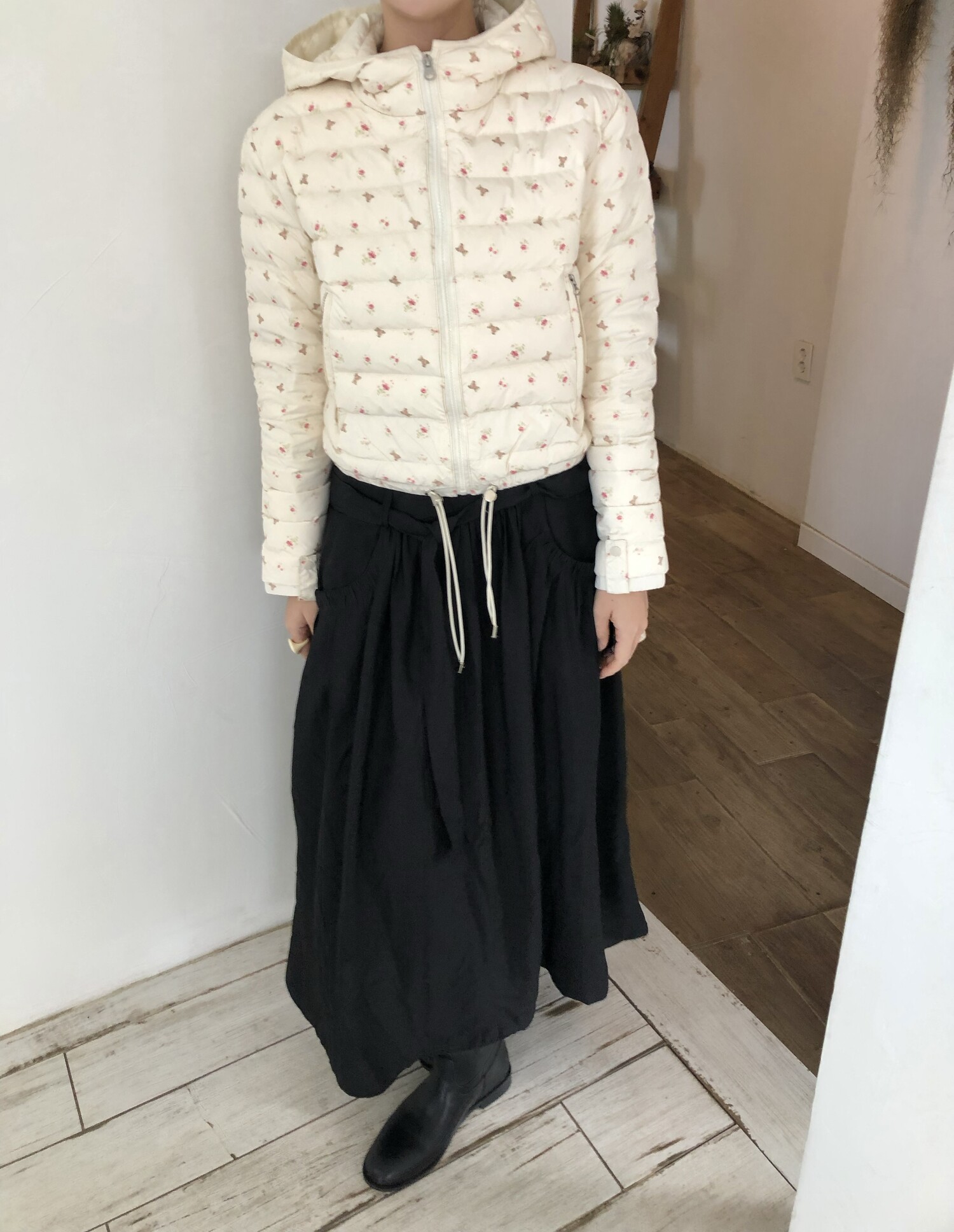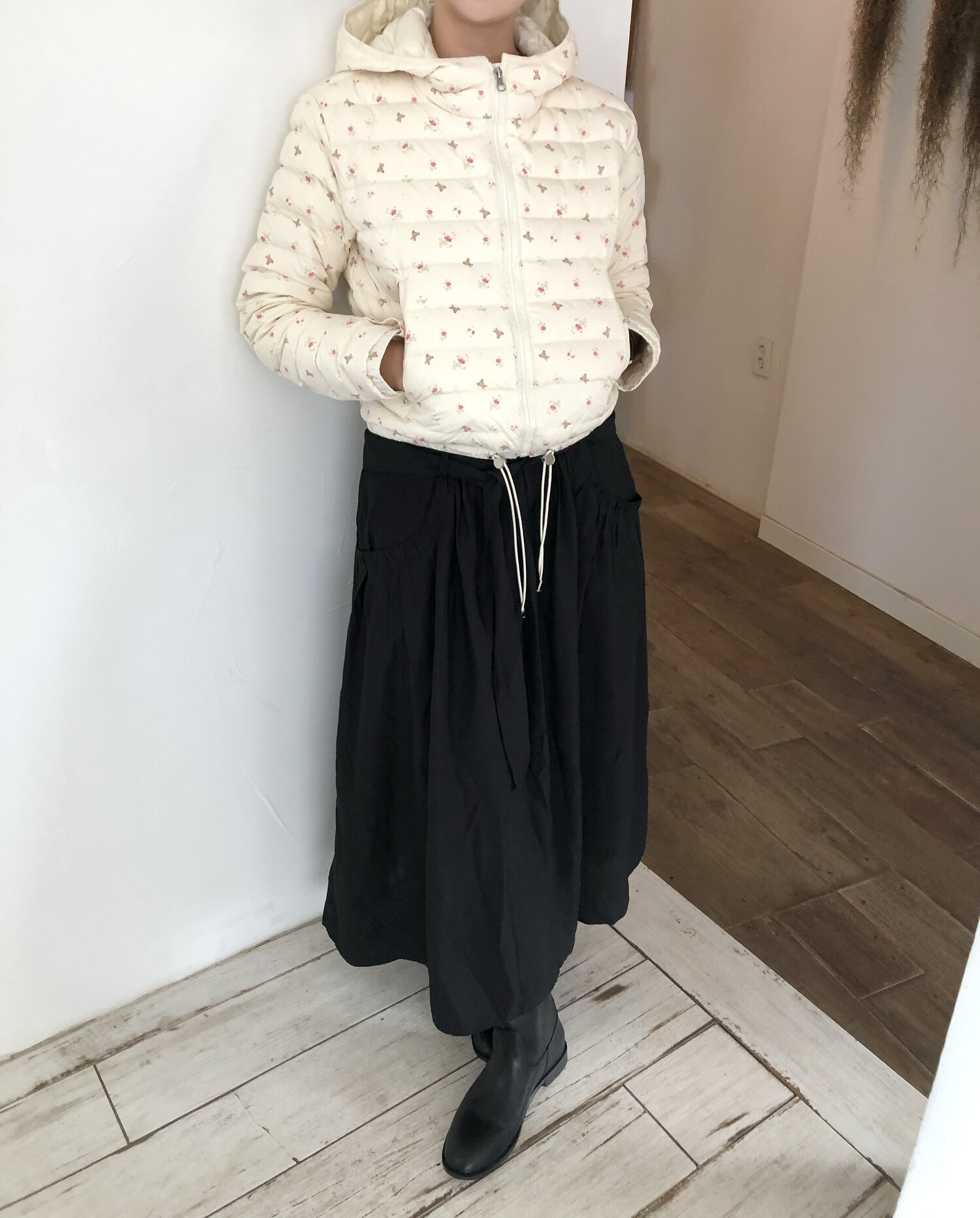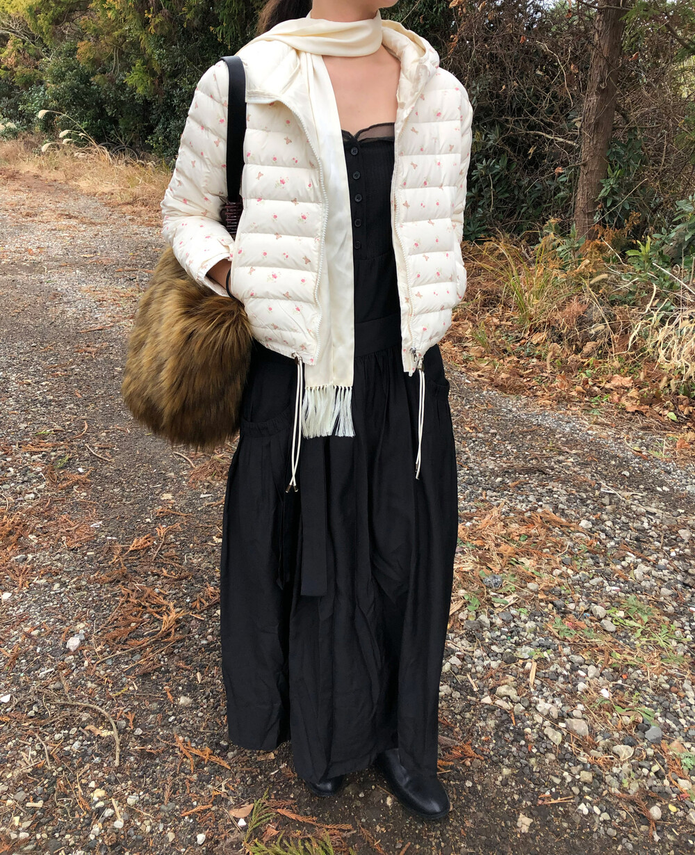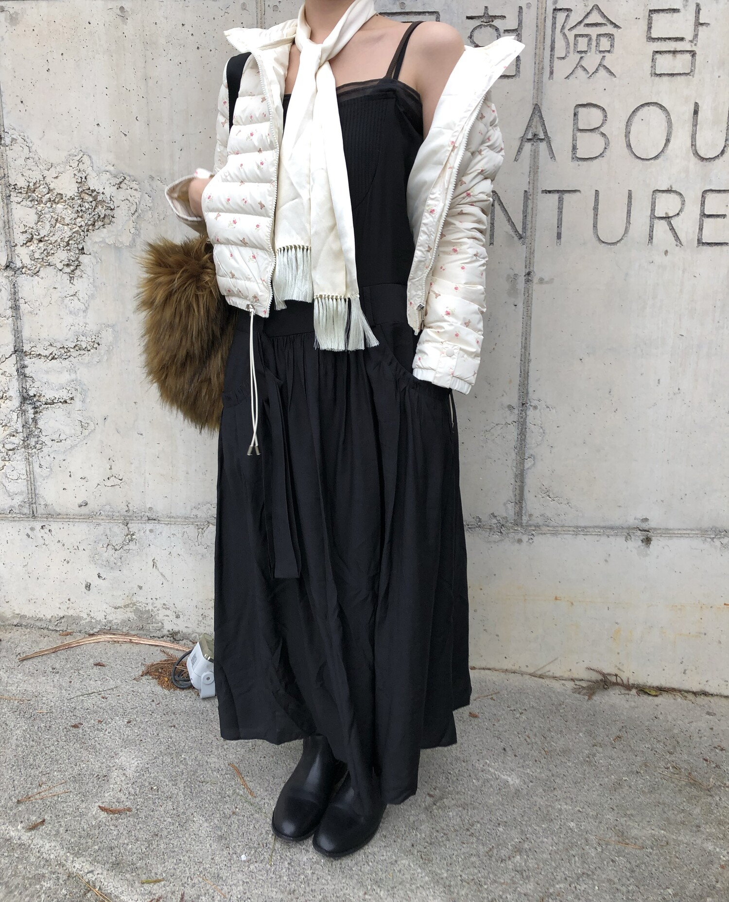 경량패딩 특유의 볼륨감은 크지 않아서 과함 없이 입기좋았습니다. 연청에 입어도 이쁘고 원피스와도 너무 잘 어울리구요. 데일리하게 두루두루 잘 입어지실거에요.