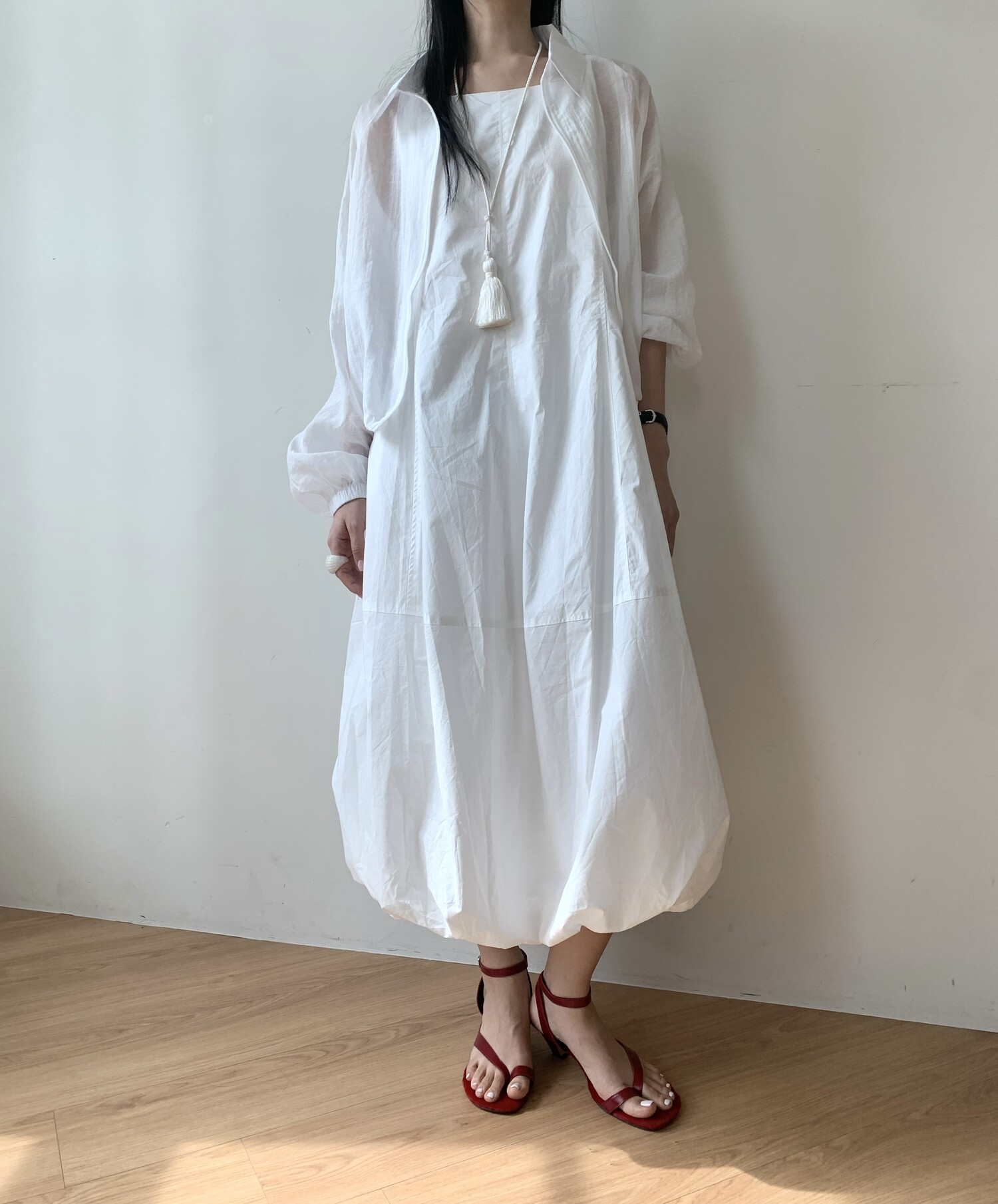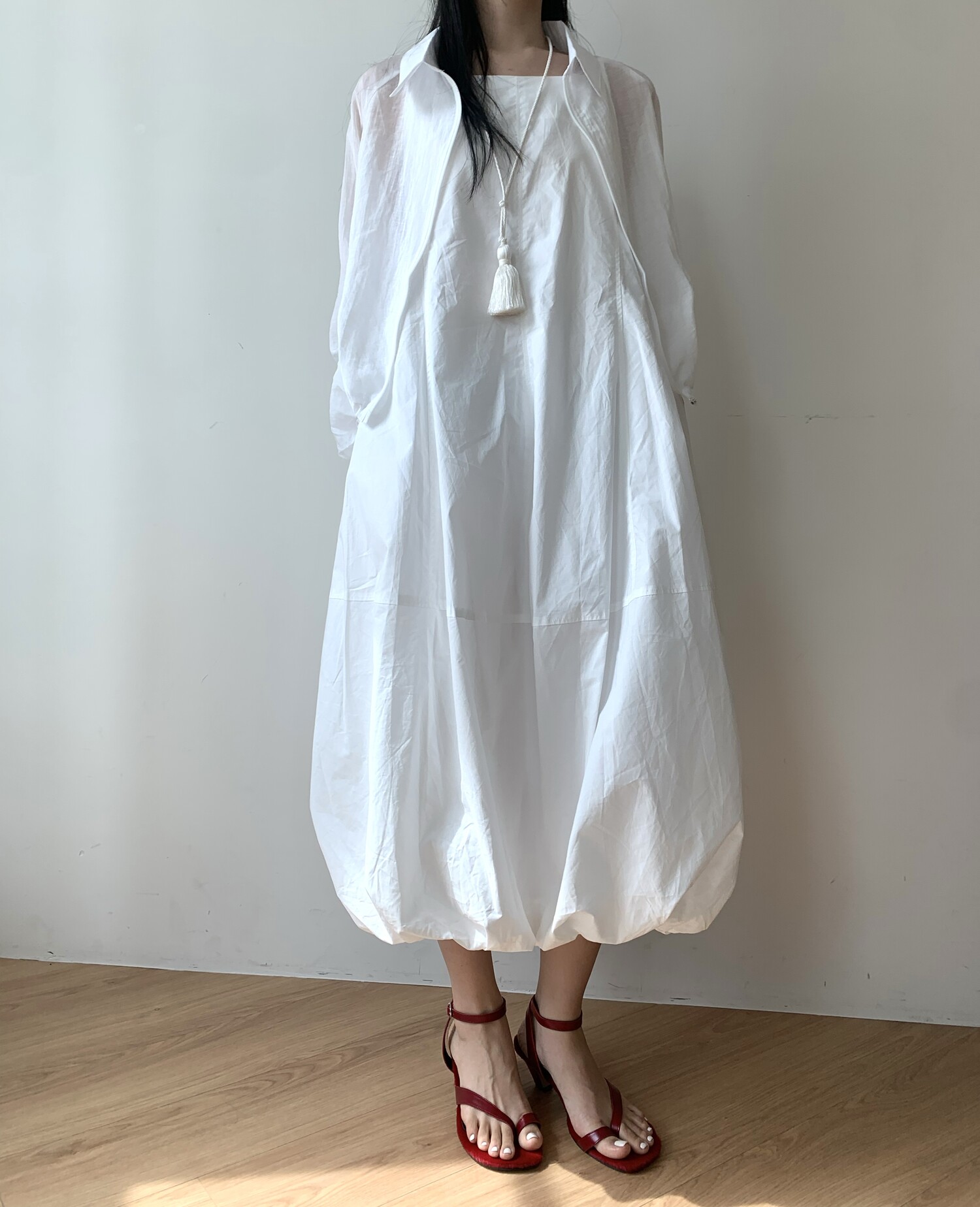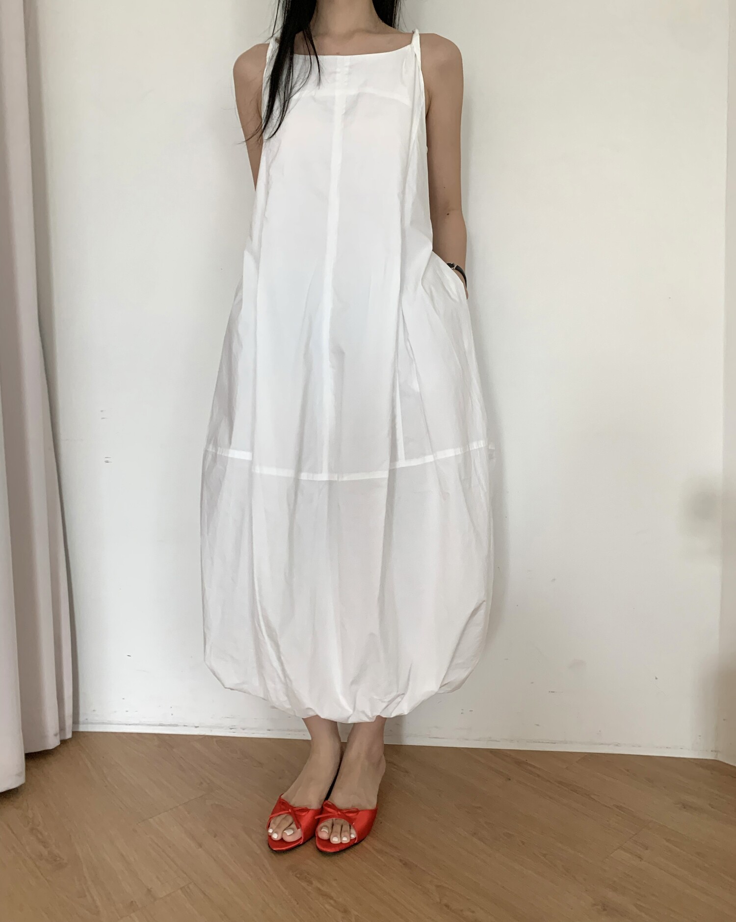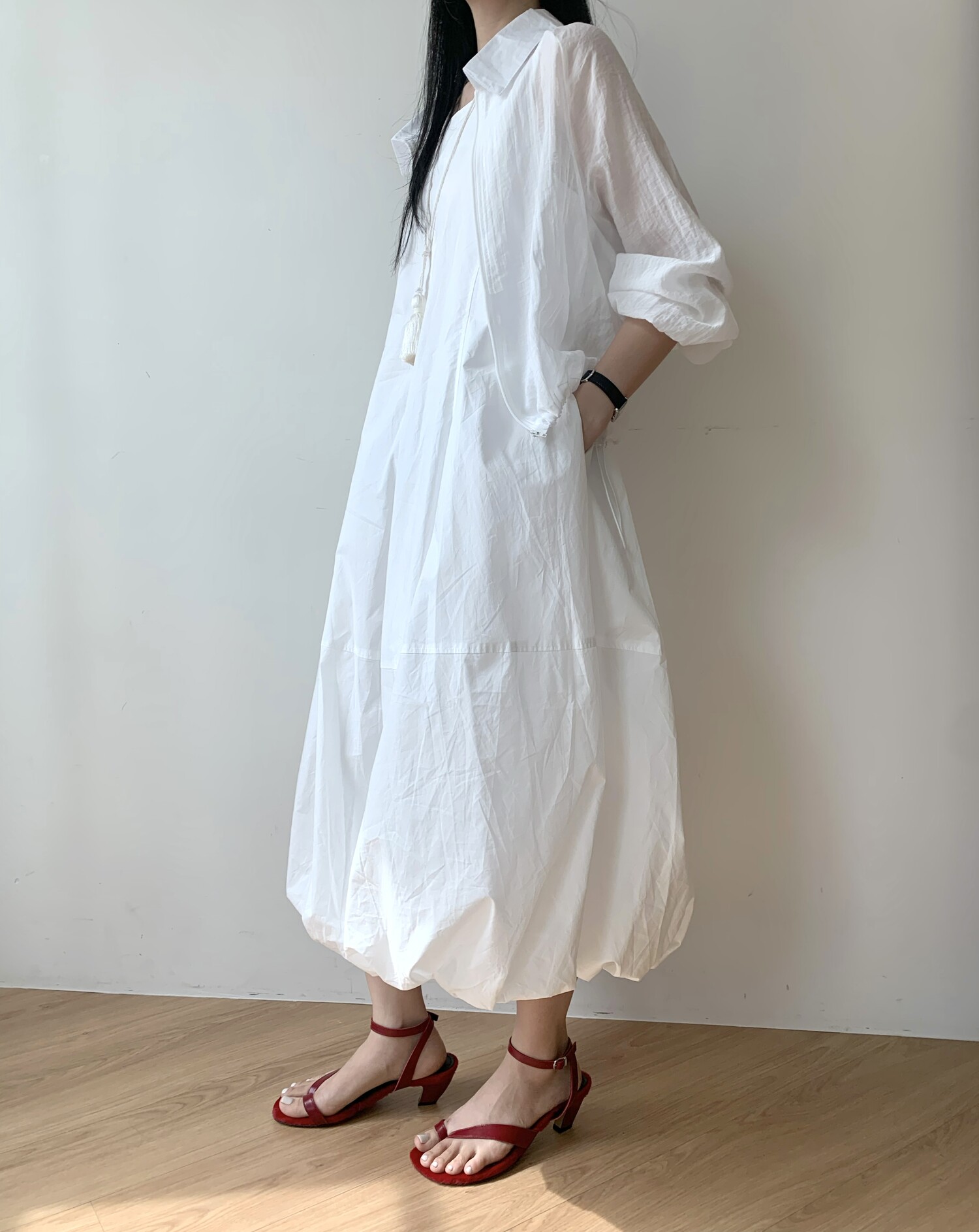 -여름에 즐기기 좋은 라이트한 소재감의 벌룬 롱 원피스(안감내장)