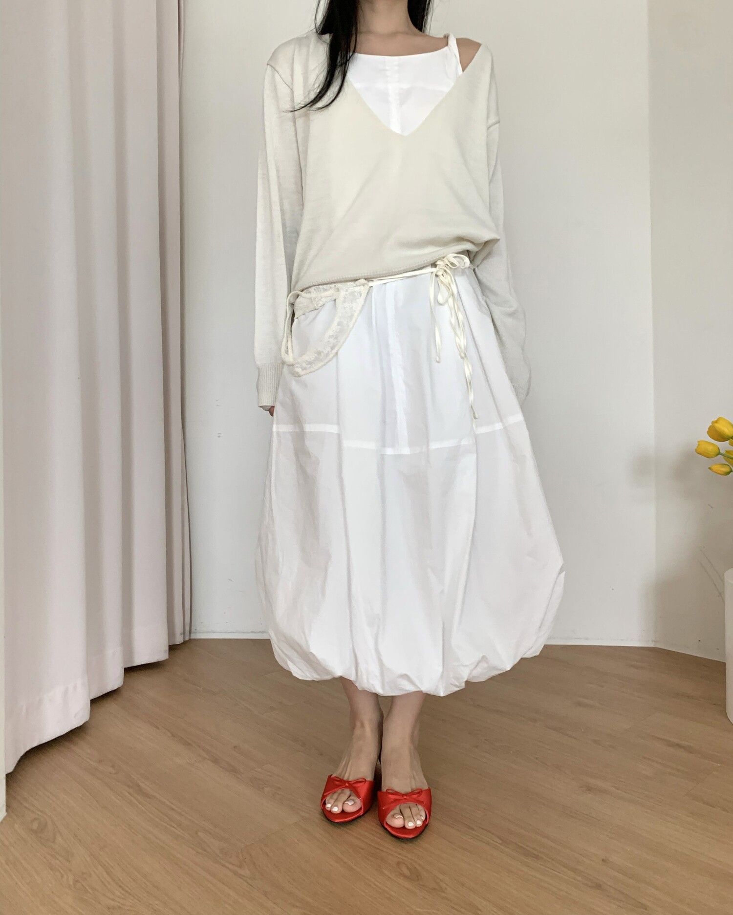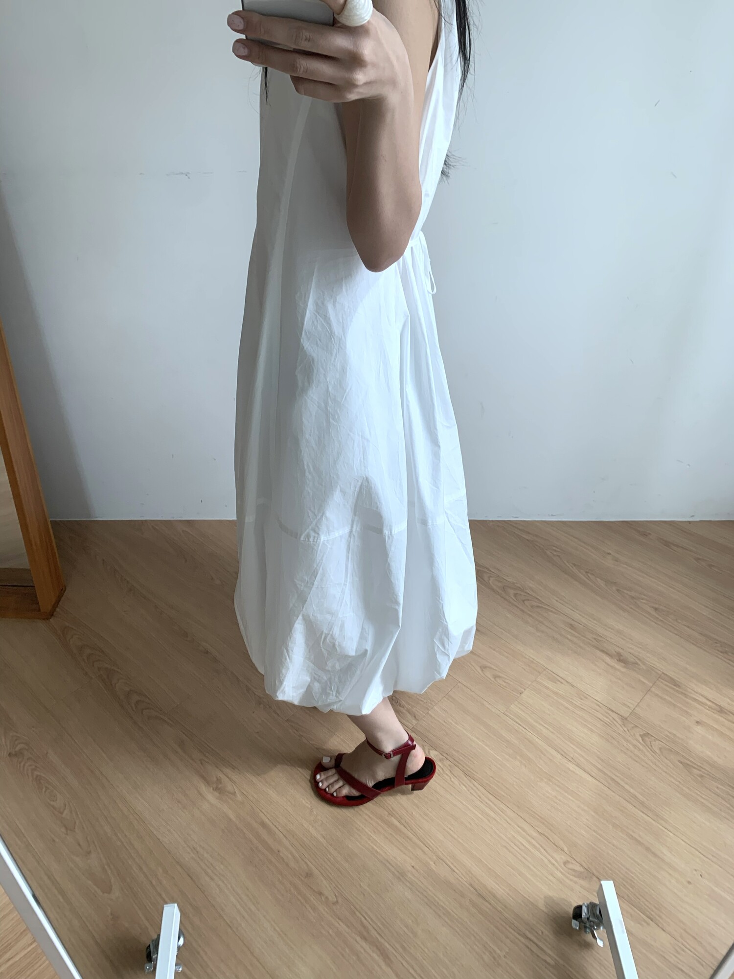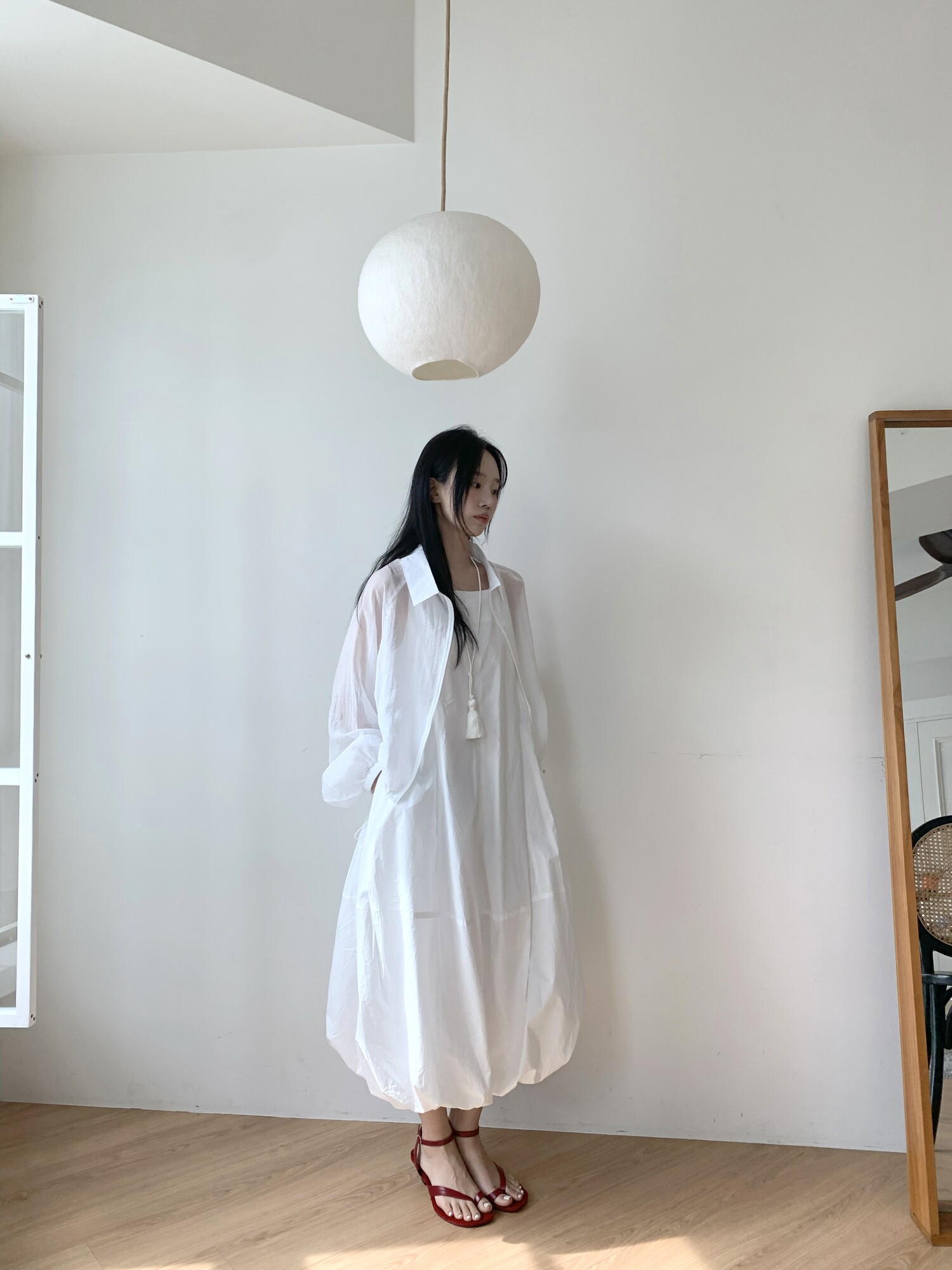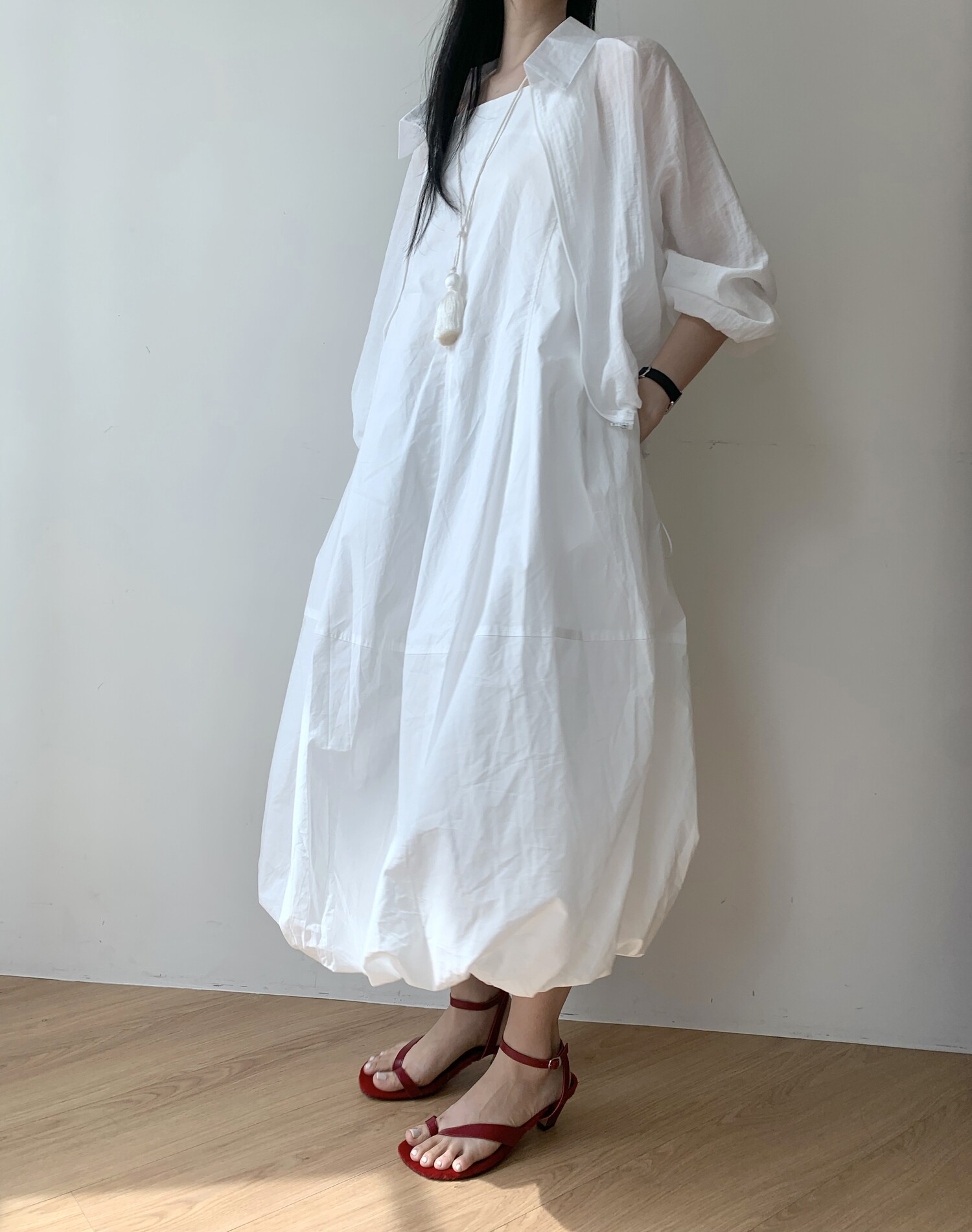 -여름에 즐기기 좋은 라이트한 소재감의 벌룬 롱 원피스(안감내장)