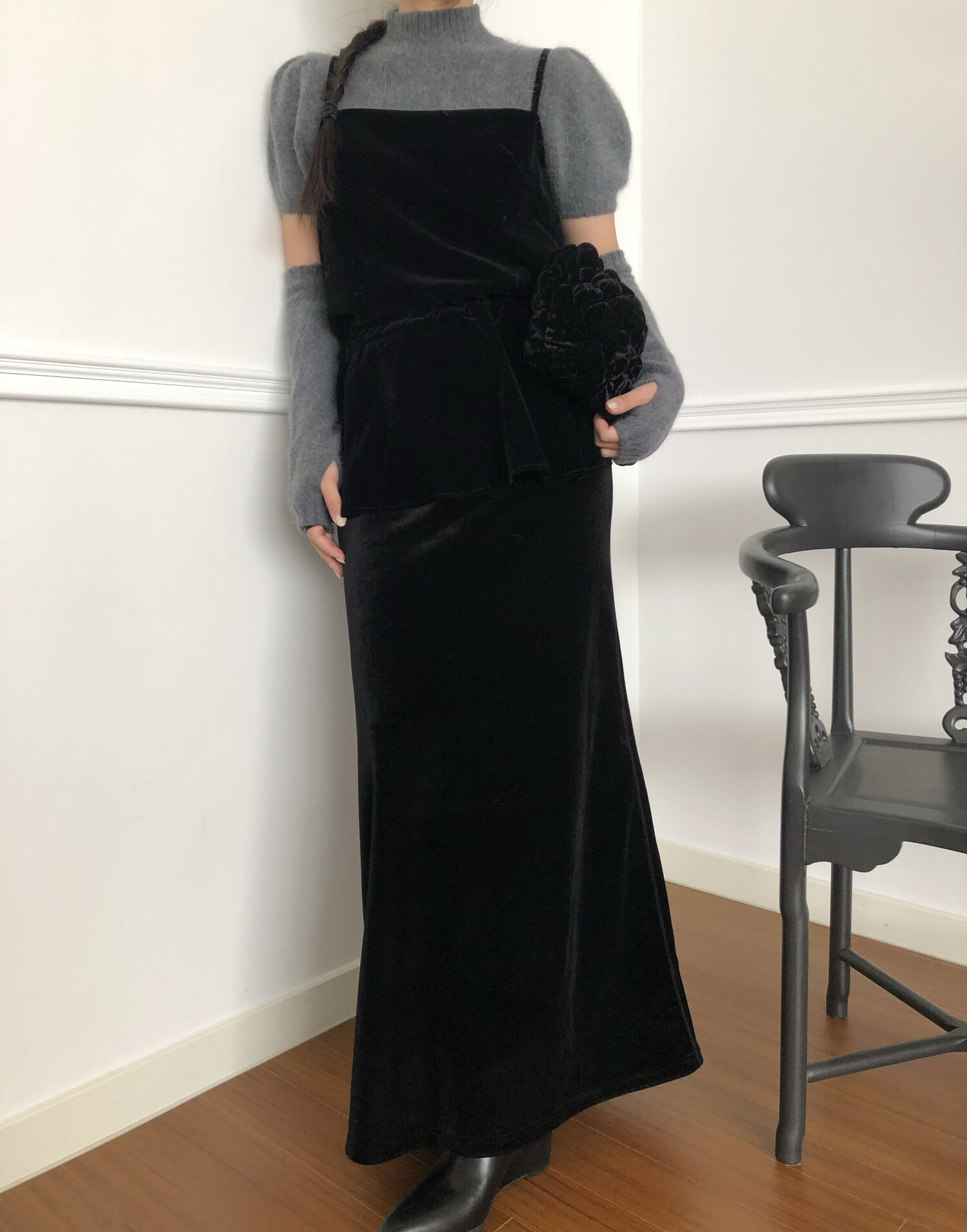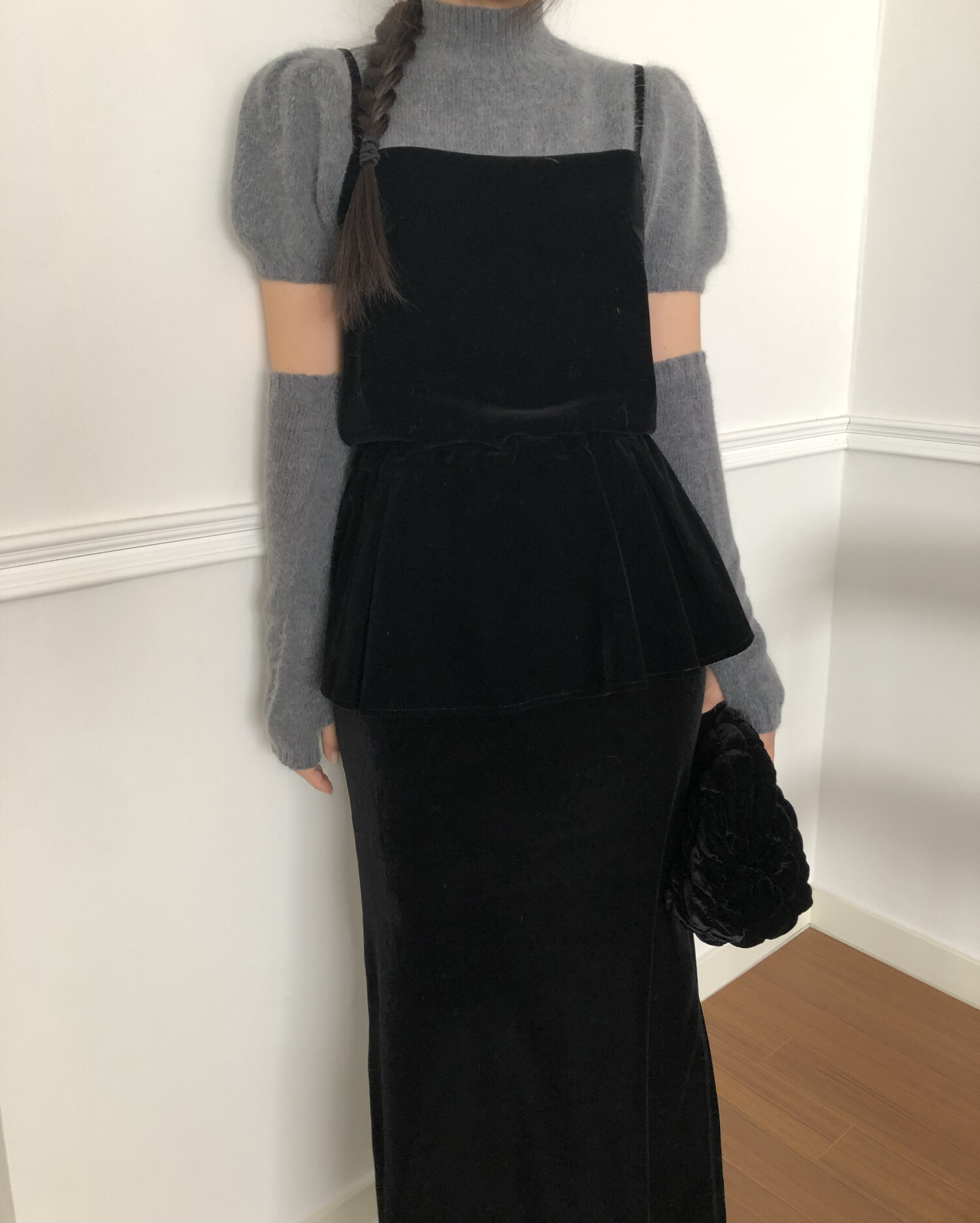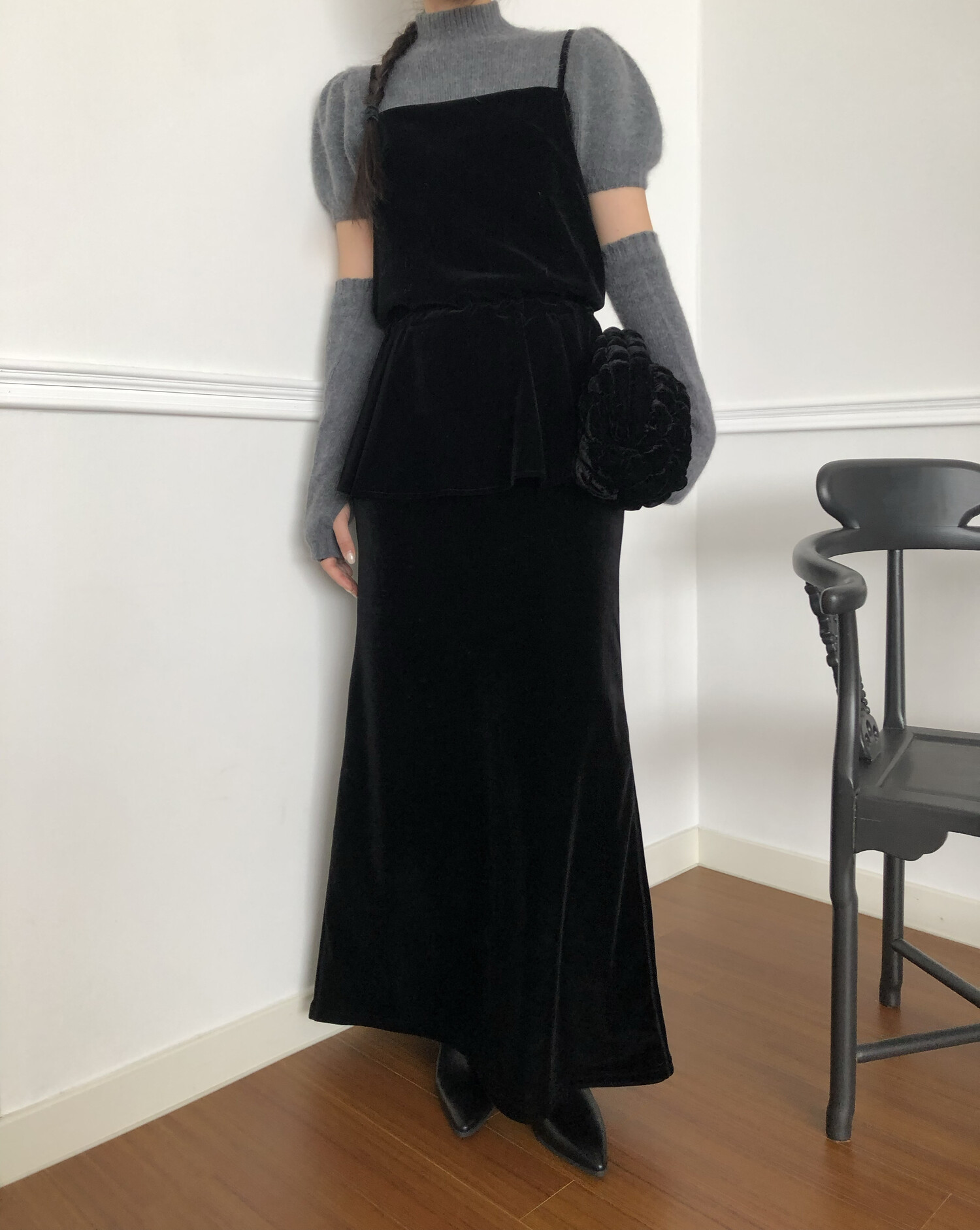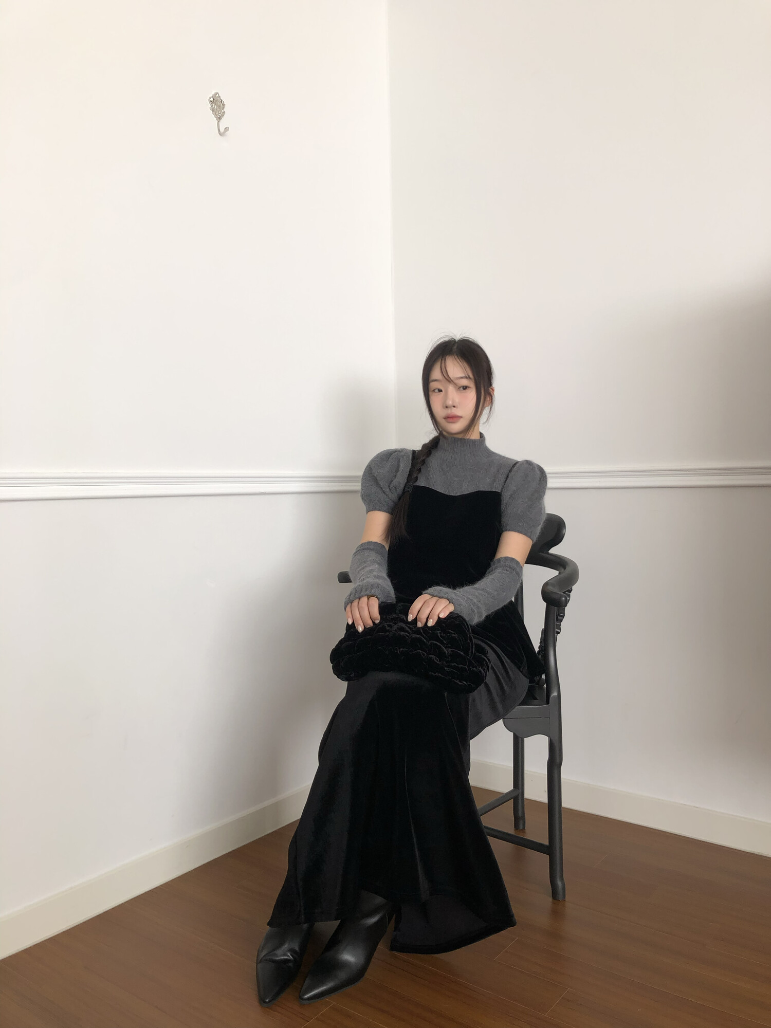 -벨벳 원단으로 고급스런 무드(연말룩,하객룩등 추천)