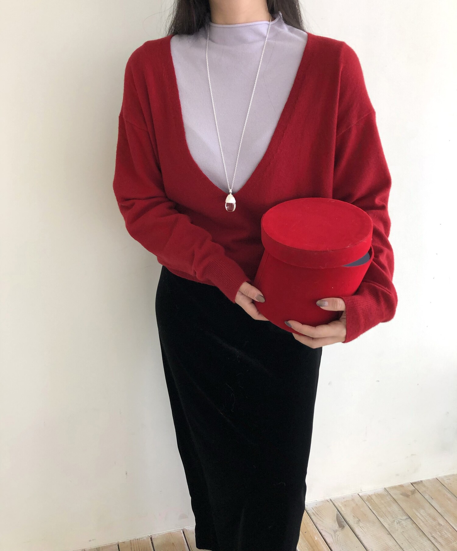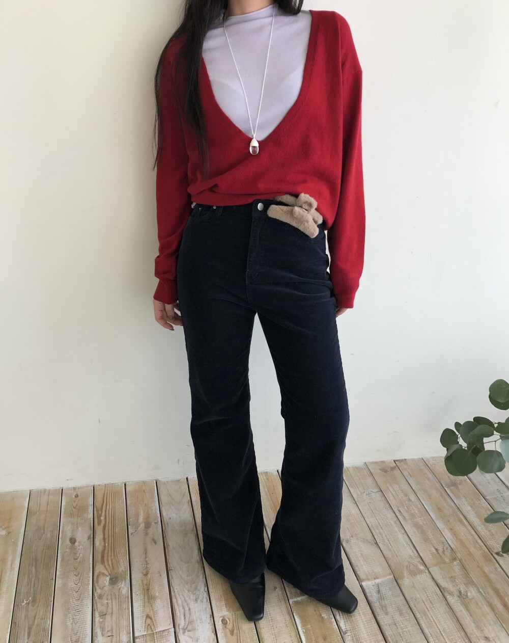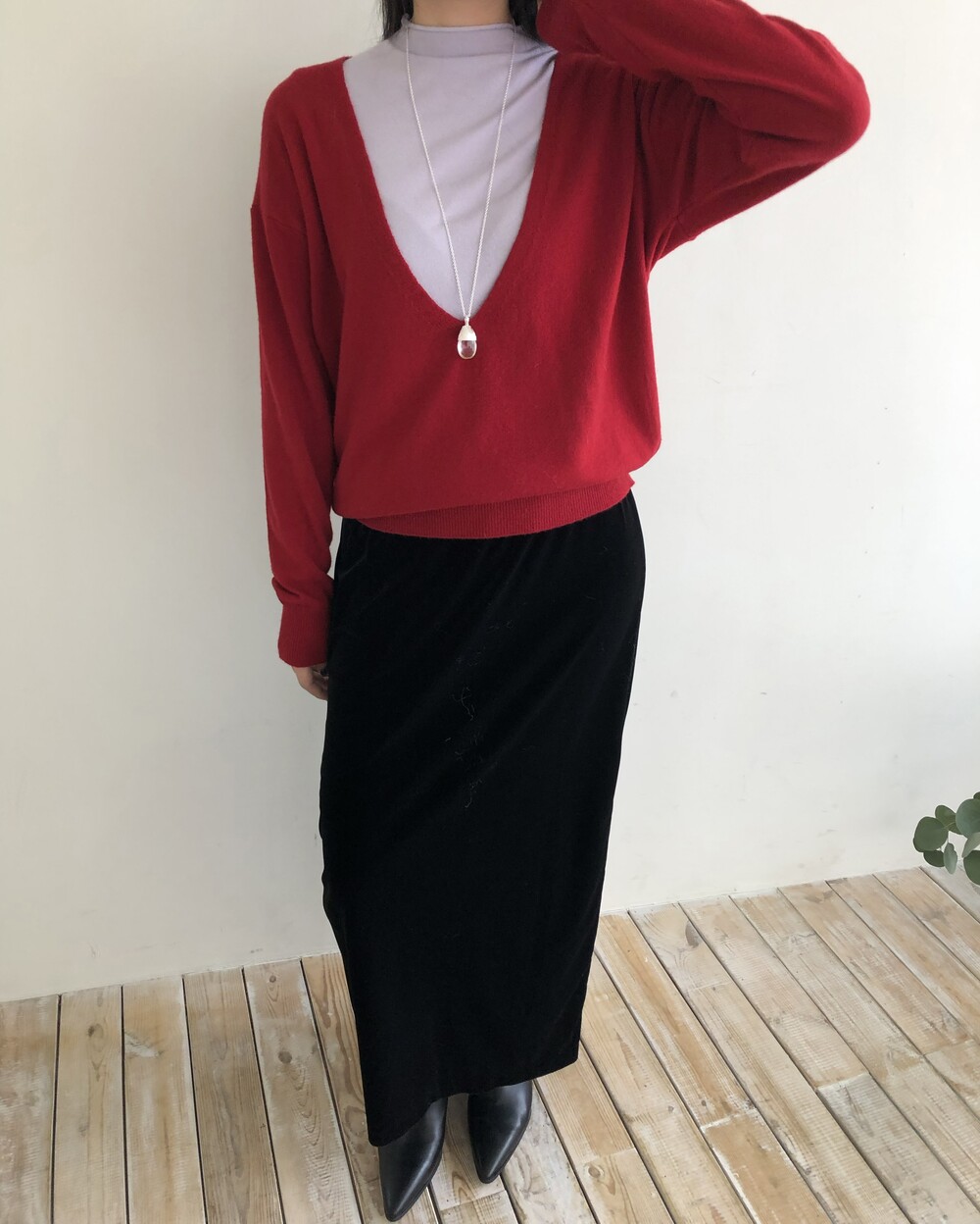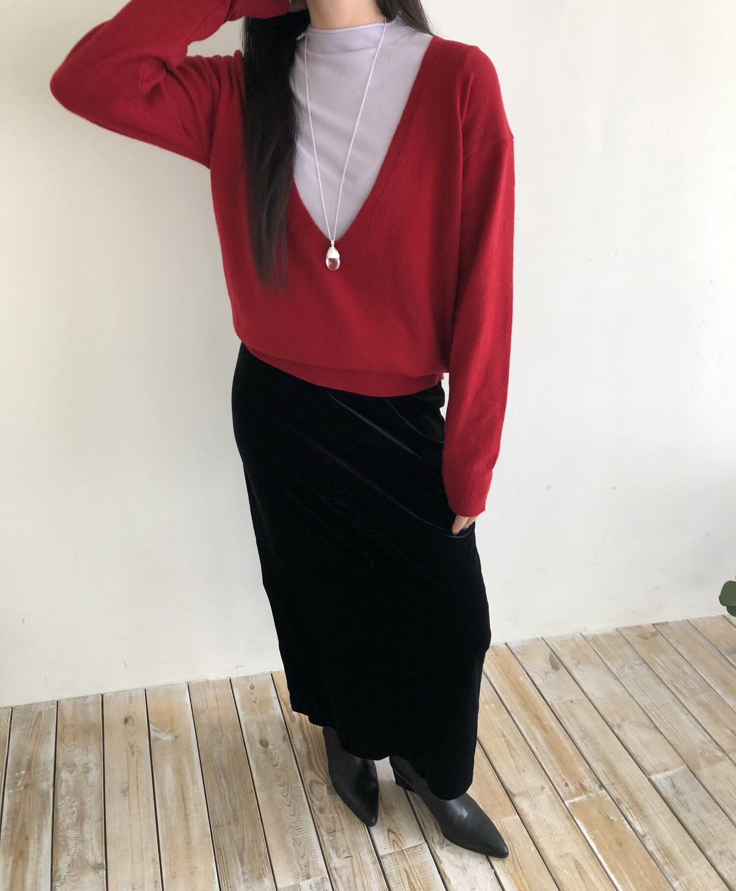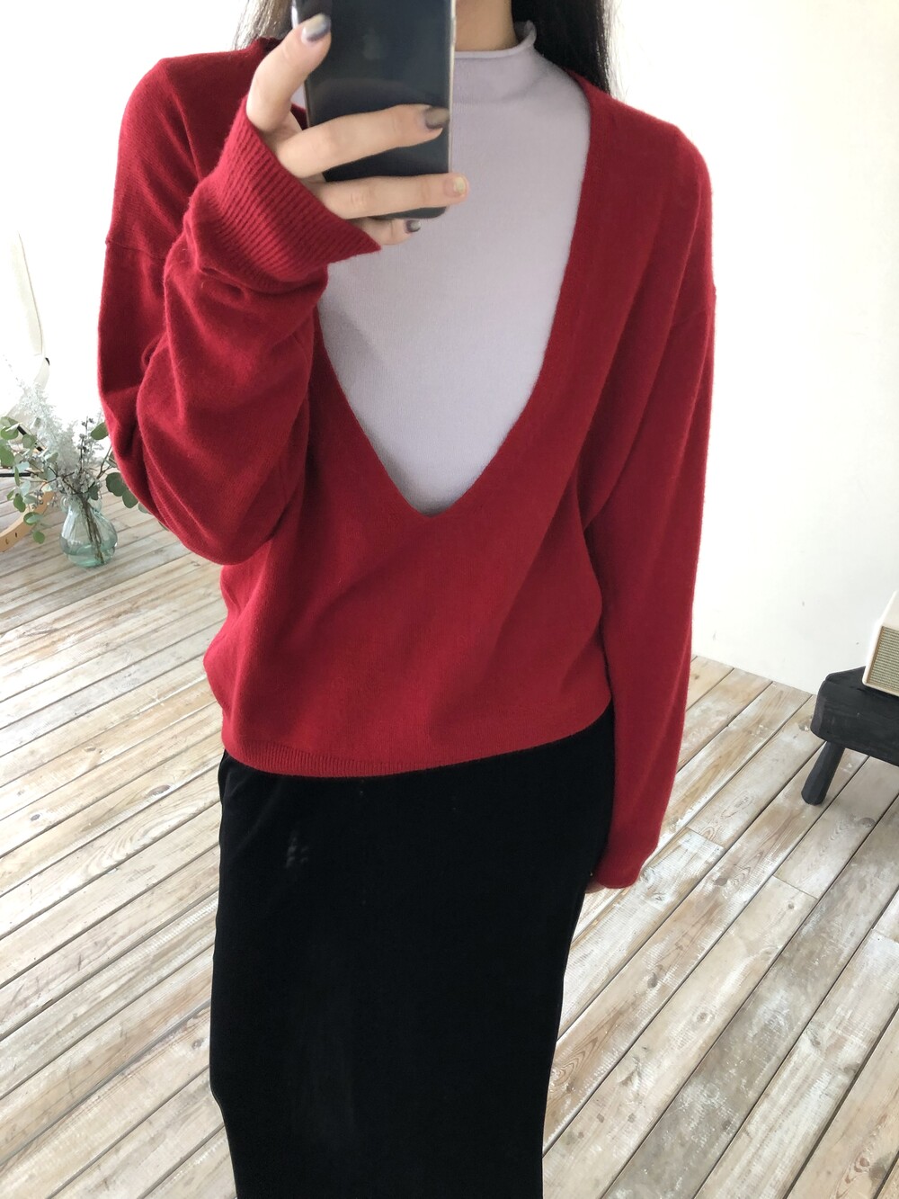 레이어드를 위해 의도된 디자인인 딥한 브이넥으로 파임 있는 편이며 얇은 이너와 레이어드하여 착용하여 더욱 멋스럽고 따뜻하게 착용 하실 수 있습니다.
