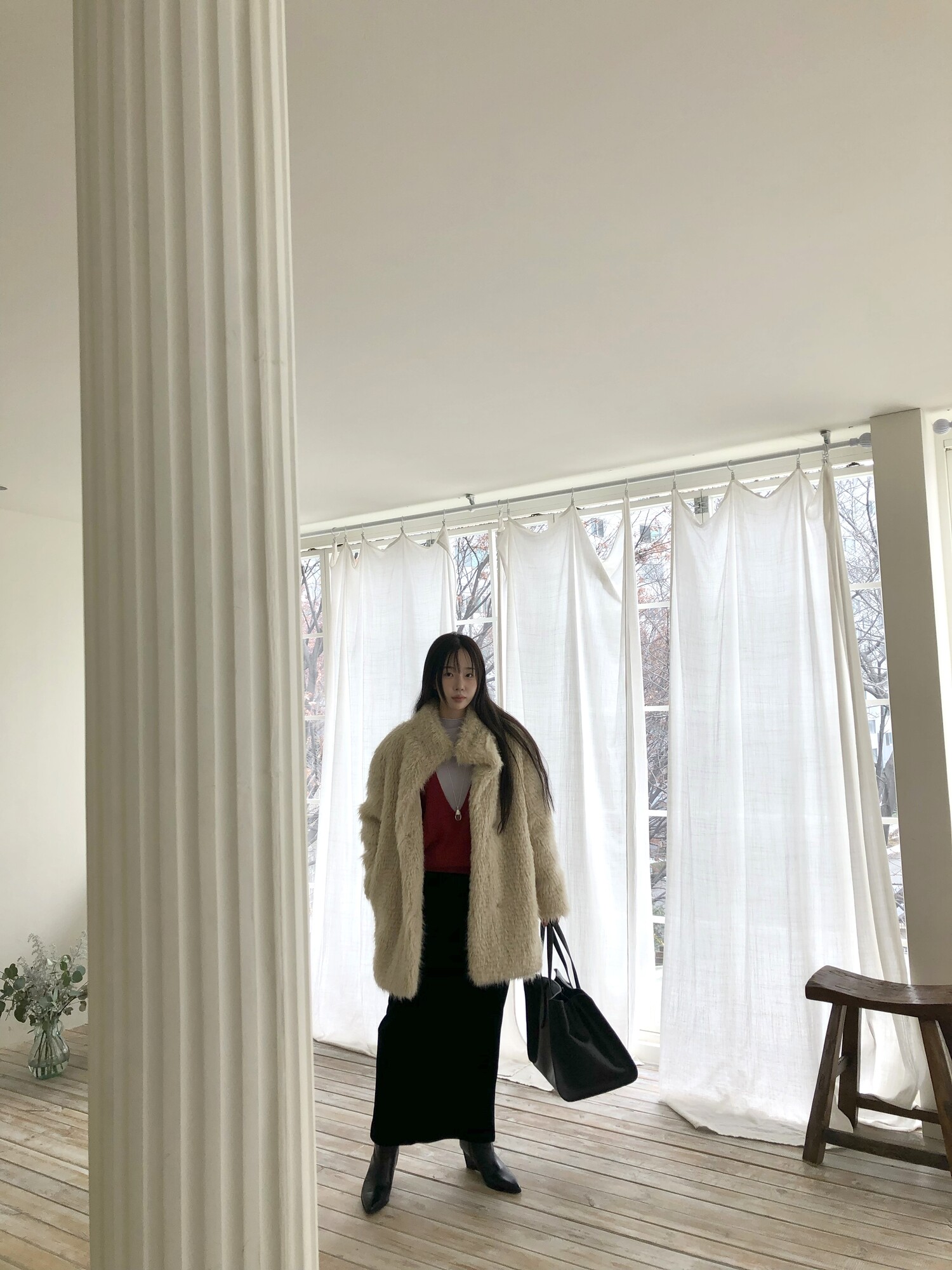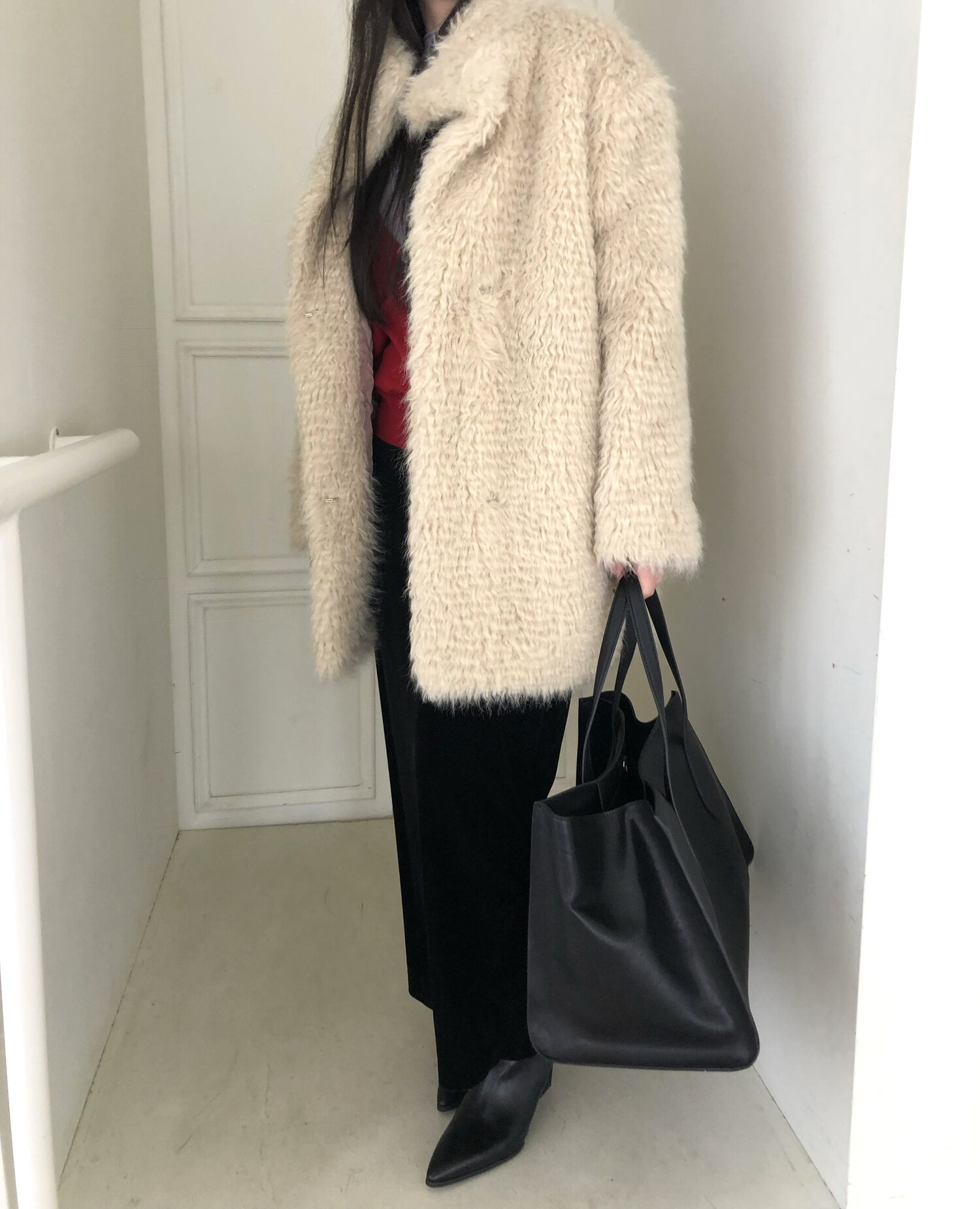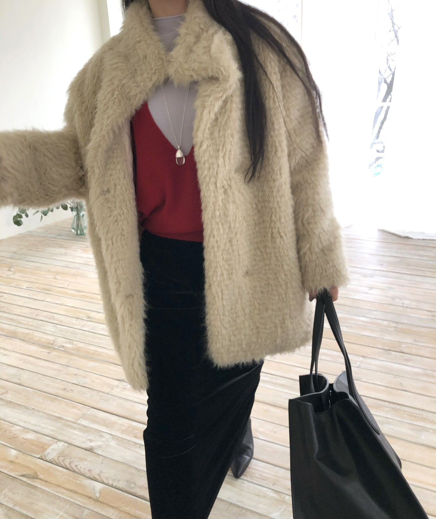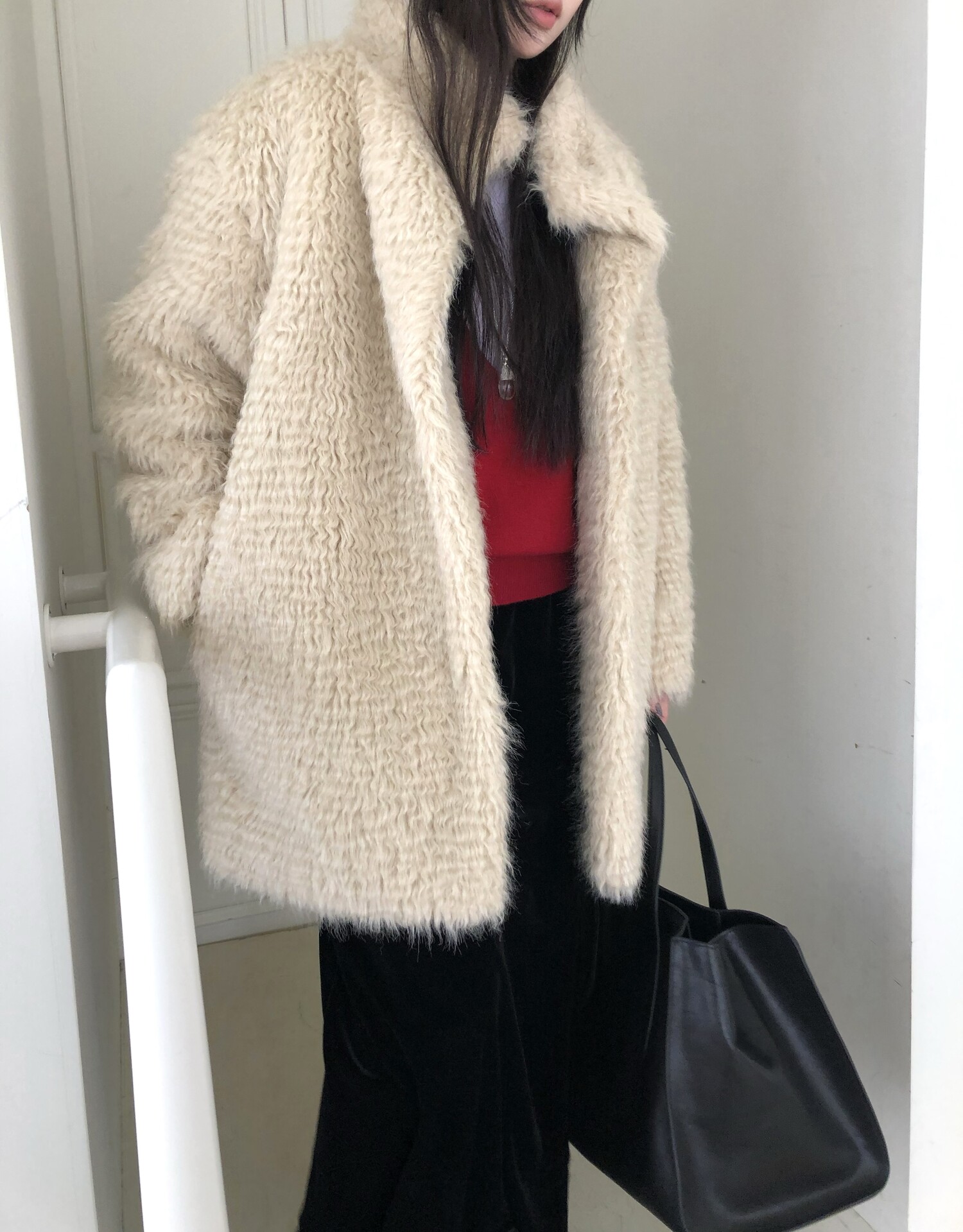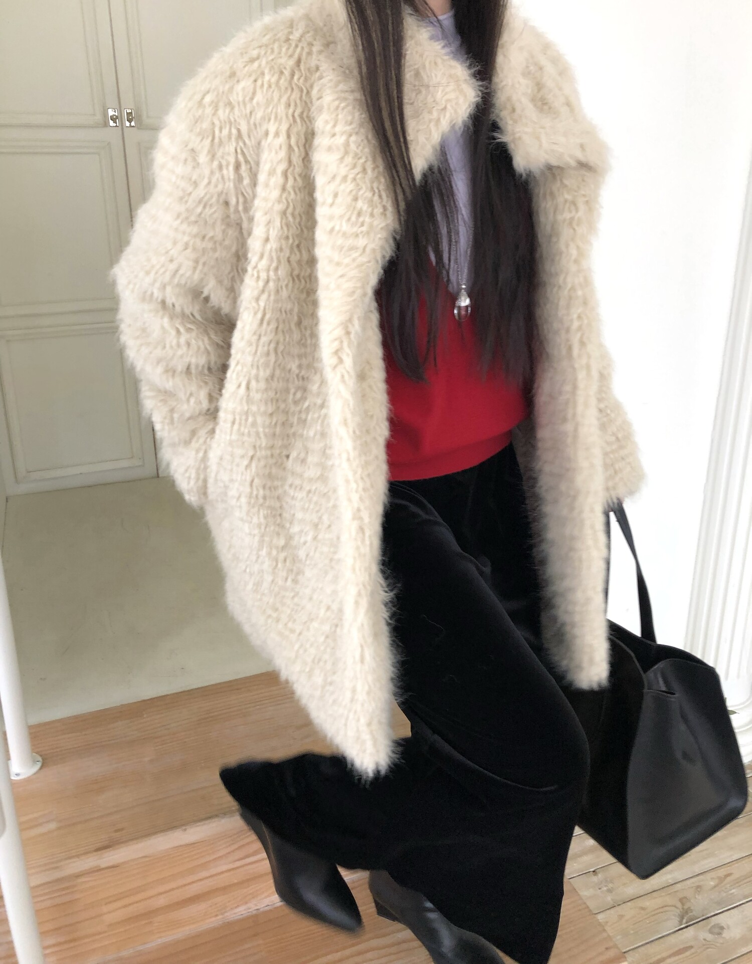 -울 블렌딩으로 보온성이 좋은 편이며 낙낙한 루즈핏으로 활동하기에도 편하며 실루엣을 슬림하게 표현해줍니다.