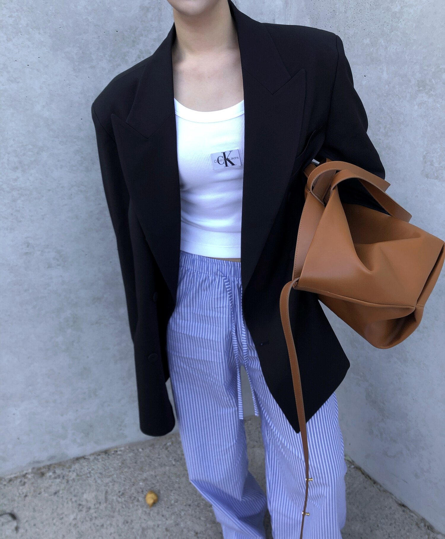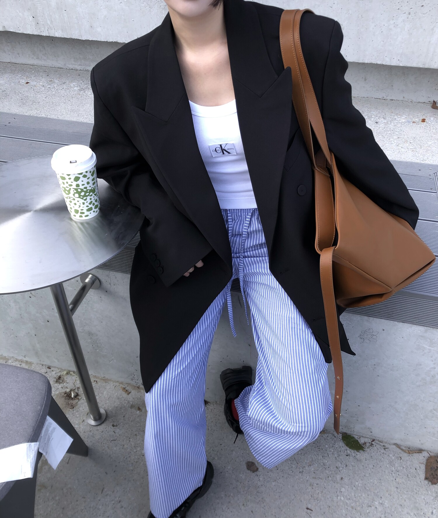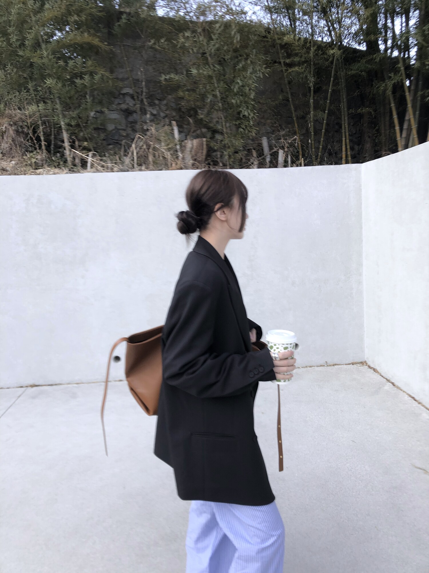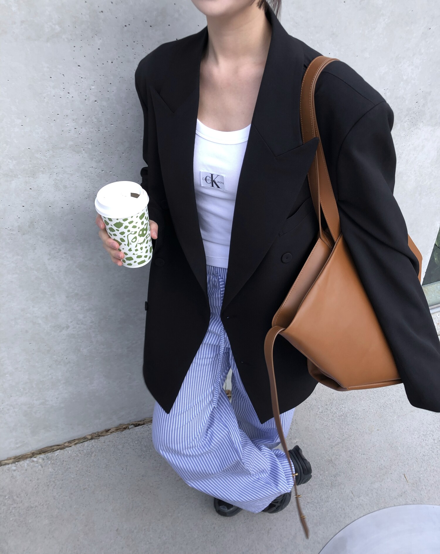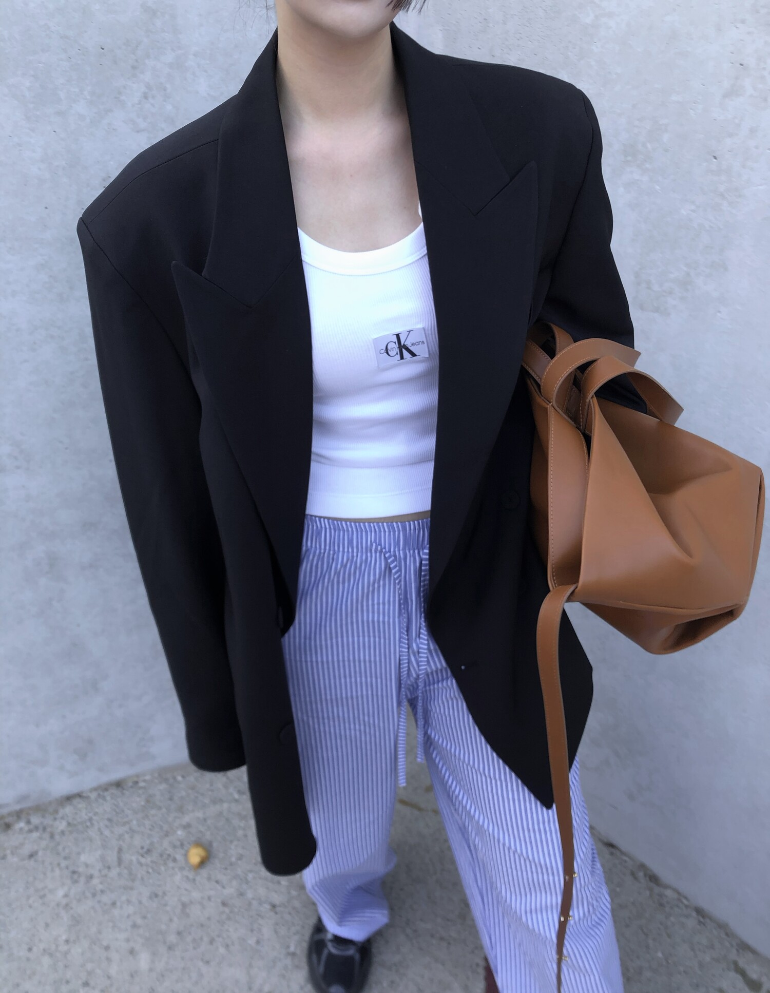 고급스런 테일러 라인의 유니섹스 오버핏 자켓이에요, 우선 길게 떨어지면서도 시크한 카라와 오버핏에 반했구요, 55기준 조금 크지만 큰 맛대로 딱 이쁘고 너무나 멋들어지는 자켓이에요, (44분께는 전체적으로 너무 클거 같아 비추드립니다.) 보이프렌핏으로 입기좋으며, 시크한 무드의 쓰리버튼으로 적당히 긴 기장까지 정말 보기힘든 고급스런 라인입니다ㅜㅜ (가격대는 또 얼마나 합리적이구요,,) 팬츠와도 찰떡이지만 롱새틴 스커트나 원피스와도 매우 잘 어울린답니다. 특별한 날 입기에도 너무 좋구요, 매트하면서도 구김성 적은 원단과 고급스런 버튼, 오버한 숄더라인에서 툭 떨어지는 핏까지 너무나 제 스타일입니다,,요런 자켓에 프렌치한 감성의 흰나시와 파자마스런 위트있는 스트라이프 팬츠, 무심한 듯 툭 걸친 빅 숄더백..꼭 입어보고 싶었던 룩이기도 하구요, 그냥 메종메츄어의 취향가득 담은 룩이에요,,! 프렌치한 감성의 오버핏 자켓 찾으신다면 무조건 이거요,,,적극 추천드립니다.