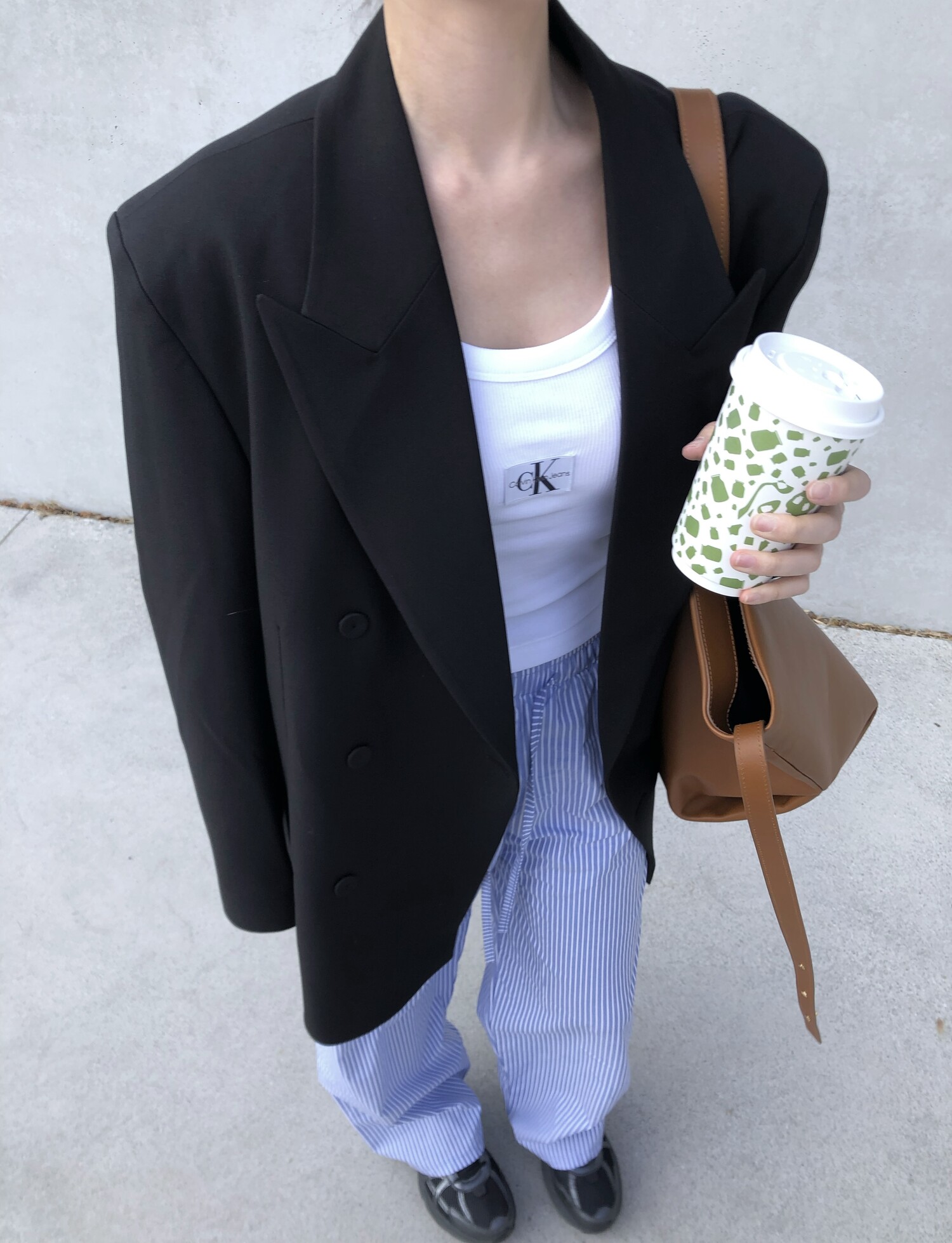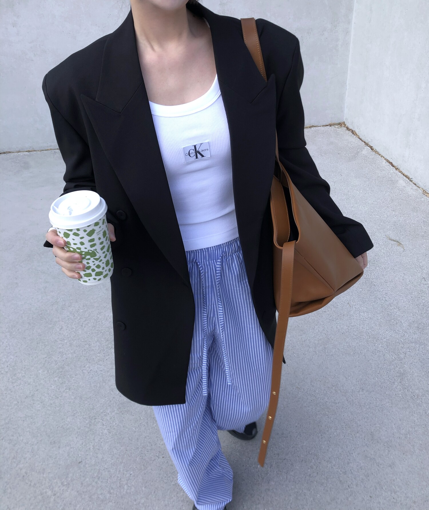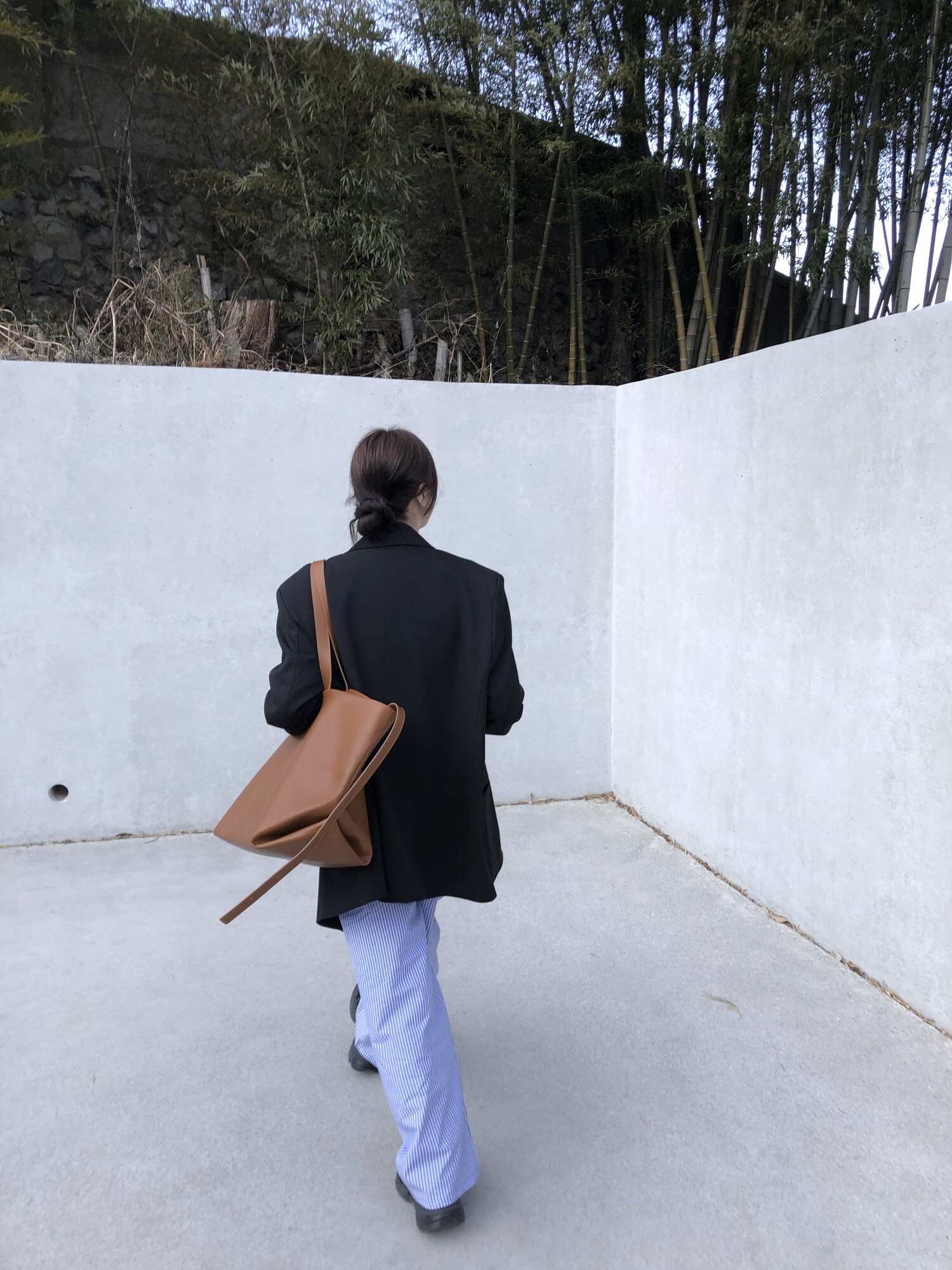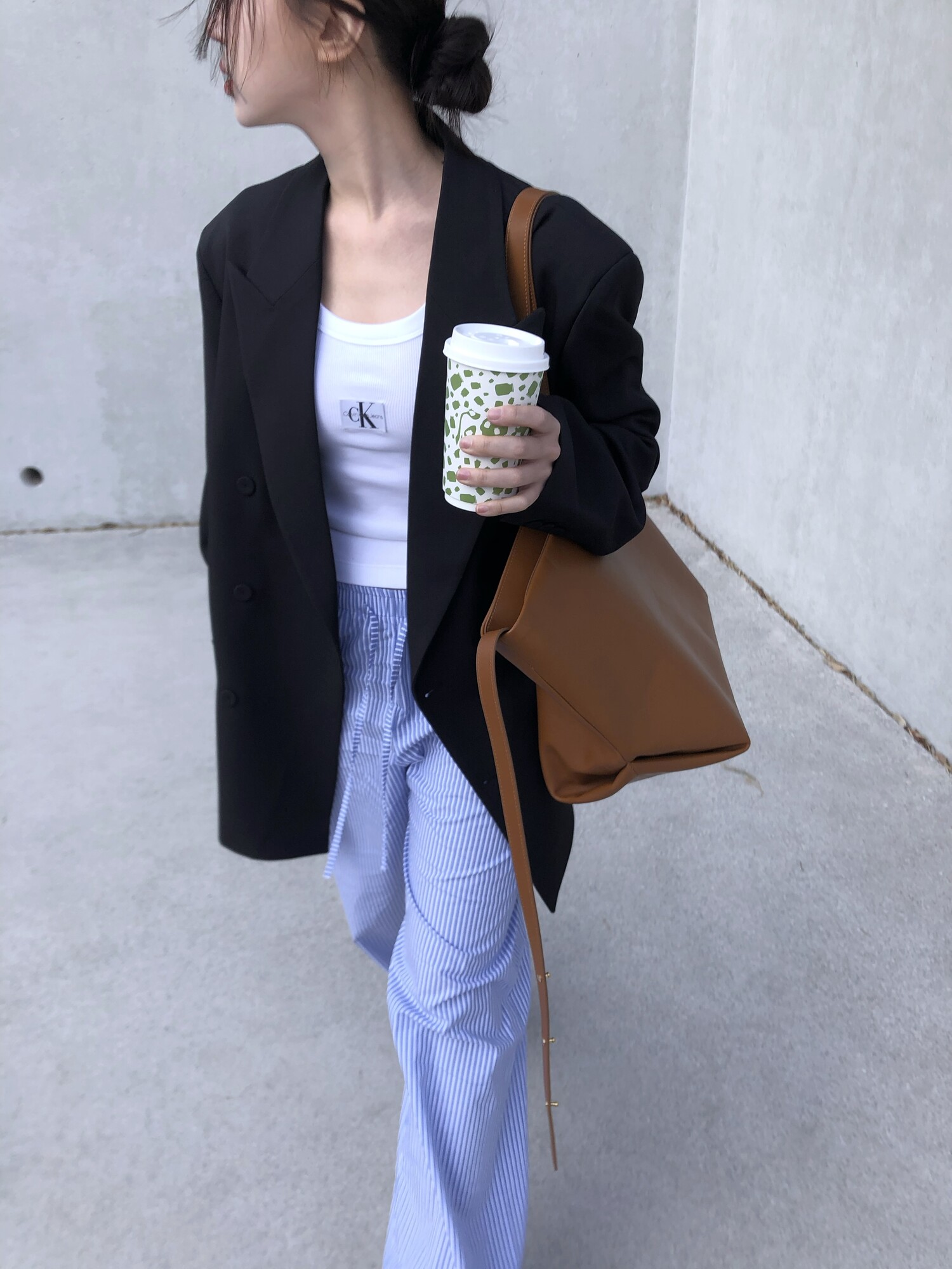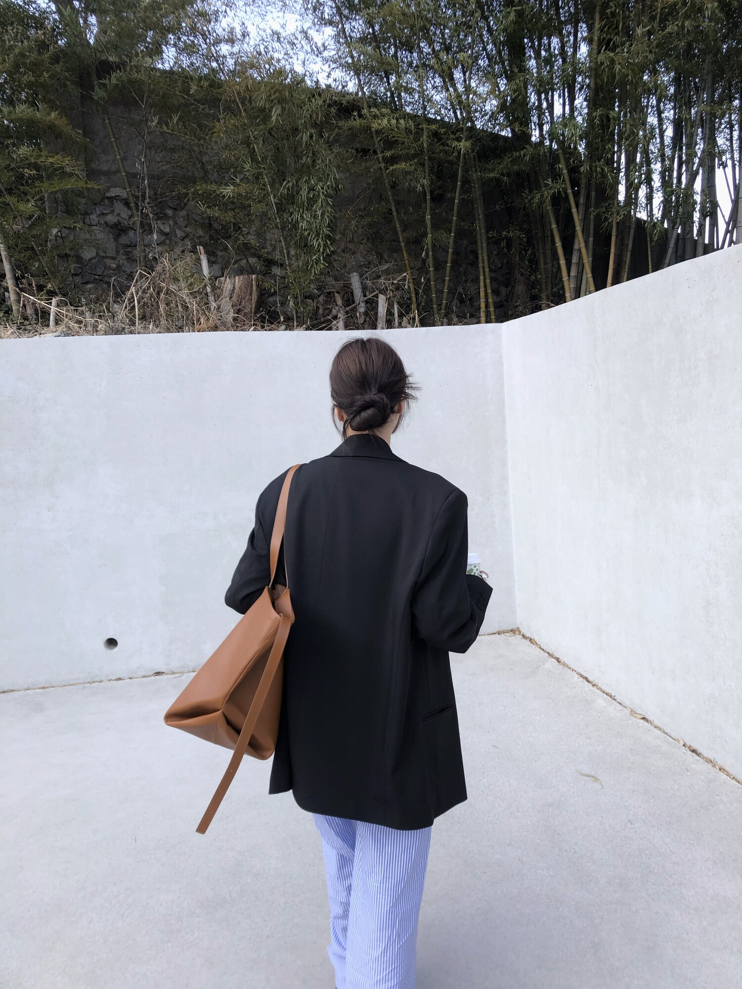 고급스런 테일러 라인의 유니섹스 오버핏 자켓이에요, 우선 길게 떨어지면서도 시크한 카라와 오버핏에 반했구요, 55기준 조금 크지만 큰 맛대로 딱 이쁘고 너무나 멋들어지는 자켓이에요, (44분께는 전체적으로 너무 클거 같아 비추드립니다.) 보이프렌핏으로 입기좋으며, 시크한 무드의 쓰리버튼으로 적당히 긴 기장까지 정말 보기힘든 고급스런 라인입니다ㅜㅜ (가격대는 또 얼마나 합리적이구요,,) 팬츠와도 찰떡이지만 롱새틴 스커트나 원피스와도 매우 잘 어울린답니다. 특별한 날 입기에도 너무 좋구요, 매트하면서도 구김성 적은 원단과 고급스런 버튼, 오버한 숄더라인에서 툭 떨어지는 핏까지 너무나 제 스타일입니다,,요런 자켓에 프렌치한 감성의 흰나시와 파자마스런 위트있는 스트라이프 팬츠, 무심한 듯 툭 걸친 빅 숄더백..꼭 입어보고 싶었던 룩이기도 하구요, 그냥 메종메츄어의 취향가득 담은 룩이에요,,! 프렌치한 감성의 오버핏 자켓 찾으신다면 무조건 이거요,,,적극 추천드립니다.