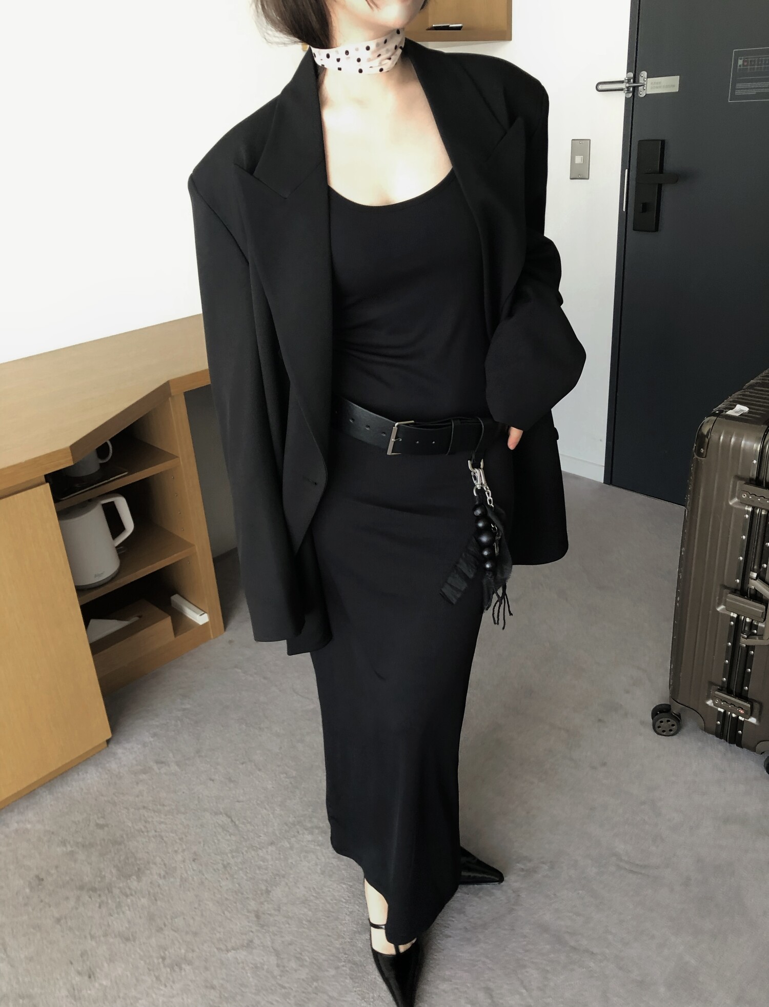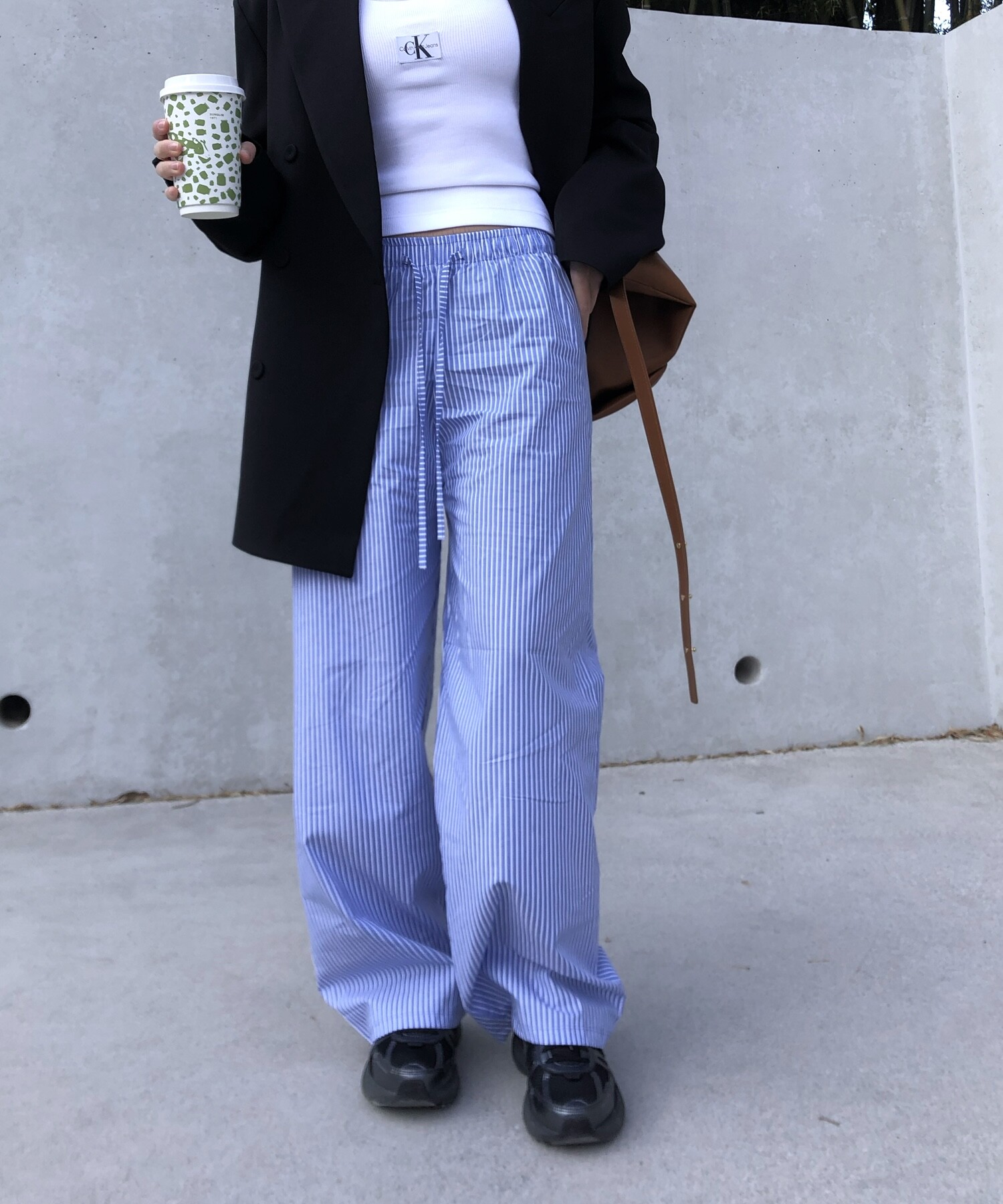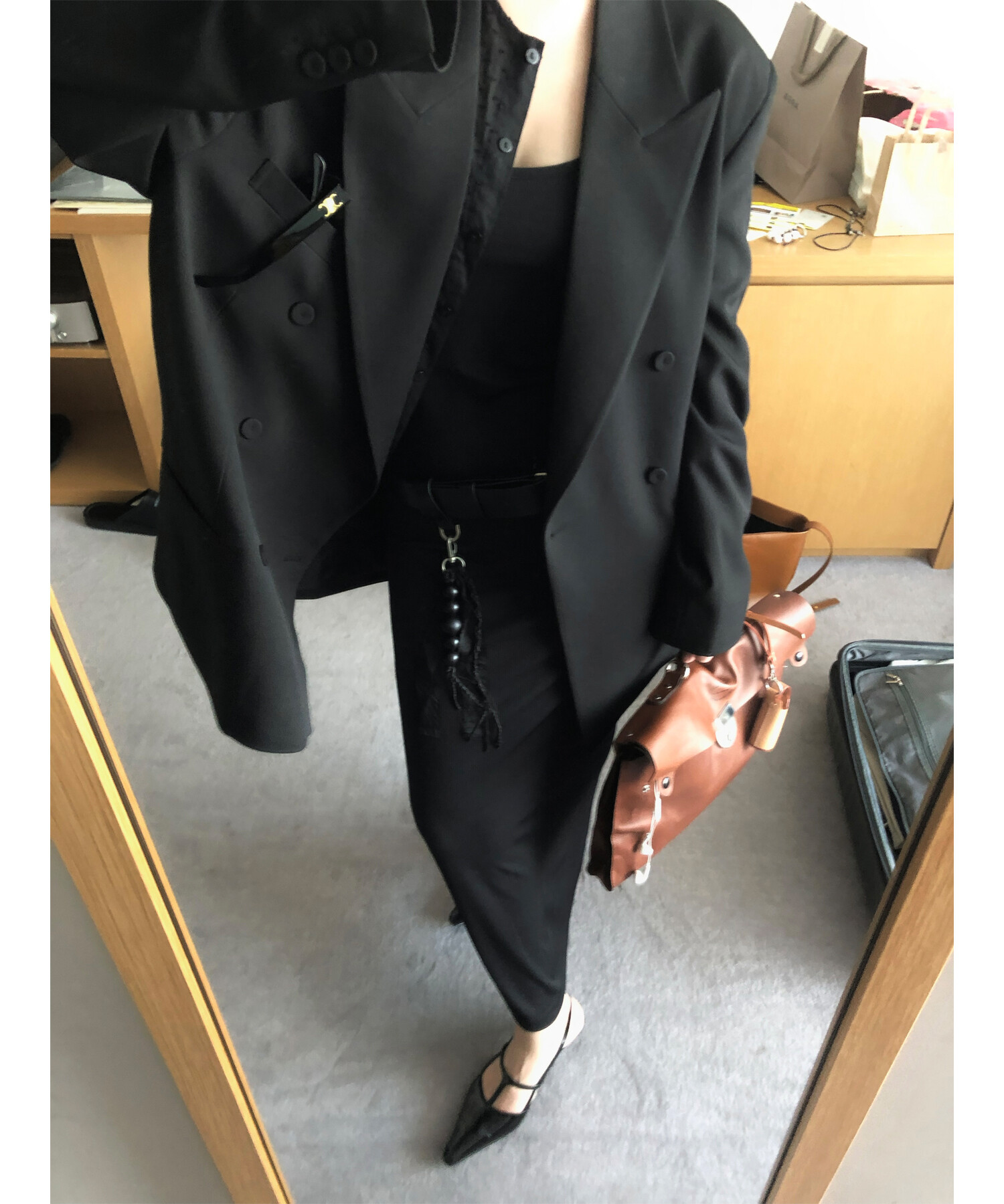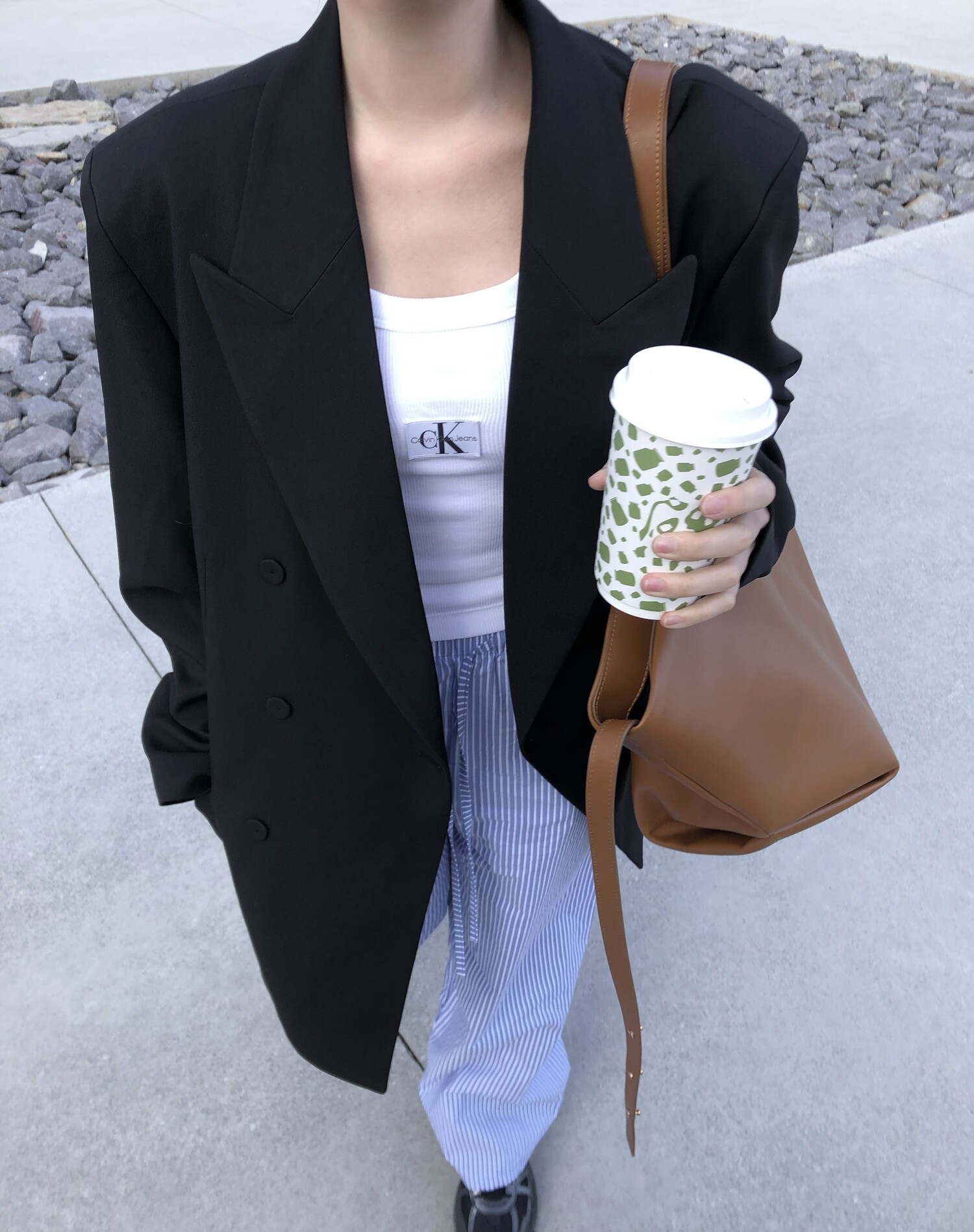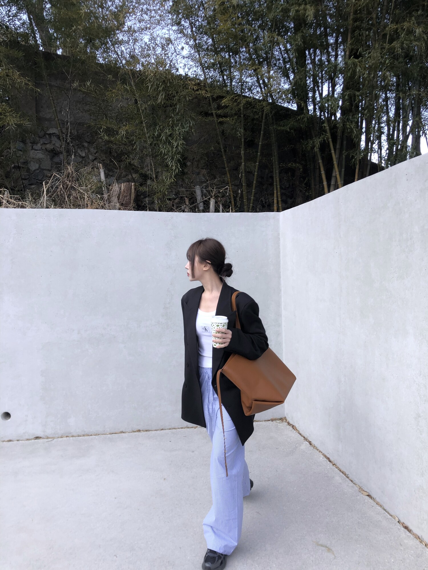 고급스런 테일러 라인의 유니섹스 오버핏 자켓이에요, 우선 길게 떨어지면서도 시크한 카라와 오버핏에 반했구요, 55기준 조금 크지만 큰 맛대로 딱 이쁘고 너무나 멋들어지는 자켓이에요, (44분께는 전체적으로 너무 클거 같아 비추드립니다.) 보이프렌핏으로 입기좋으며, 시크한 무드의 쓰리버튼으로 적당히 긴 기장까지 정말 보기힘든 고급스런 라인입니다ㅜㅜ (가격대는 또 얼마나 합리적이구요,,) 팬츠와도 찰떡이지만 롱새틴 스커트나 원피스와도 매우 잘 어울린답니다. 특별한 날 입기에도 너무 좋구요, 매트하면서도 구김성 적은 원단과 고급스런 버튼, 오버한 숄더라인에서 툭 떨어지는 핏까지 너무나 제 스타일입니다,,요런 자켓에 프렌치한 감성의 흰나시와 파자마스런 위트있는 스트라이프 팬츠, 무심한 듯 툭 걸친 빅 숄더백..꼭 입어보고 싶었던 룩이기도 하구요, 그냥 메종메츄어의 취향가득 담은 룩이에요,,! 프렌치한 감성의 오버핏 자켓 찾으신다면 무조건 이거요,,,적극 추천드립니다.