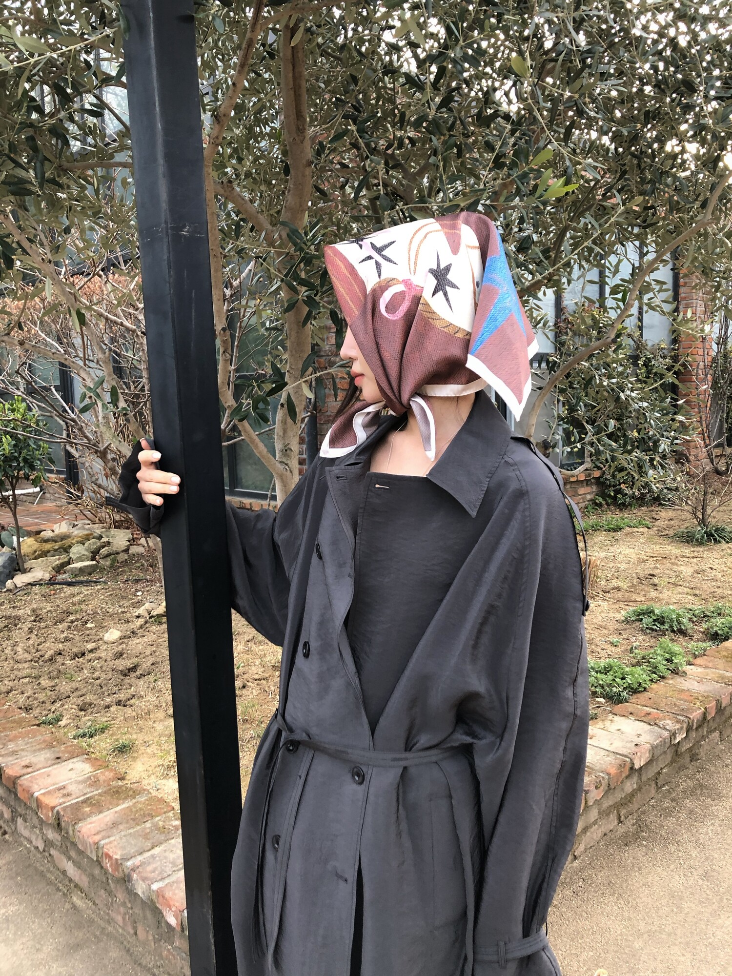 Horse silky scarf-brown
