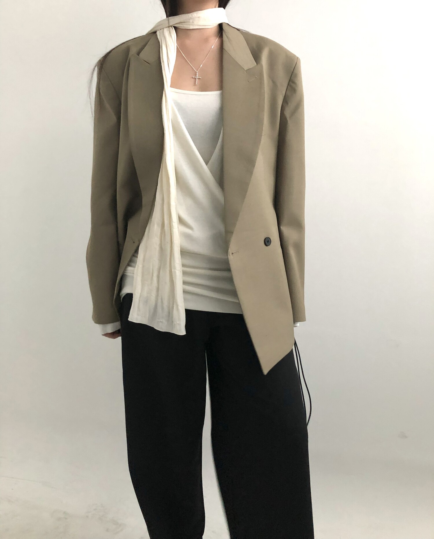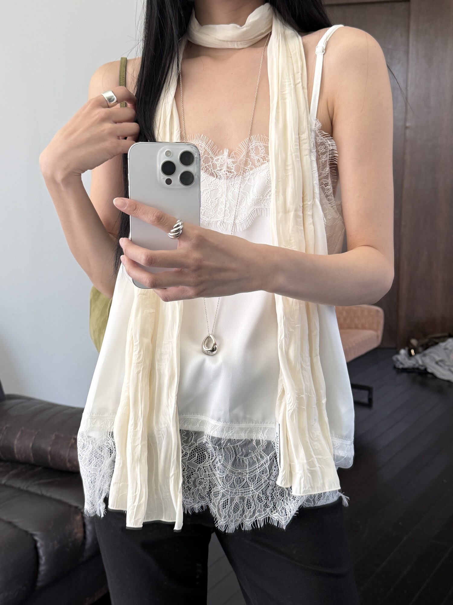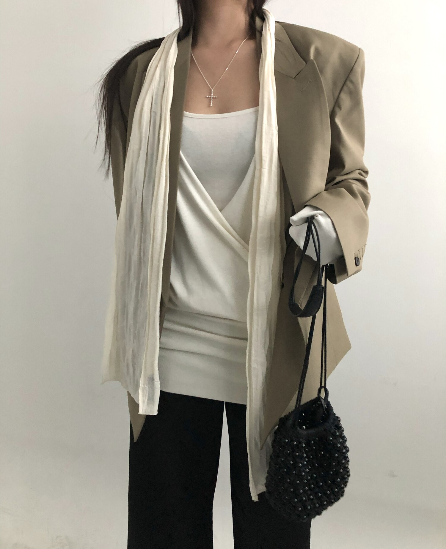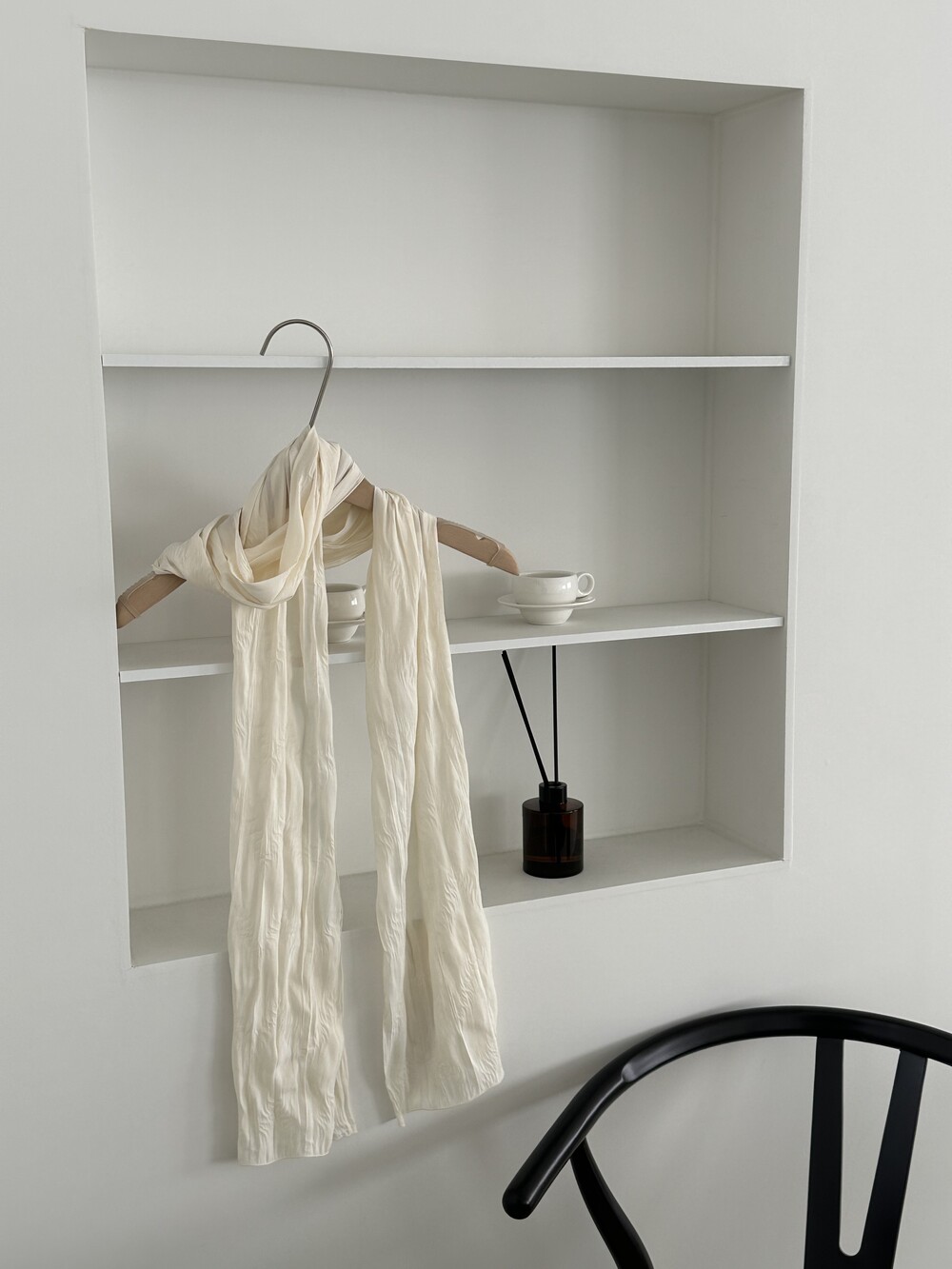 Row silky long scarf-cream