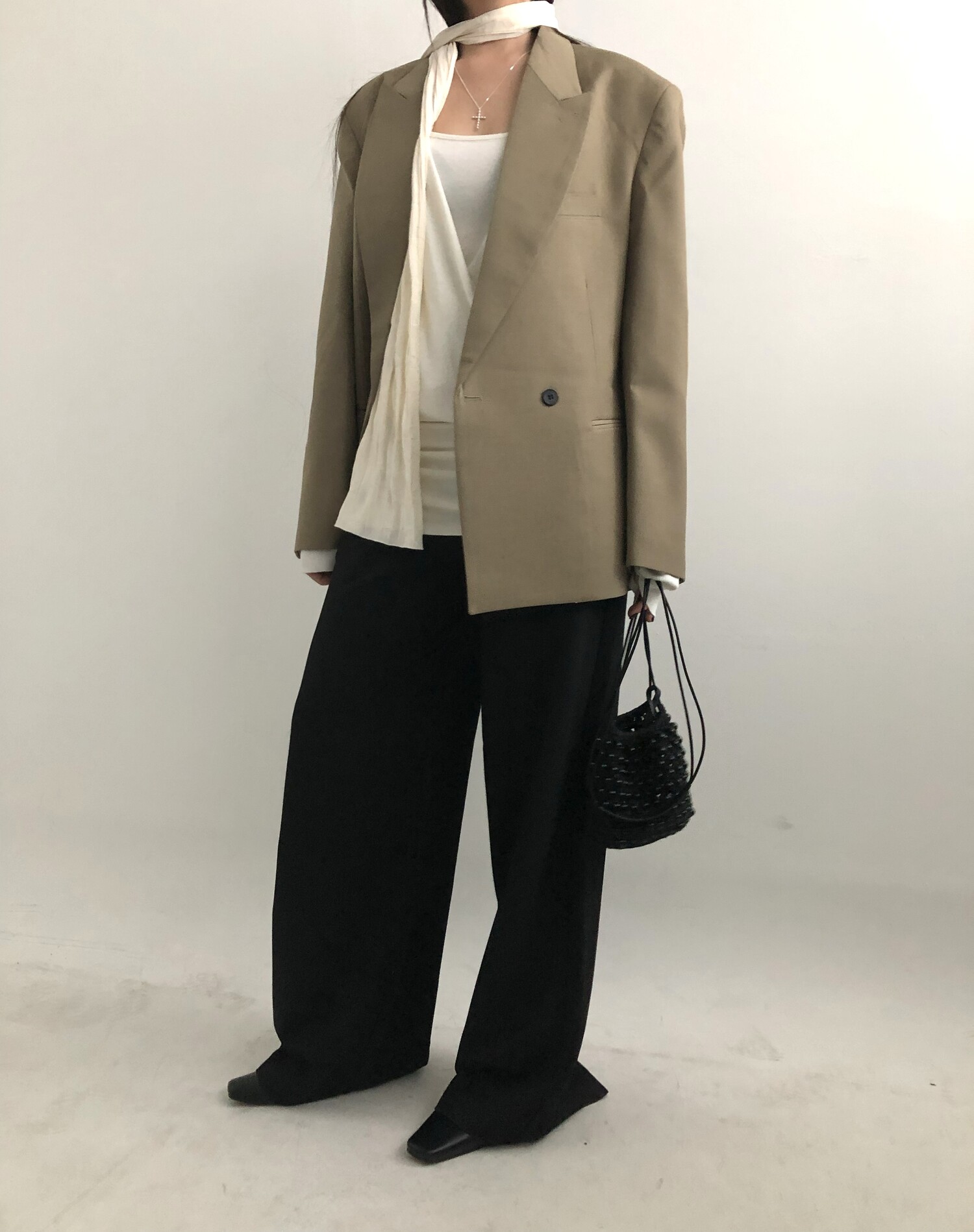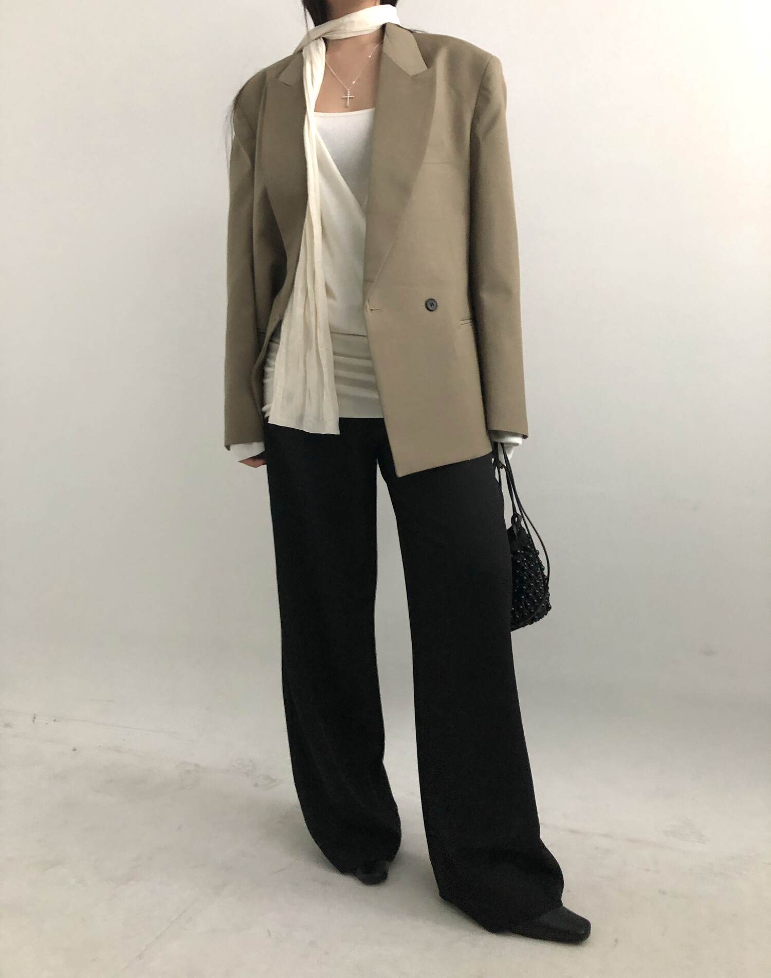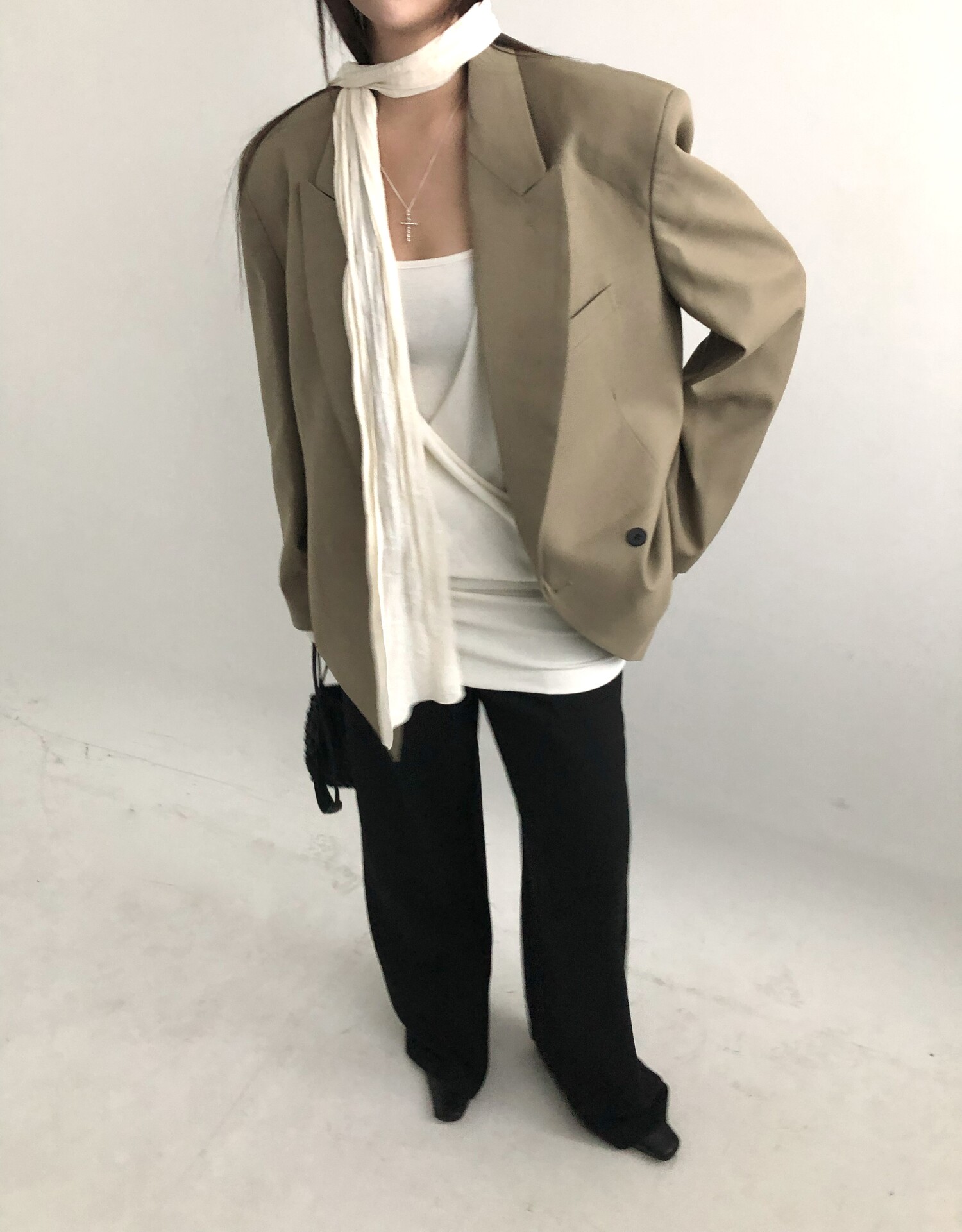 Row silky long scarf-cream