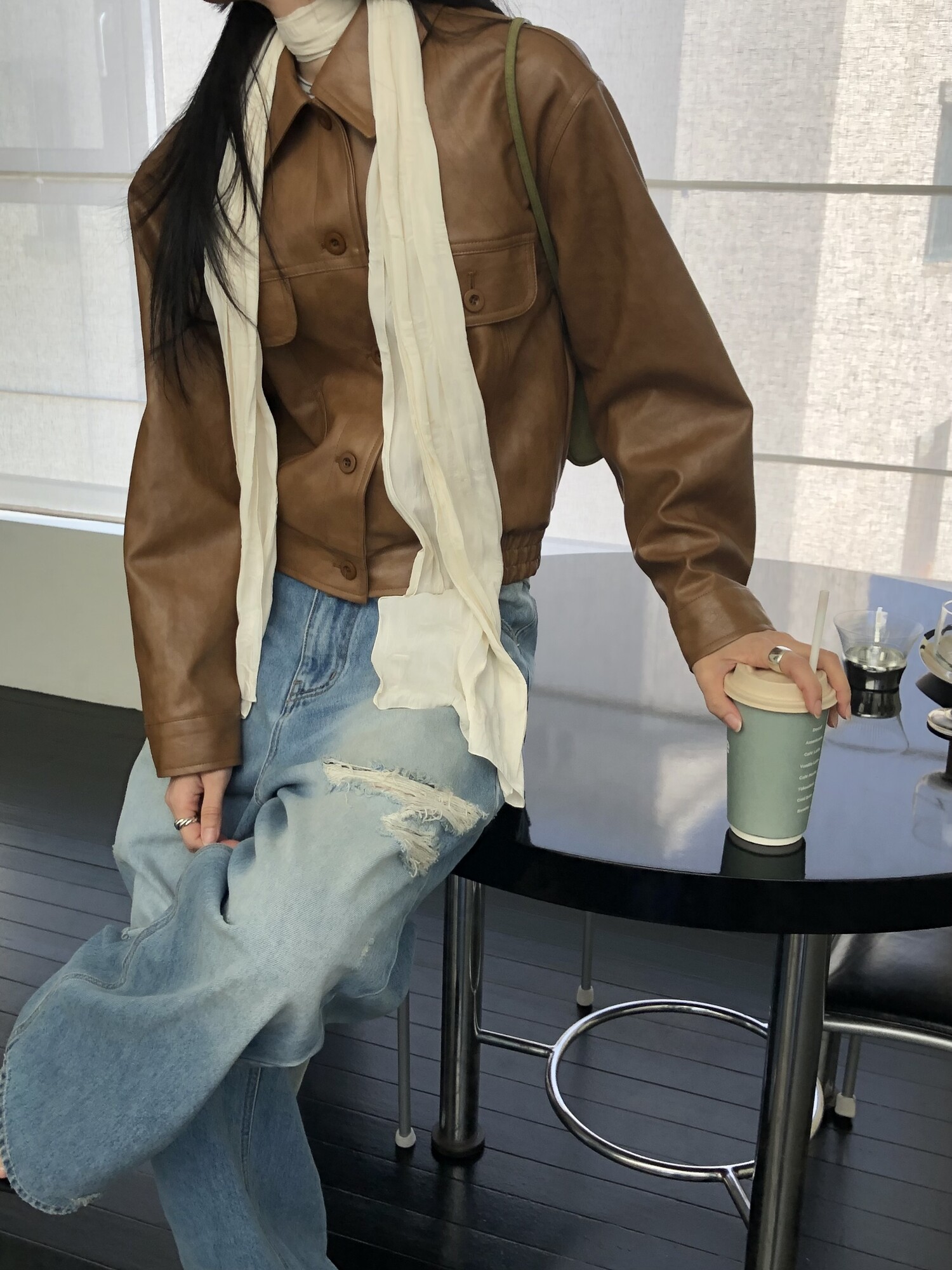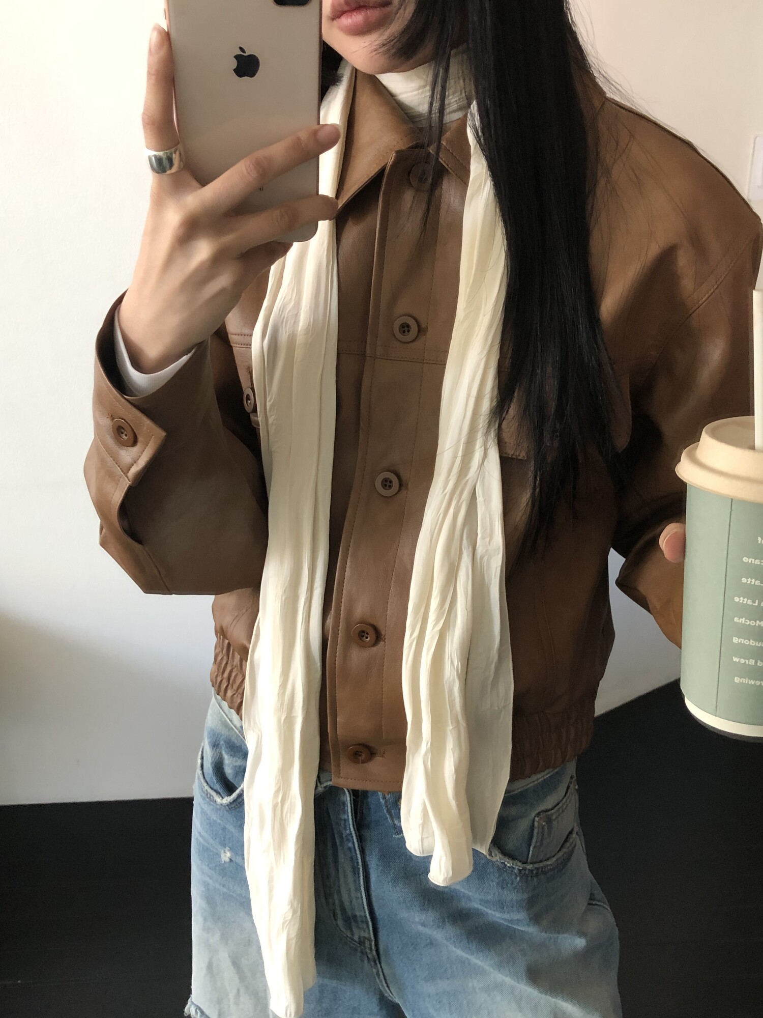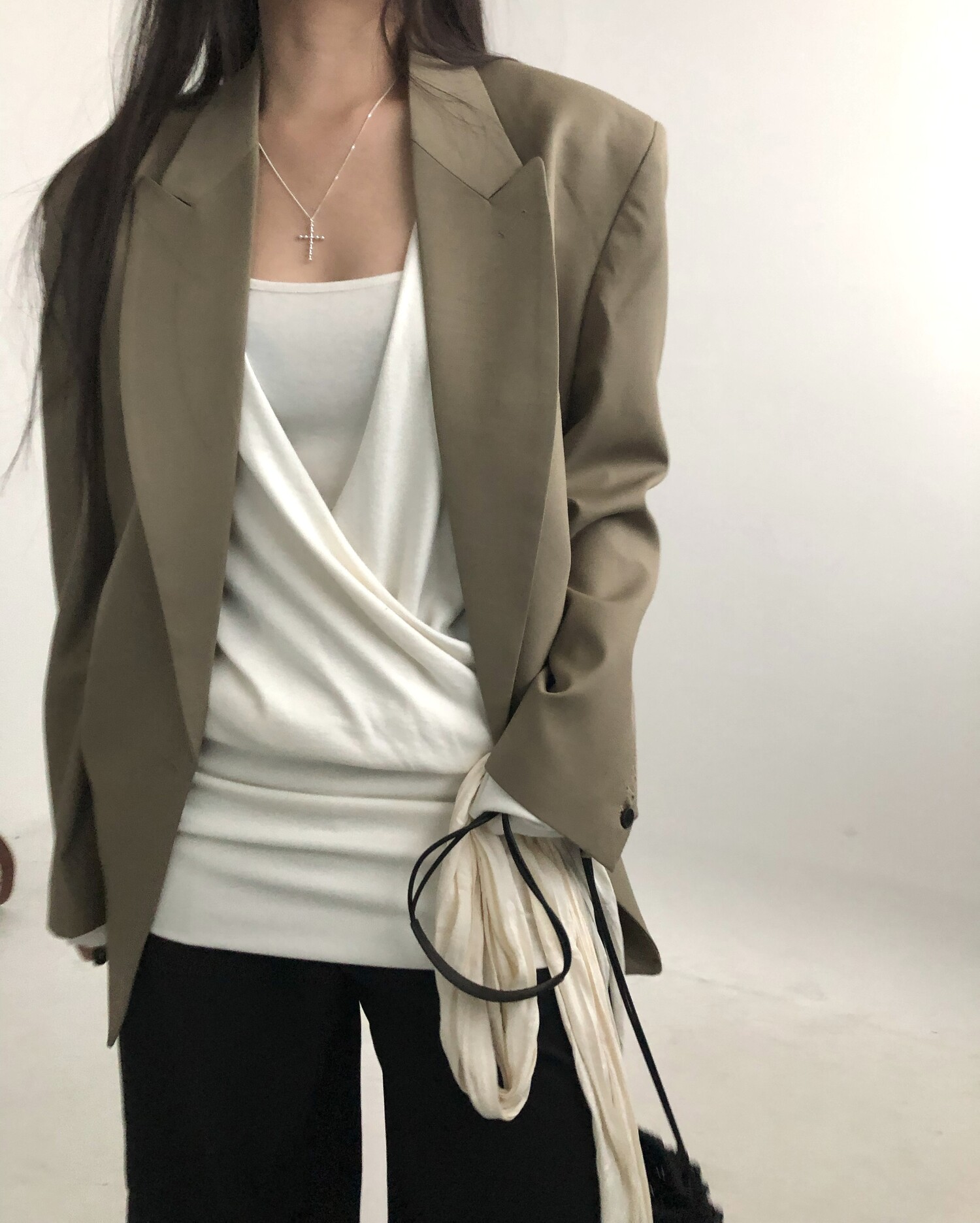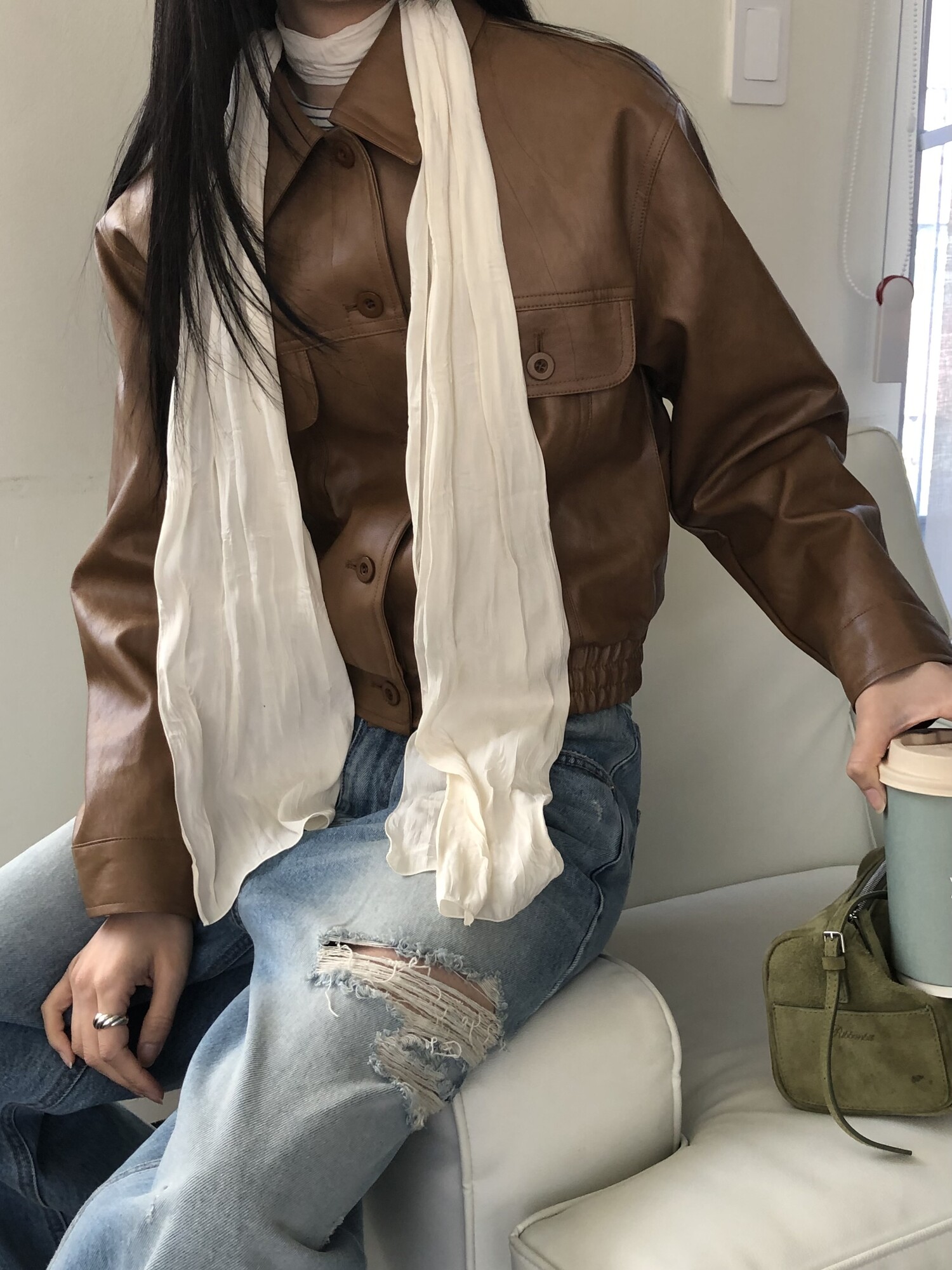 Row silky long scarf-cream