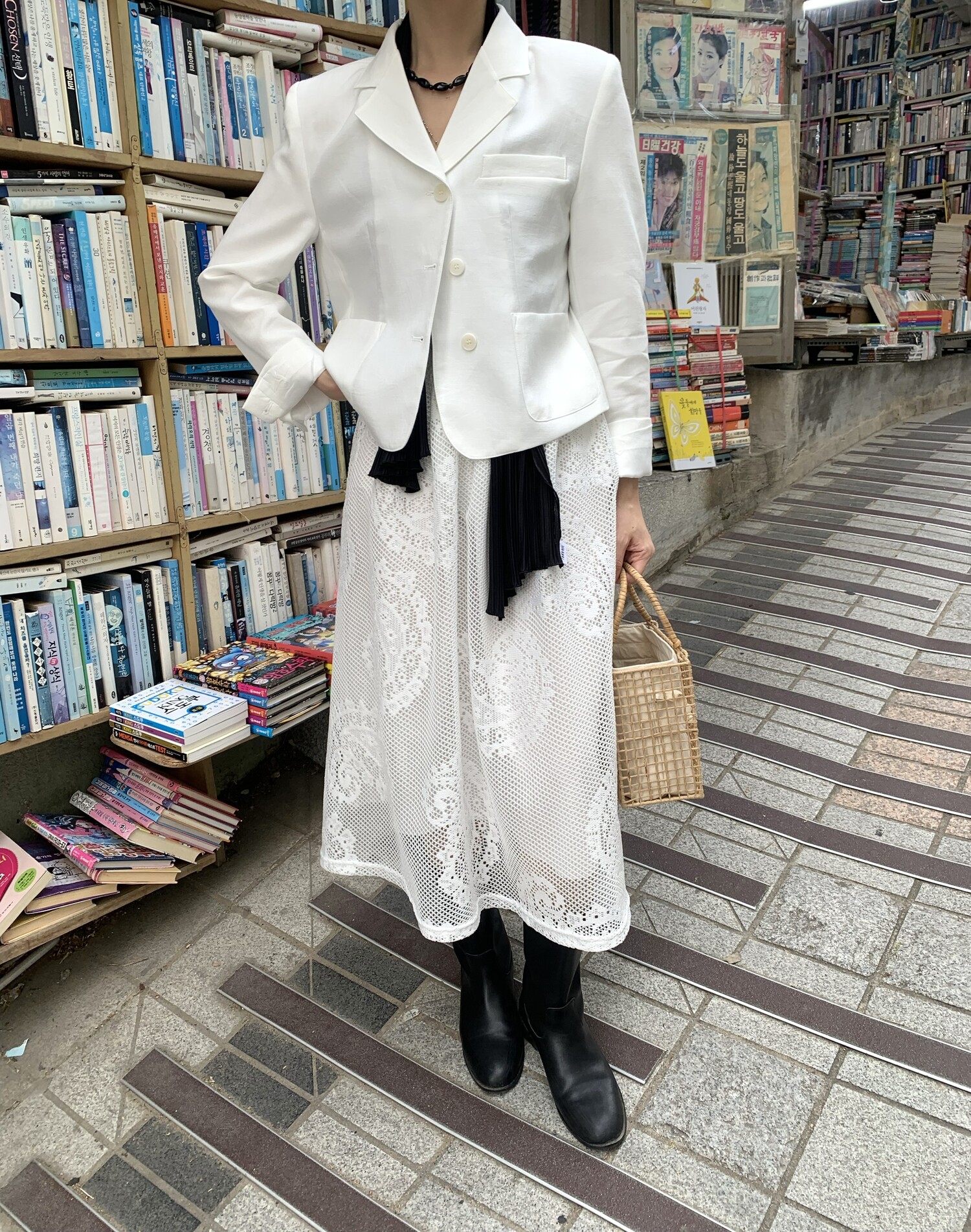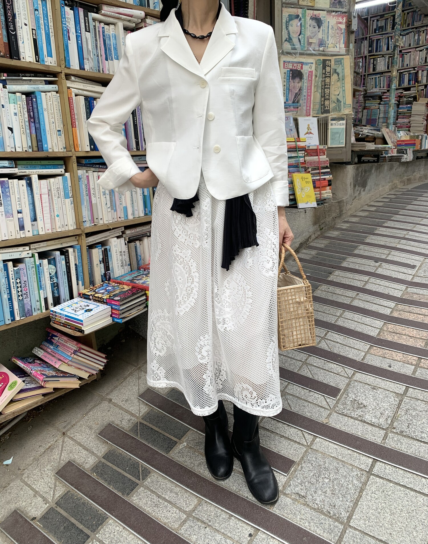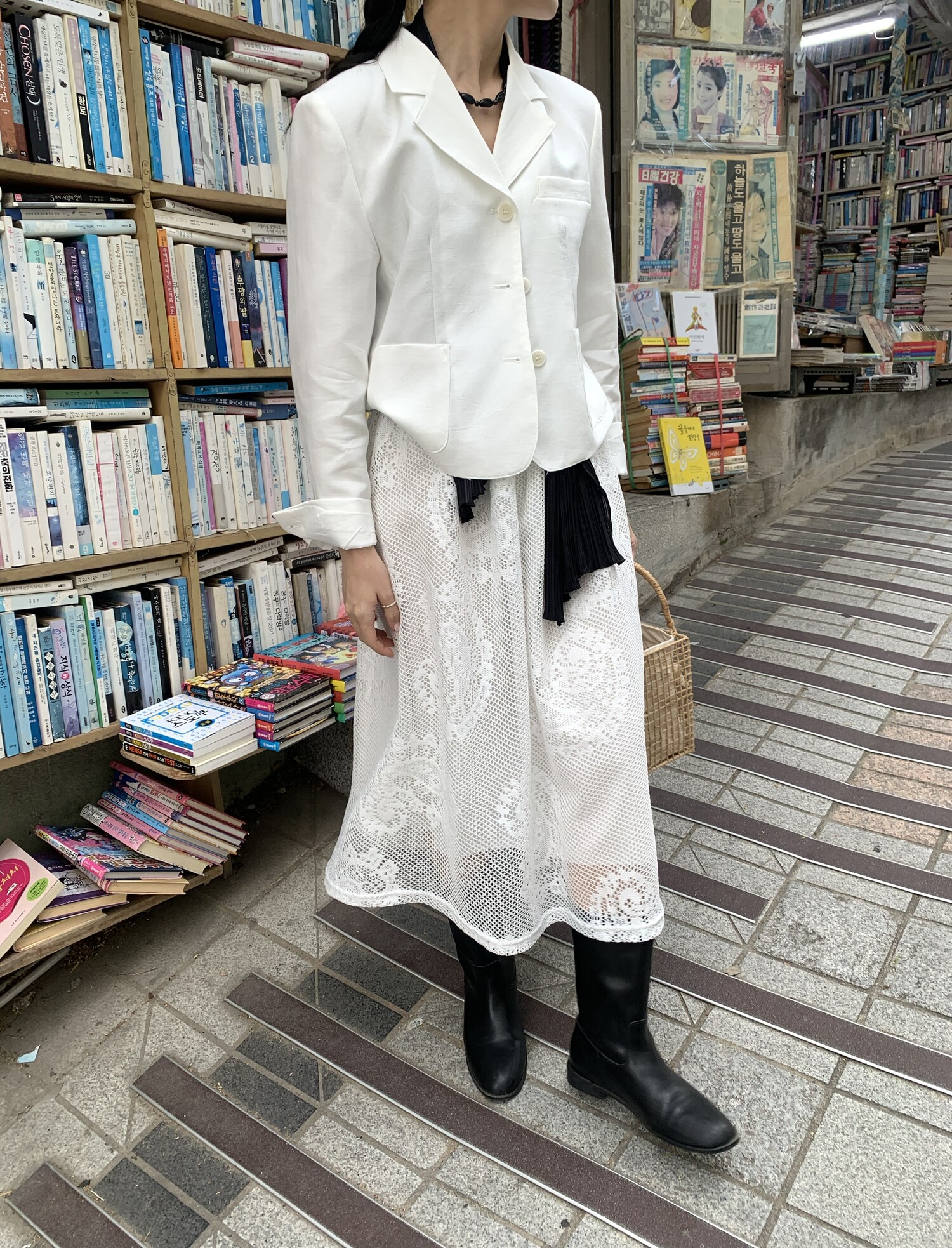 162cm / 허리 28 (상의 s, 하의m 힙과 허벅지가 큰편) / 신발 240mm