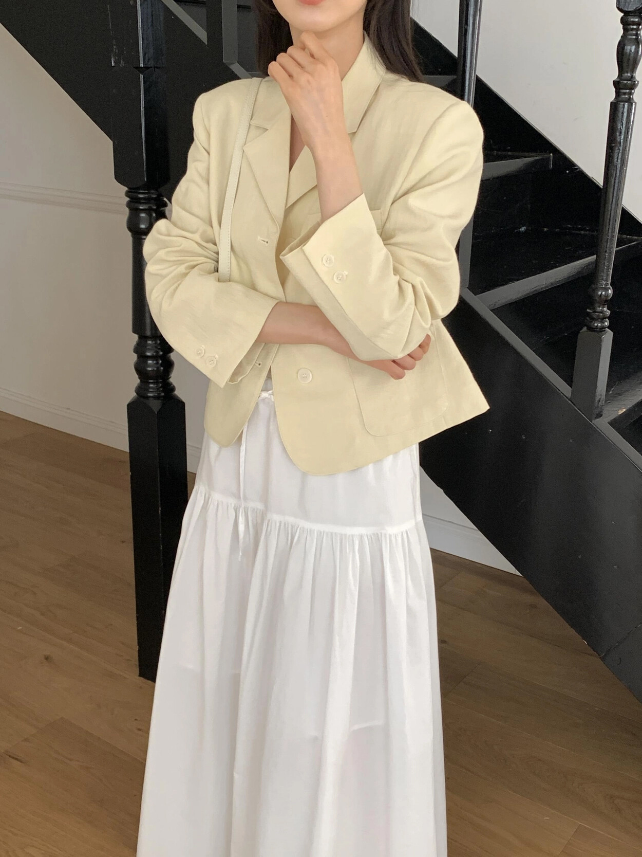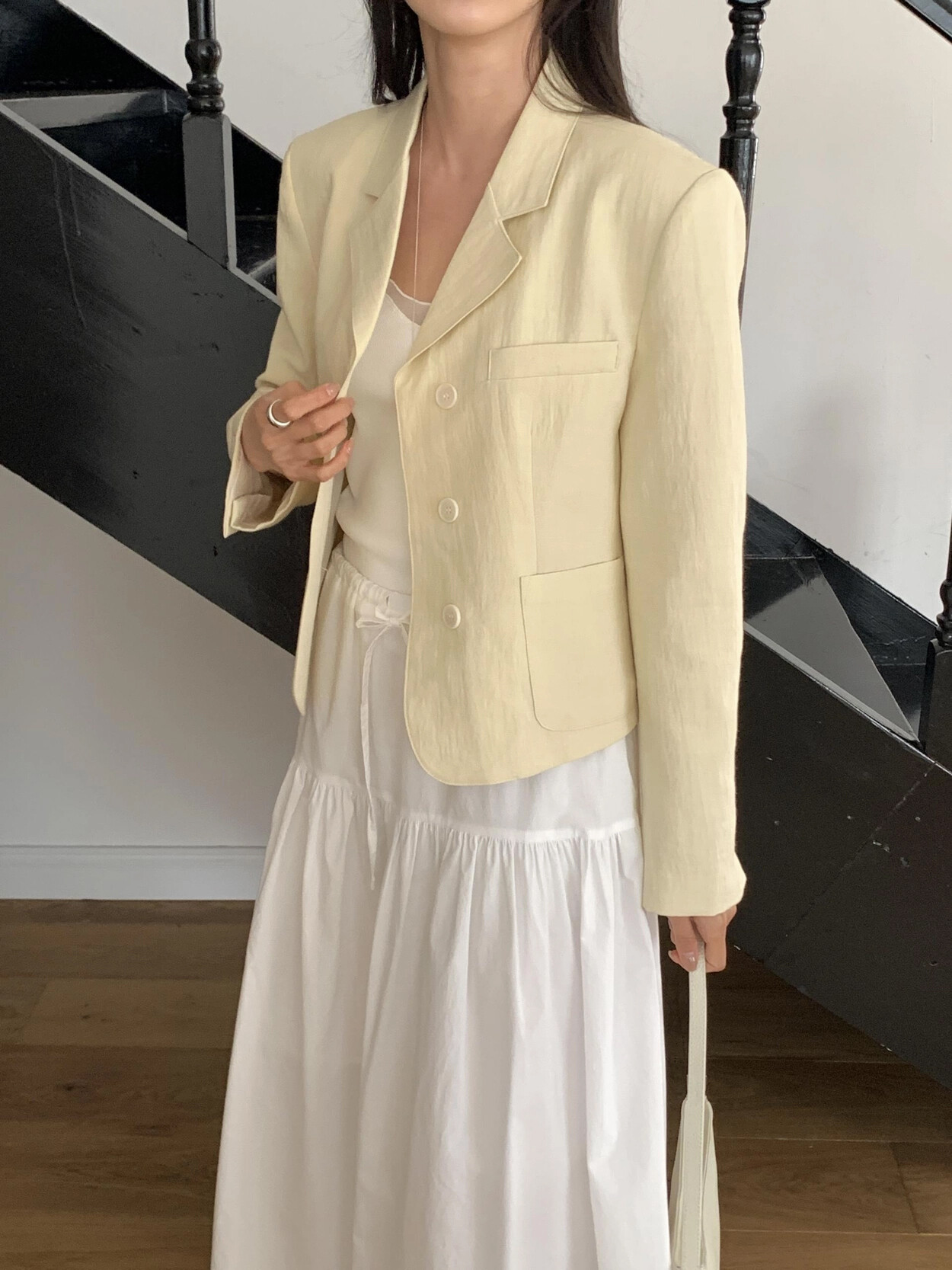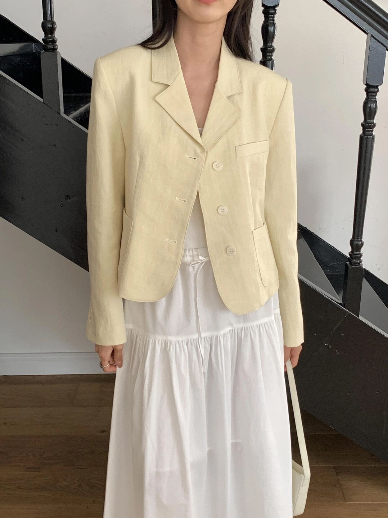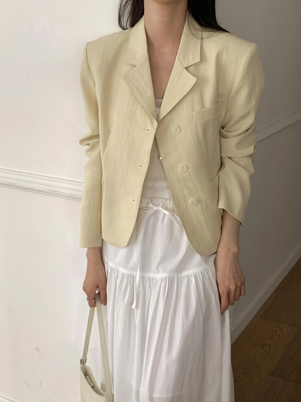 -가볍게 입기좋은 소재감의 ss 크롭재킷(숄더패드&안감내장)
