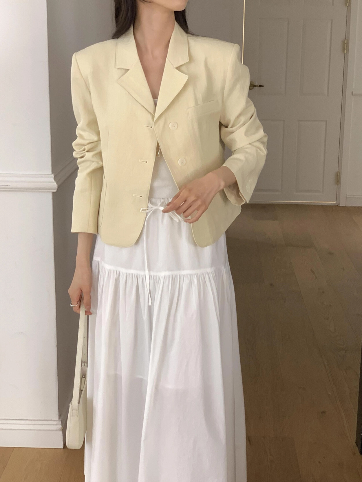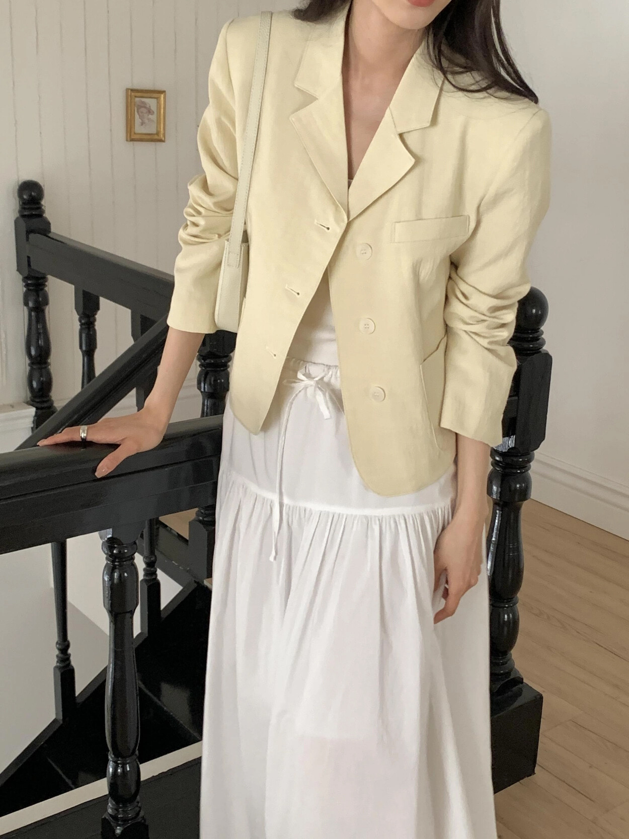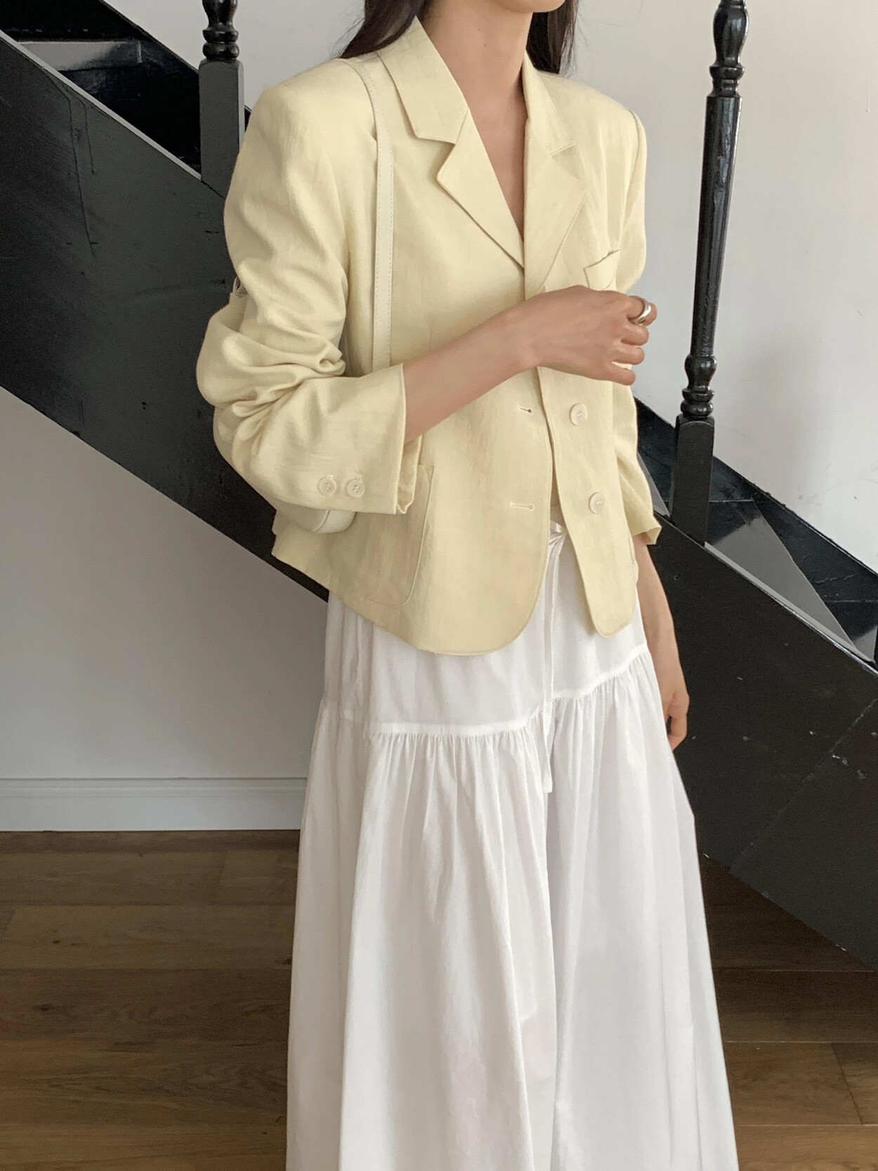 -가볍게 입기좋은 소재감의 ss 크롭재킷(숄더패드&안감내장)