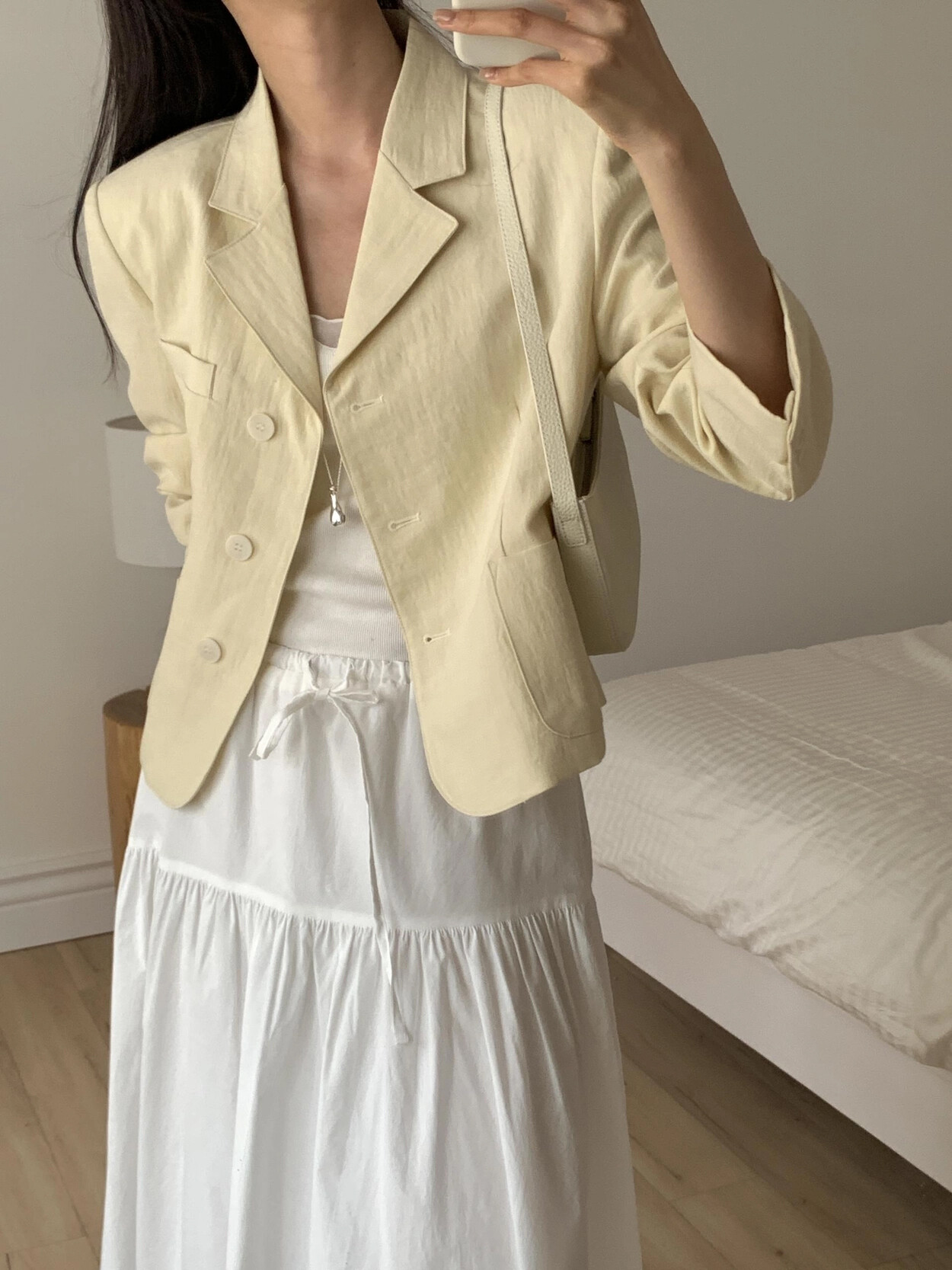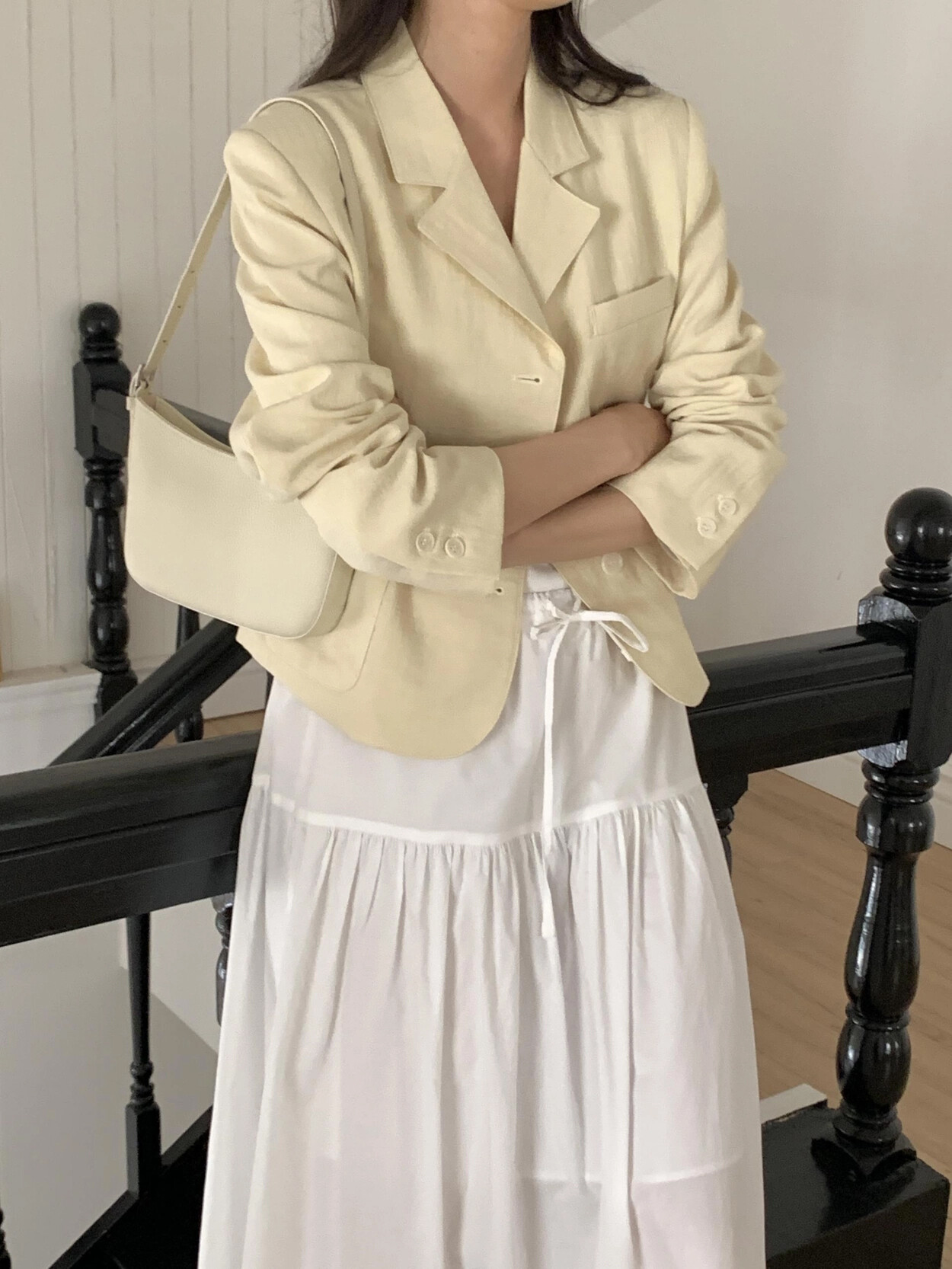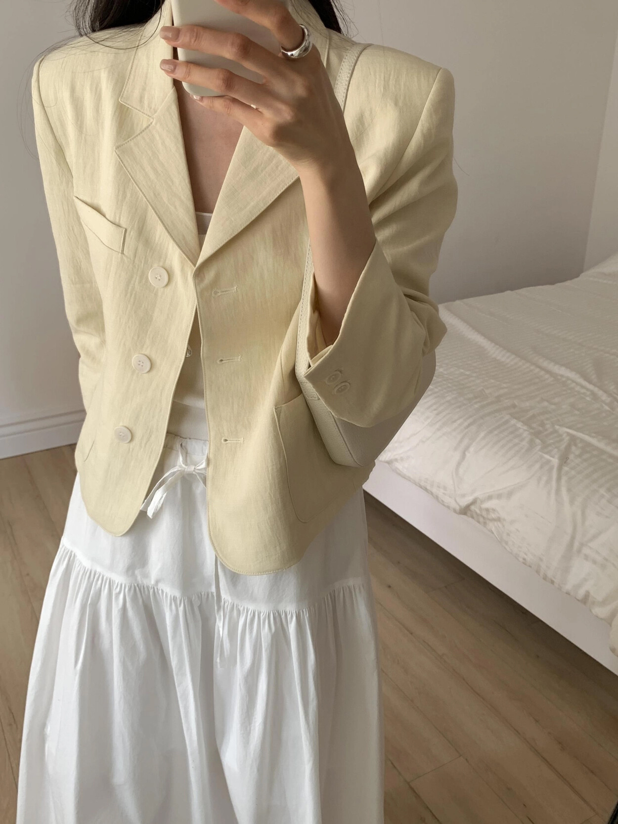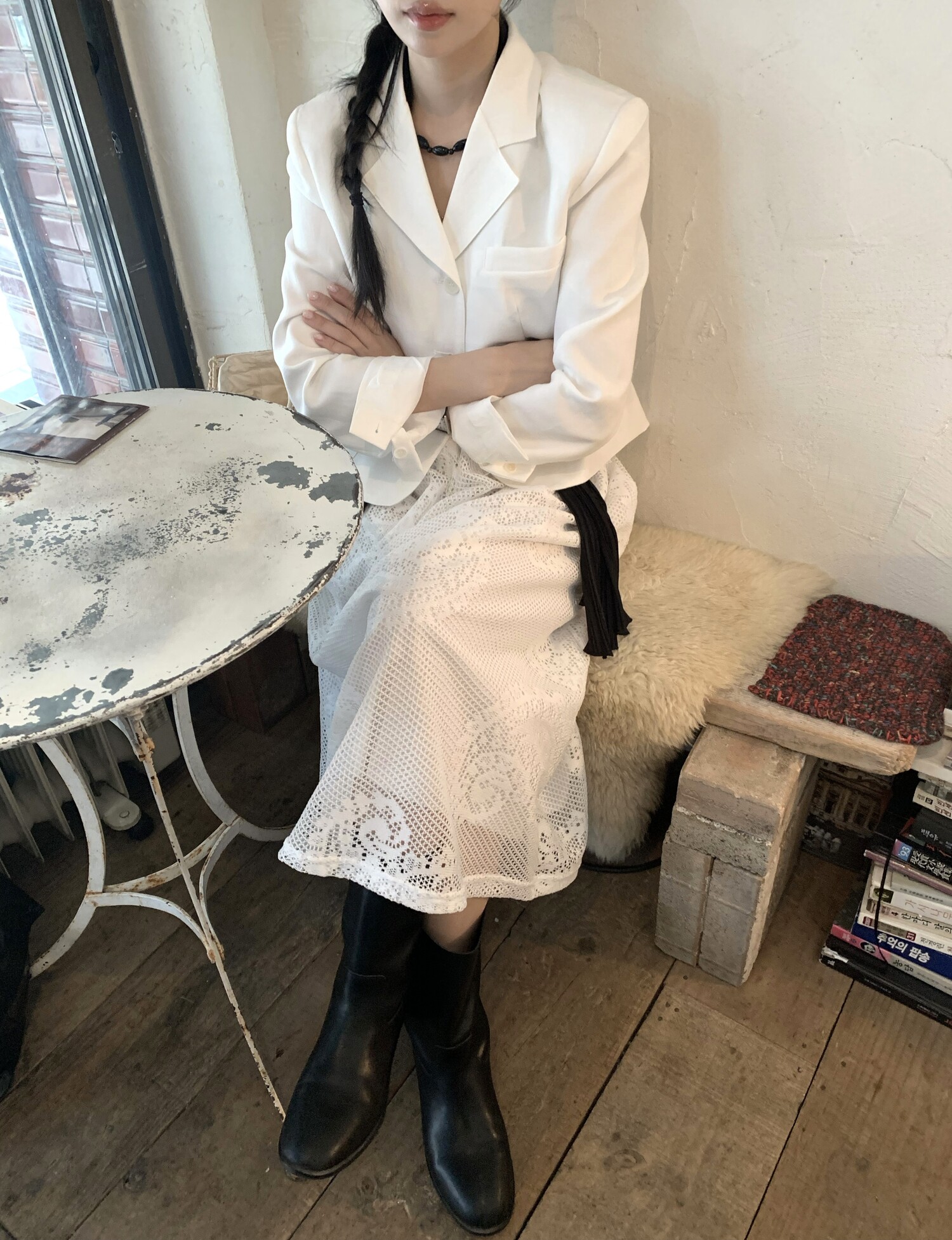 -가볍게 입기좋은 소재감의 ss 크롭재킷(숄더패드&안감내장)