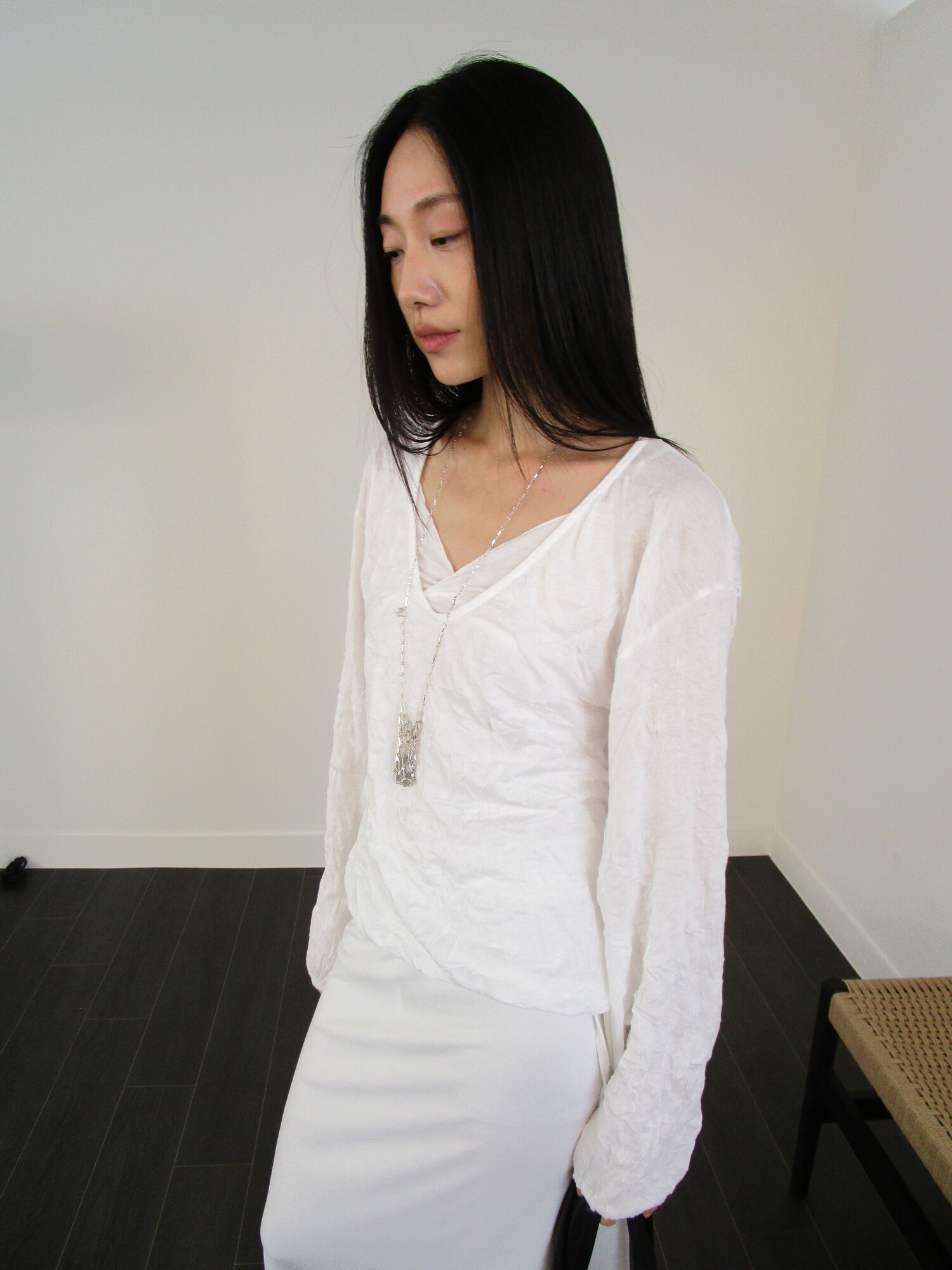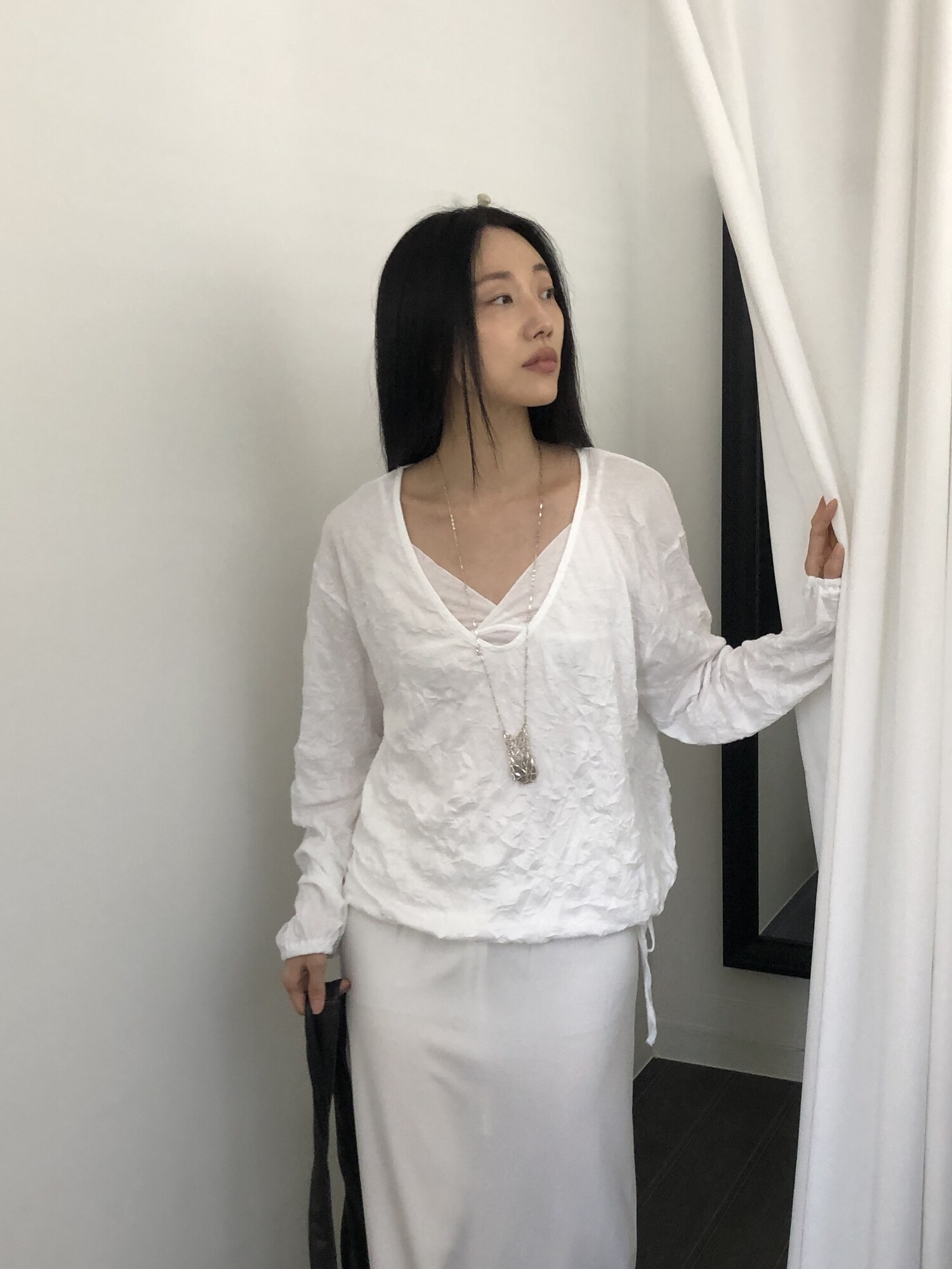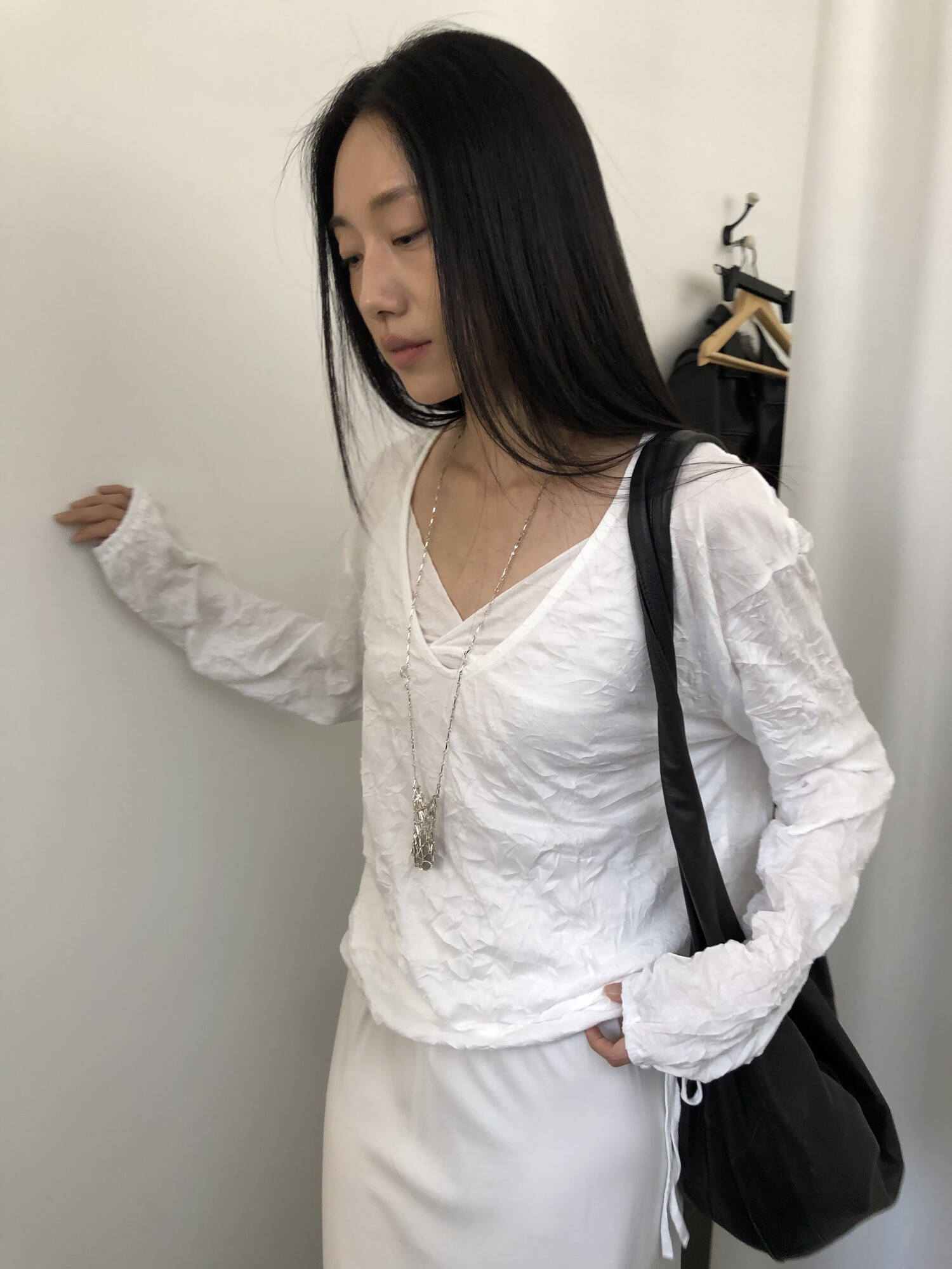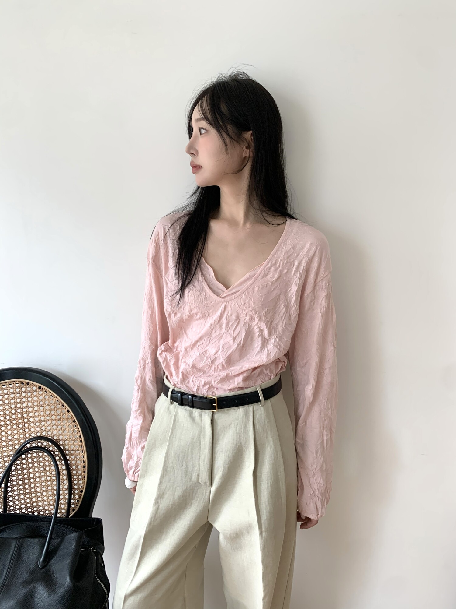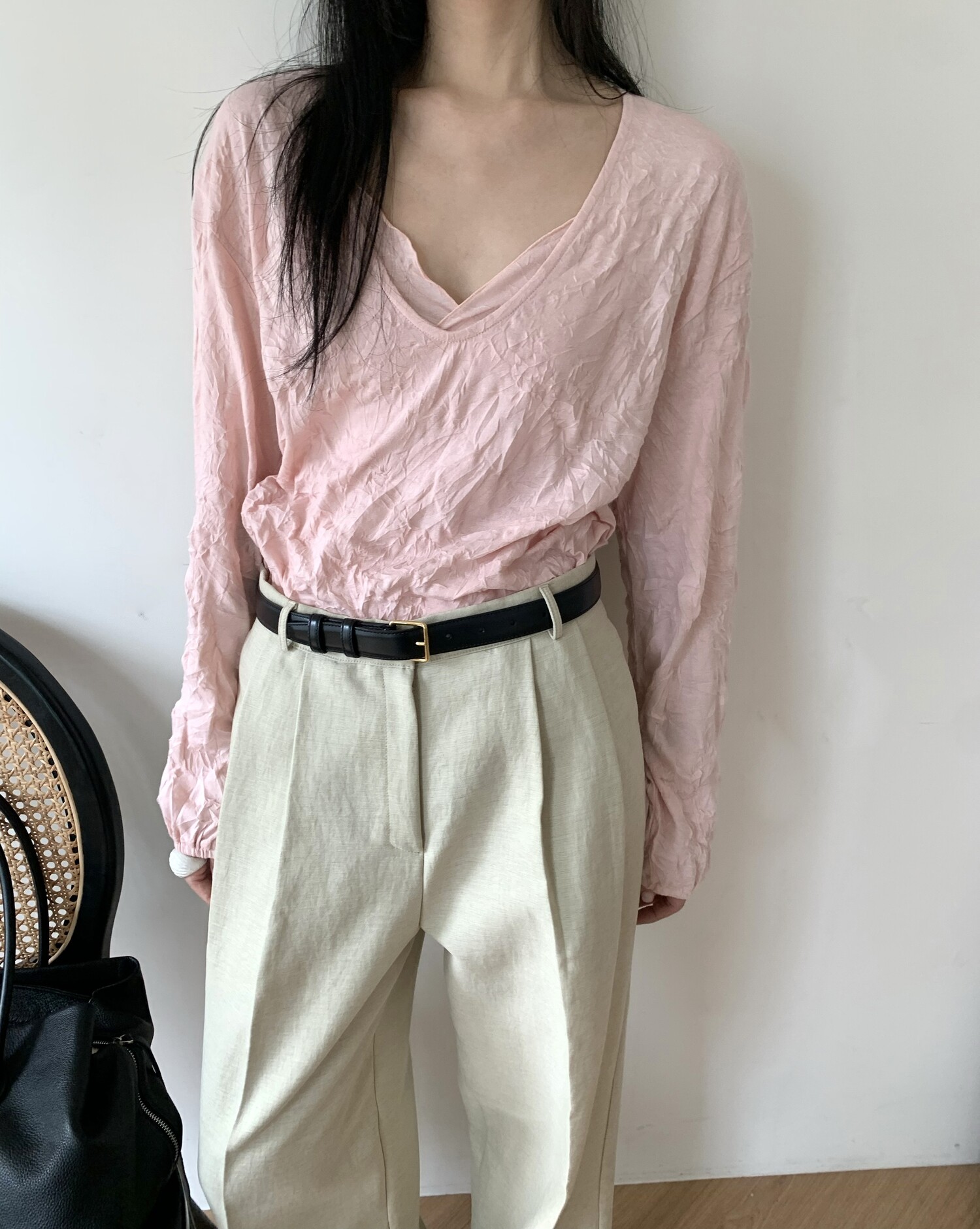 세트로 디자인 된 긴팔은 별도판매 중입니다-wrinkle deep v t