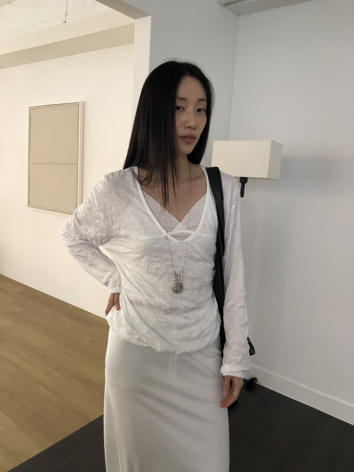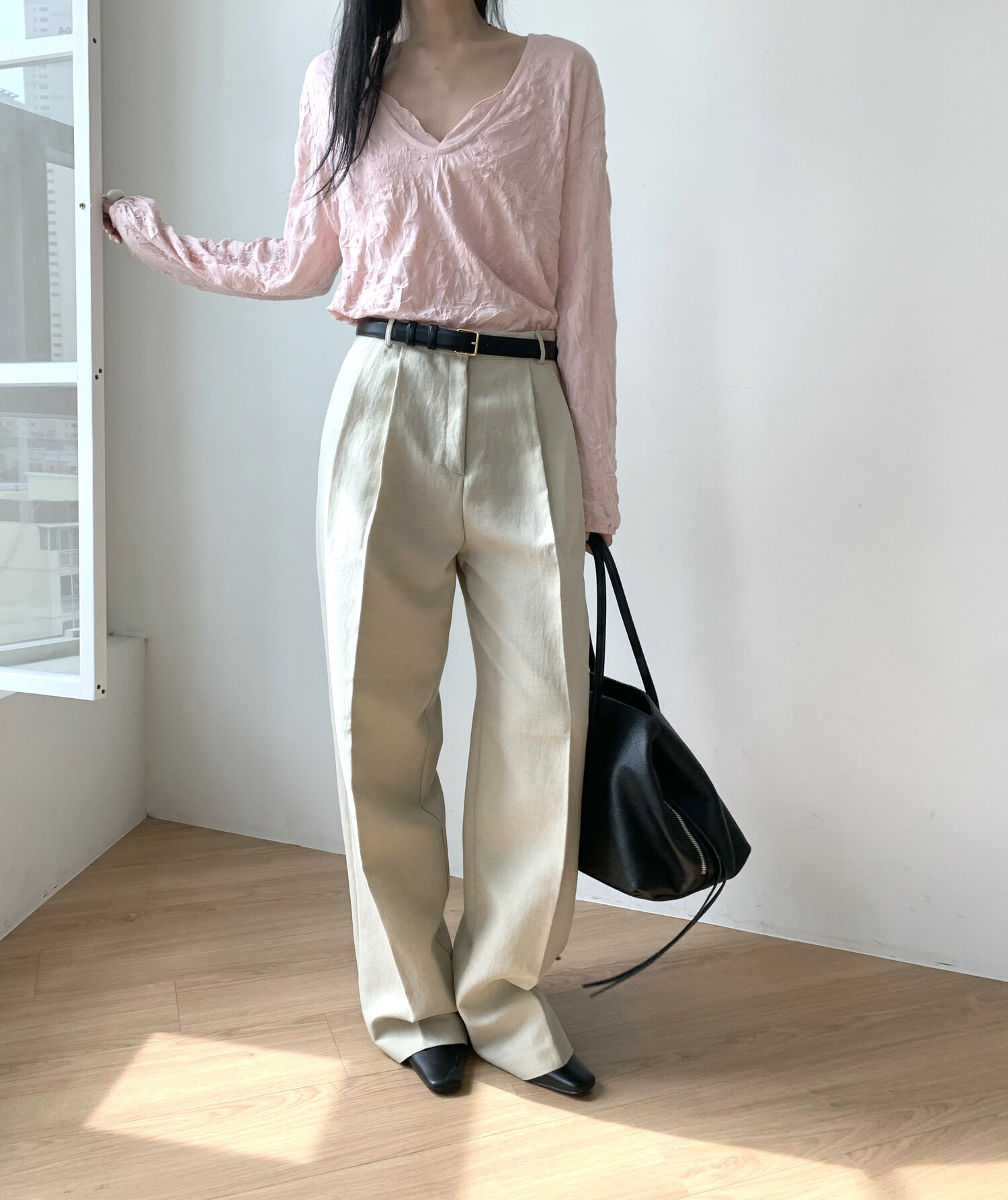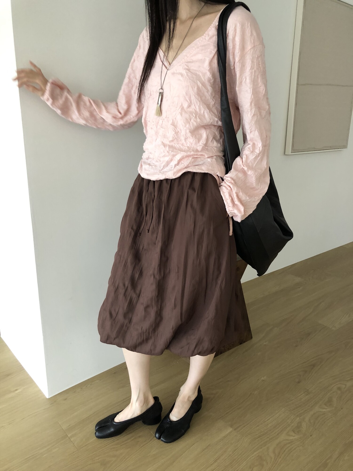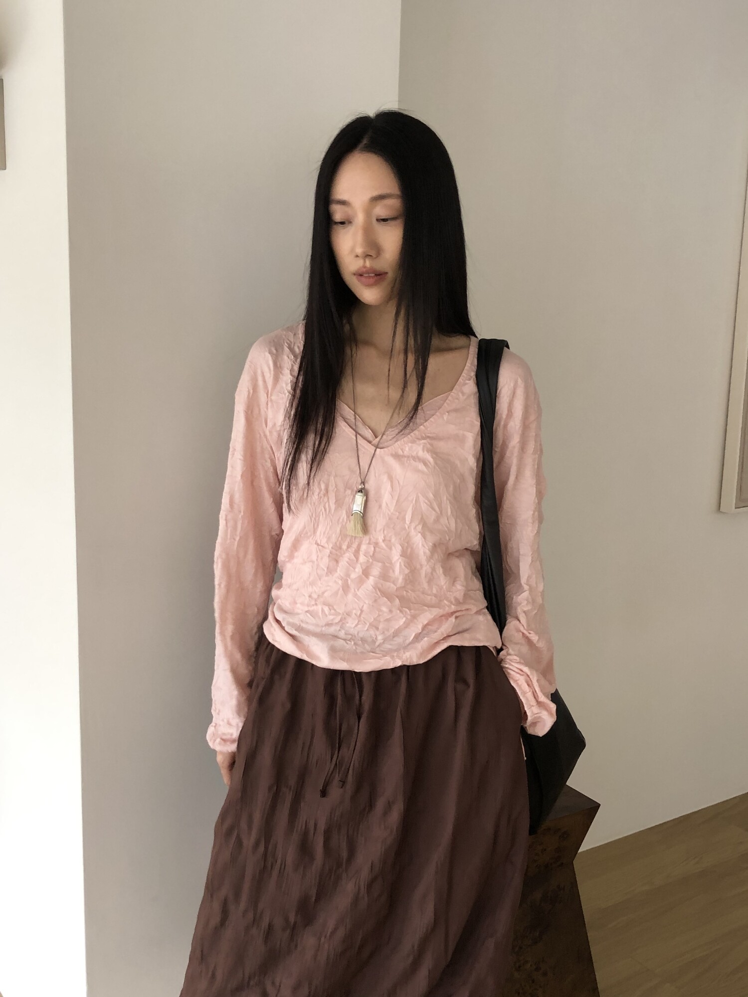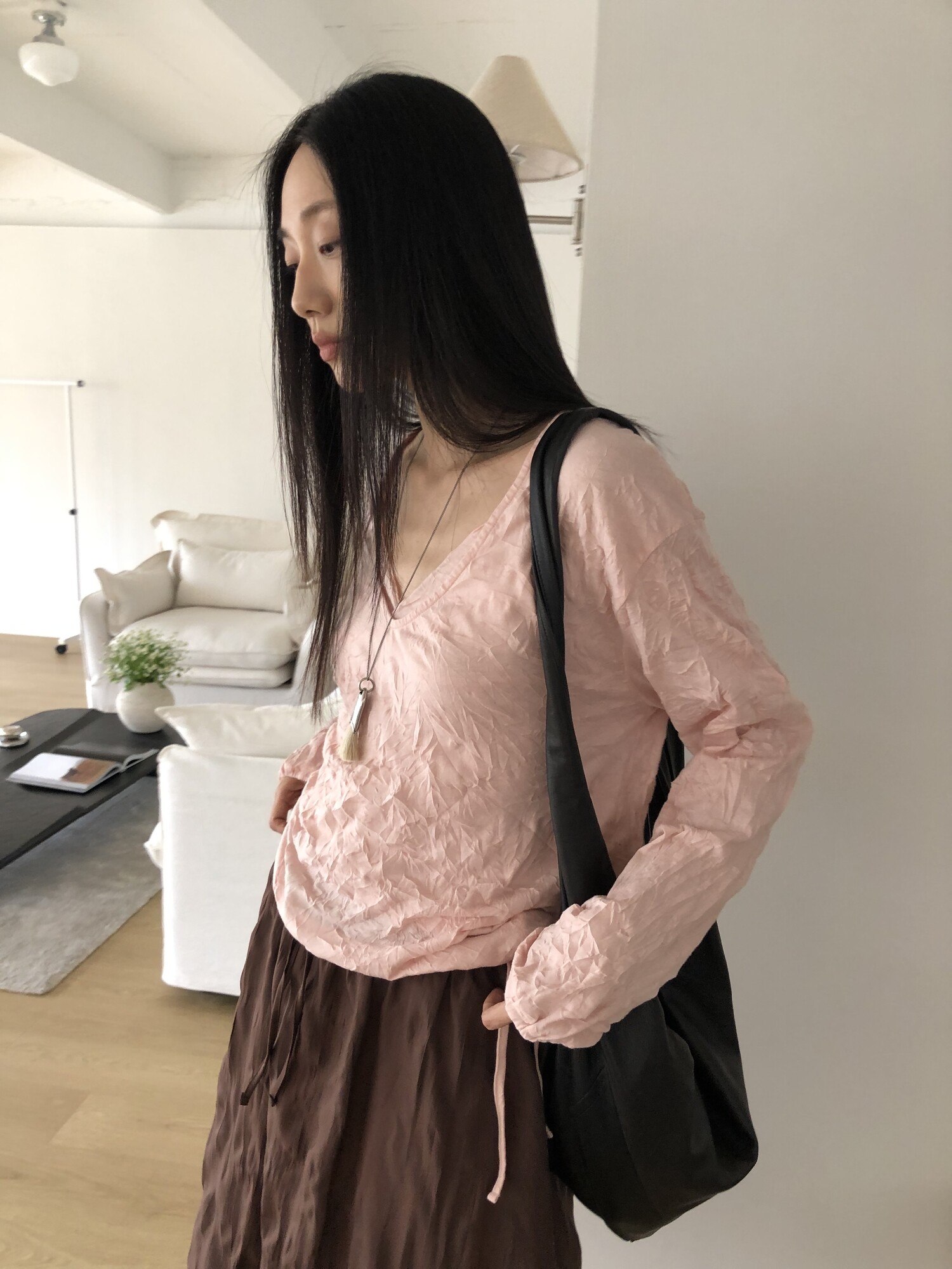 세트로 디자인 된 긴팔은 별도판매 중입니다-wrinkle deep v t