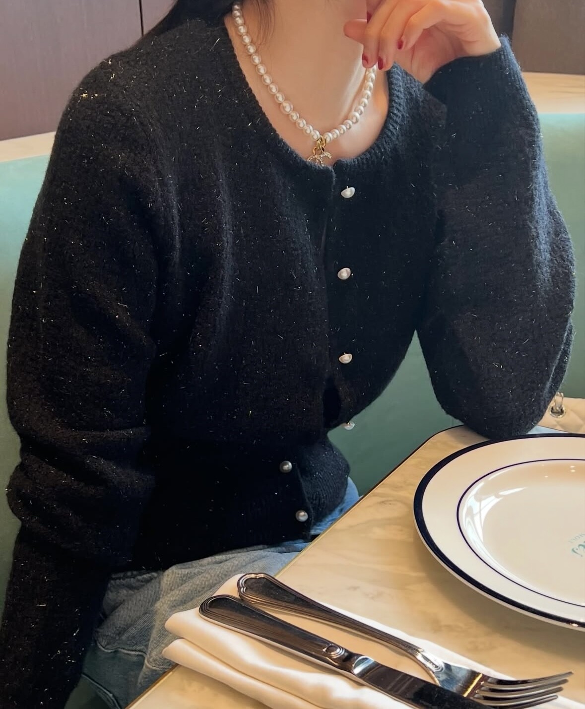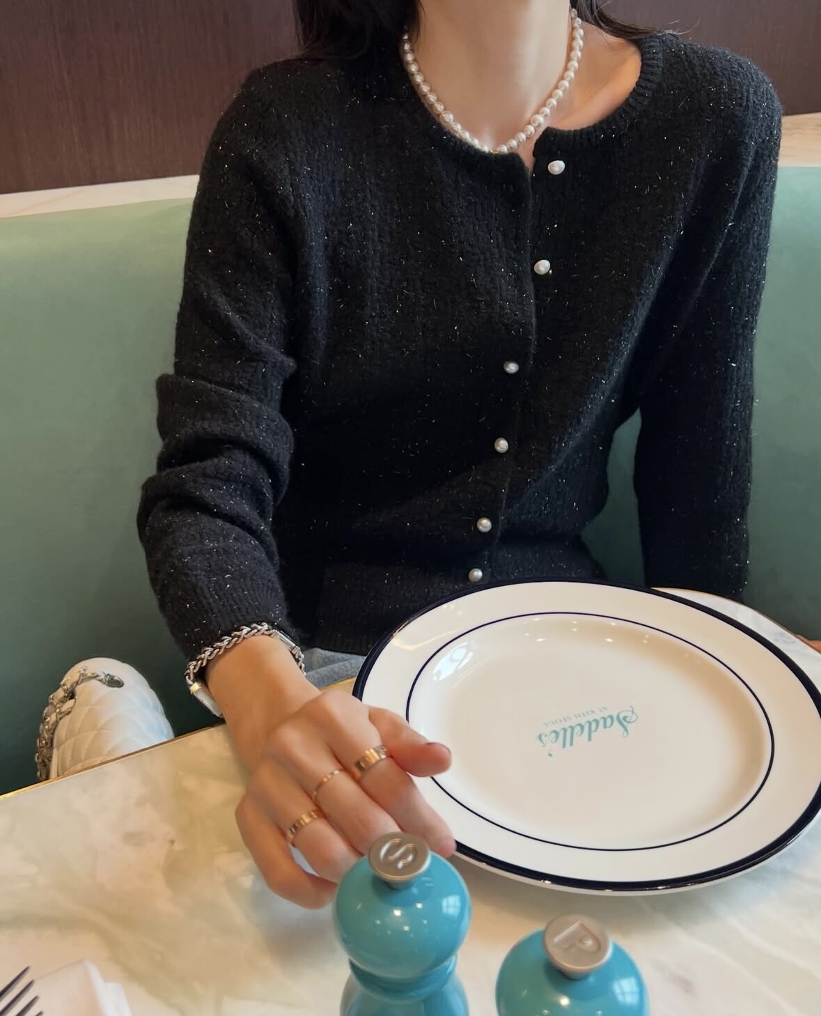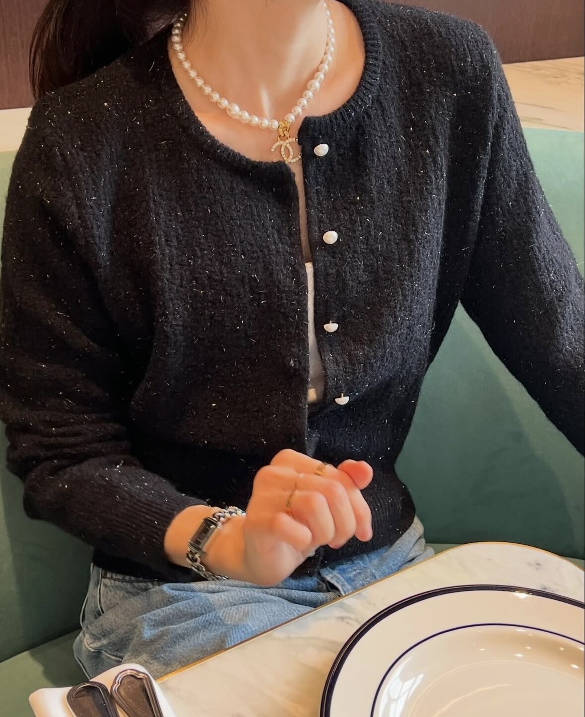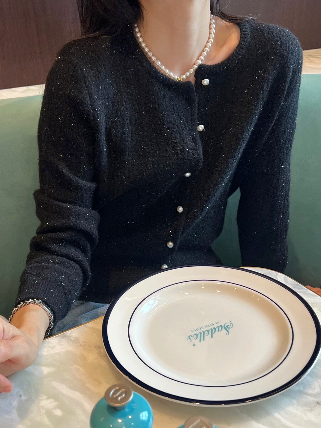 Pearl button metal knit cd-2color