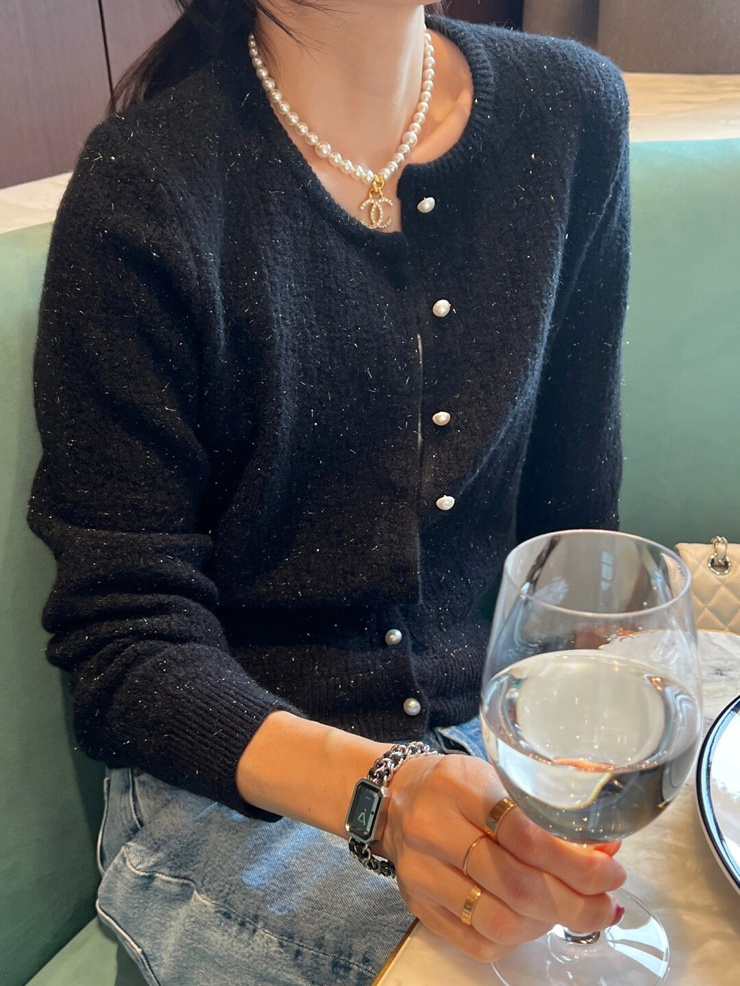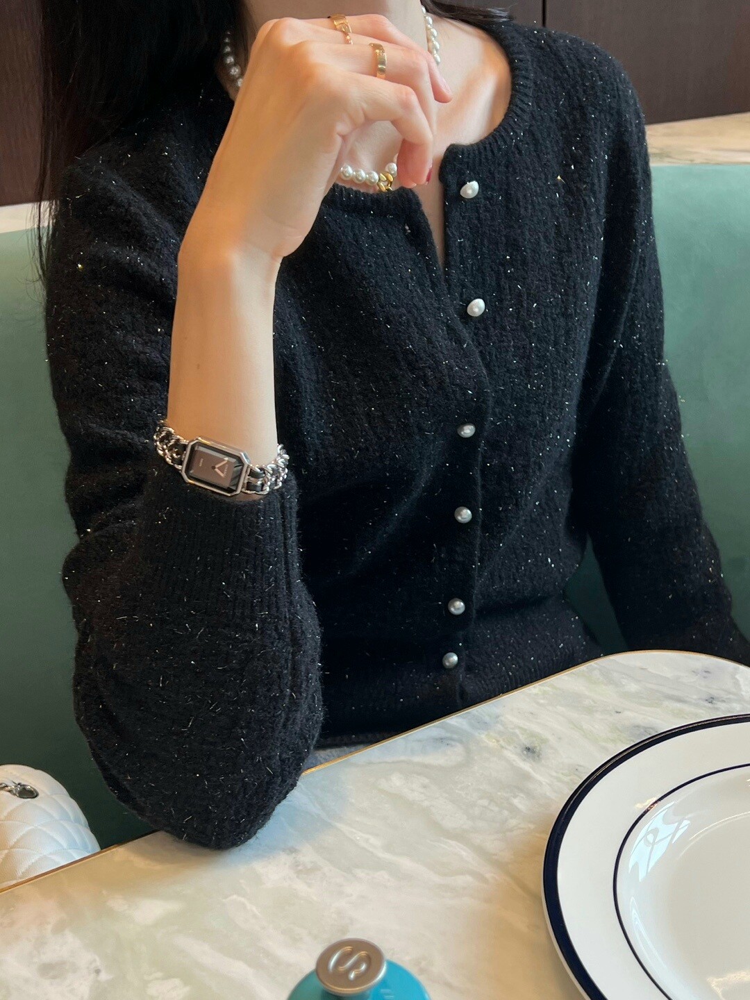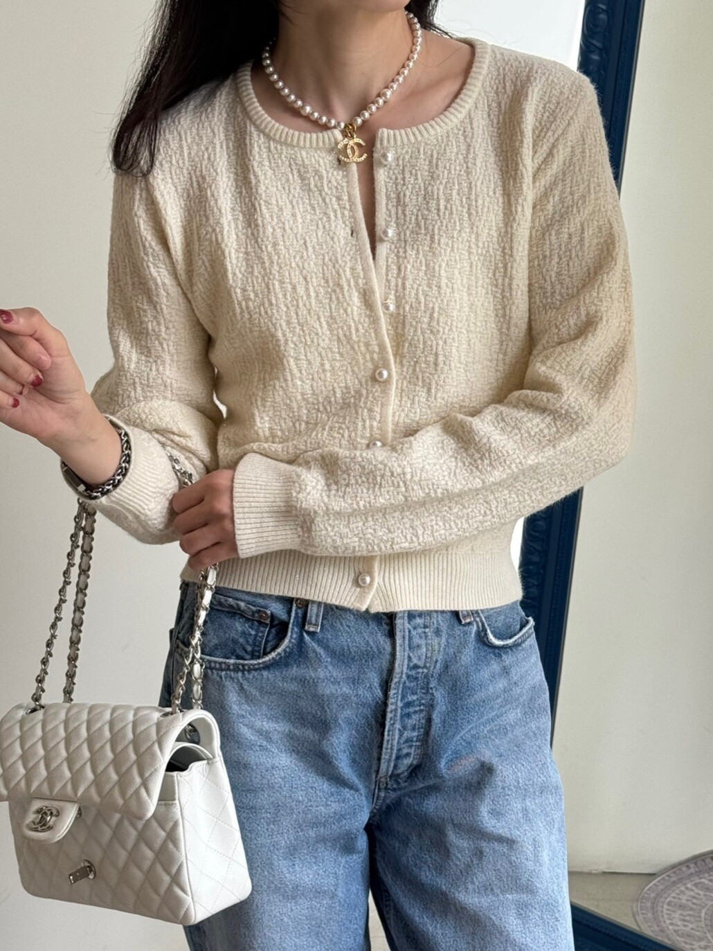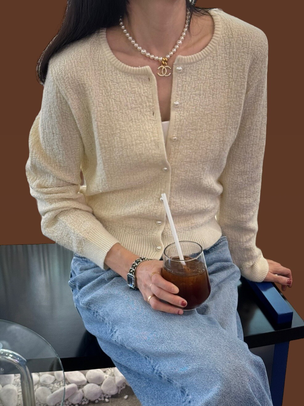 Pearl button metal knit cd-2color