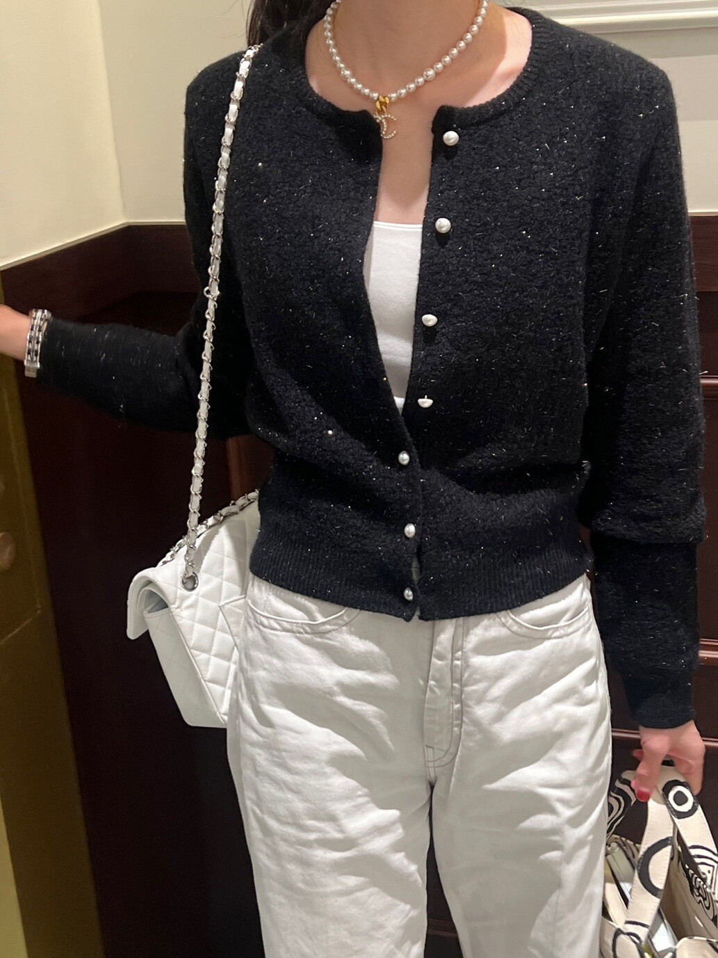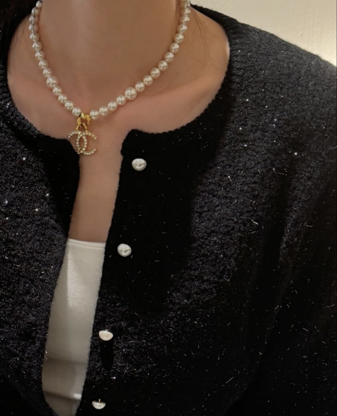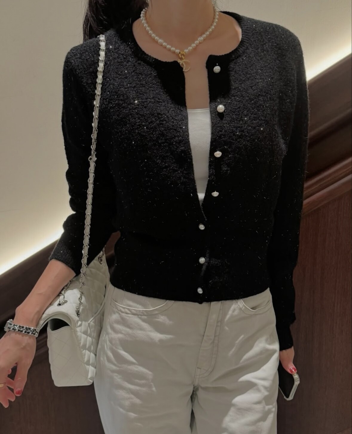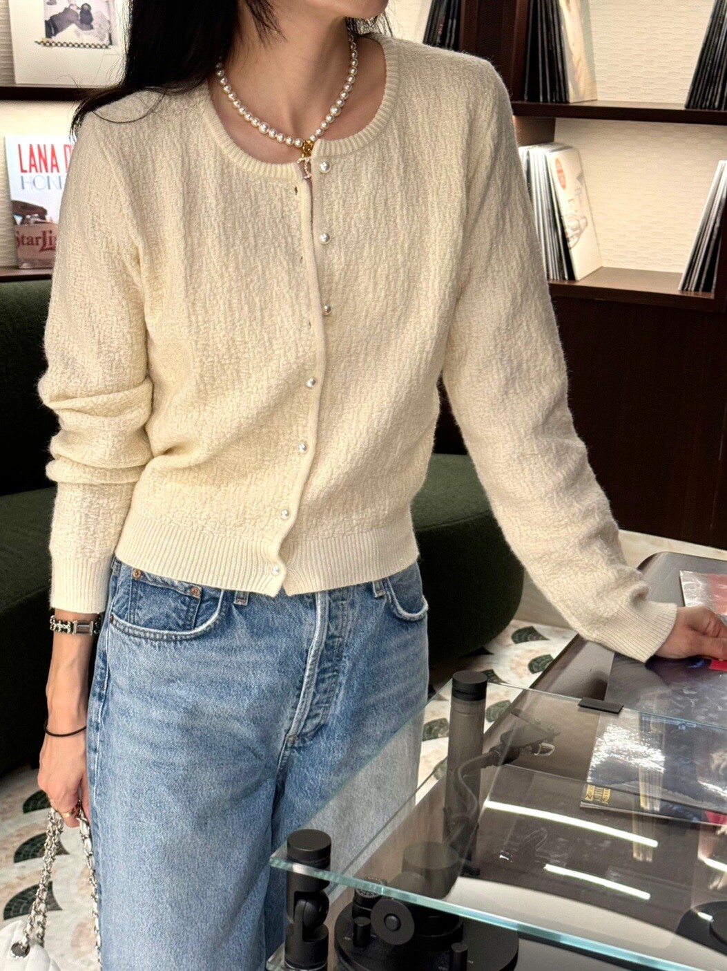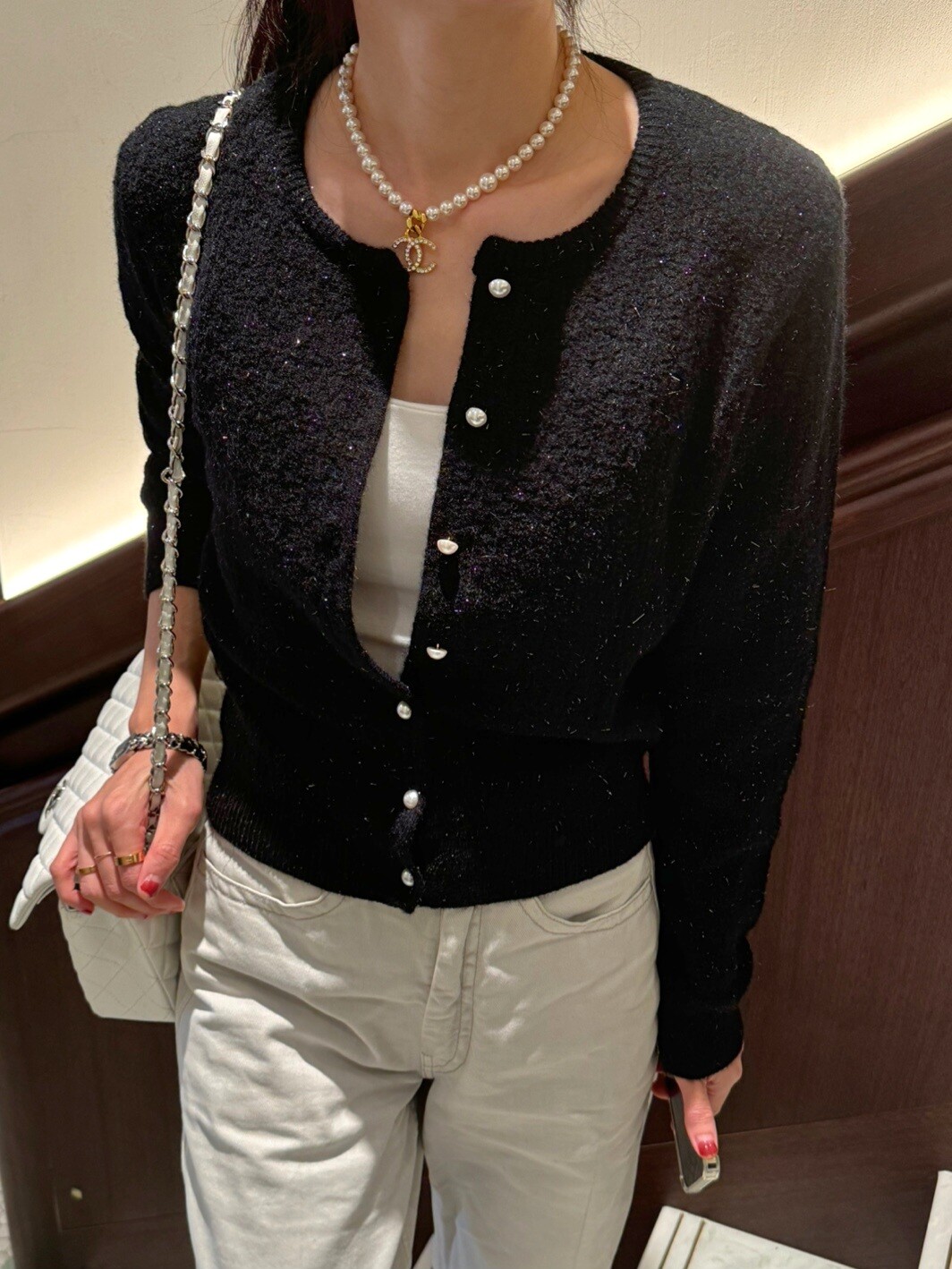 Pearl button metal knit cd-2color