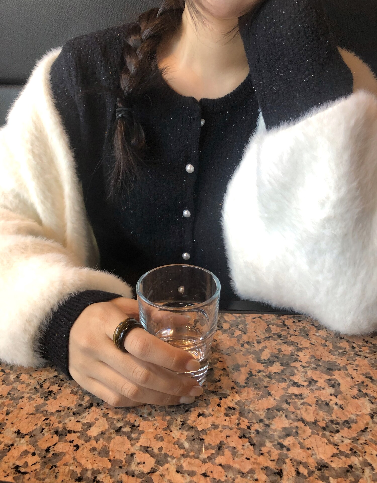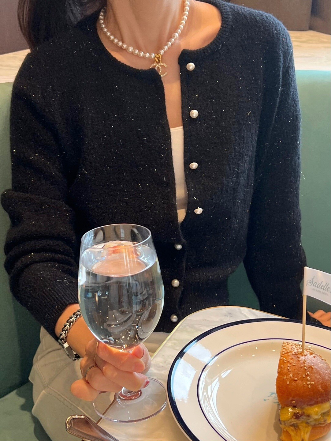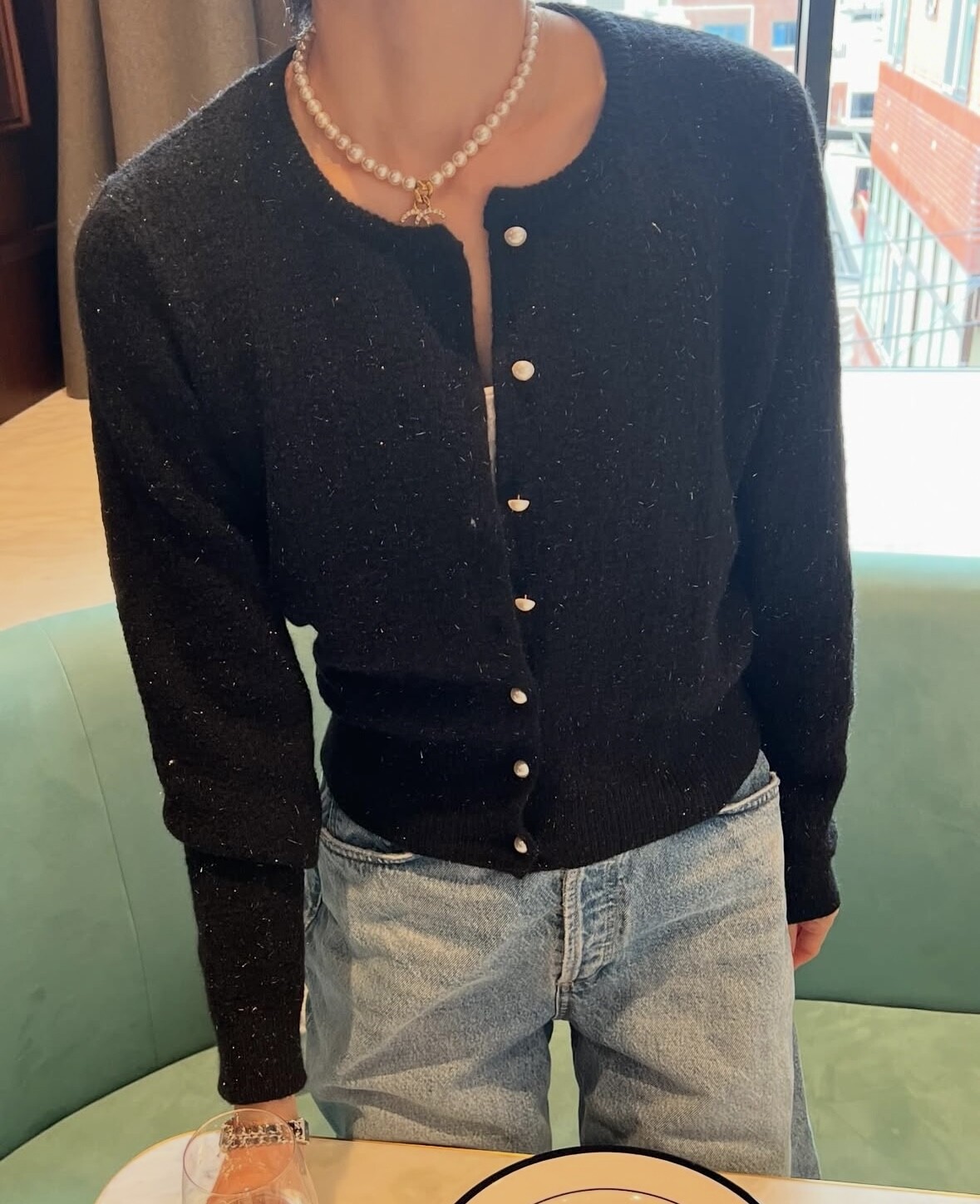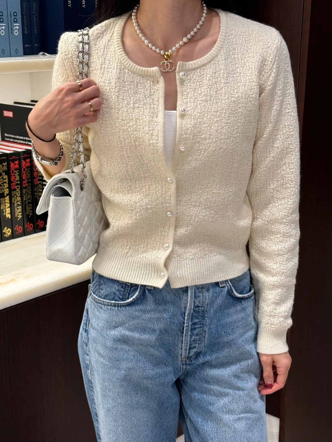 Pearl button metal knit cd-2color