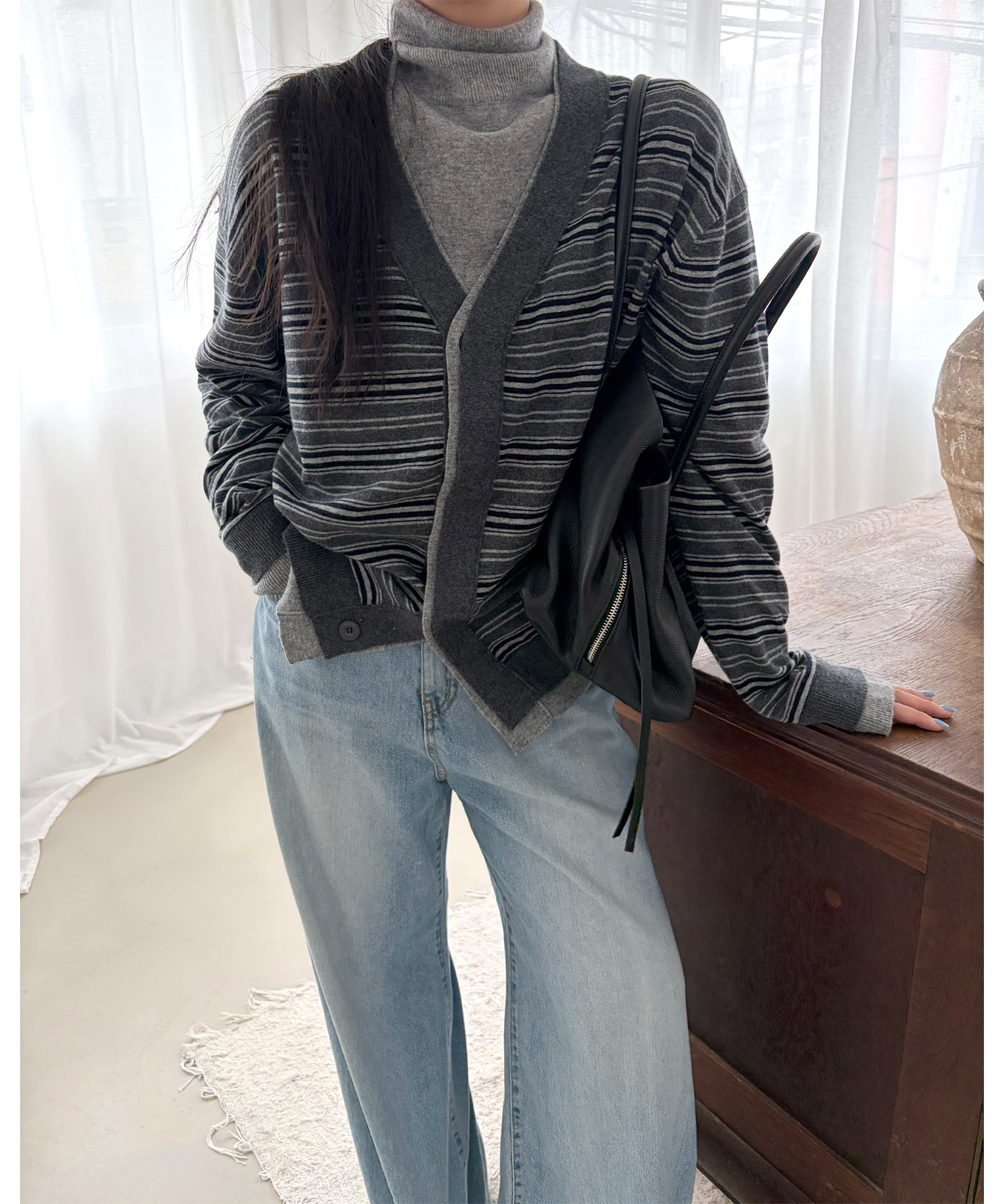 Wool stripe loose fit cd-charcoal