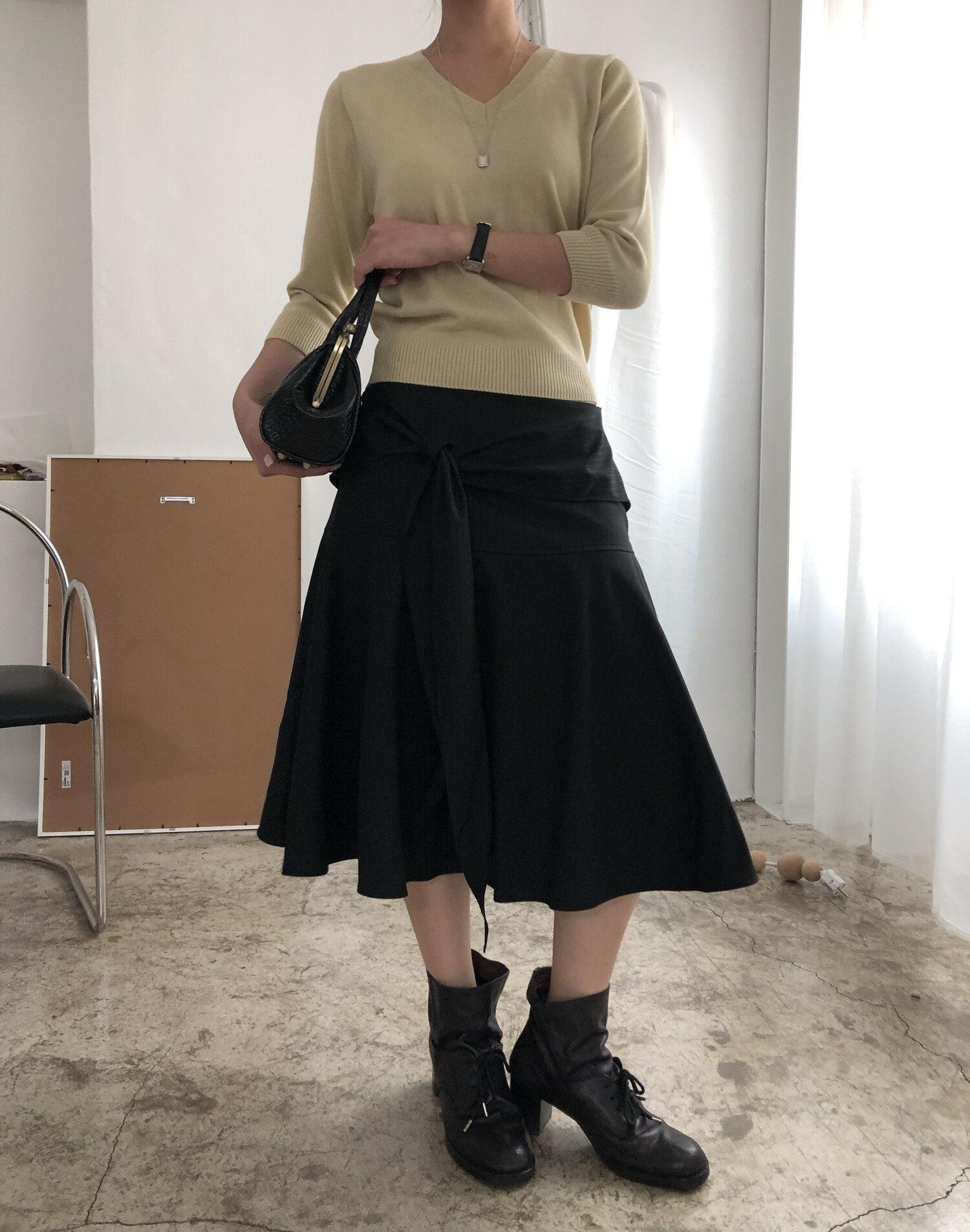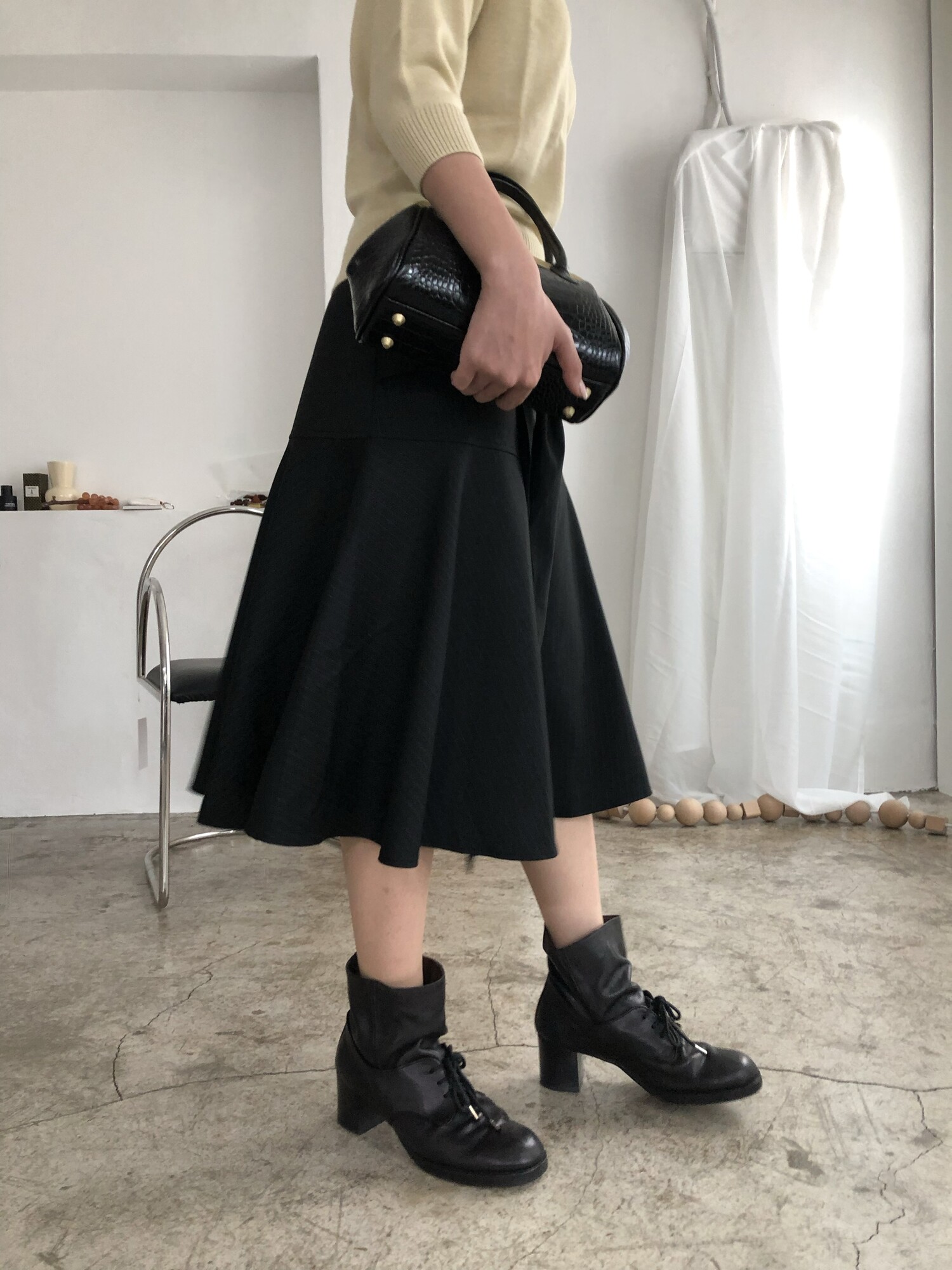 -허리 여유있게 나왔으며 골반에 걸치는 핏&세련되면서도 멋스런 플레어 실루엣