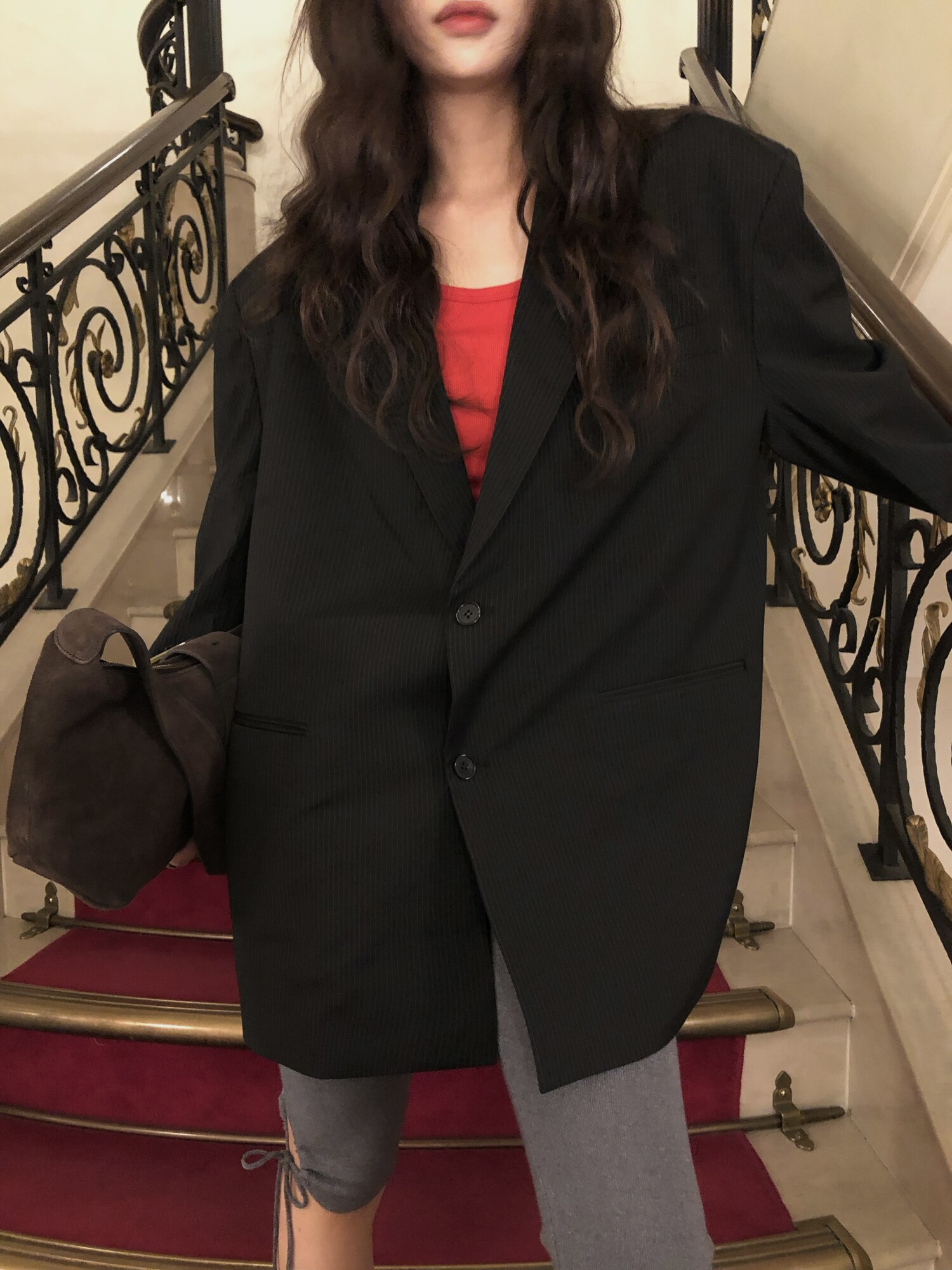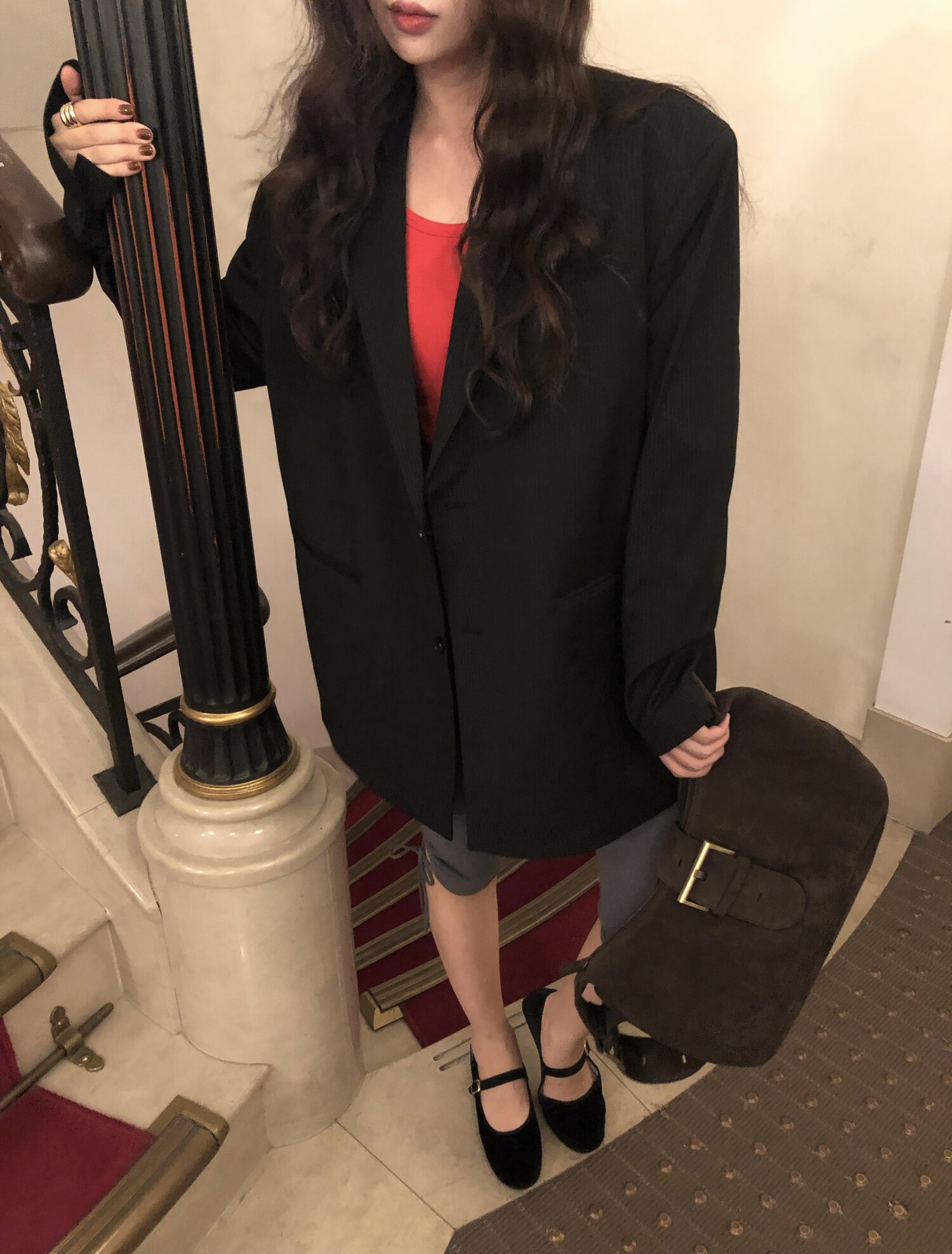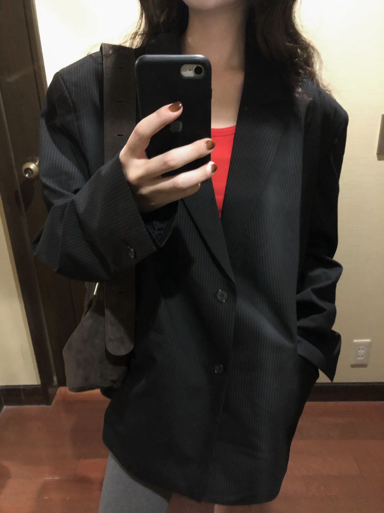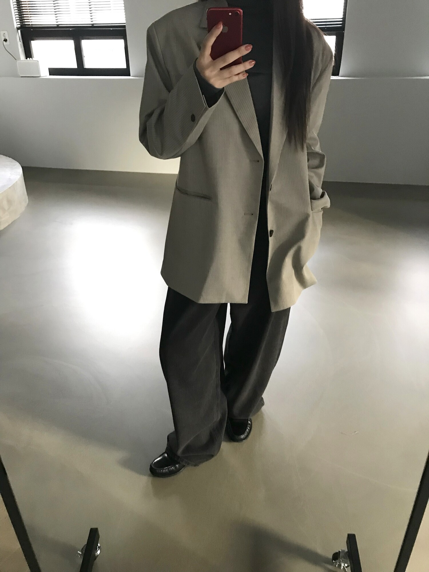 **유니섹스 라인으로 대디핏 테일러 재킷입니다. 오버핏 좋아하시는 분들께 적극 추천드려요.**