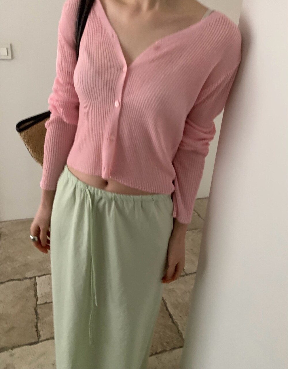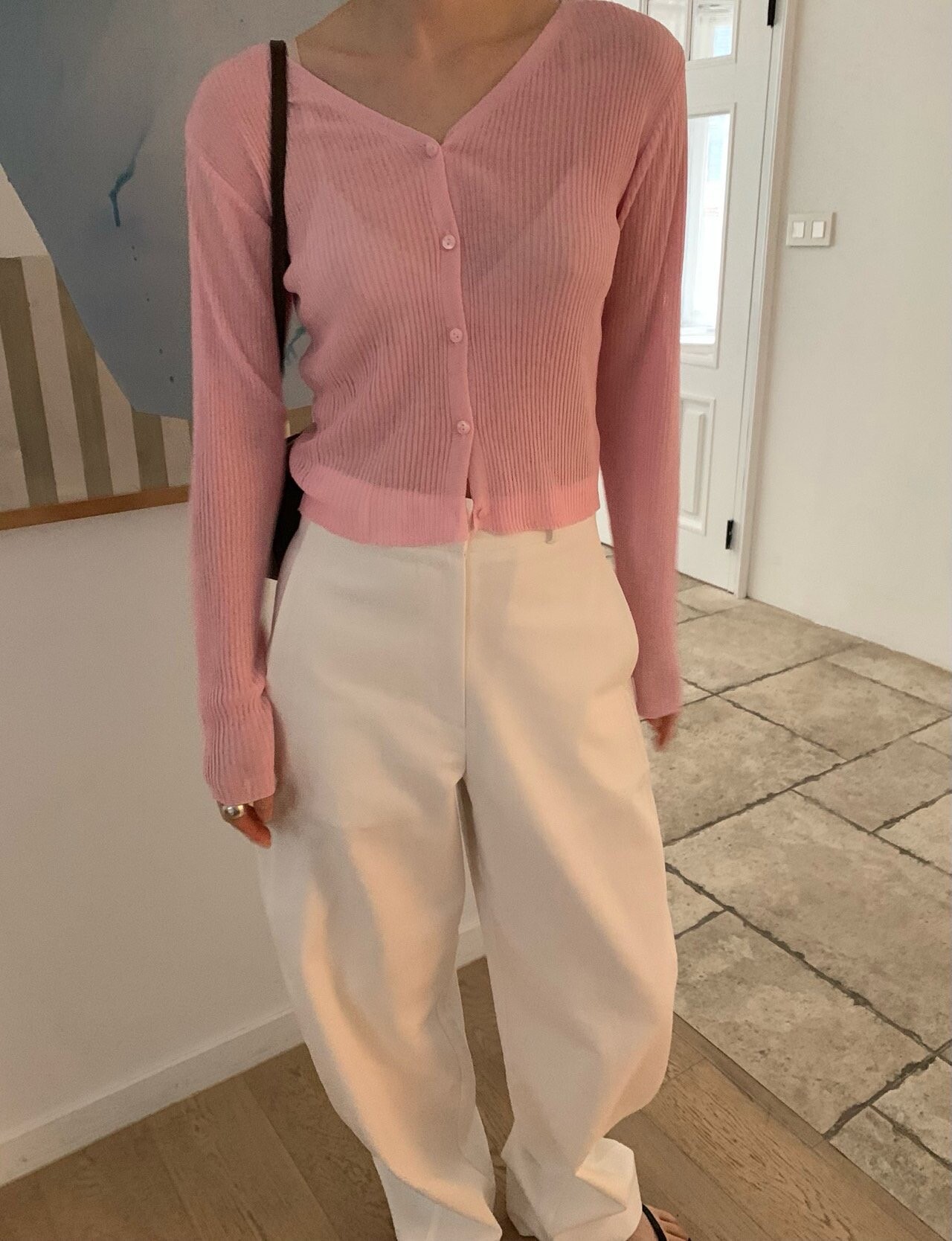 -얇은 니트 소재로 가볍게 걸치기 좋은 린넨 혼방 크롭 가디건