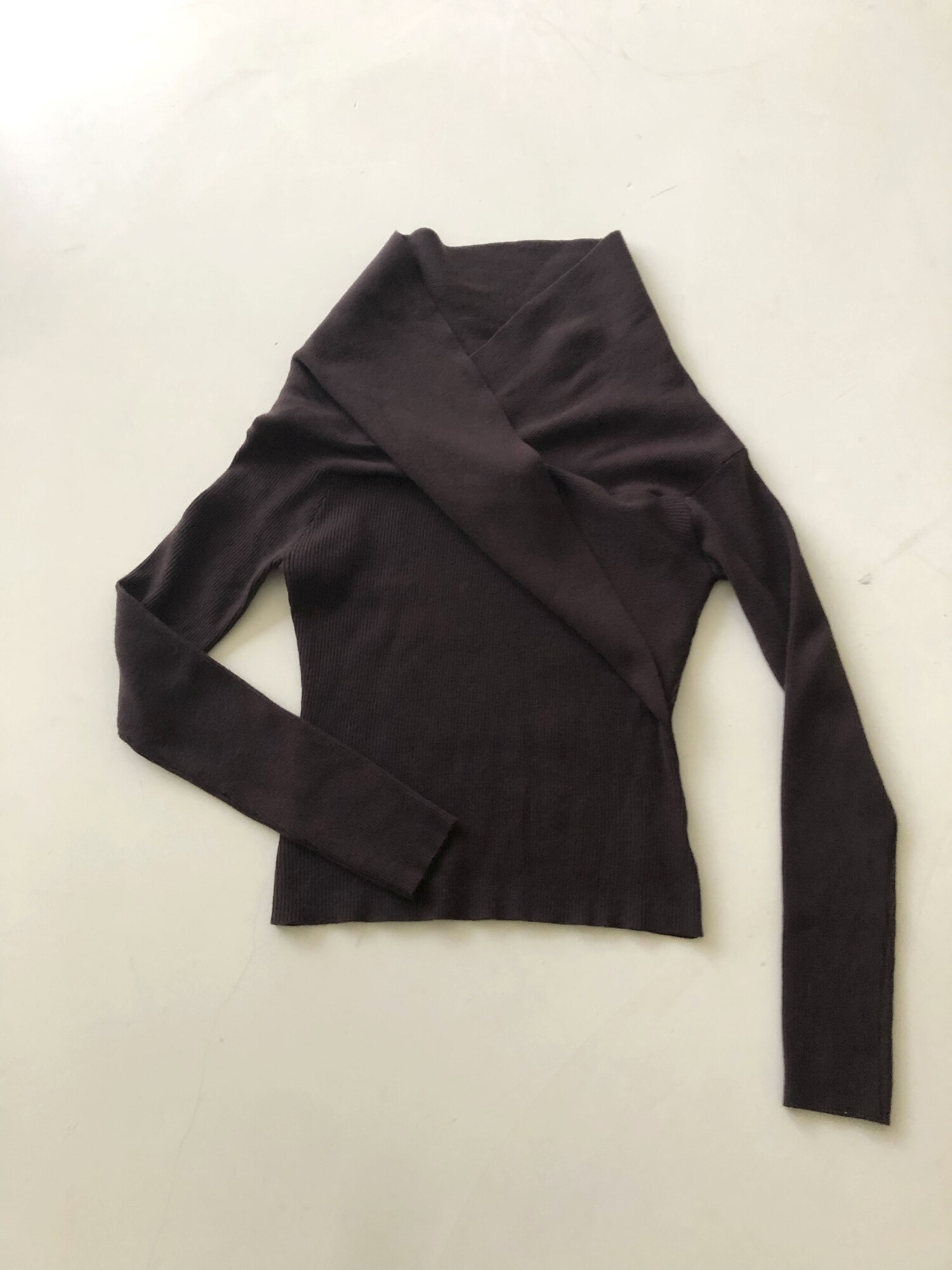 처음엔 바로 아래 사진처럼 다 올라간 채로 배송되며 착용하여 터틀넥처럼 접어 입어주시면 됩니다.