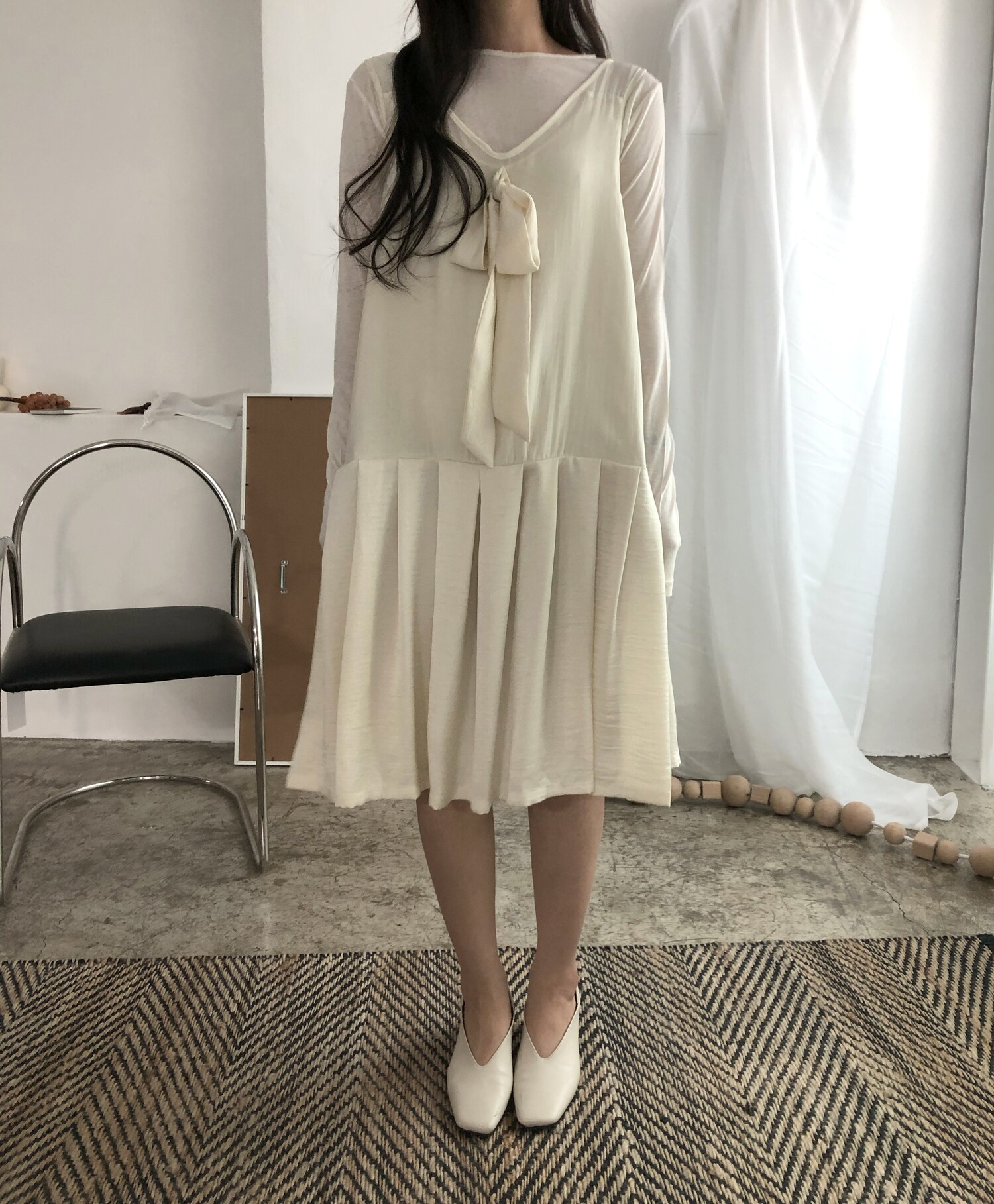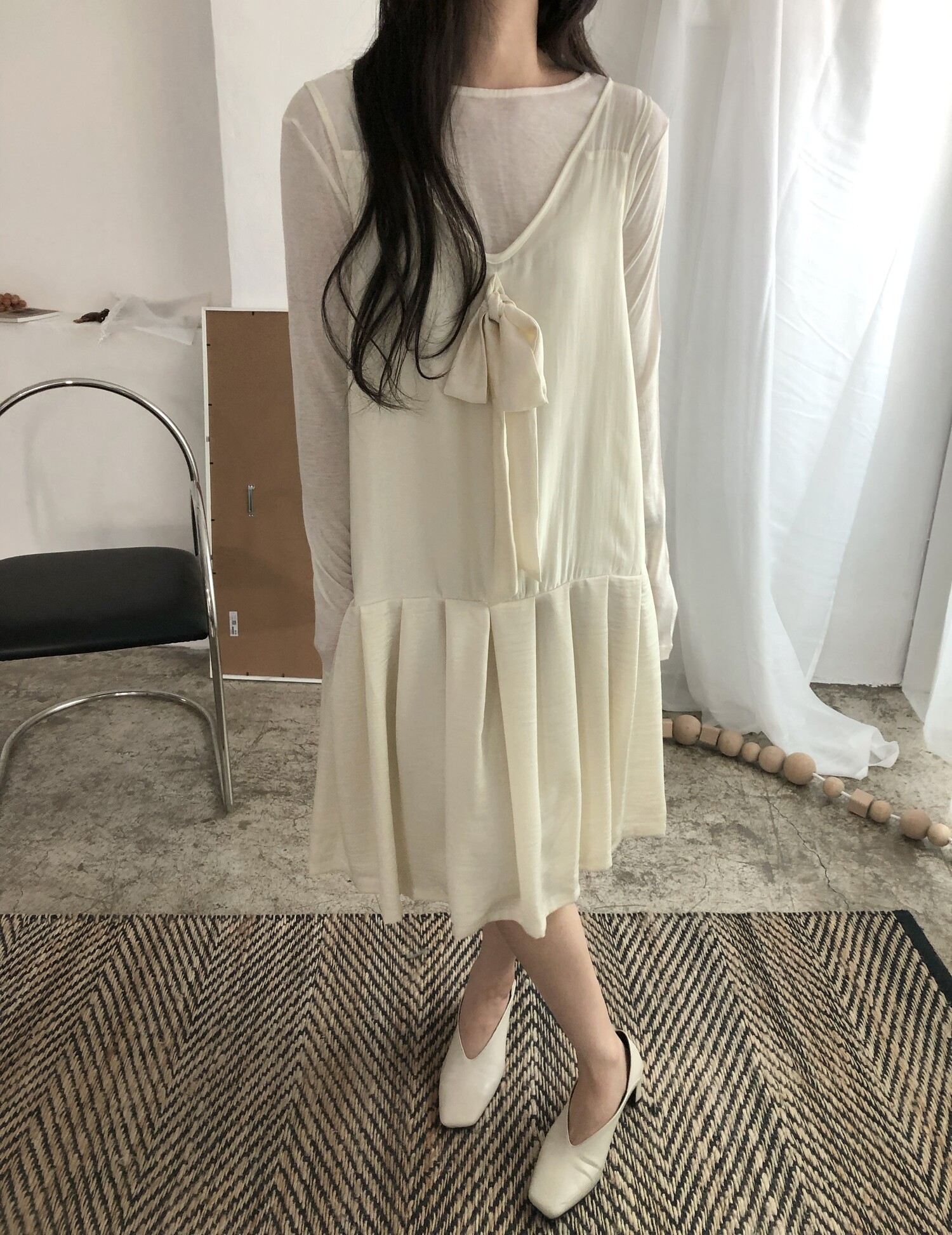 Anna sheer pleats ops-lemon cream